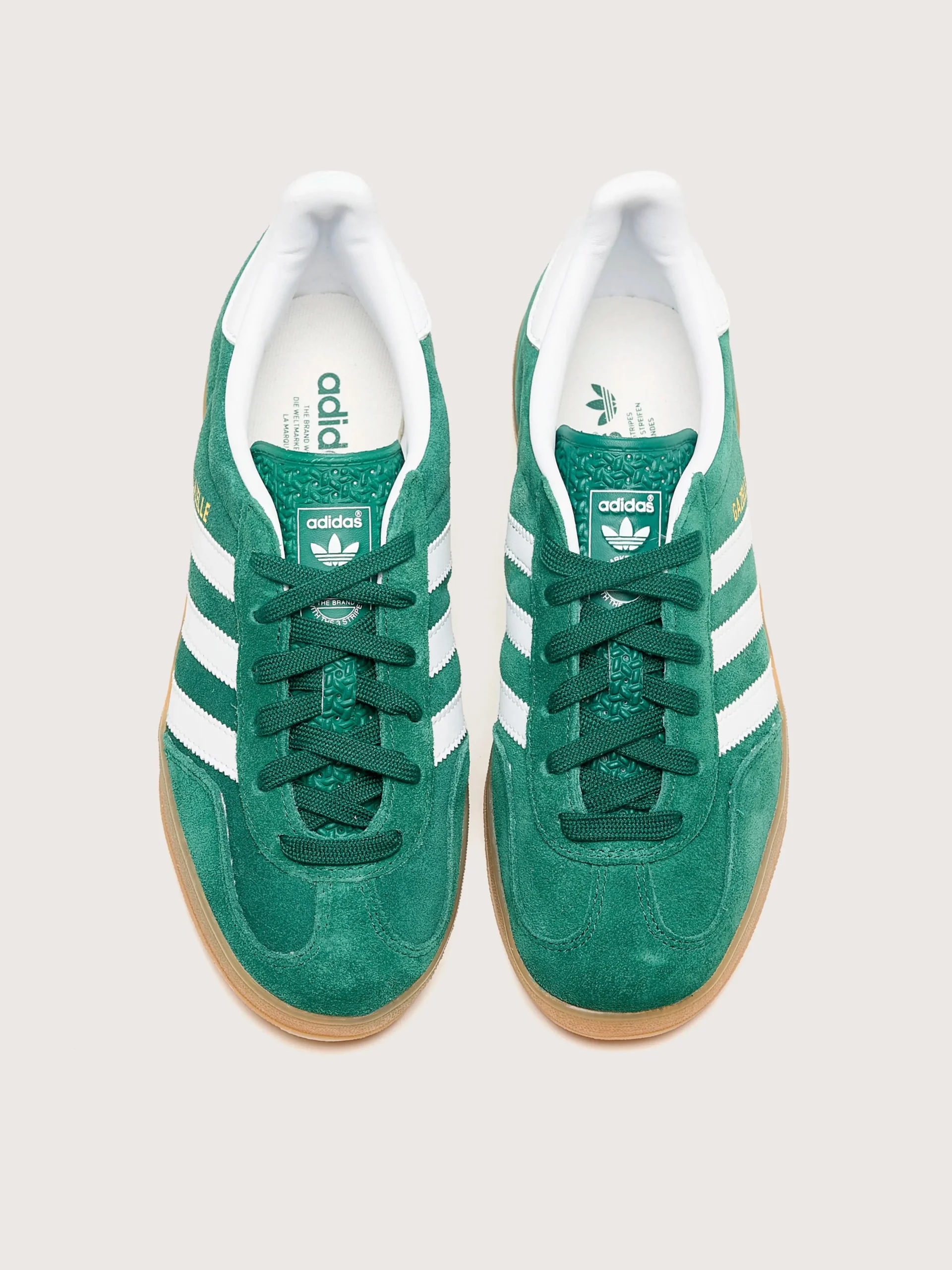 De Adidas Gazelle Indoor zijn sneakers met een premium suède bovenwerk en een gumrubberen cupzool voor een stevige grip. Stijl: JI2062Kleur: Collegiate Green / Cloud White / Gum