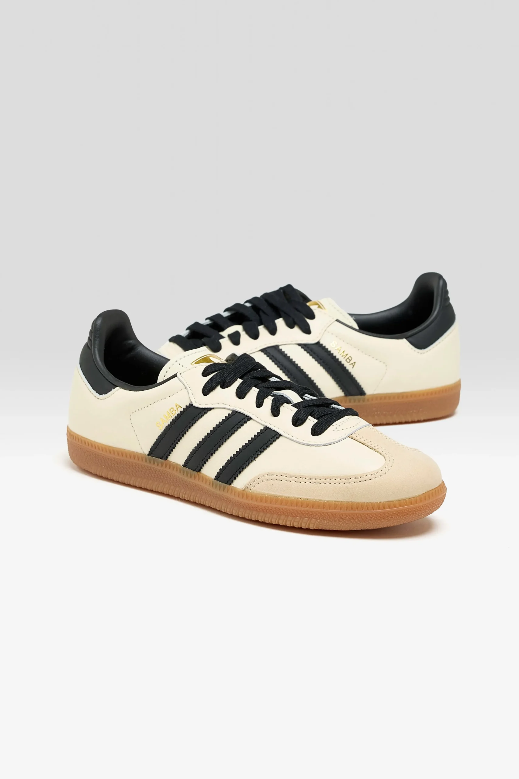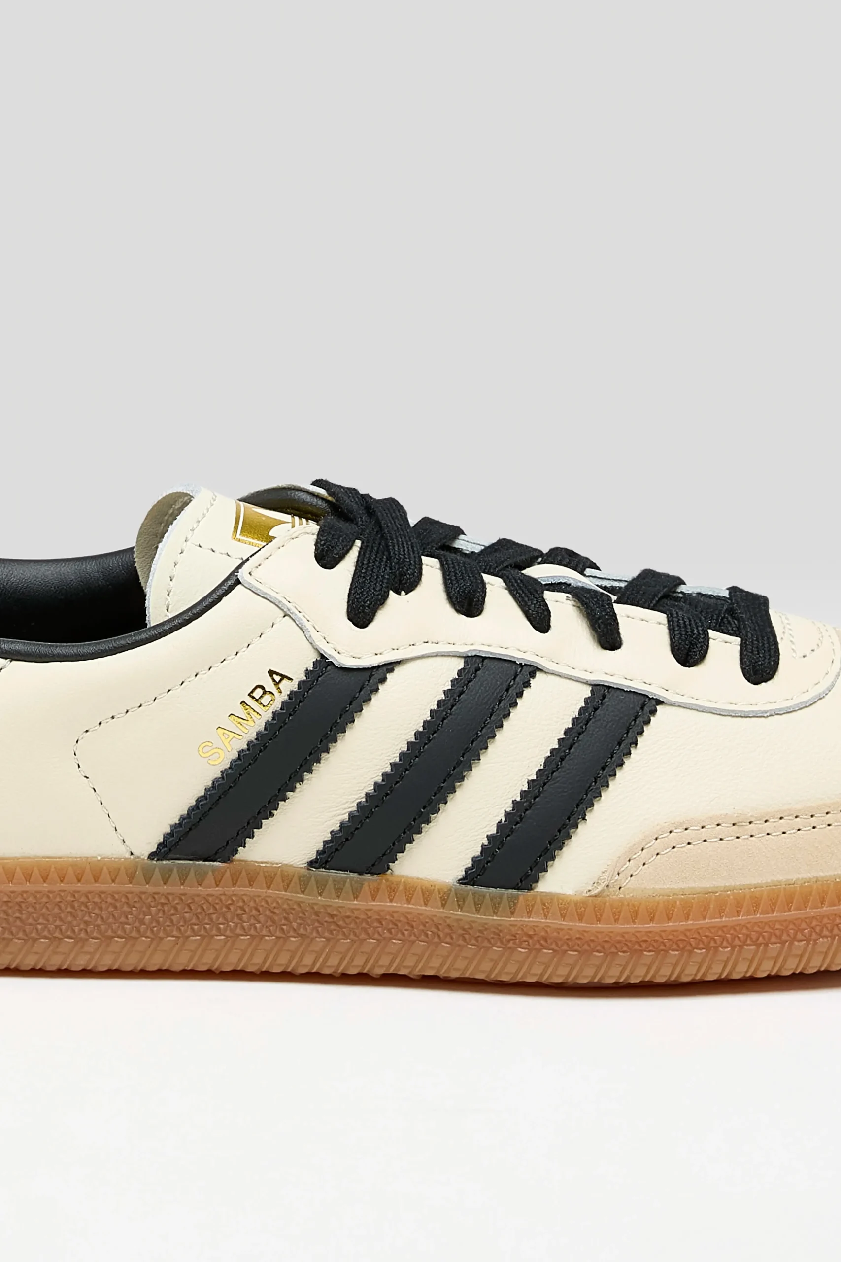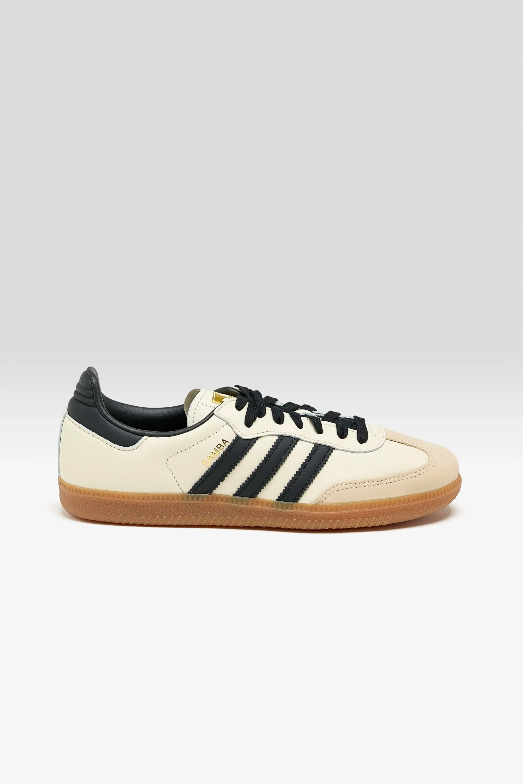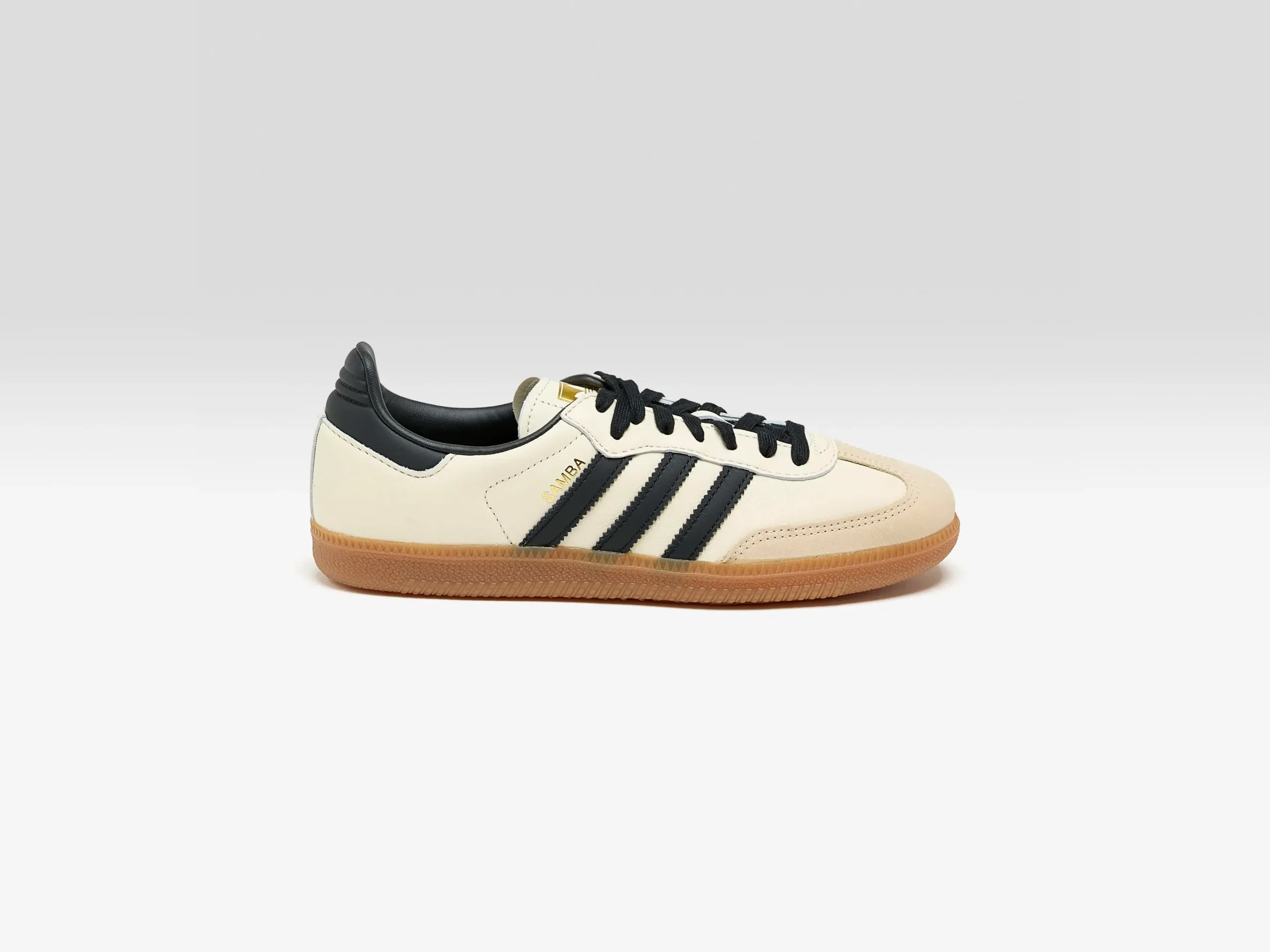 De Adidas Samba OG hebben een bovenkant van premium leder en overlays van nubuck, die samen een iconisch silhouet vormen met gouden accenten en de historische 3-stripes.Stijl: ID0478Kleur: Cream White / Core Black / Sand Strata