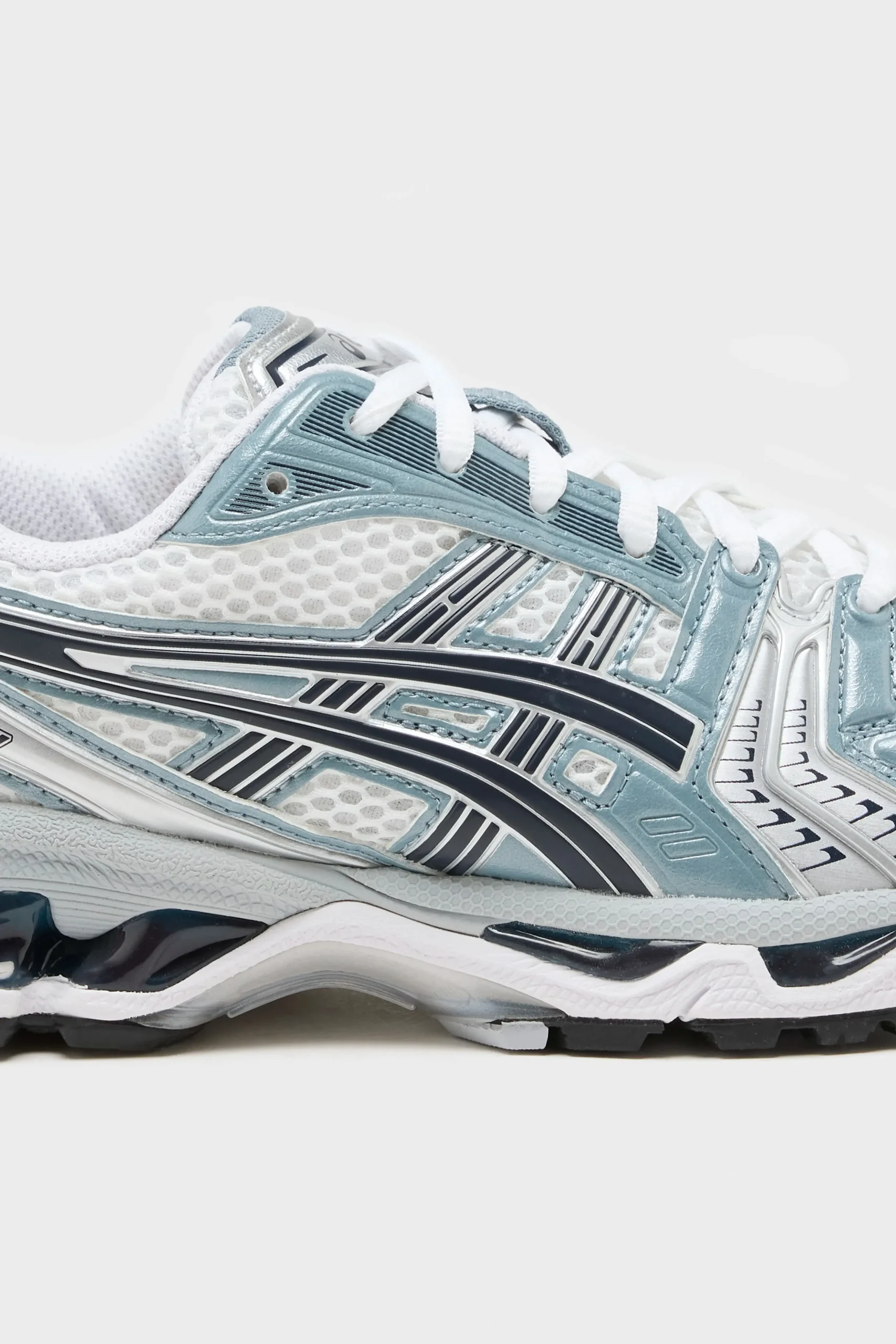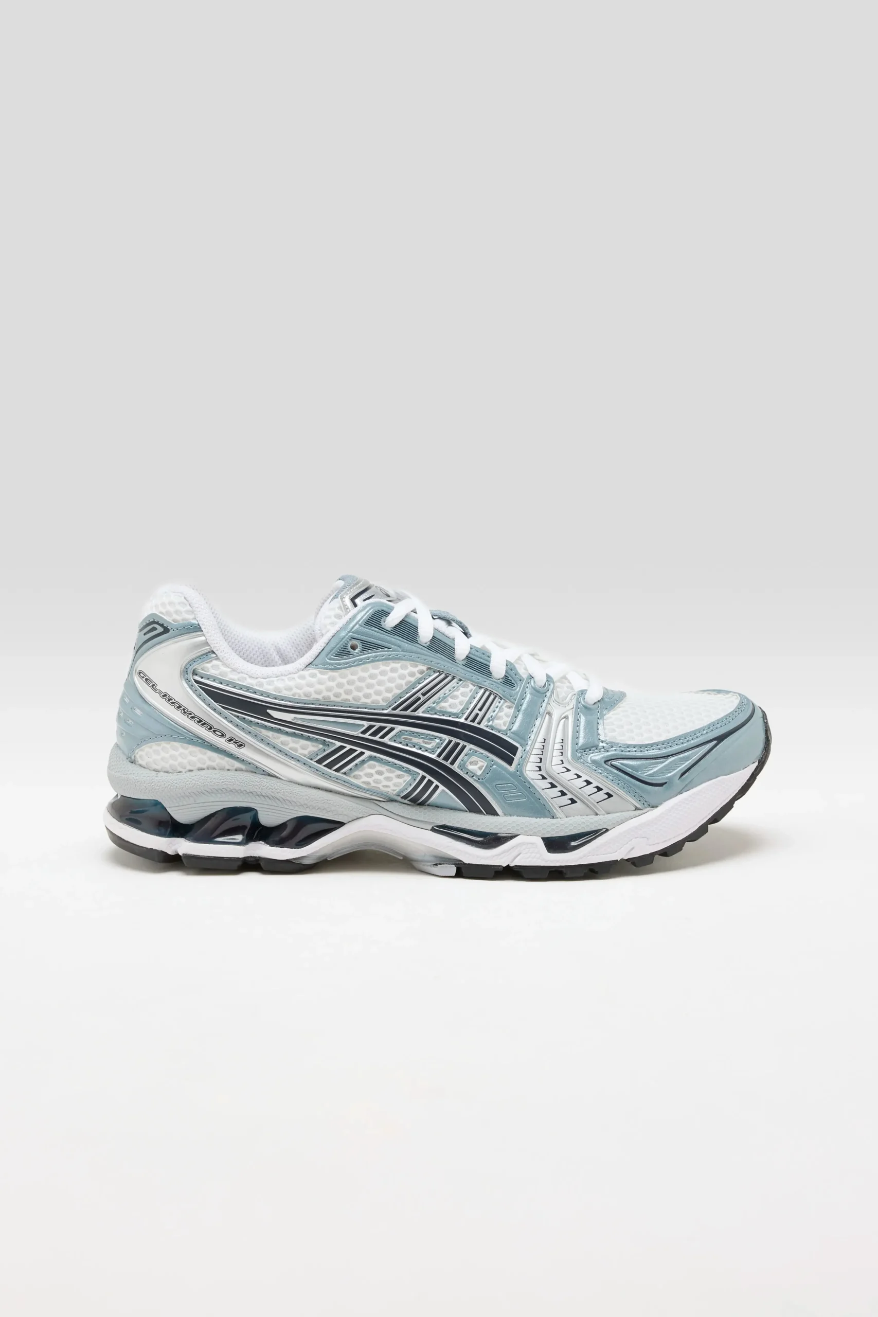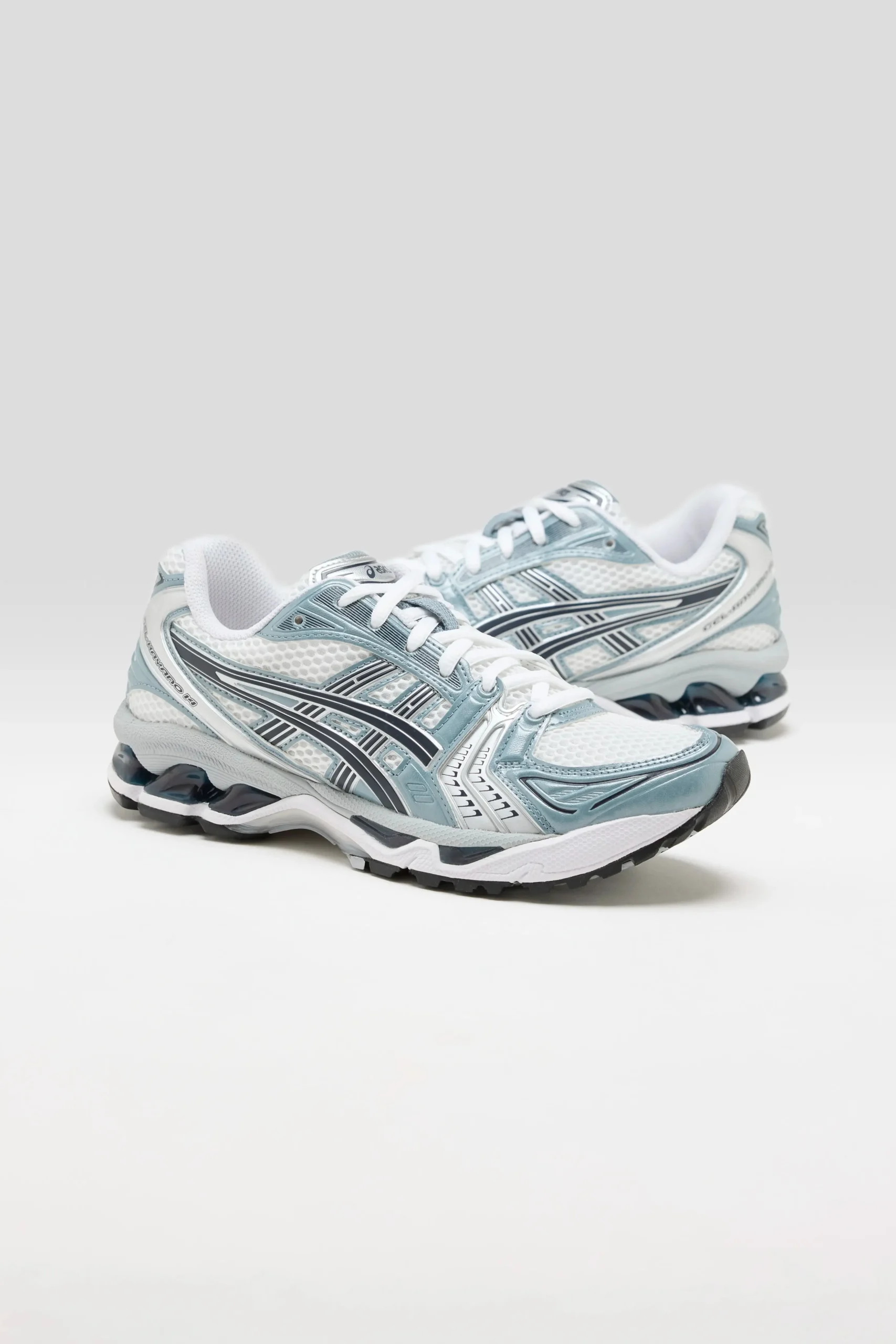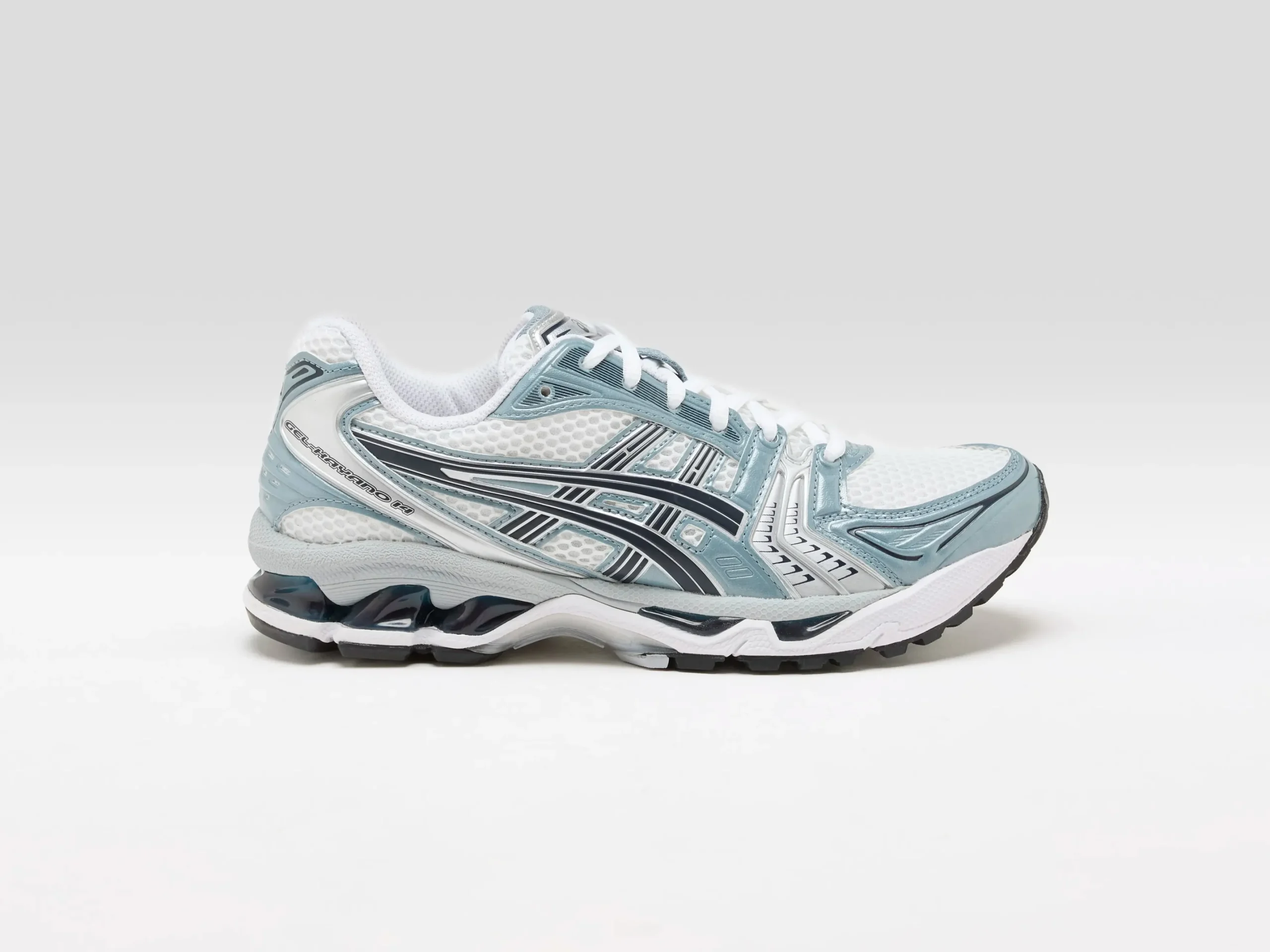 The Asics Gel-Kayano 14 sportstyle sneakers feature an open-mesh upper with leather overlays and a gel technology sole for impact absorption.