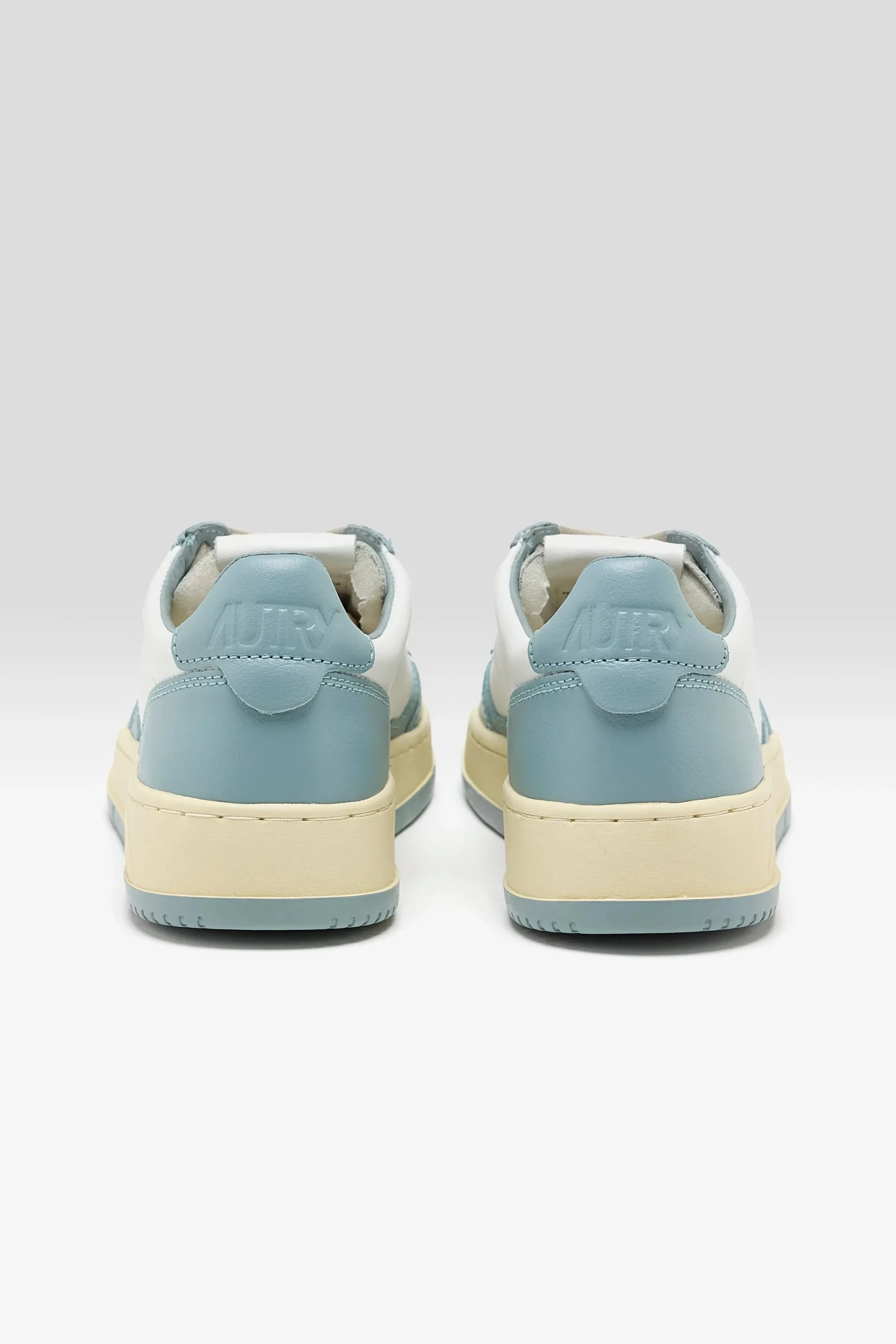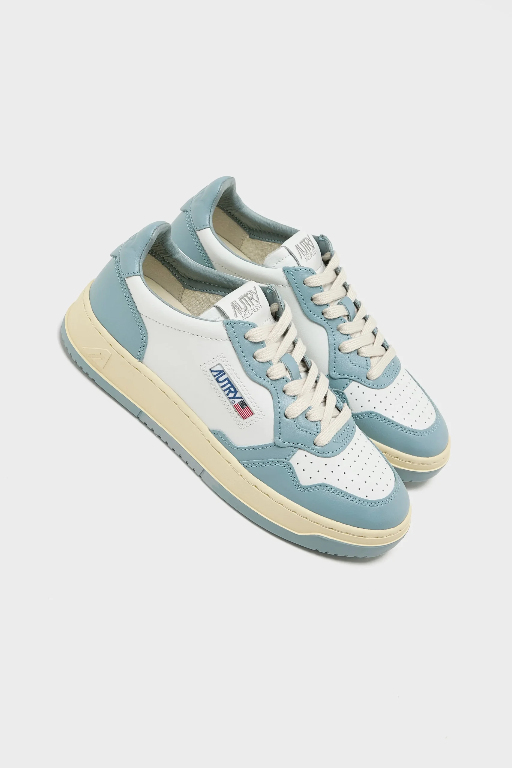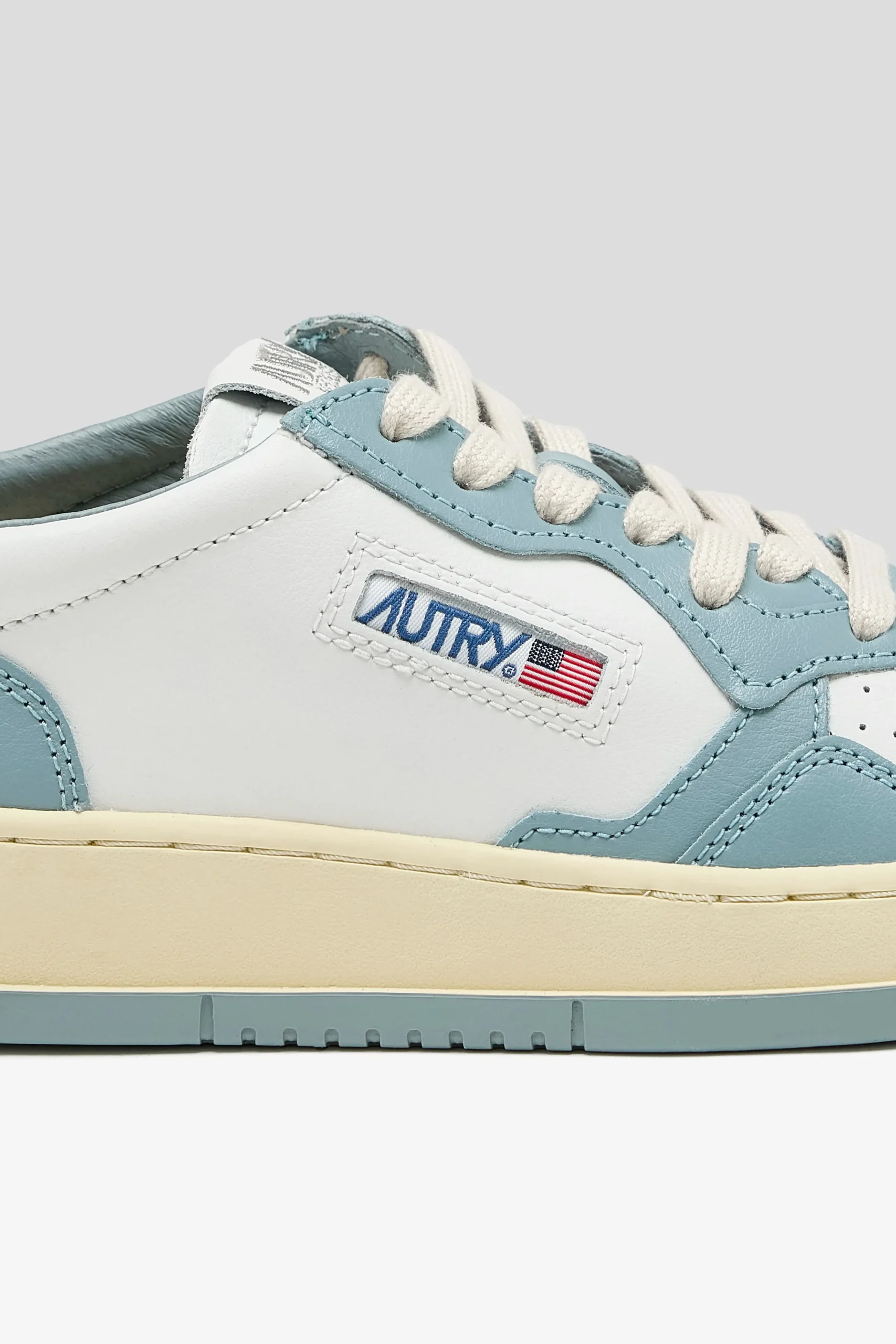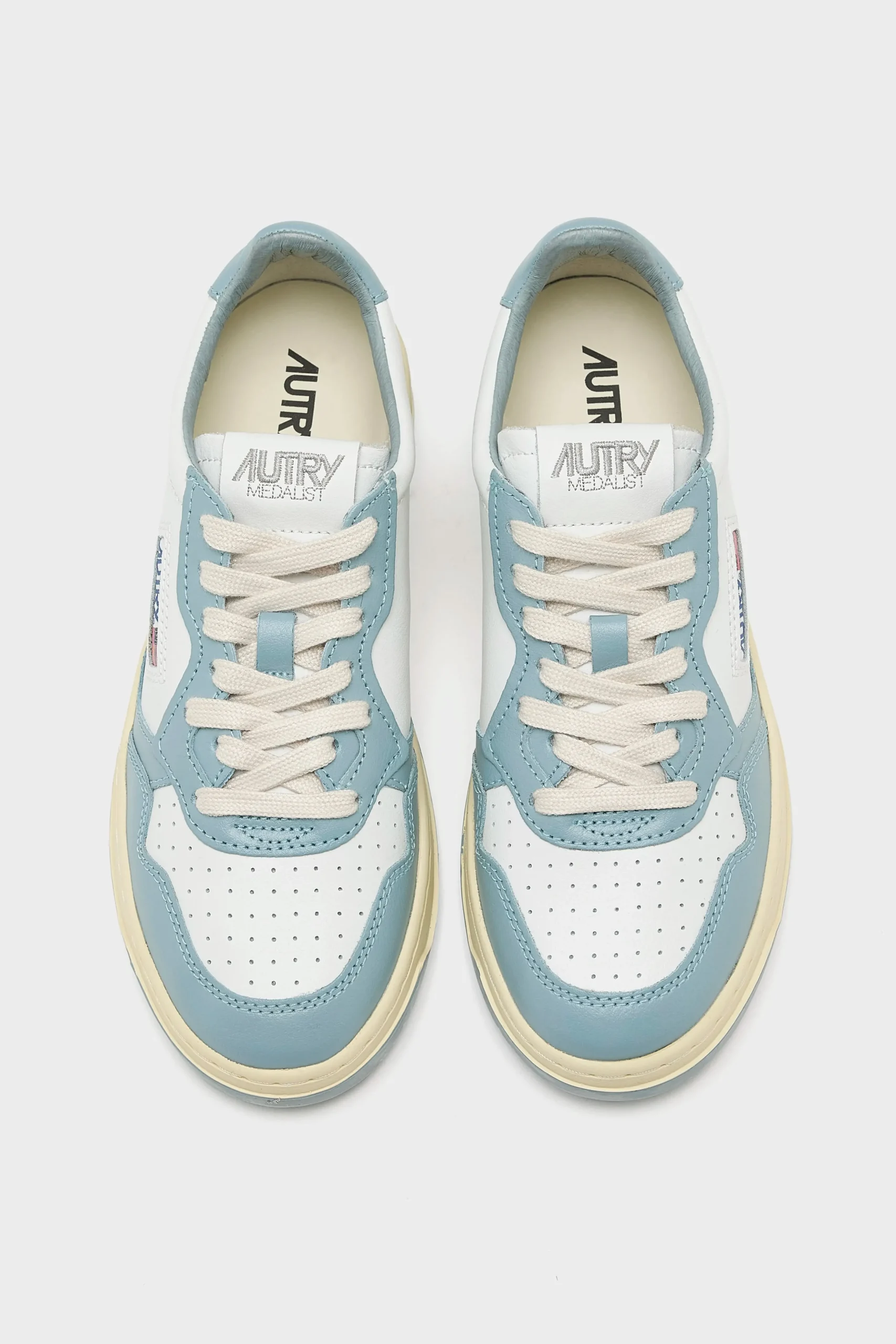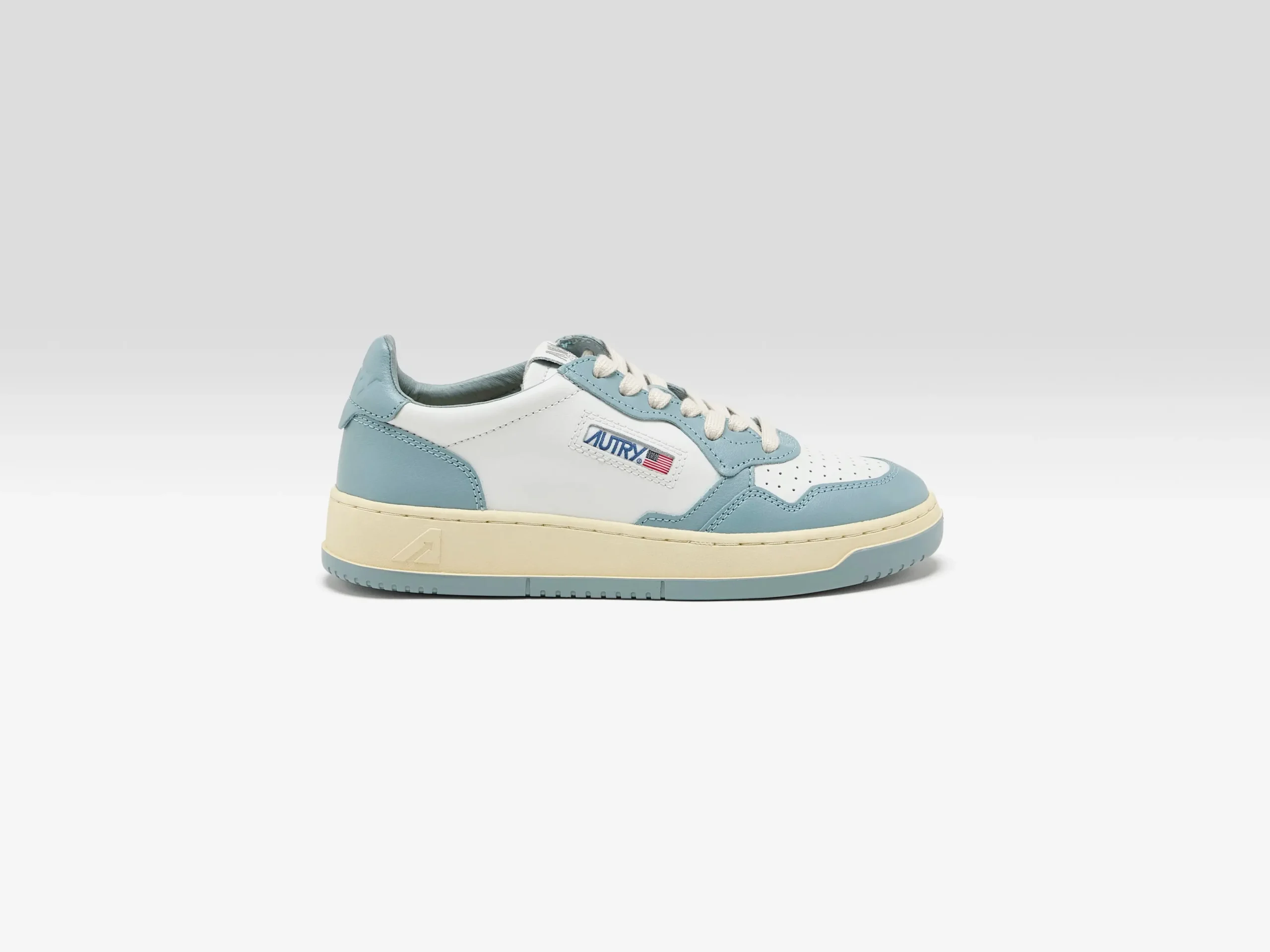 The Autry Medalist Low sneakers feature a silver blue and white bi-colour leather upper with a pigskin leather lining and padded ankle collar.