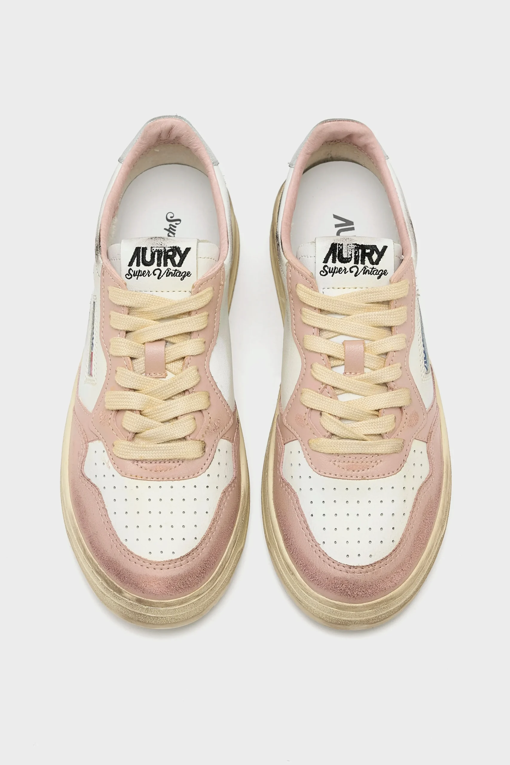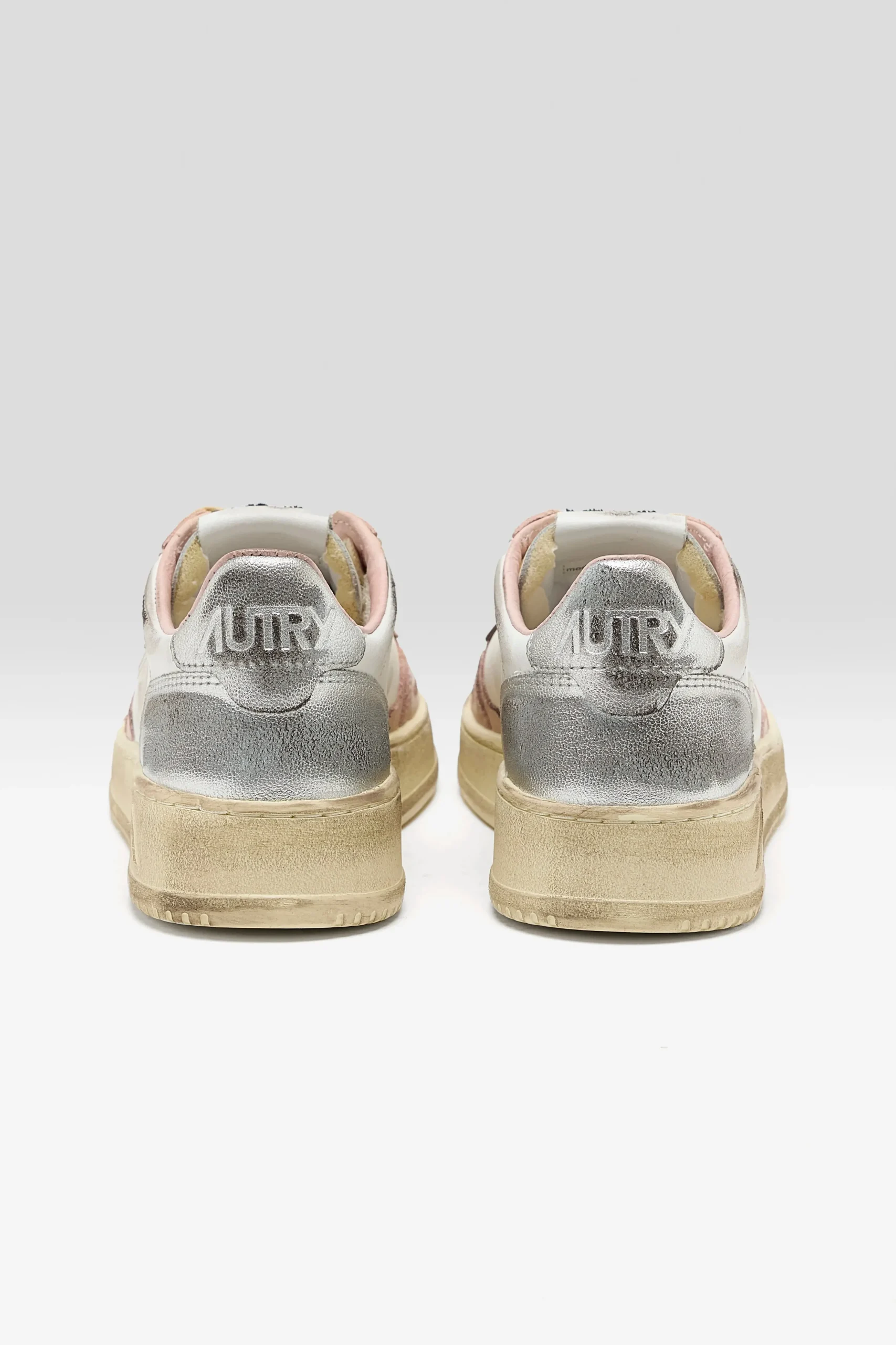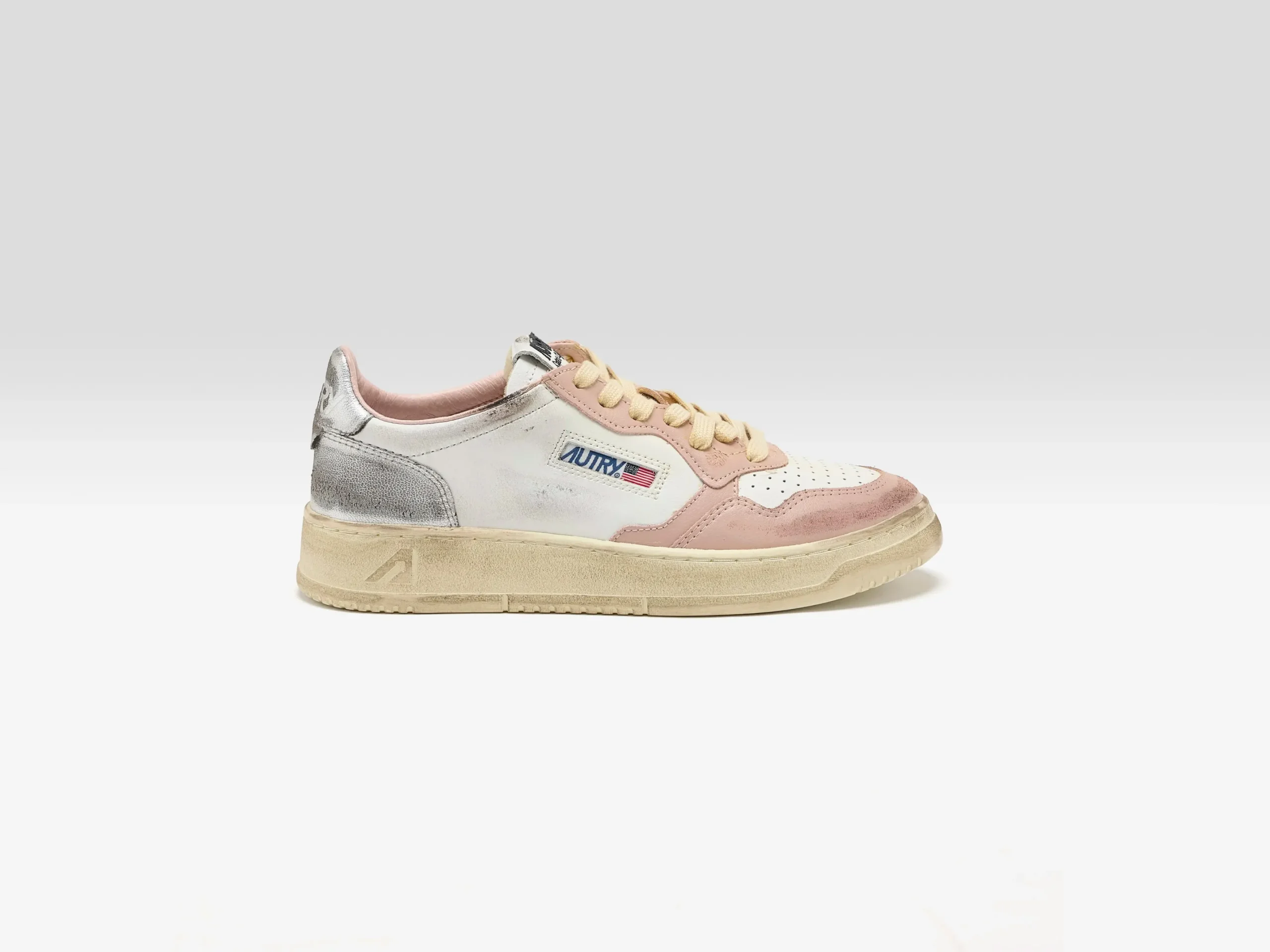 The Autry Medalist Low Super Vintage tennis-inspired sneakers feature a soft leather upper enhanced by artisanal treatments, creating a used, irregular, and unique look.