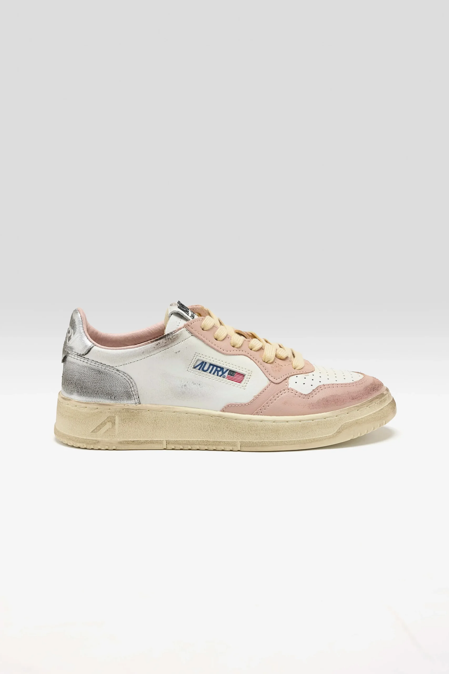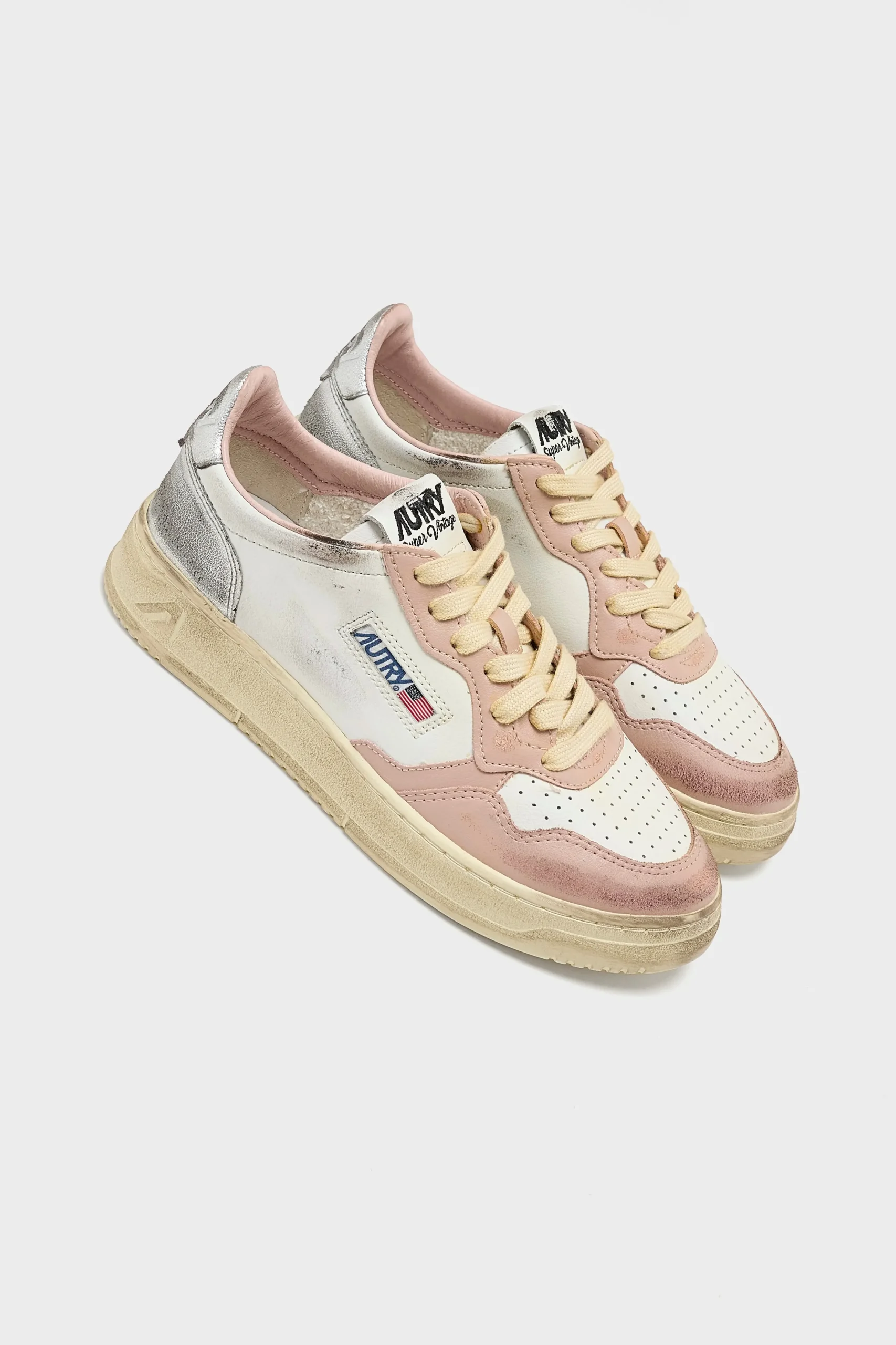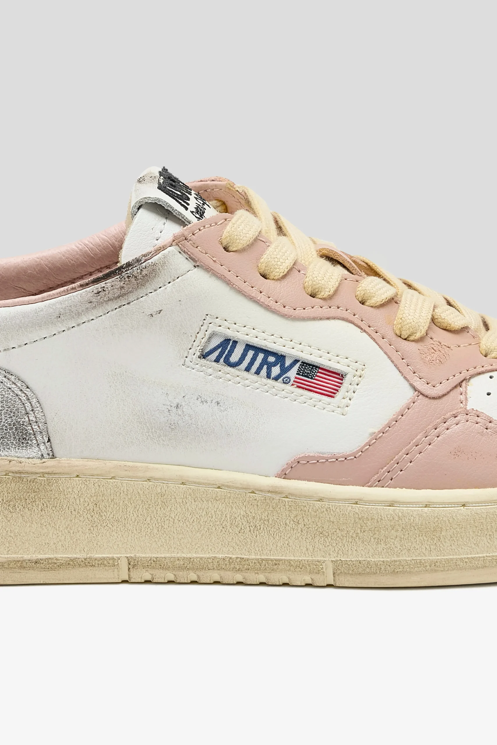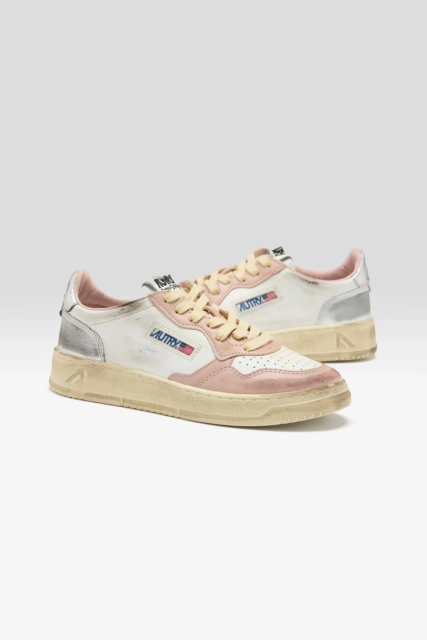 The Autry Medalist Low Super Vintage tennis-inspired sneakers feature a soft leather upper enhanced by artisanal treatments, creating a used, irregular, and unique look.