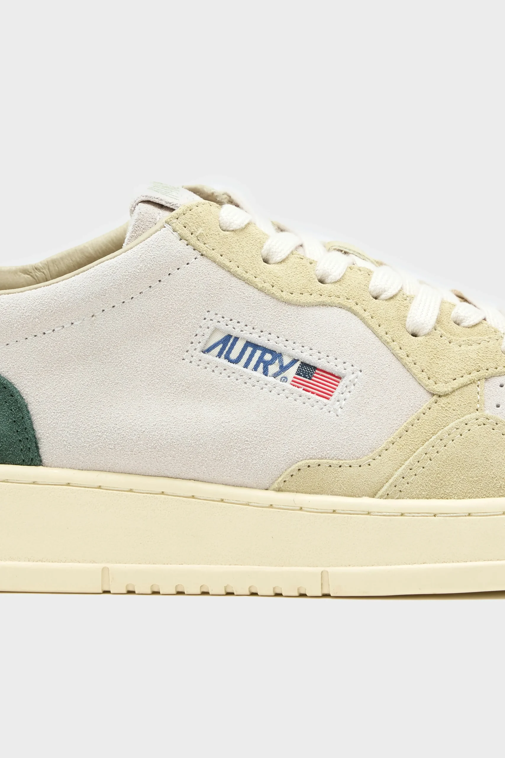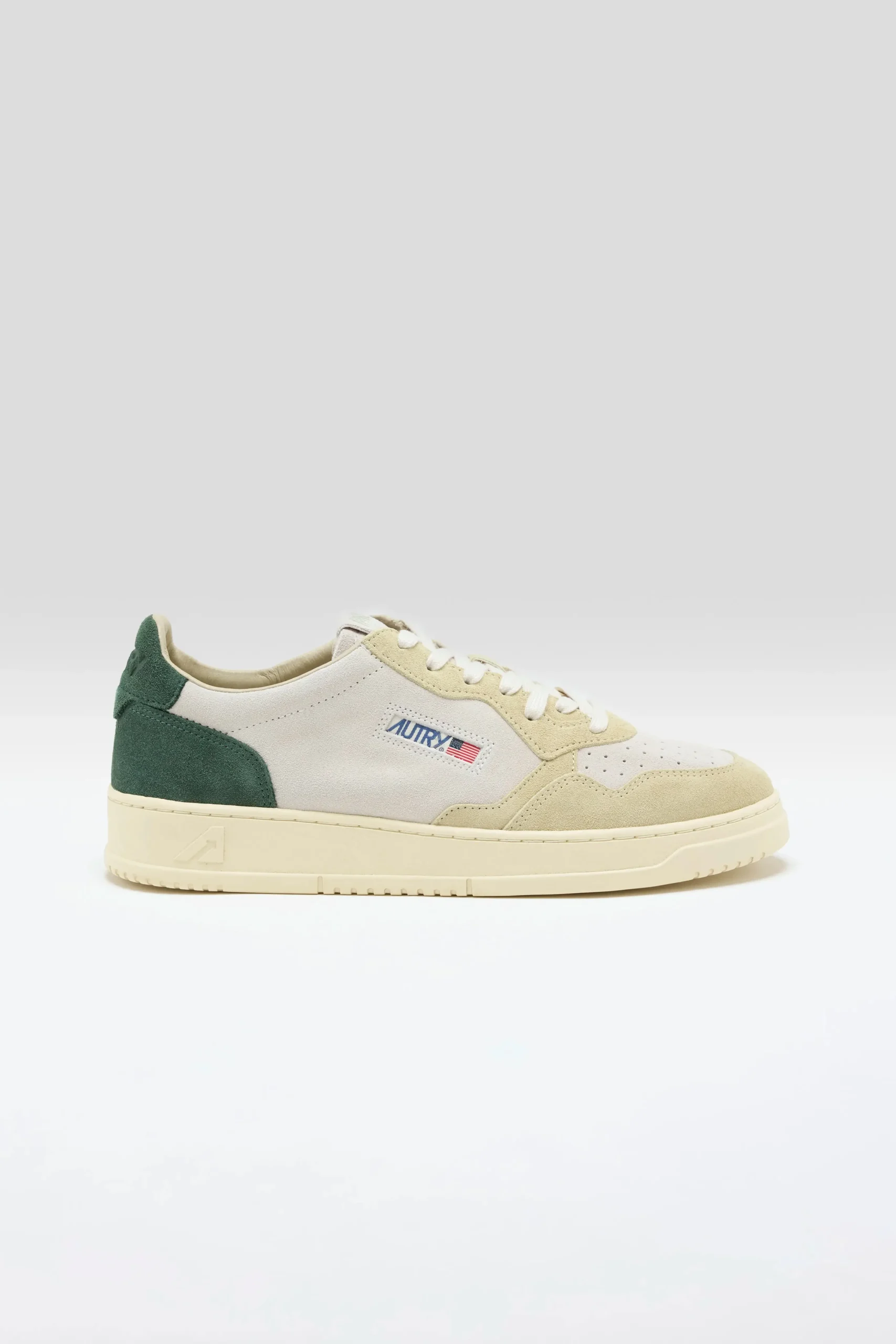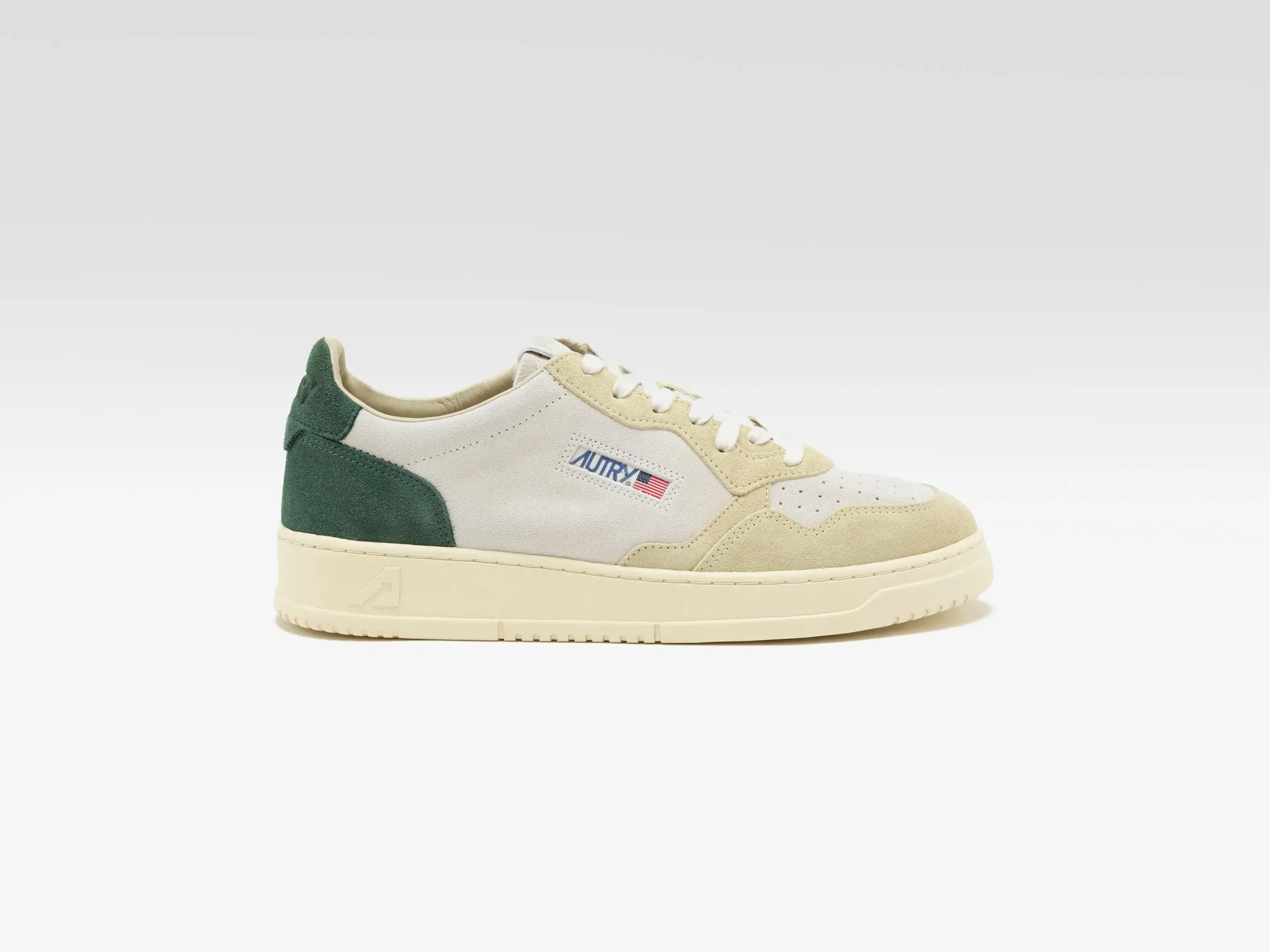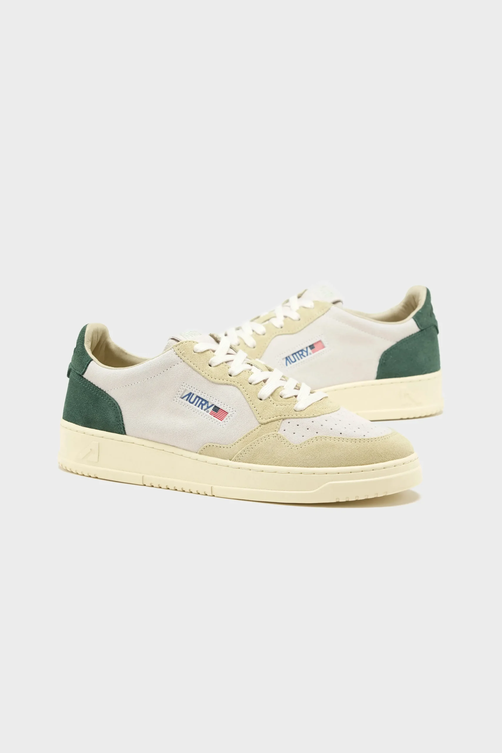 The Autry Medalist Low sneaker features a soft colour block suede with a micro-perforated toe box.