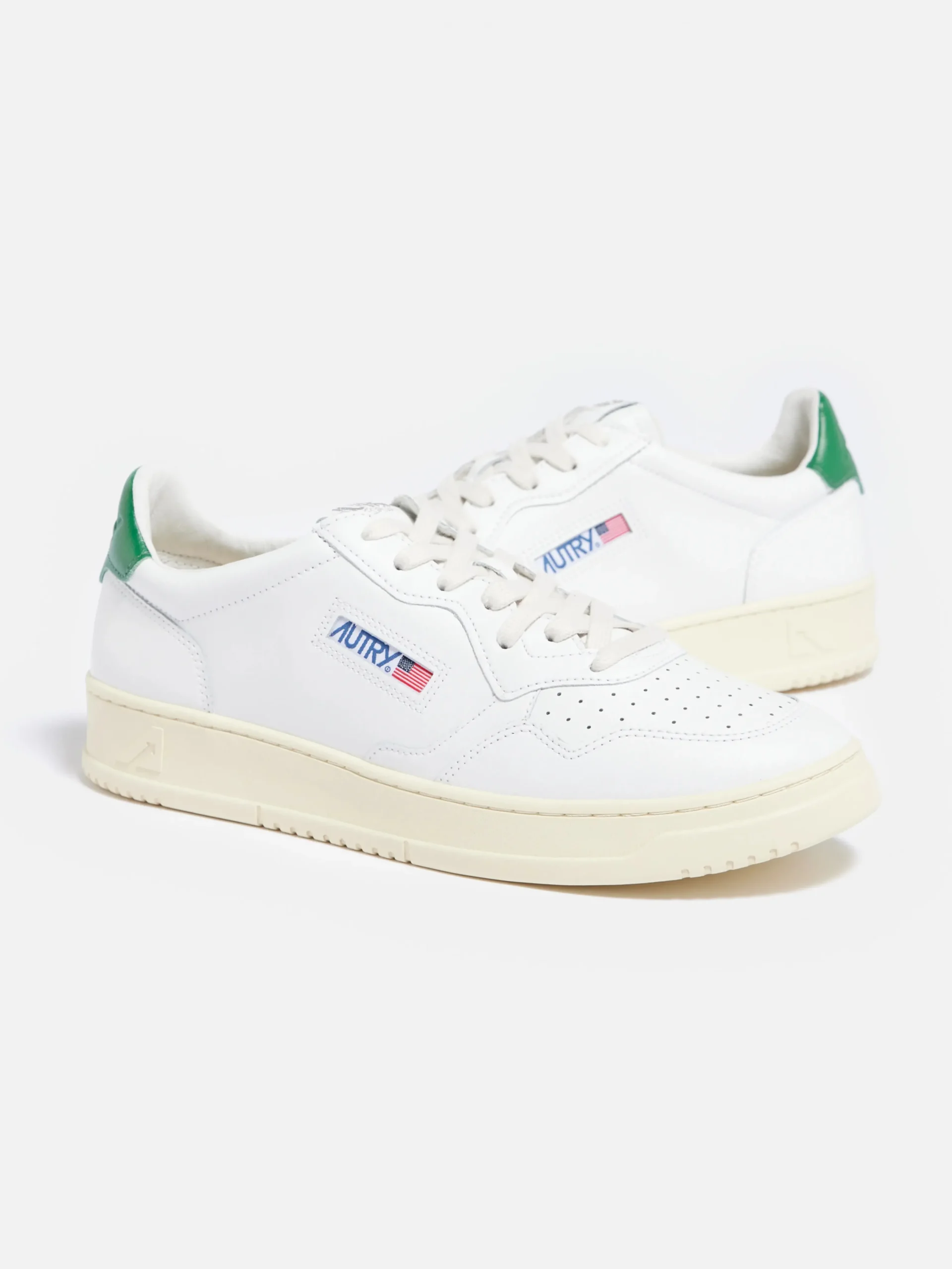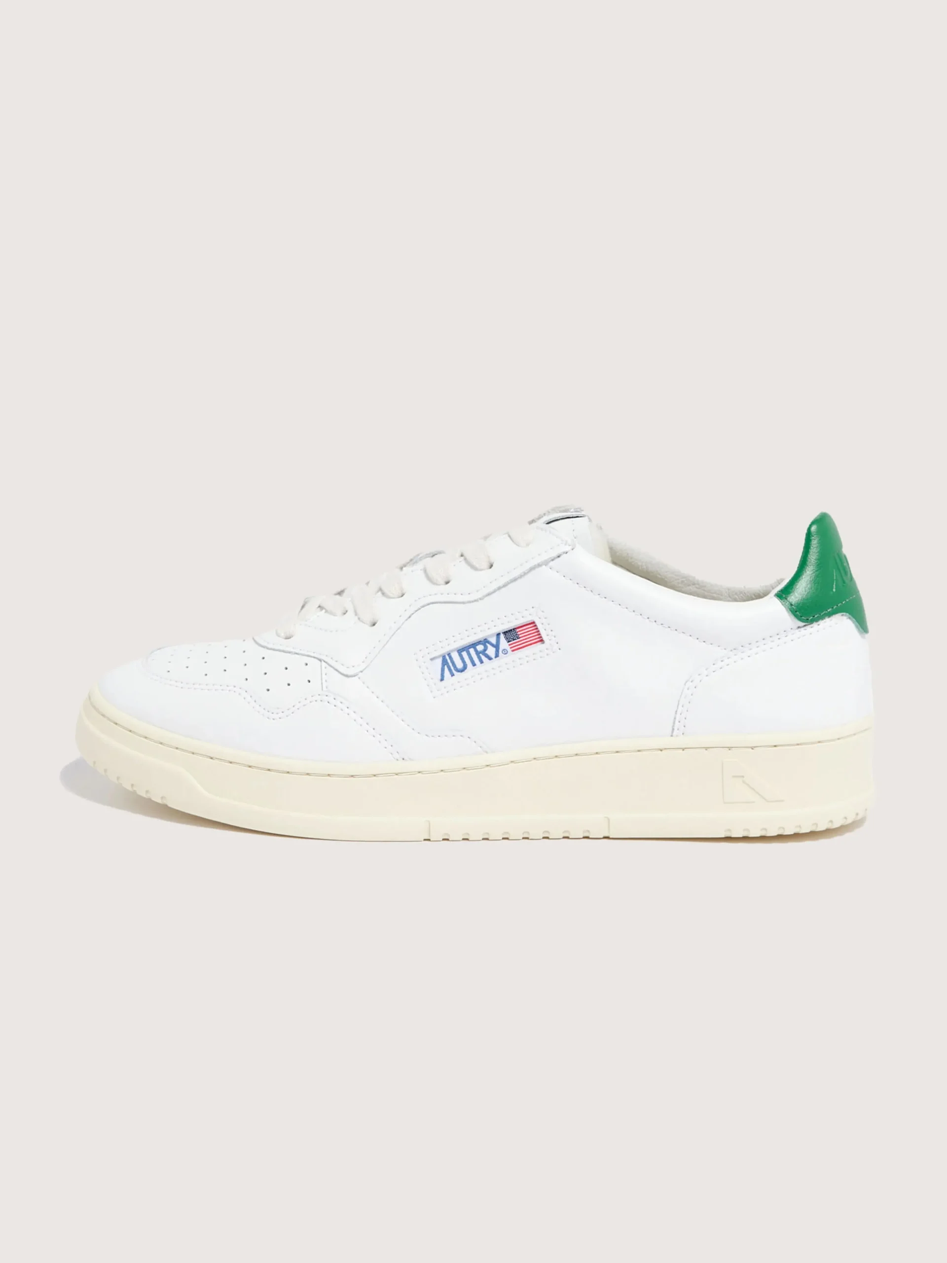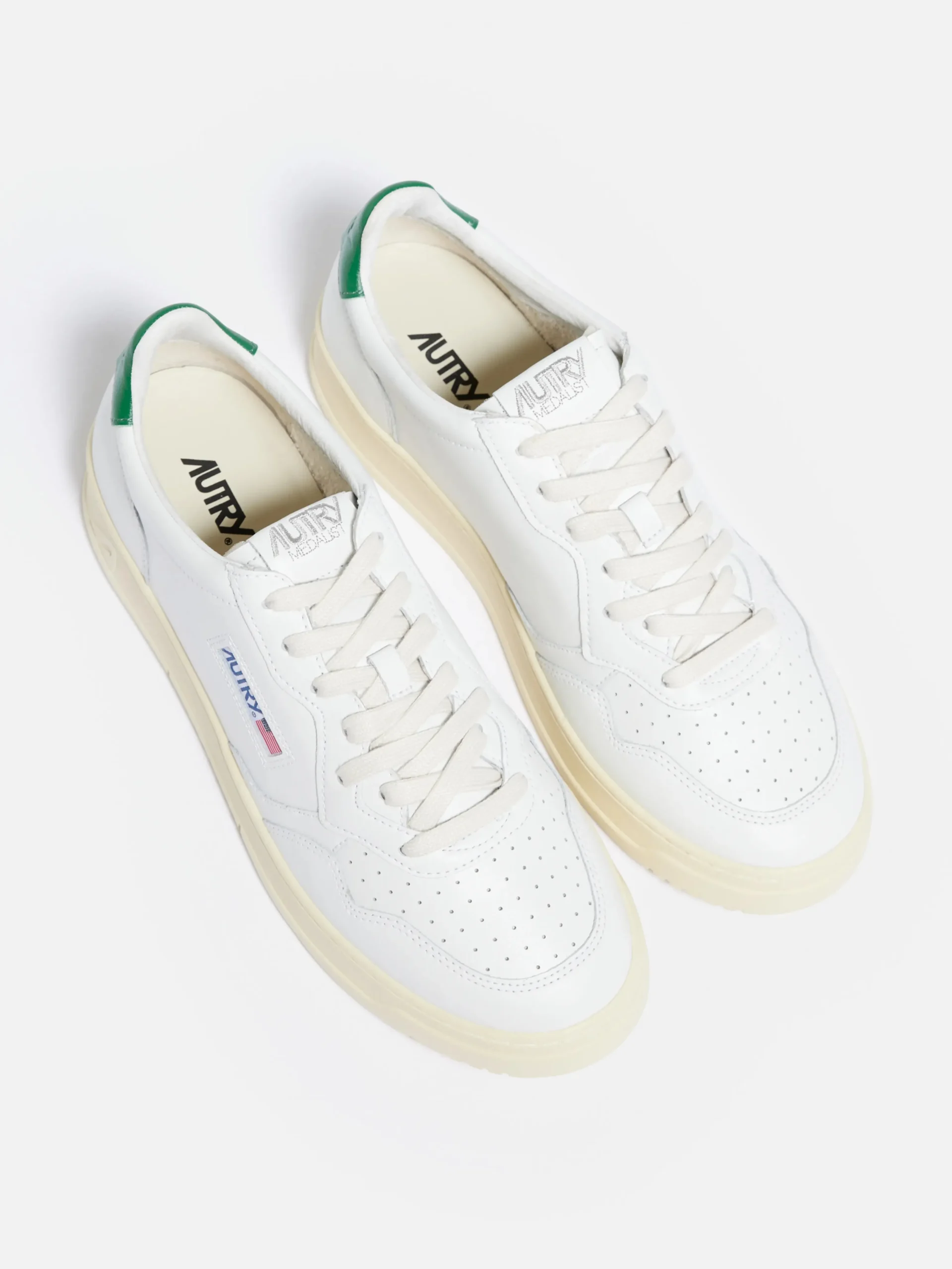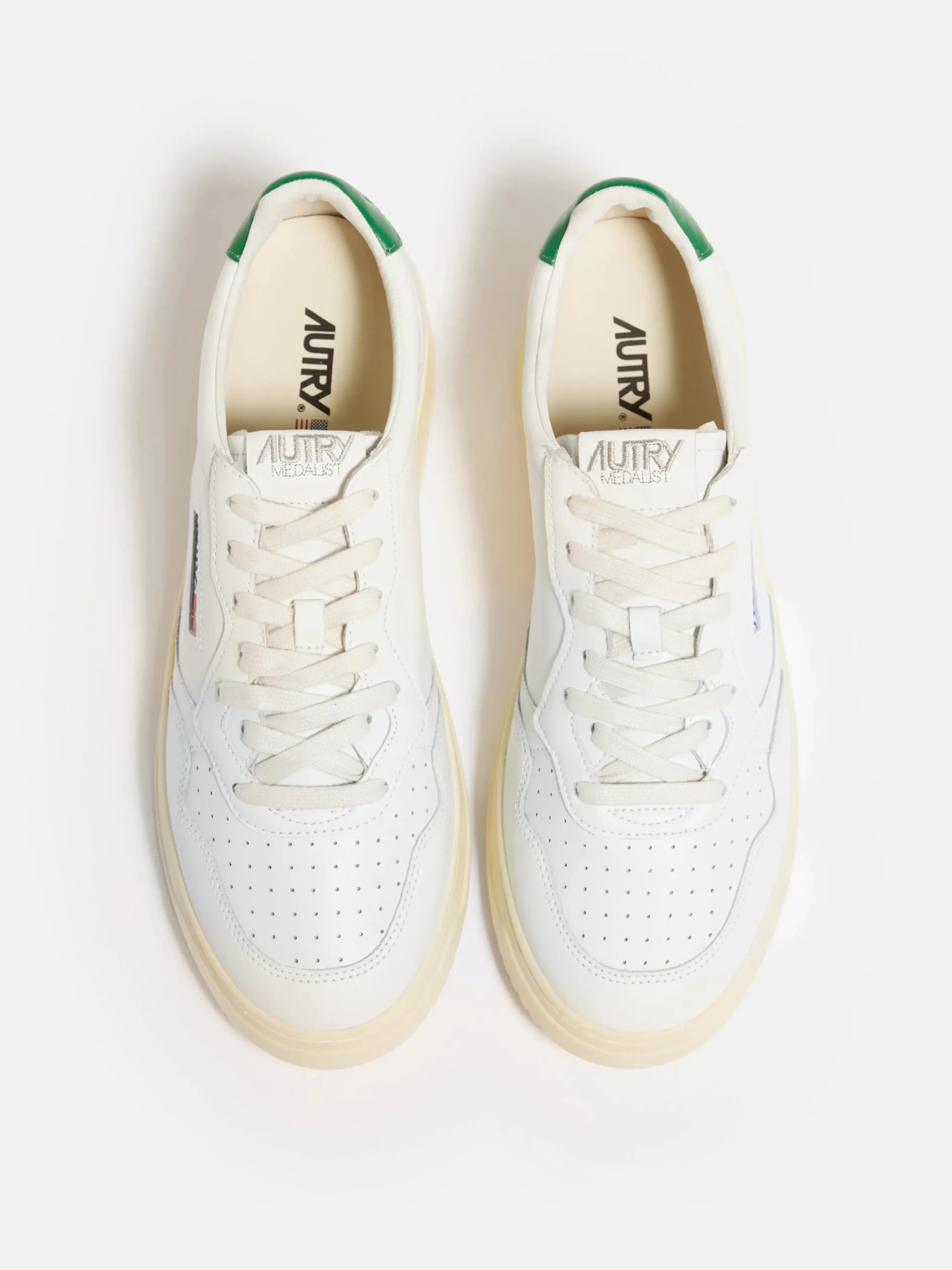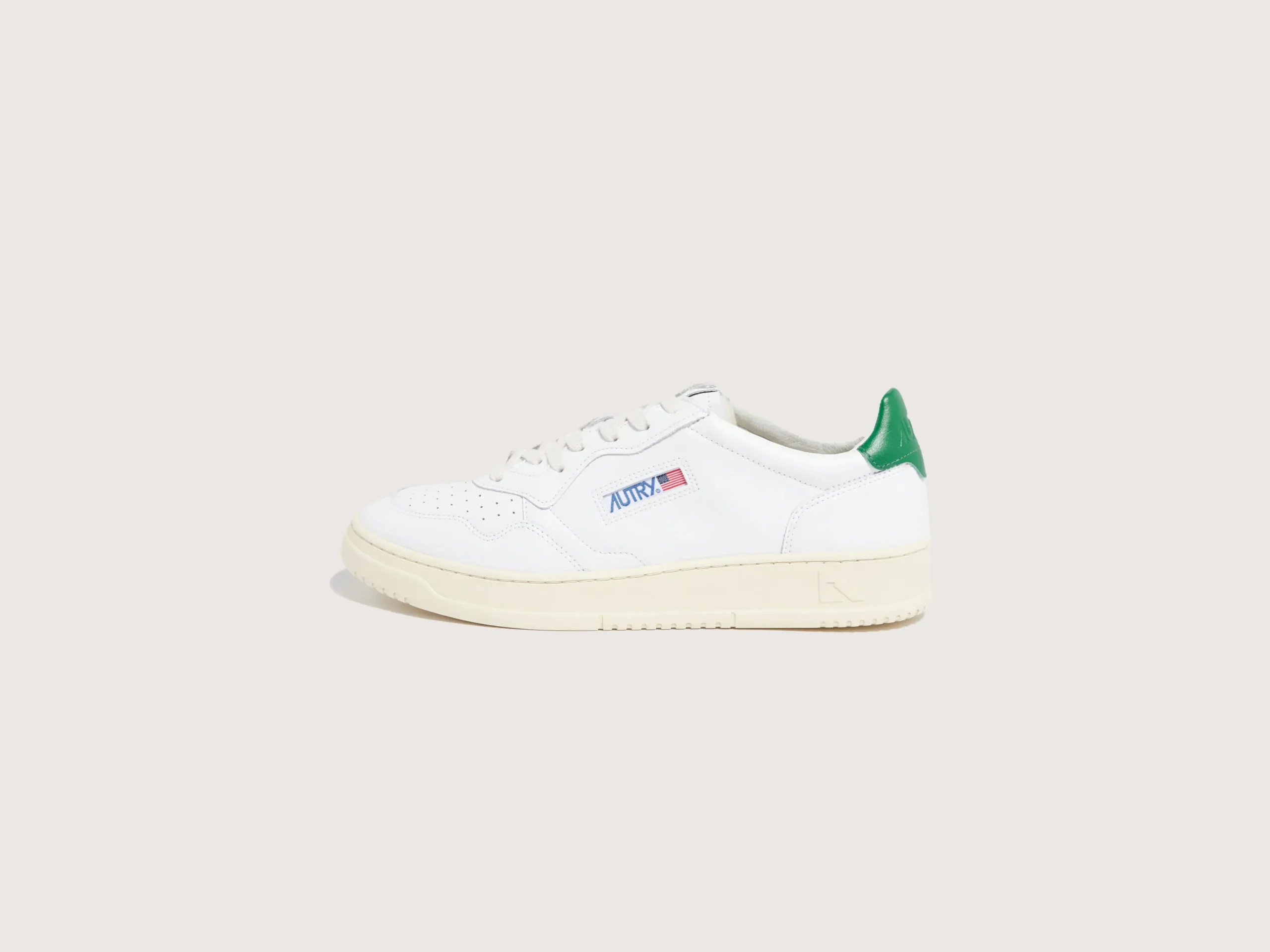 De Autry Medalist Low sneakers hebben een natuurlijk, soepel bovenwerk van wit leder met een geperforeerde neus en een groen lederen hiellipje. Normale pasvormZoolhoogte: 2,5 – 3,5 cmStijl: AULM-LL20Kleur: Wit en groen leer