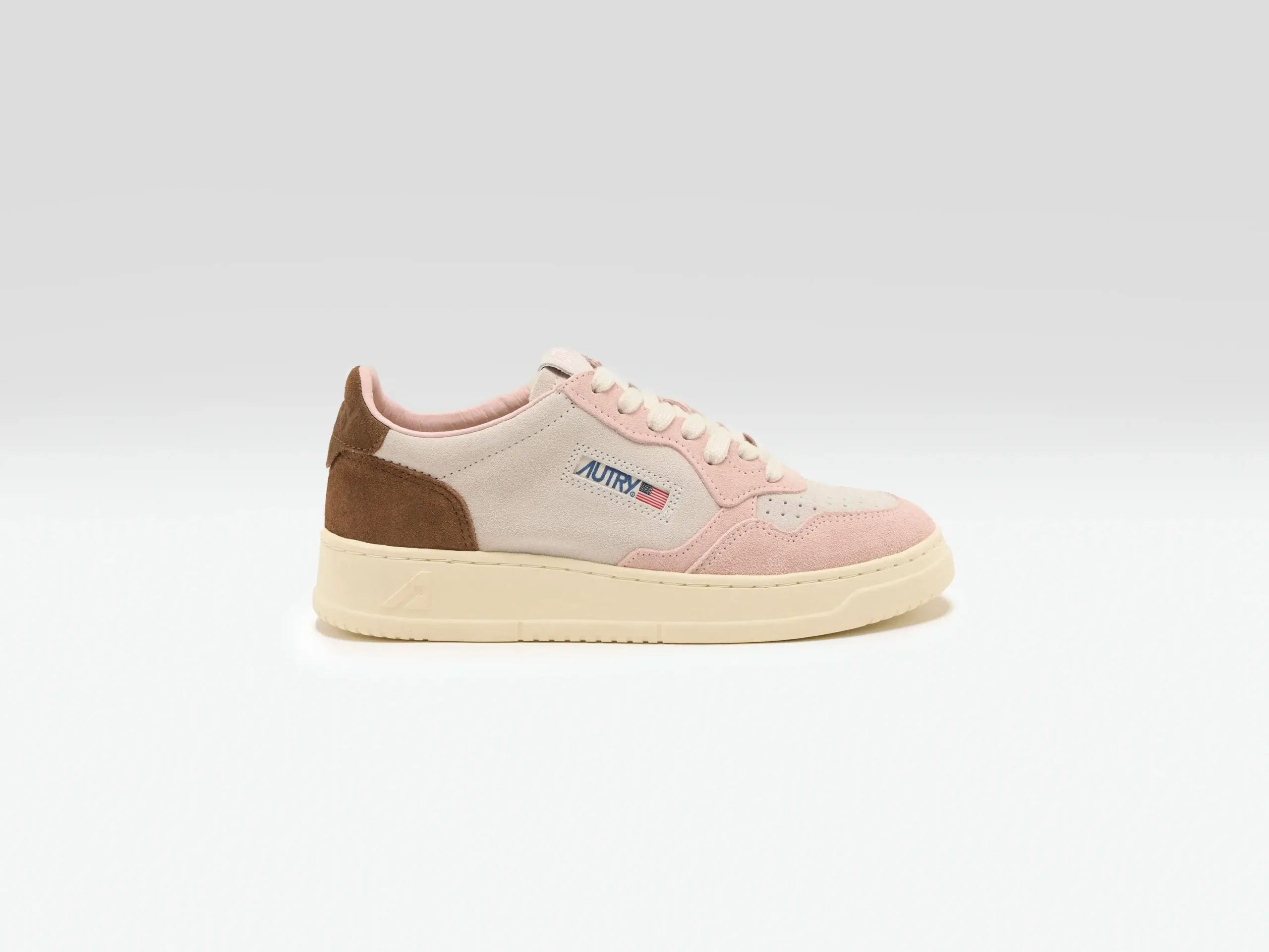 The Autry Low Medalist sneaker features a soft colour block suede with a micro-perforated toe box.