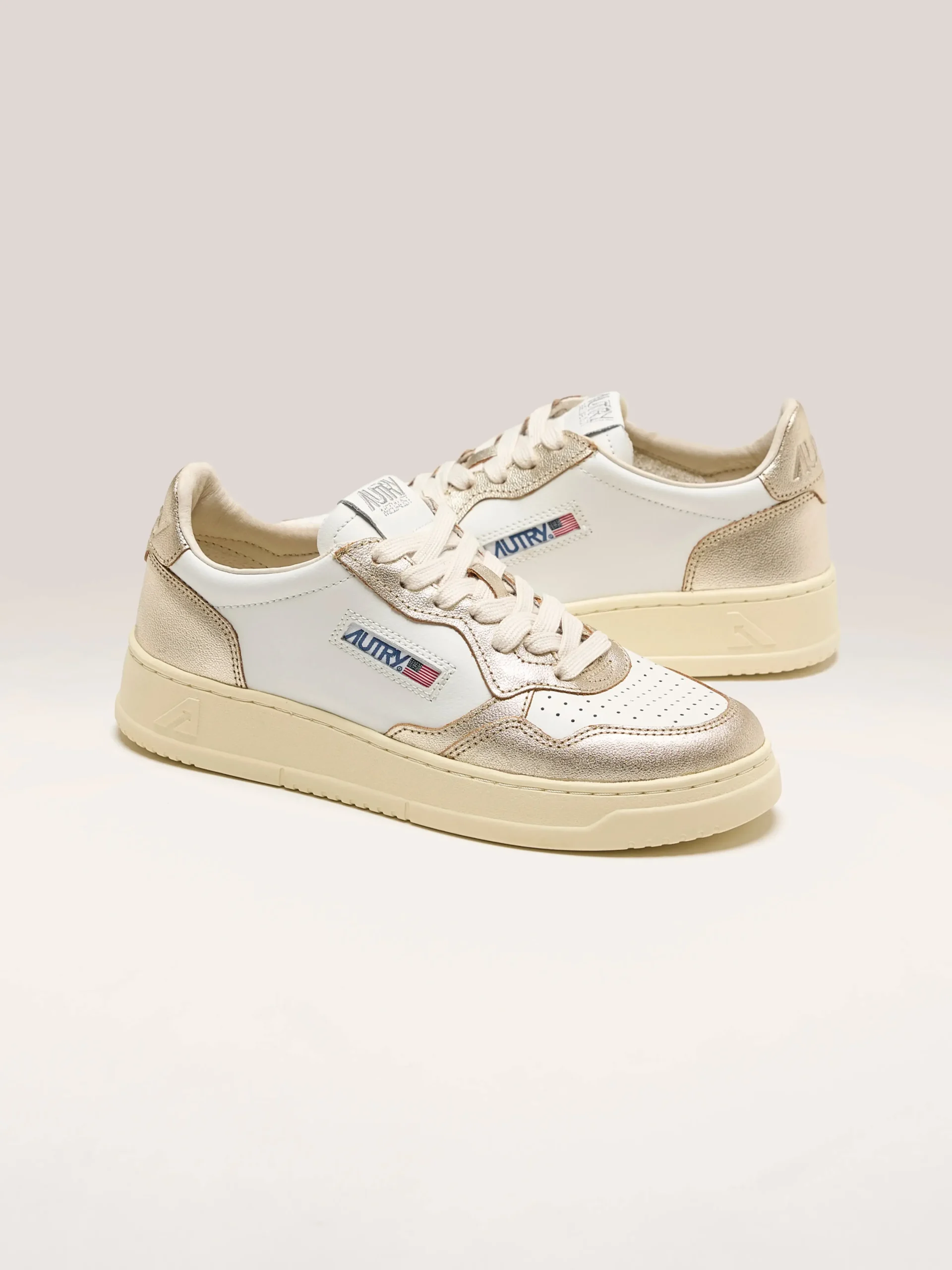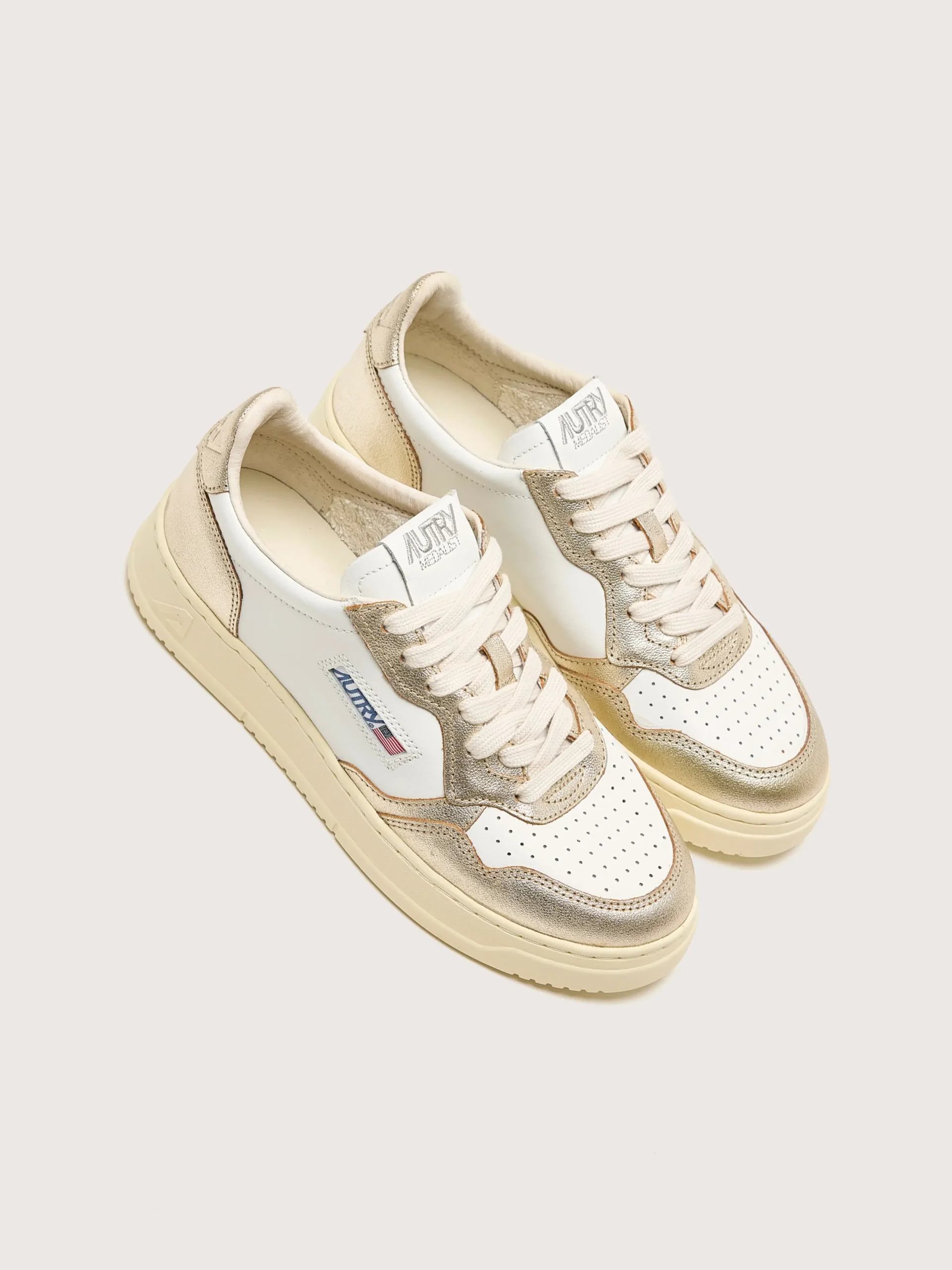 De Autry Medalist Low Bicolor sneakers hebben een wit en platina soepel lederen bovenwerk met een geperforeerde neus.Normale pasvormZoolhoogte: 2,5-3,5 cmStijl: AULW-WB16Kleur: White and Platinum leather