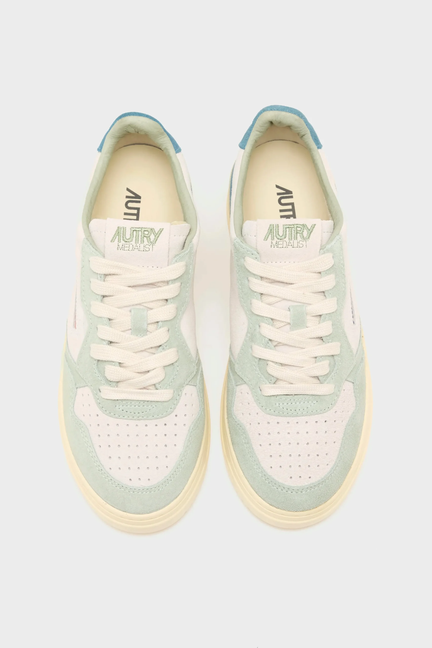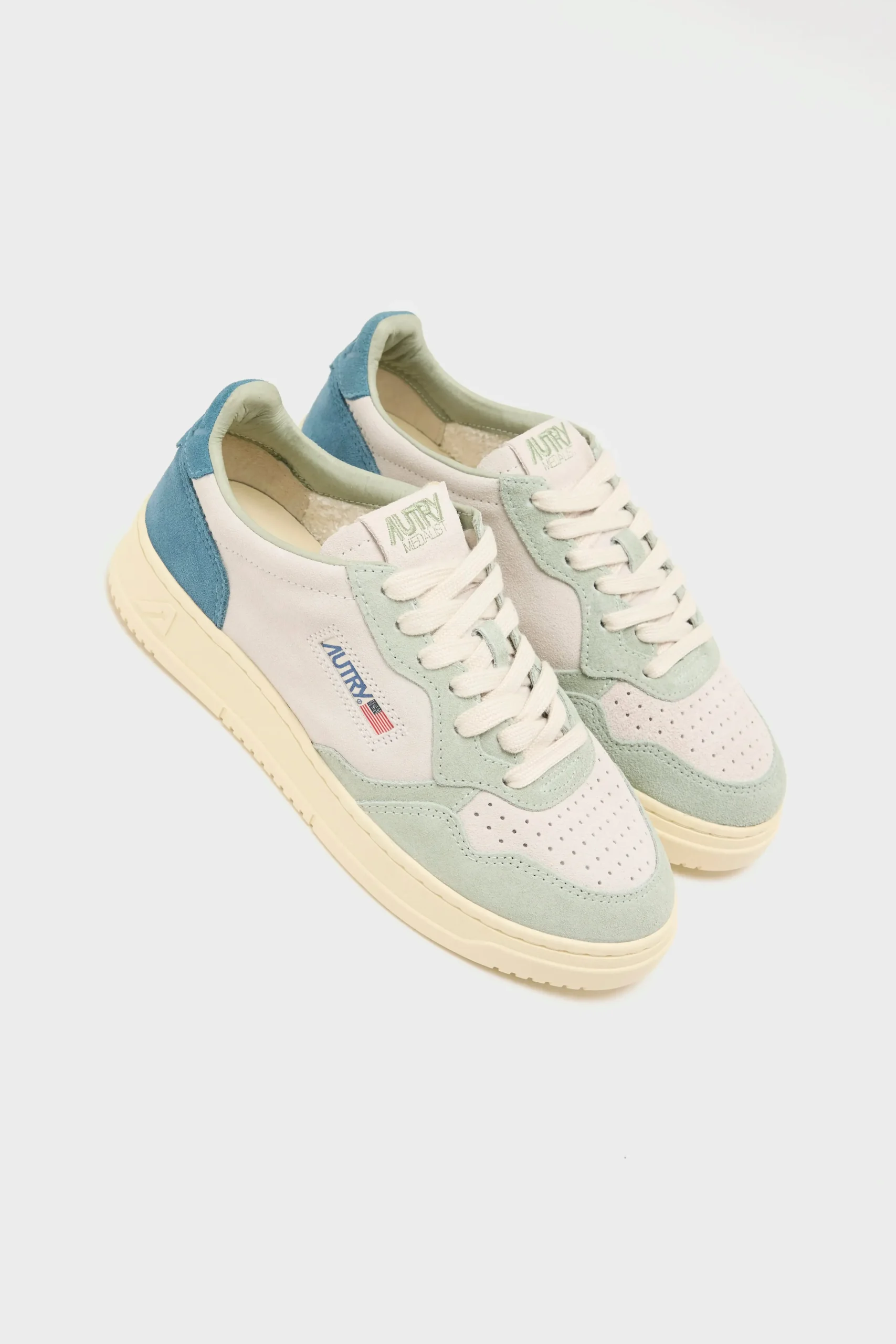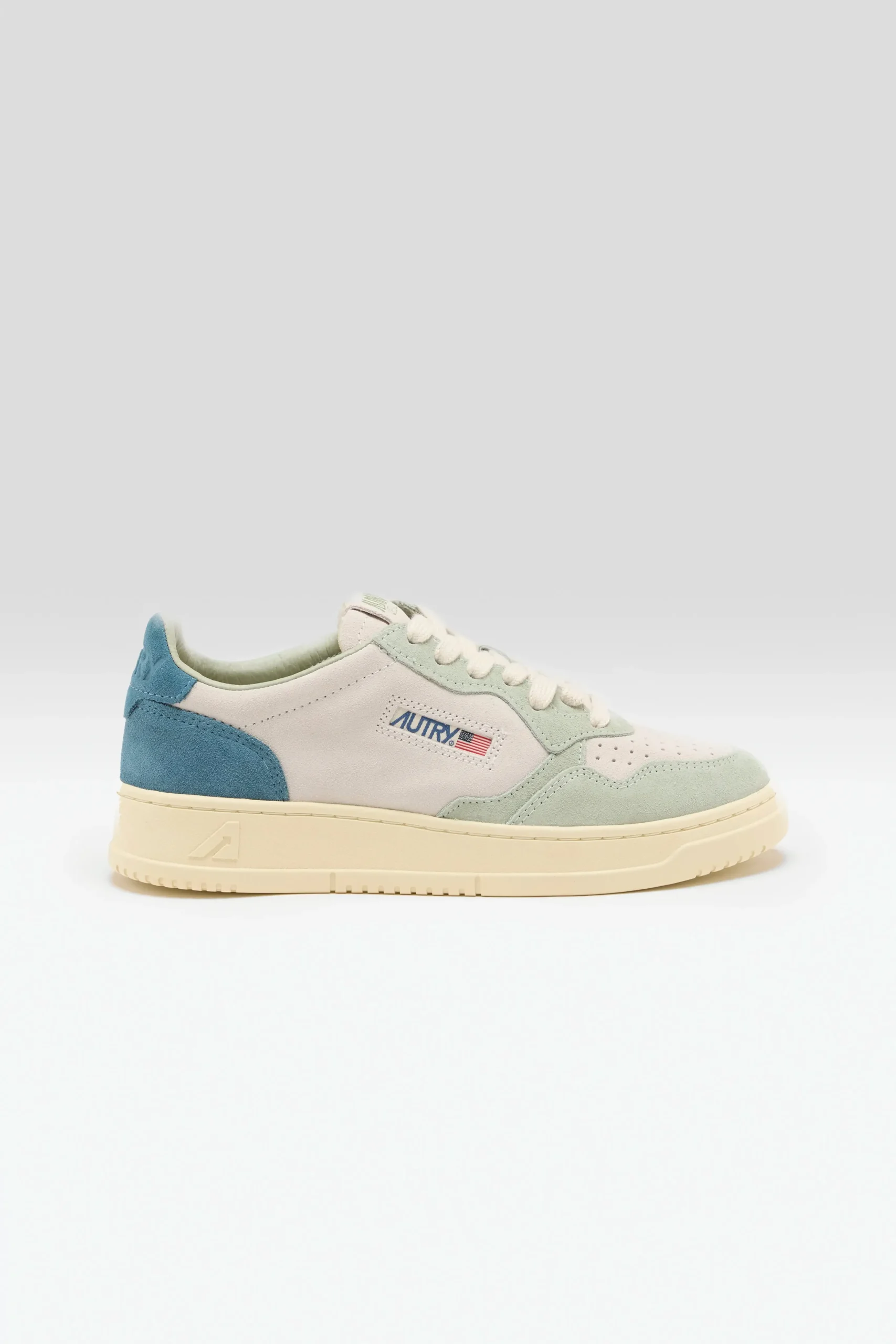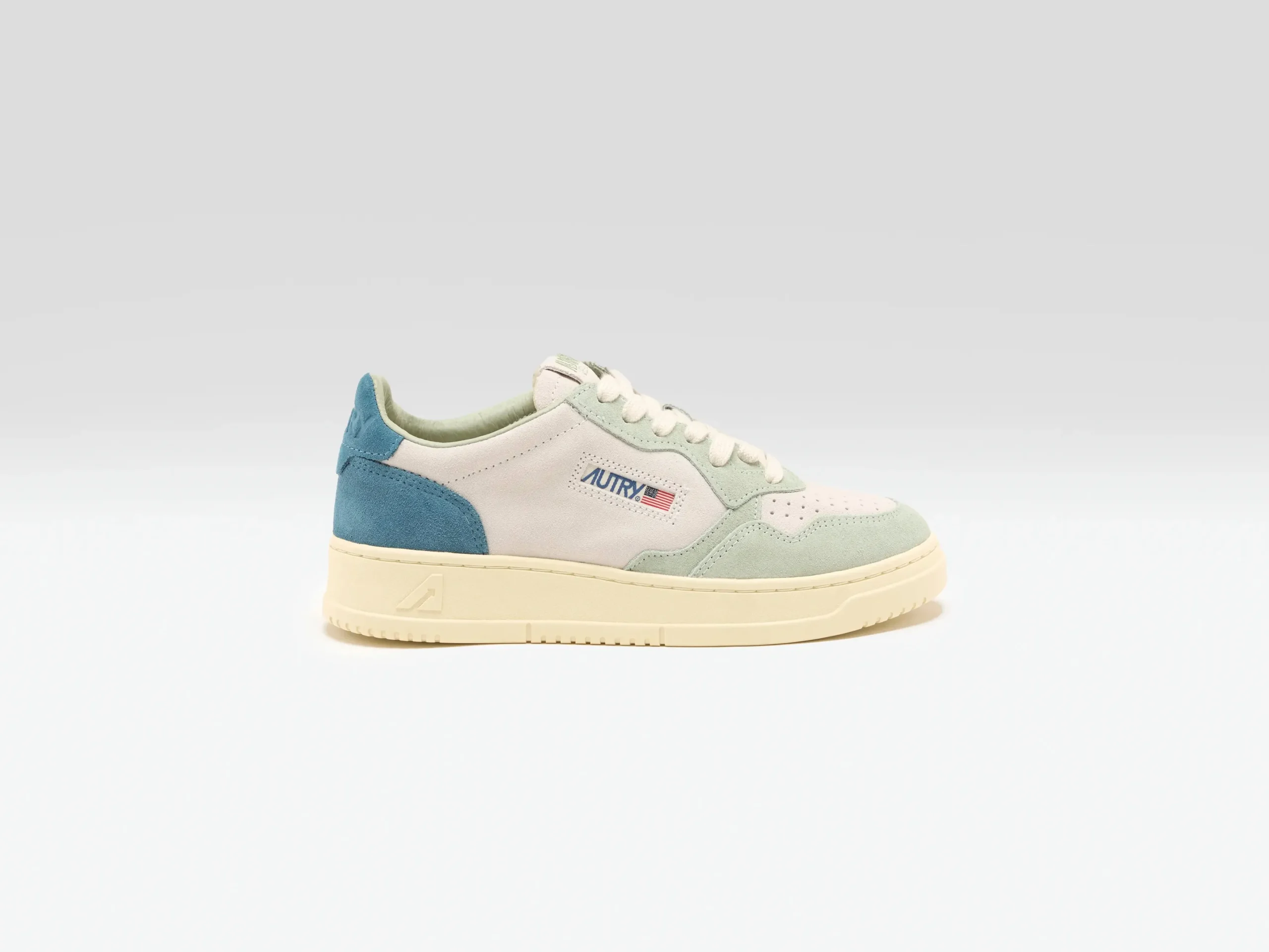 The Autry Medalist Low sneaker features a soft colour block suede with a micro-perforated toe box.