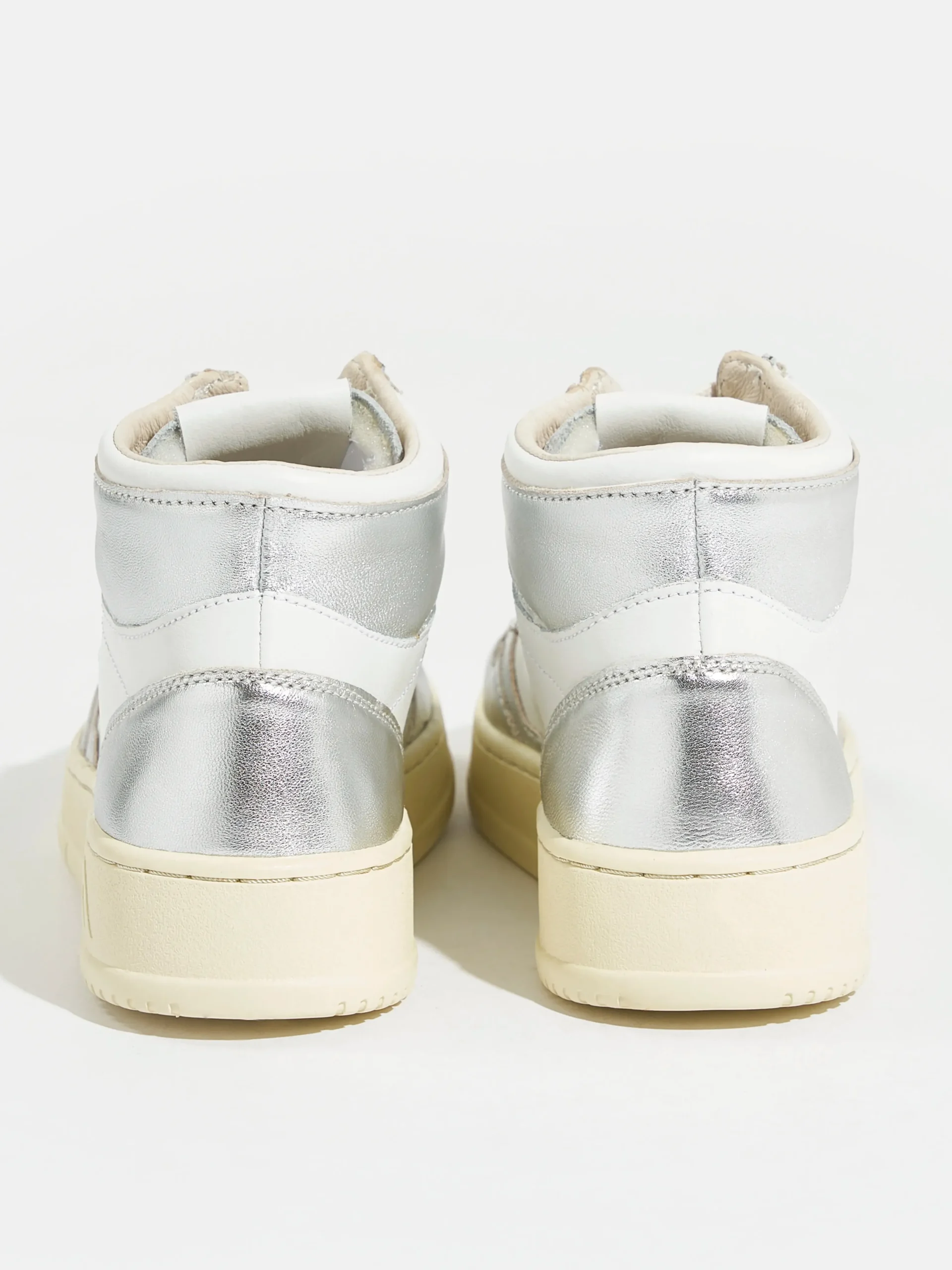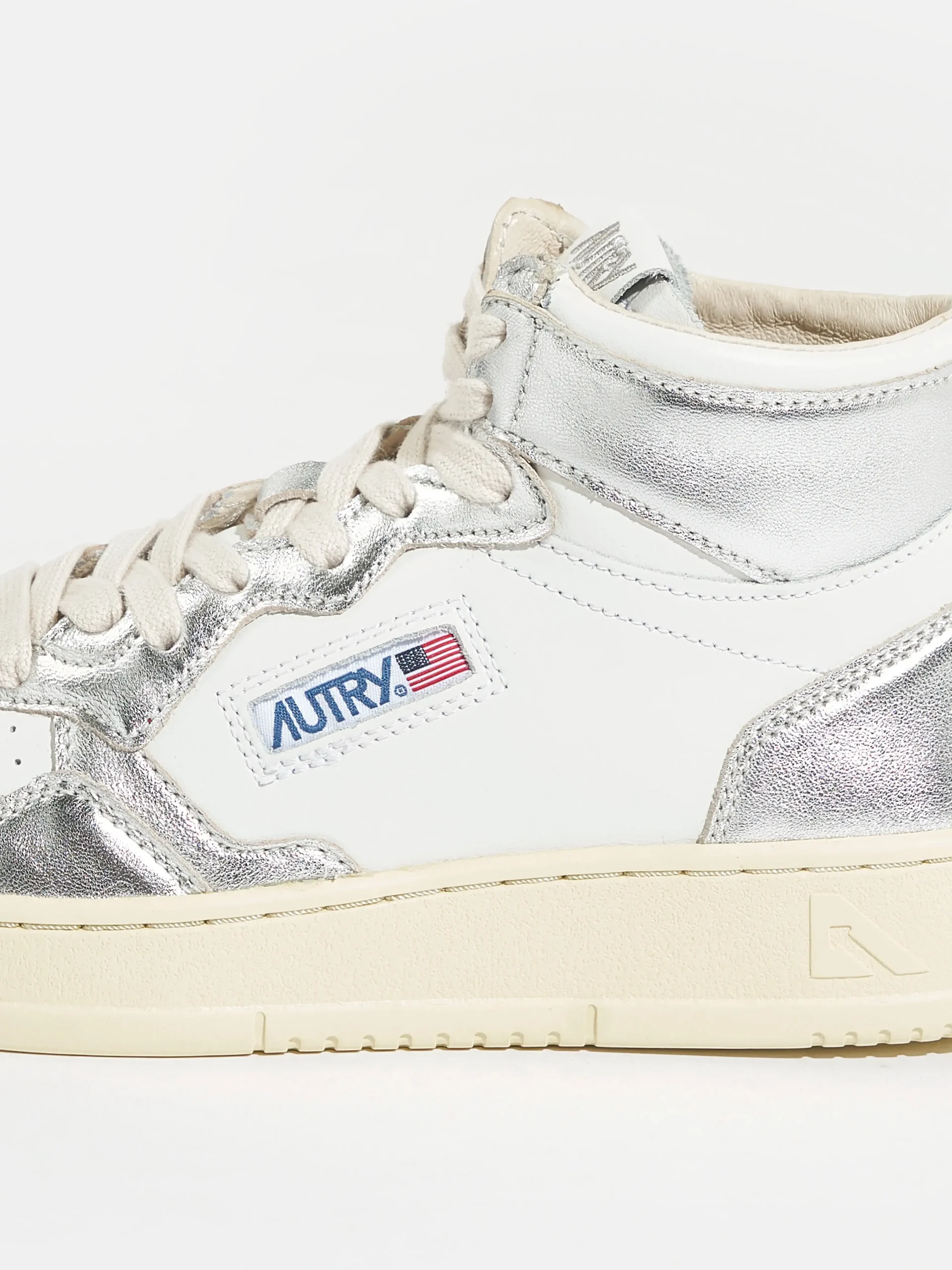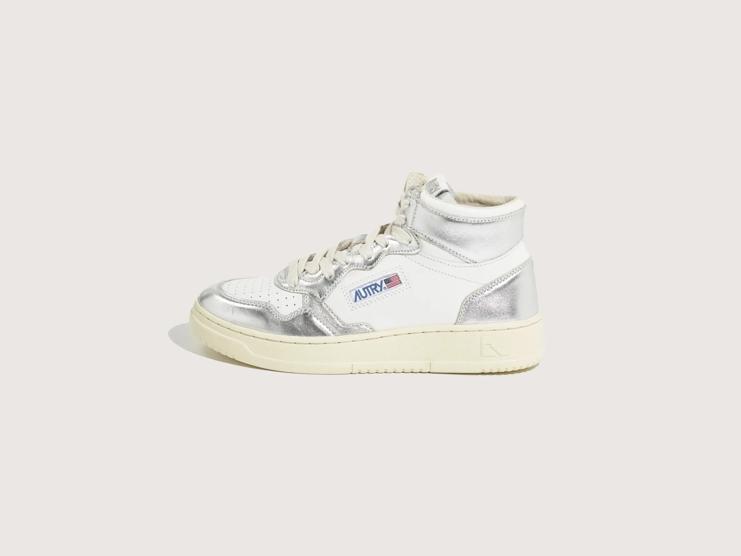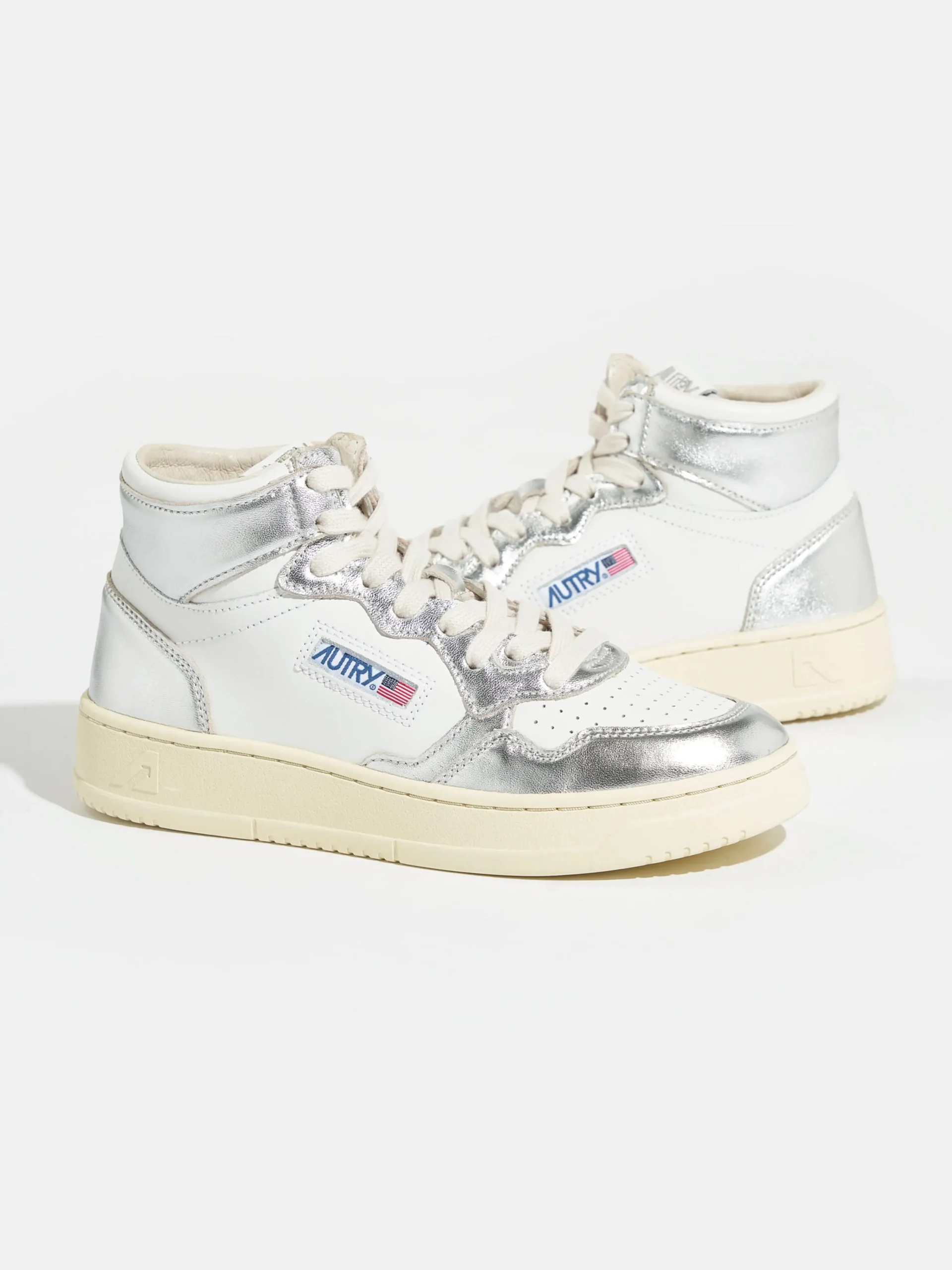 De Autry Medalist Mid bicolor mid-top sneakers hebben een bovenwerk van zilver en wit gelamineerd leder met een zool van natuurlijk rubber. Normale pasvormZoolhoogte: 2,5 – 3,5 cmStijl: AUMW-WB18Kleur: White and silver bicolor leather
