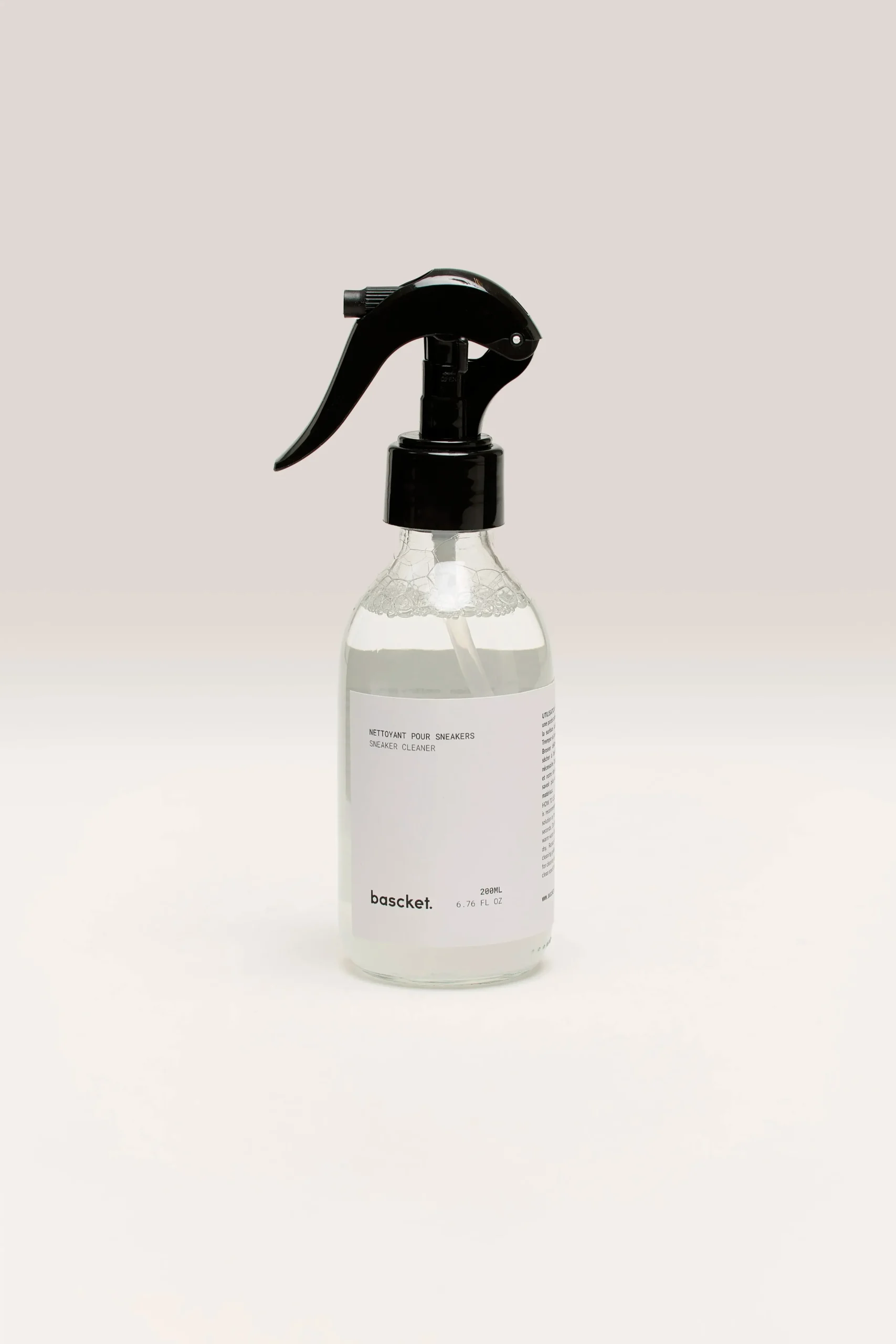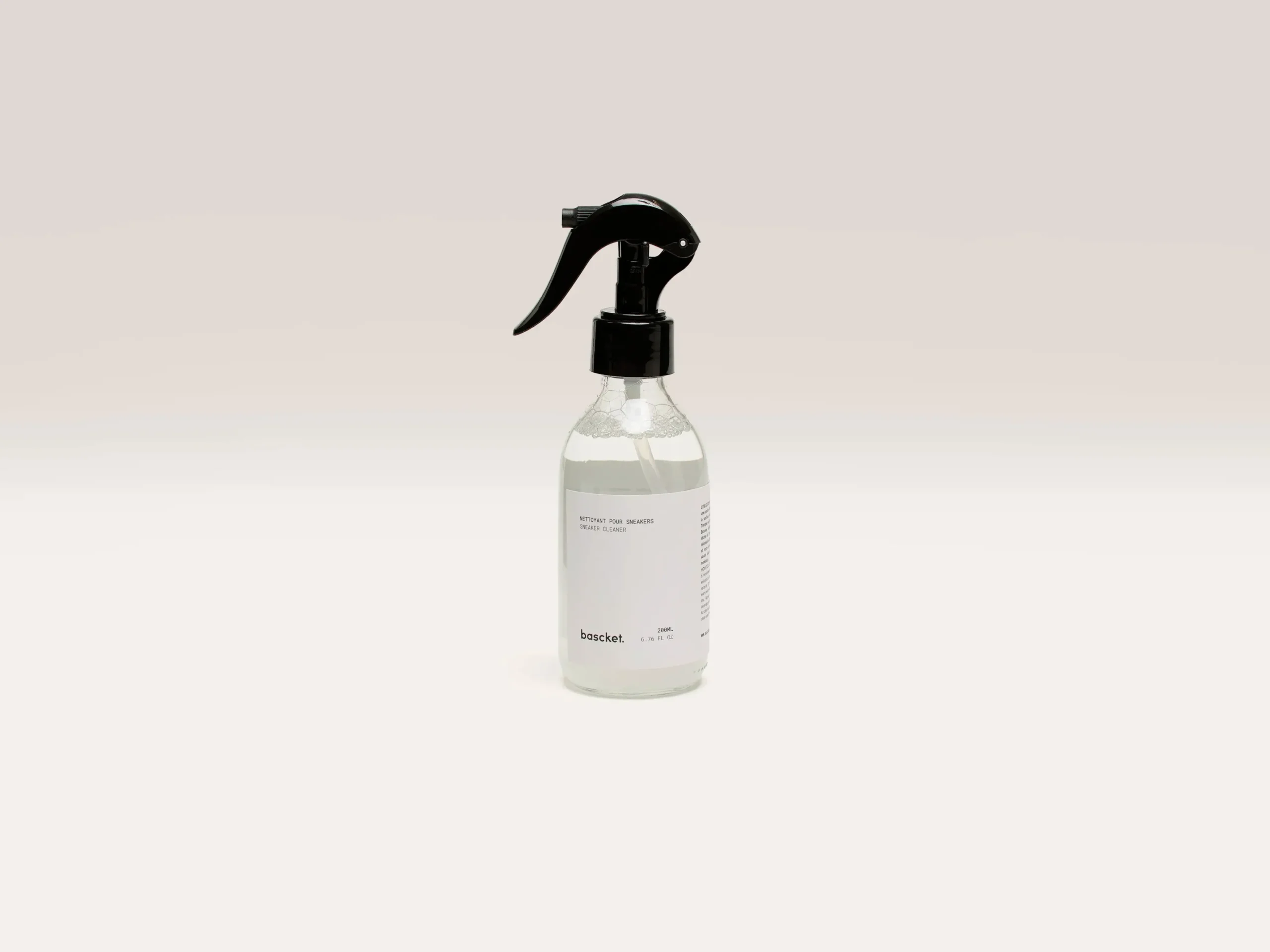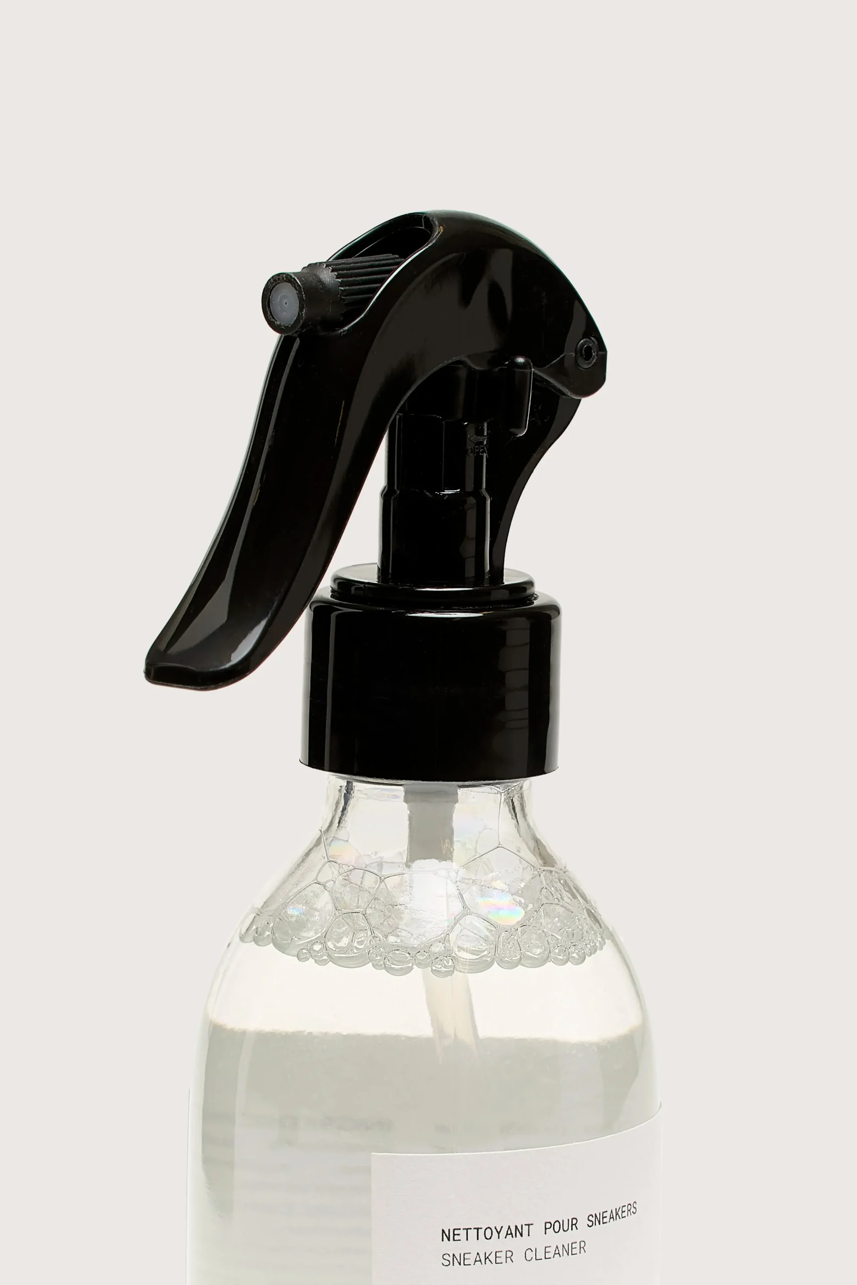 The Sneaker Cleaner extends the longevity of your favourite shoes with an eco-friendly, skin-friendly solution that is gentle enough for all materials.For the best possible experience, we recommend starting with The Essential Kit, containing everything you need to care for all types of sneakers.Instructions: Test in a small, clean area before use.1. Spray a liberal amount of solution on the sneakers2. Let it rest for a few seconds3. Dip the brush into a bowl of clean, warm water4. Brush gently5. Wipe clean with a cloth or a towel6. Air dryPlease refer to the Shoe Cleaning Guide for instructions on how to clean different materials.