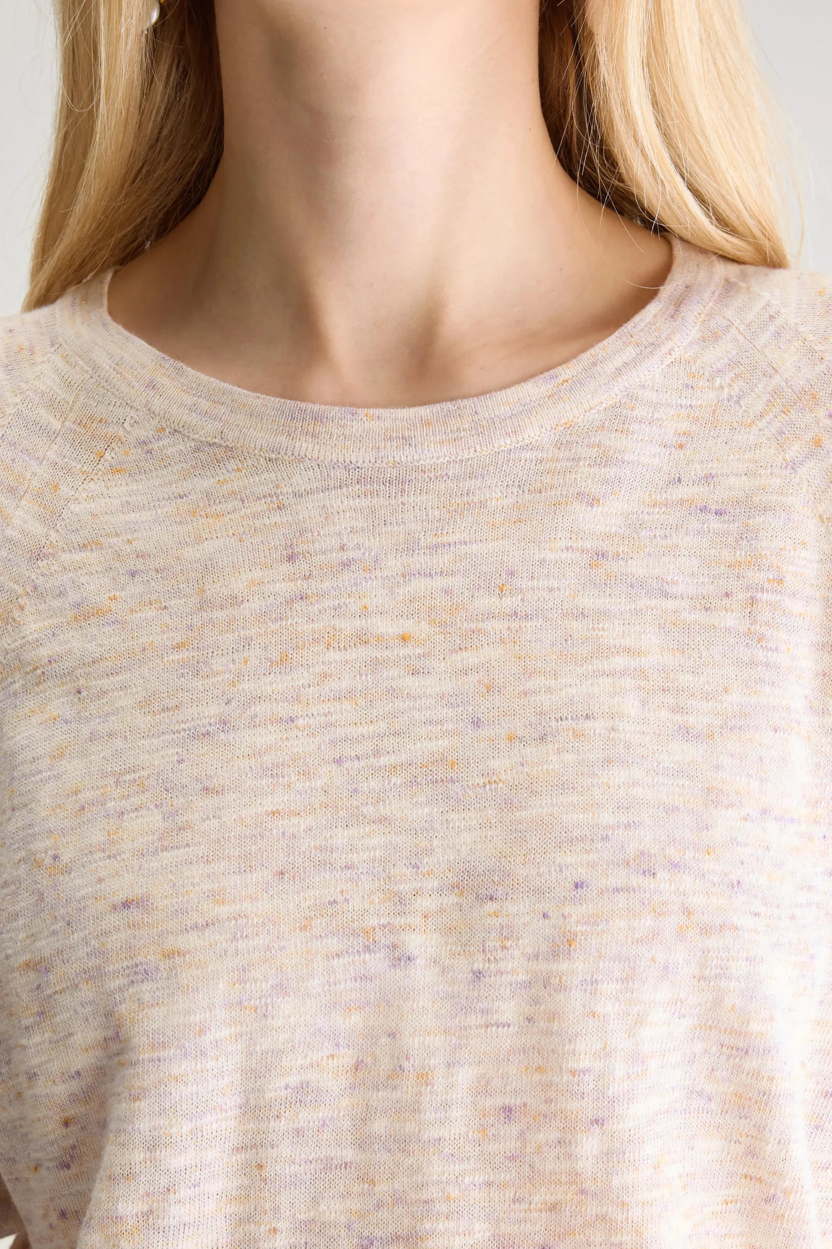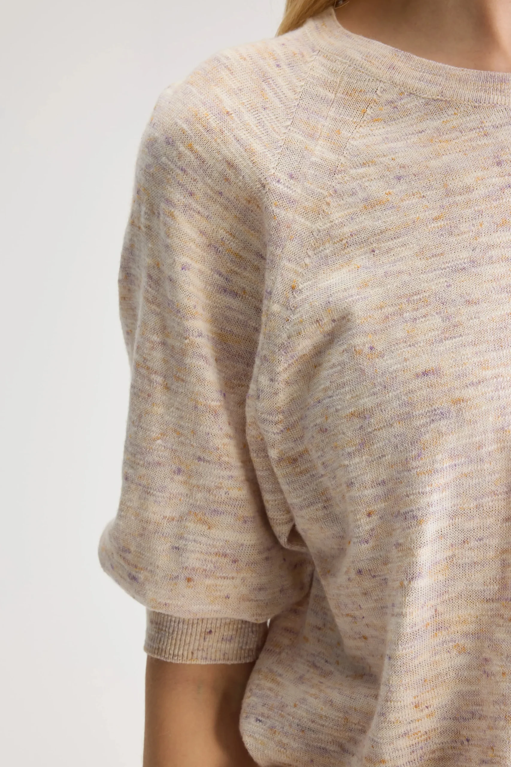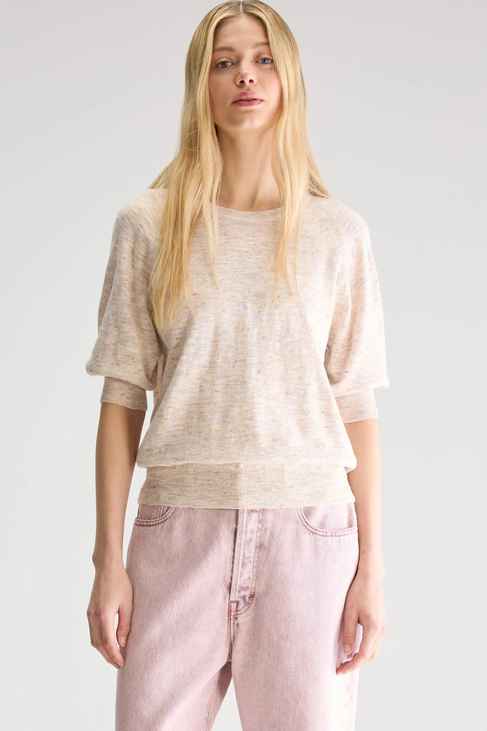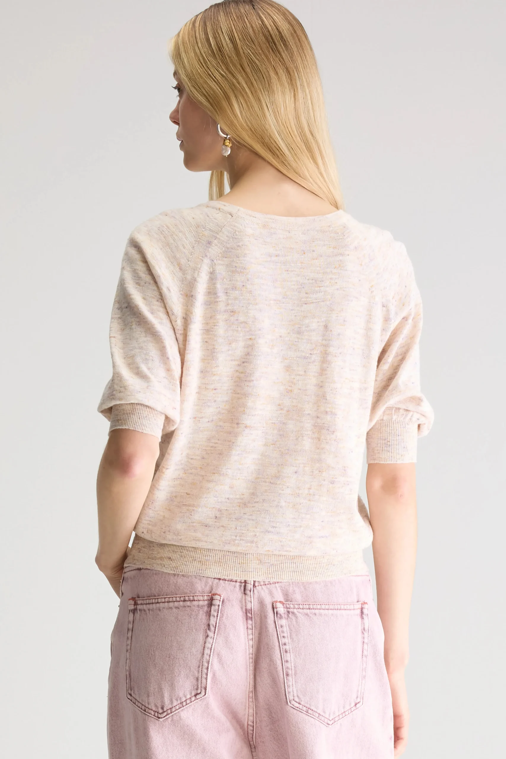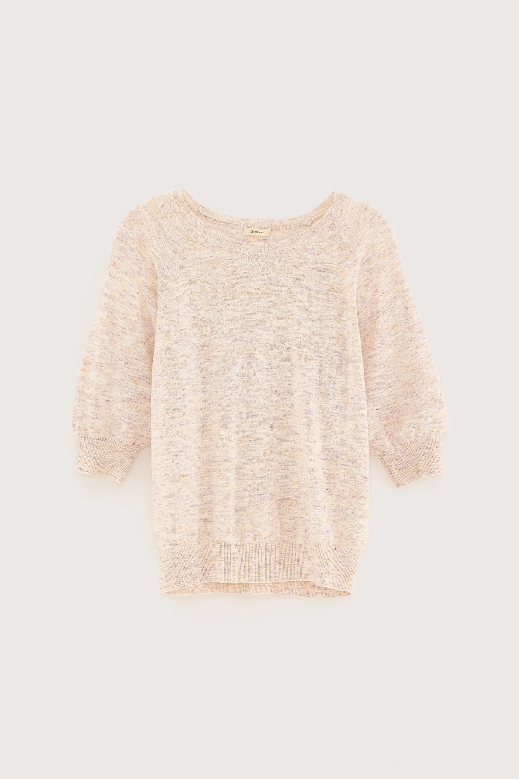 Klassieke, gespikkelde gebreide trui met wijde hals en 3/4-mouwen.Klassieke pasvorm3/4-mouwenWijde, ronde halsZacht, middelzwaar breiselVeelkleurige spikkelsGeribde zoom en manchetten