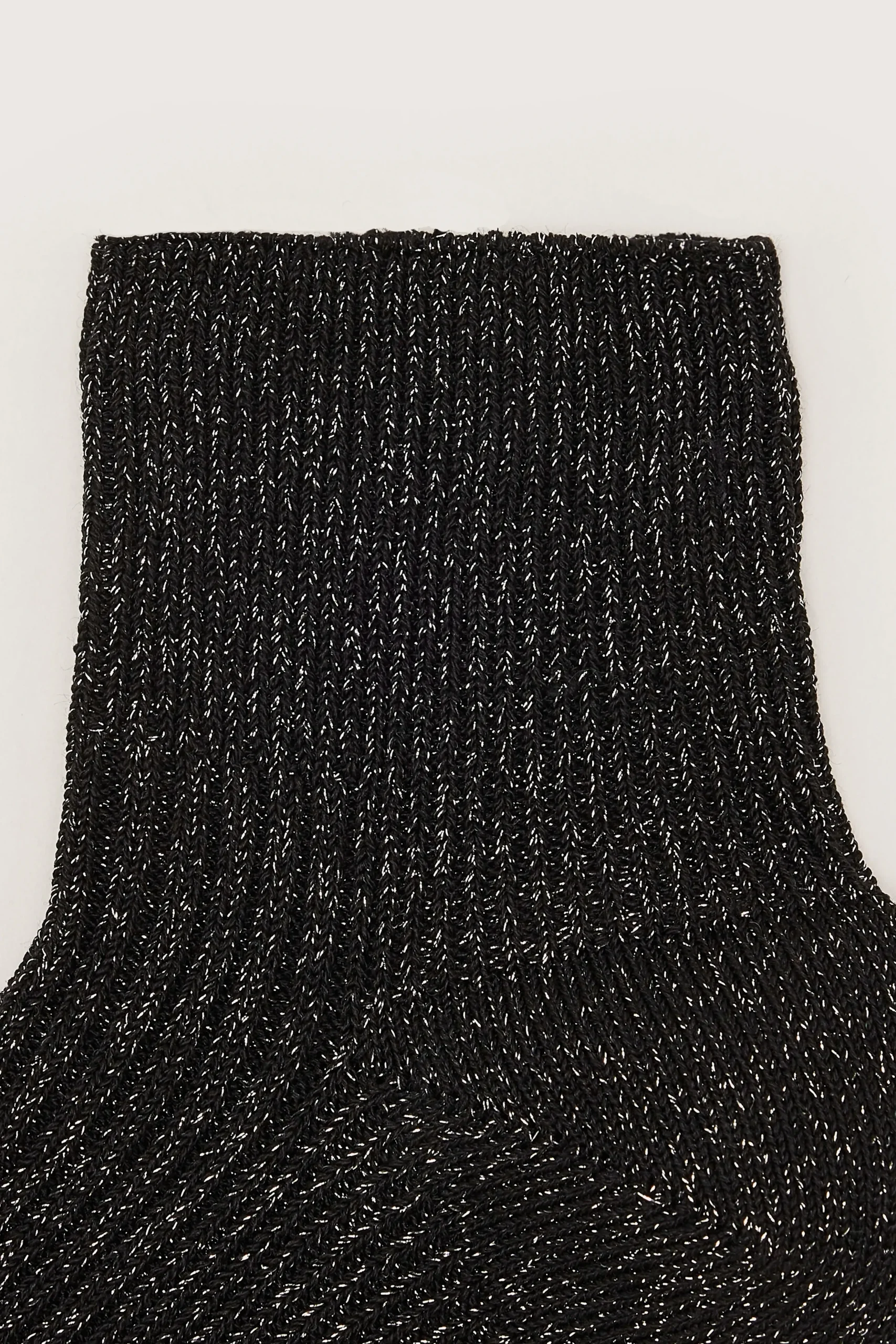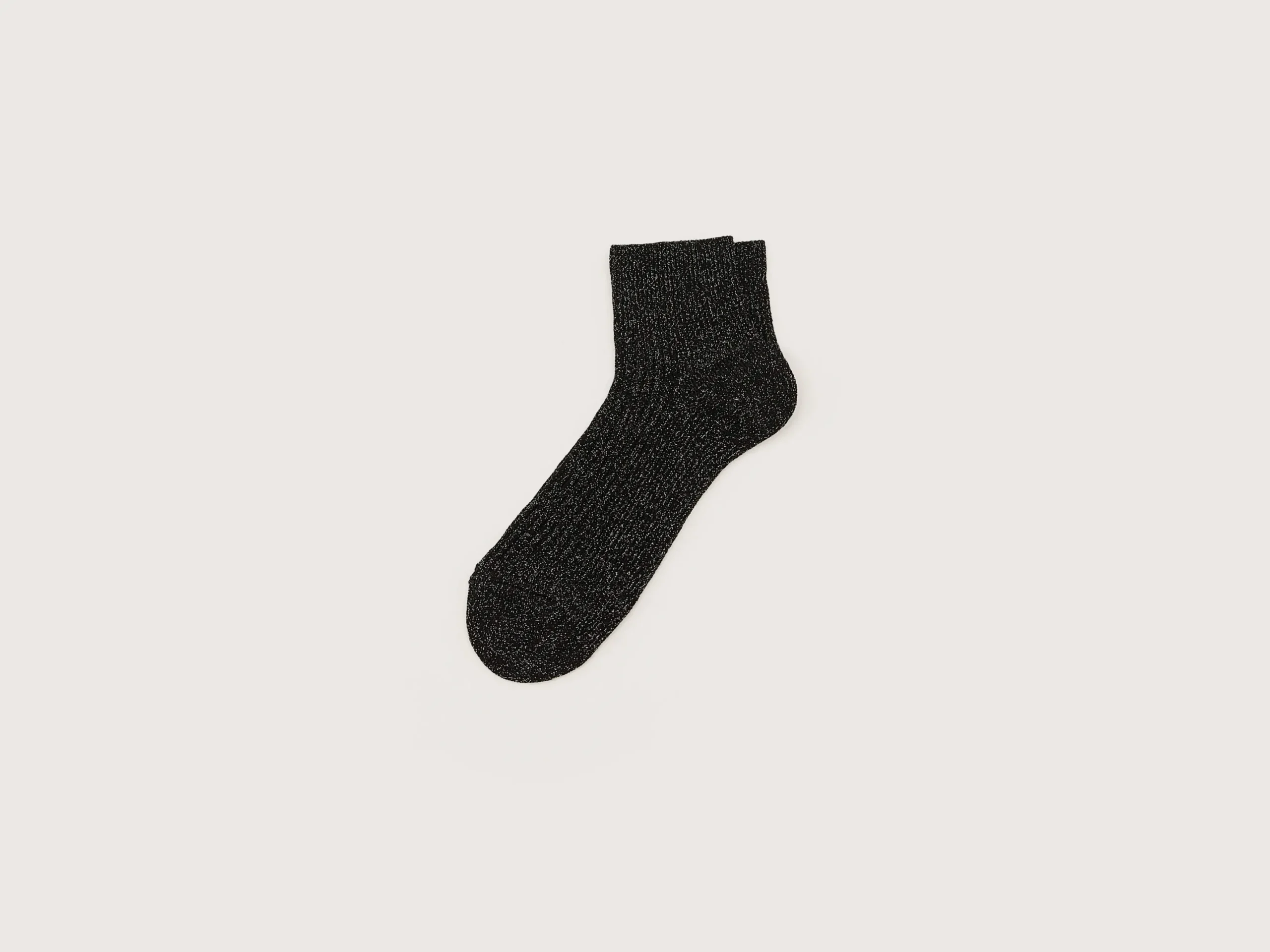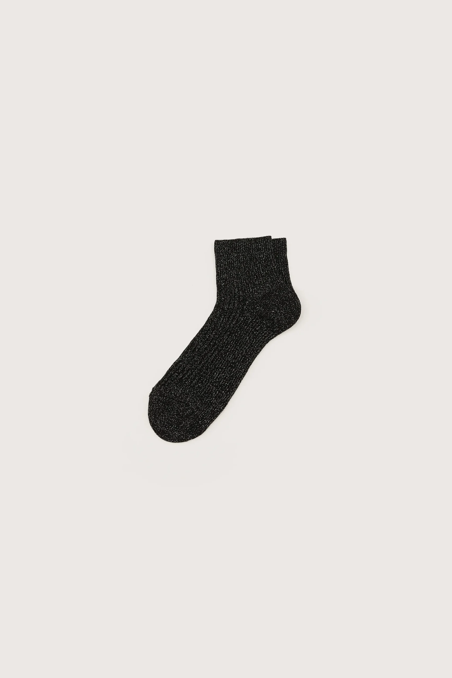 Geribbelde enkelsokken in zacht zwart met een vleugje glans.Enkelsokken Dunne ribbels Sprankelende afwerking