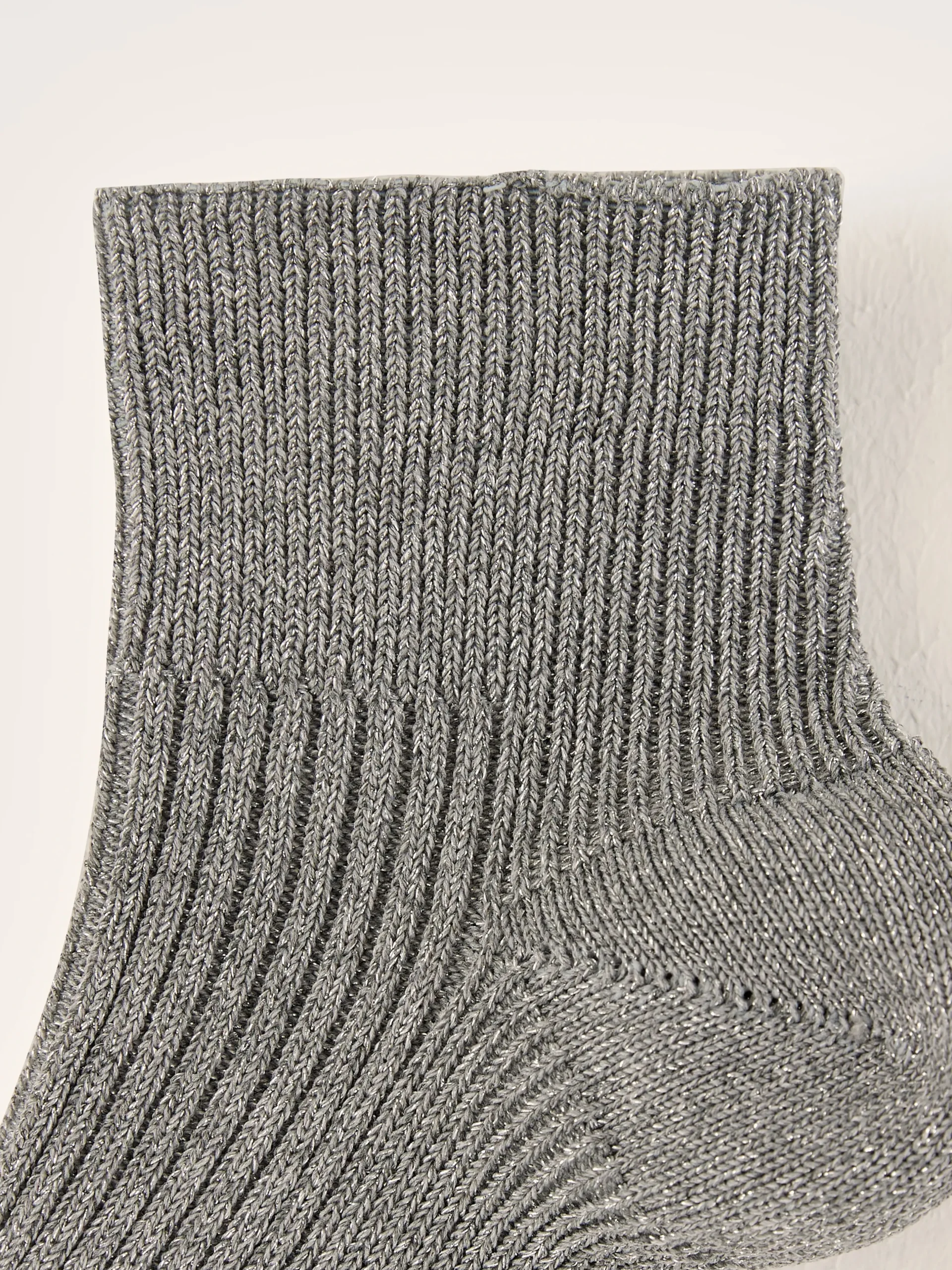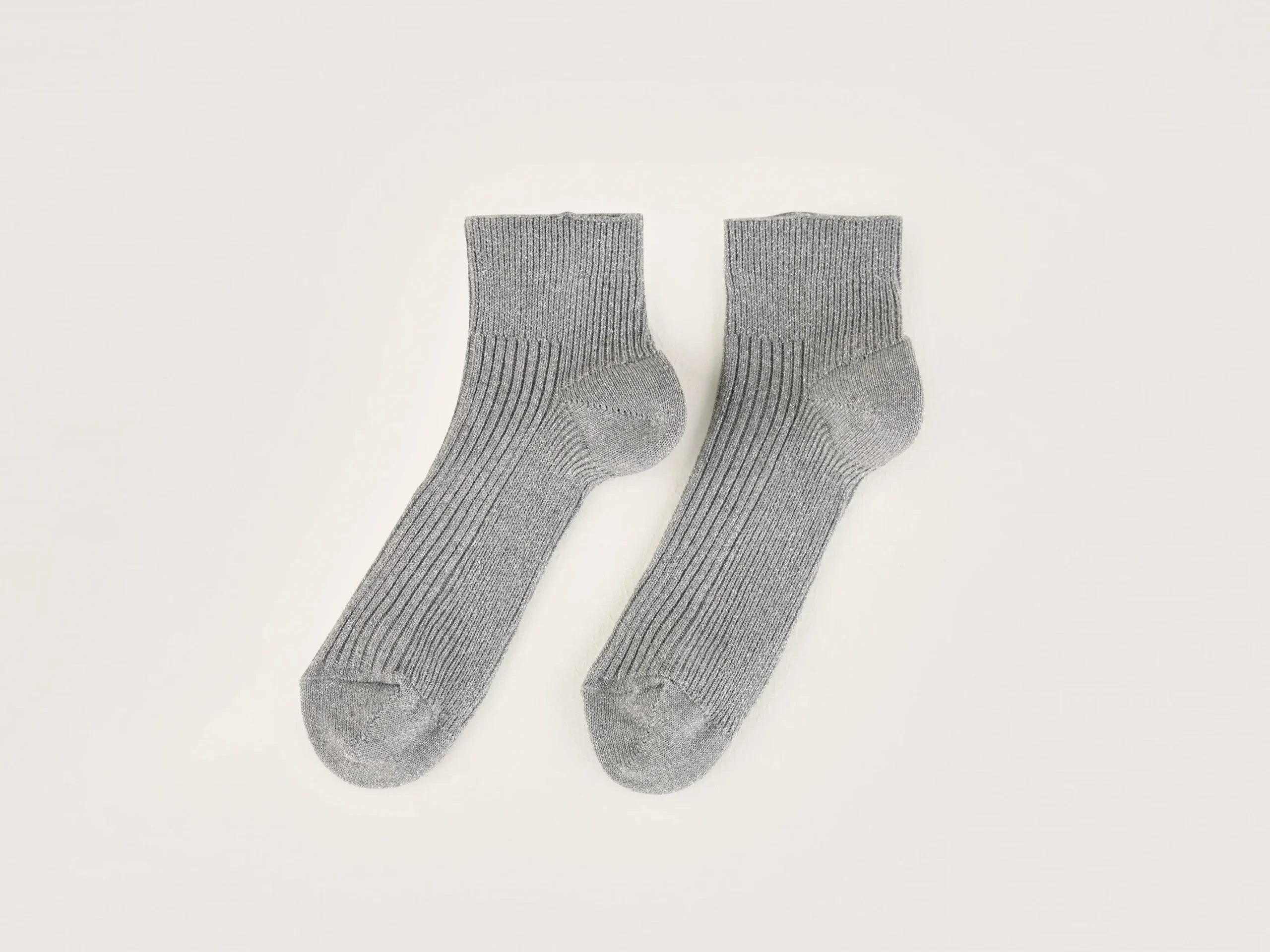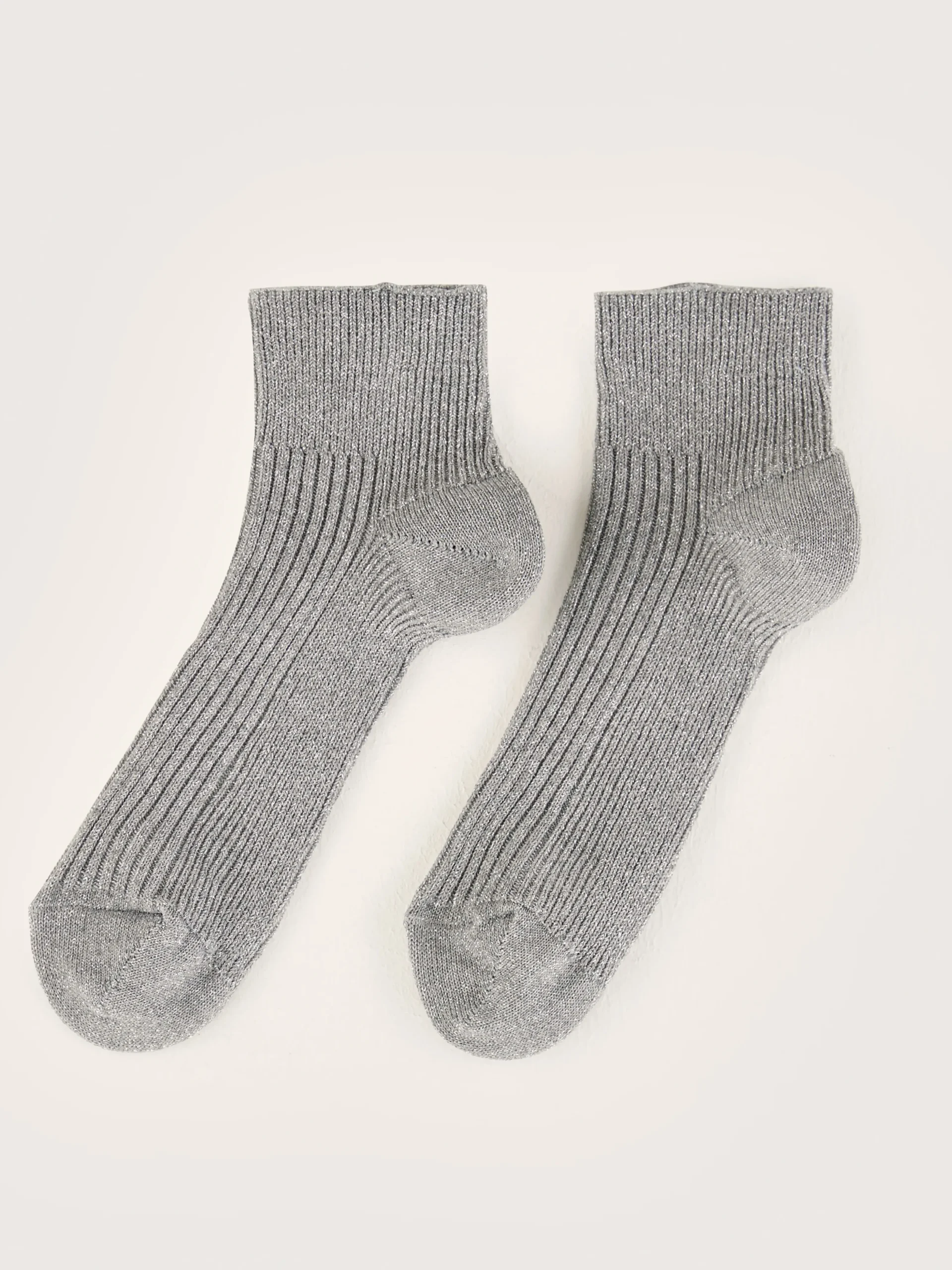 Korte geribde grijze sportsokken met een lichte glans.rSportkousenrGlinsterende afwerkingrFijn geribdr