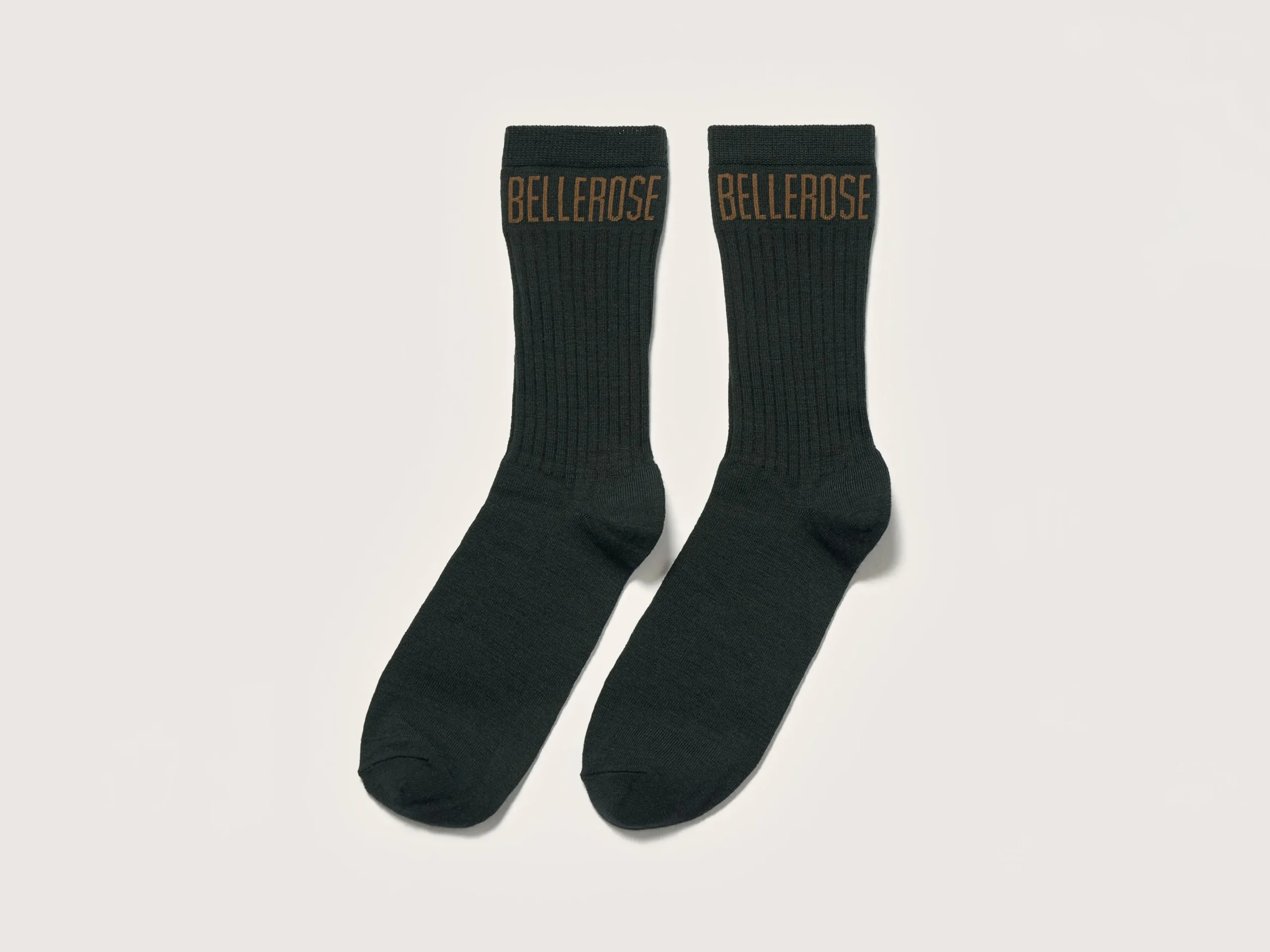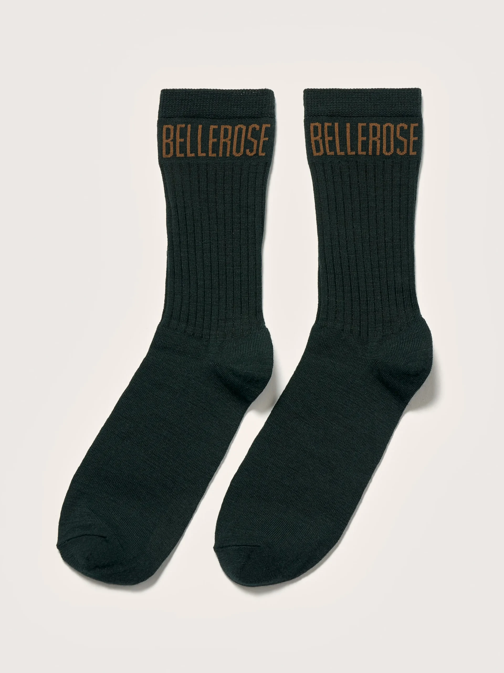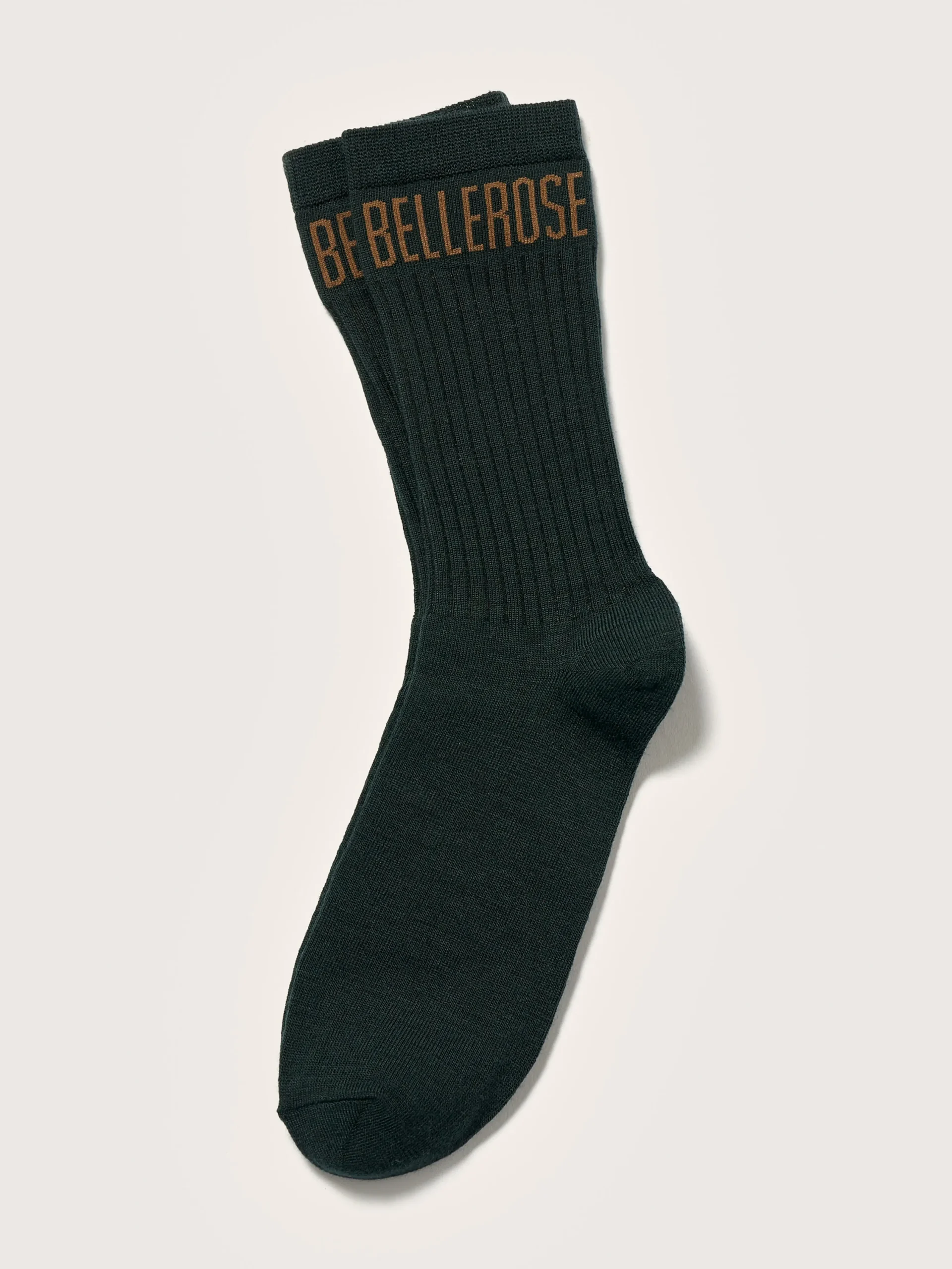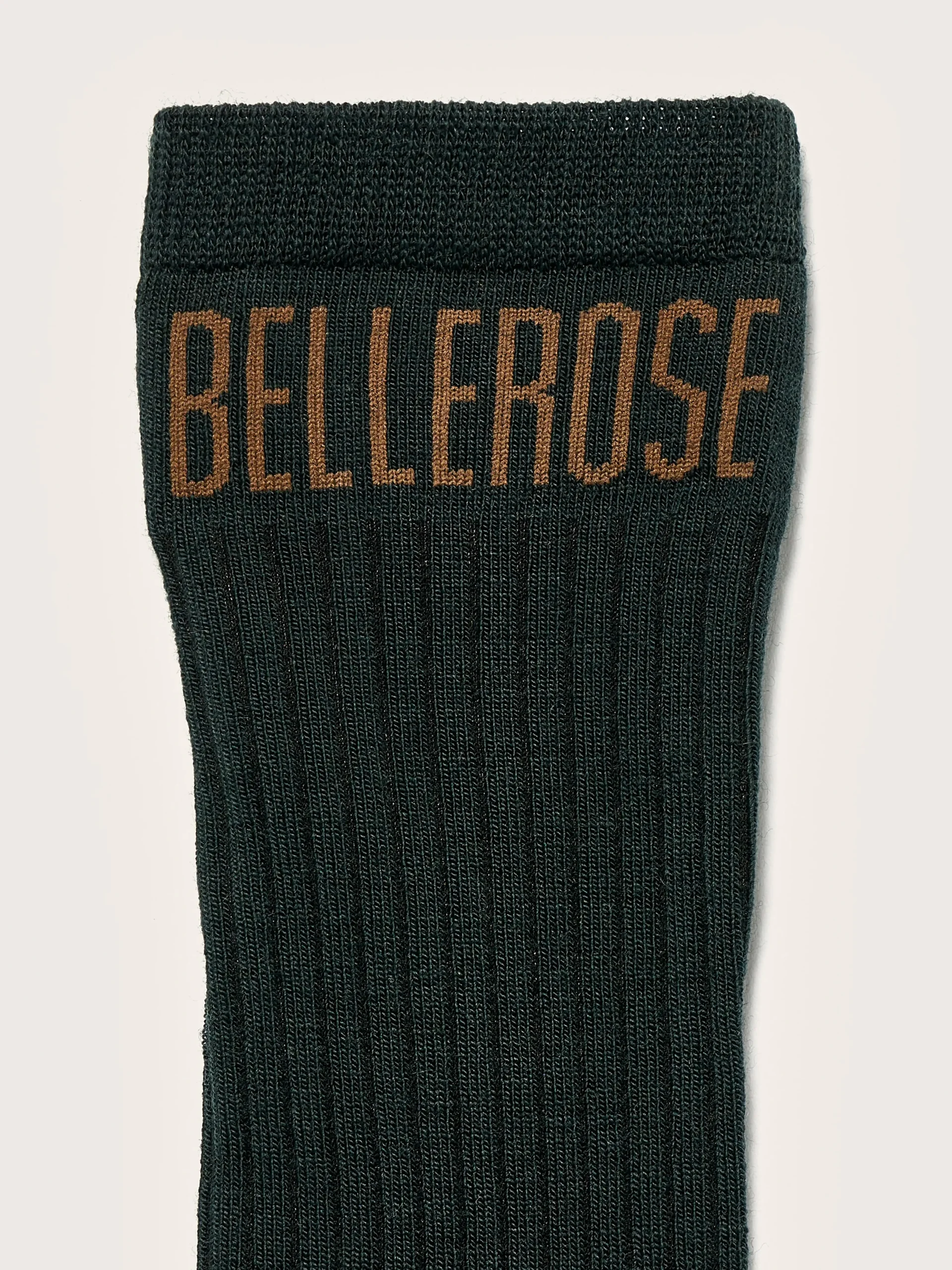 Klassieke, donkergroene Bellerose-sokken.rKlassiek modelrGeribde enkelsrContrasterend Bellerose-logo op de enkelr