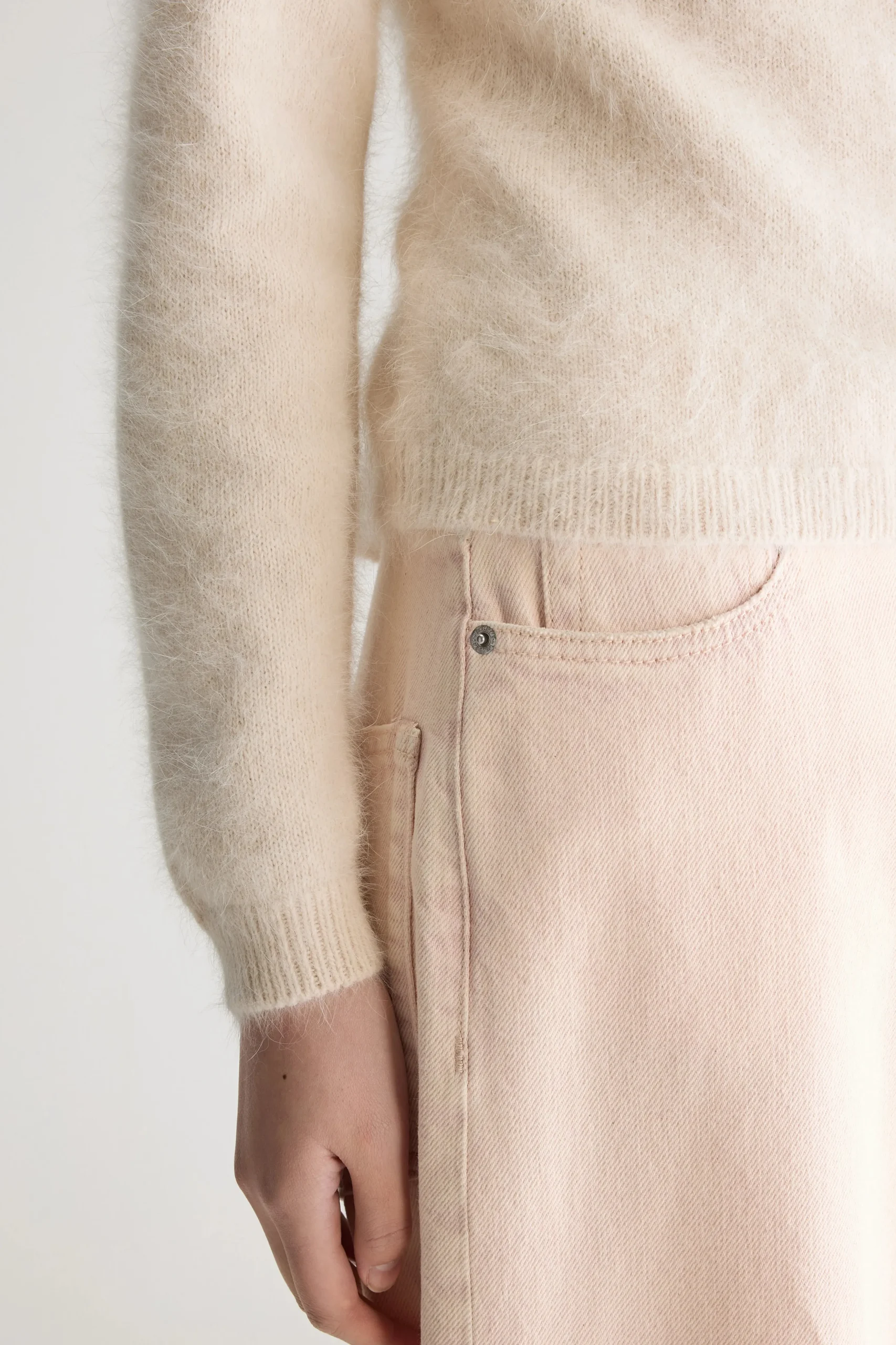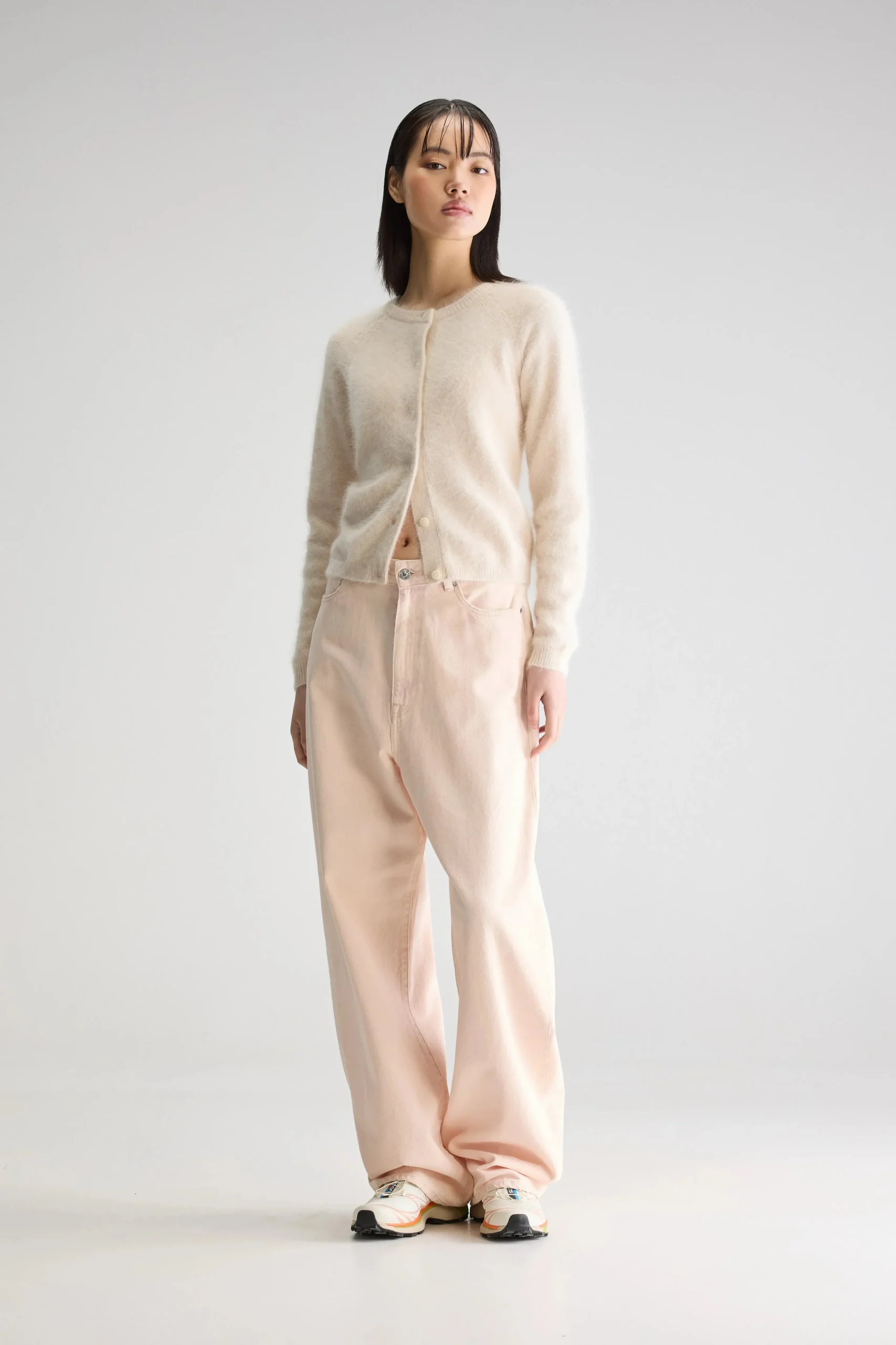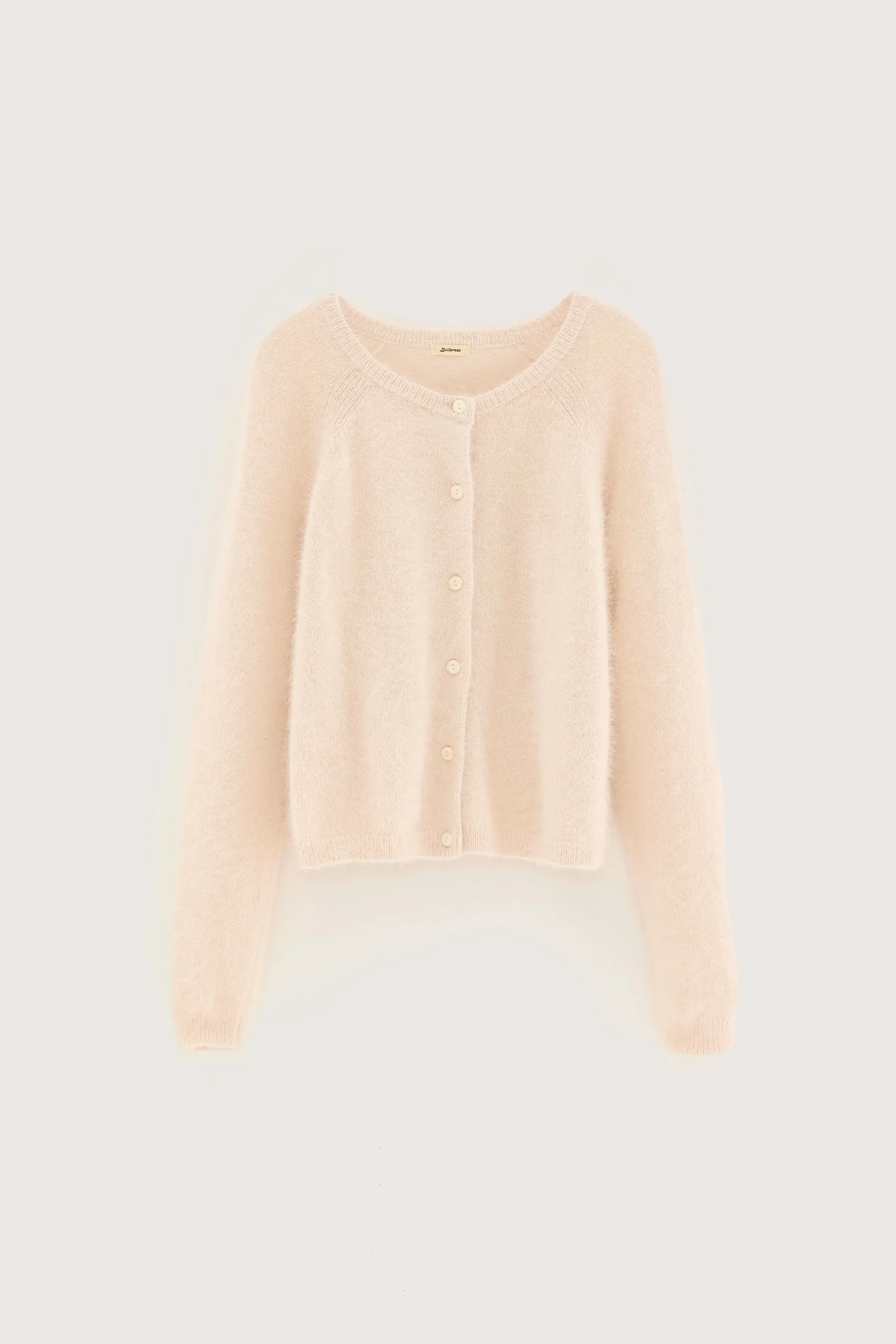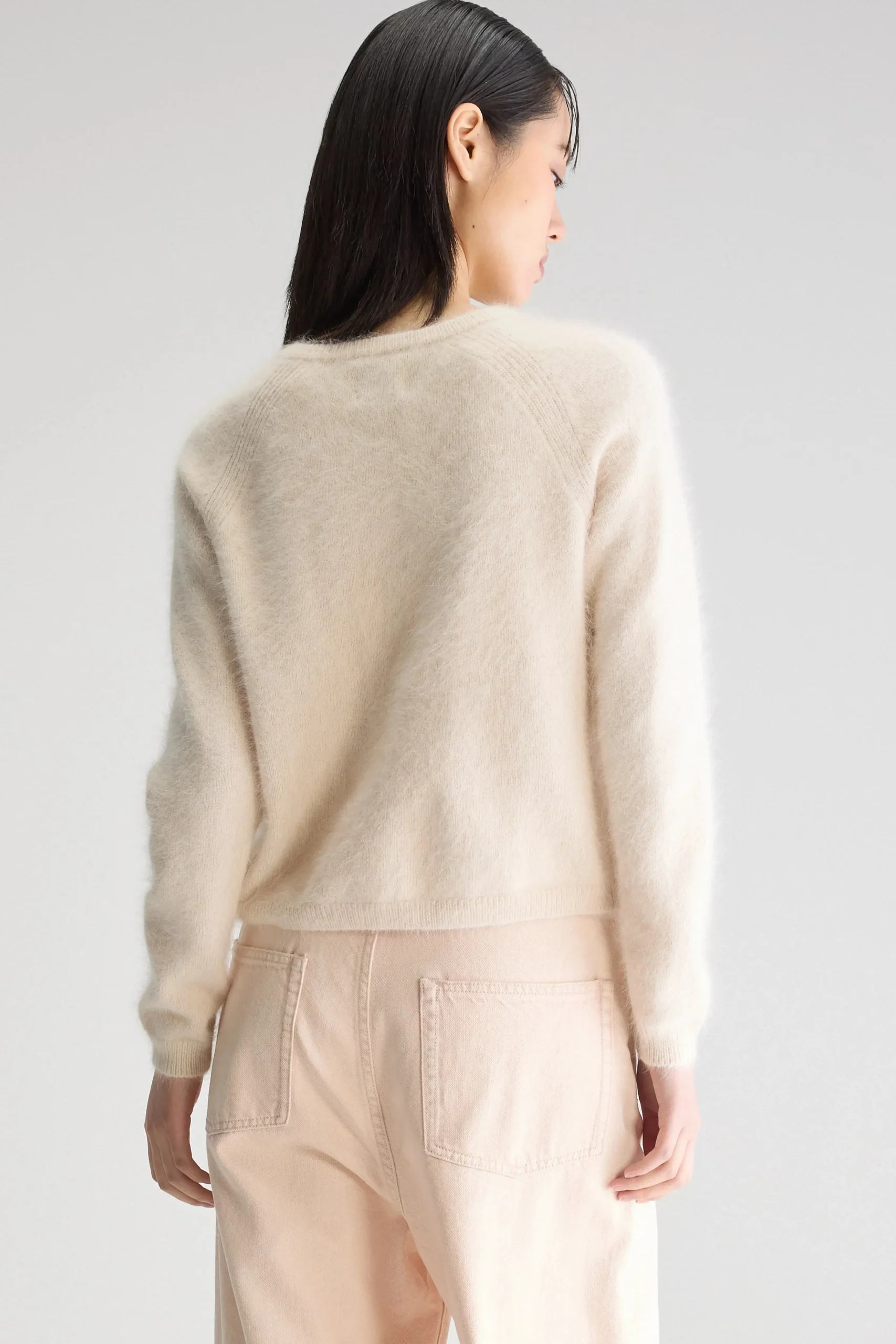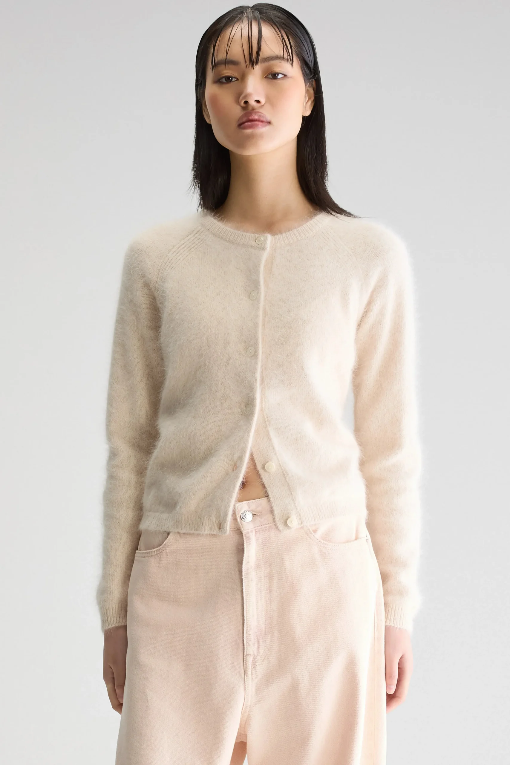 Klassieke cardigan met ronde hals en raglanmouwen, gemaakt van een zachte angoramix in ecru.Regular pasvormRonde hals La…