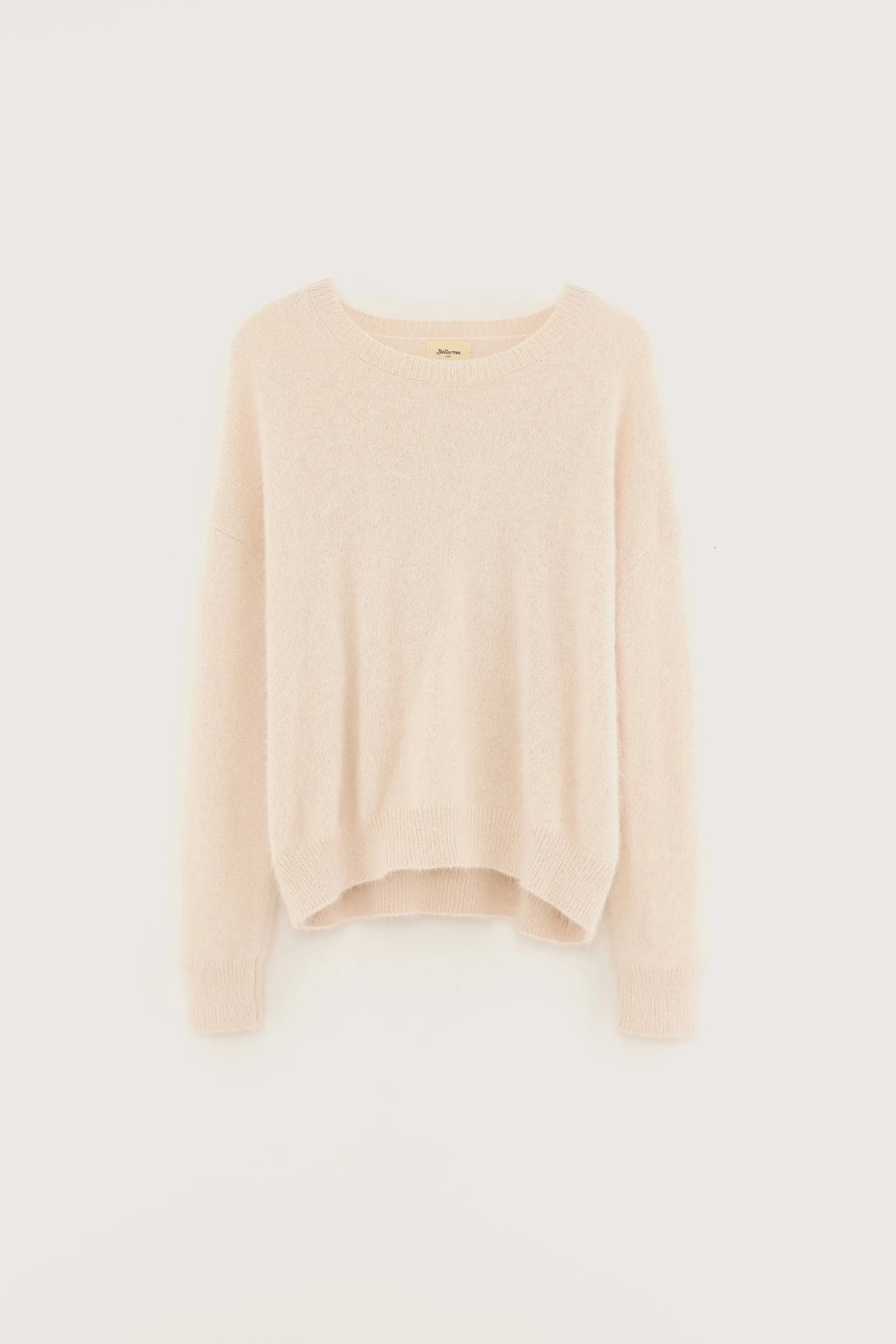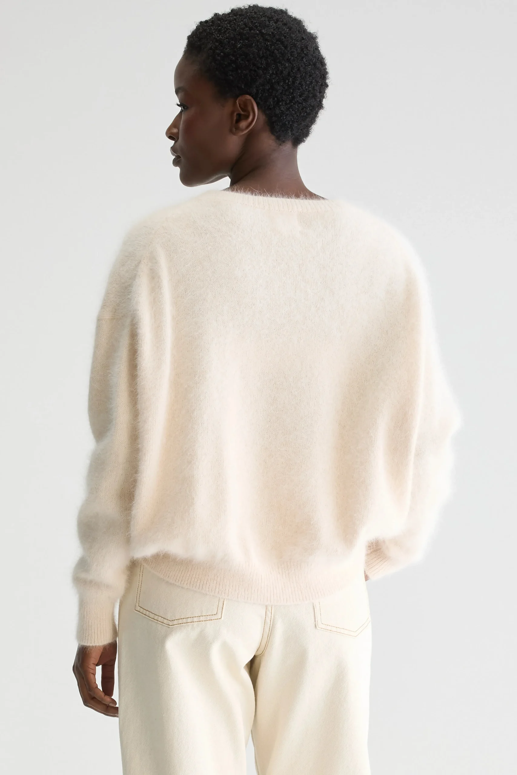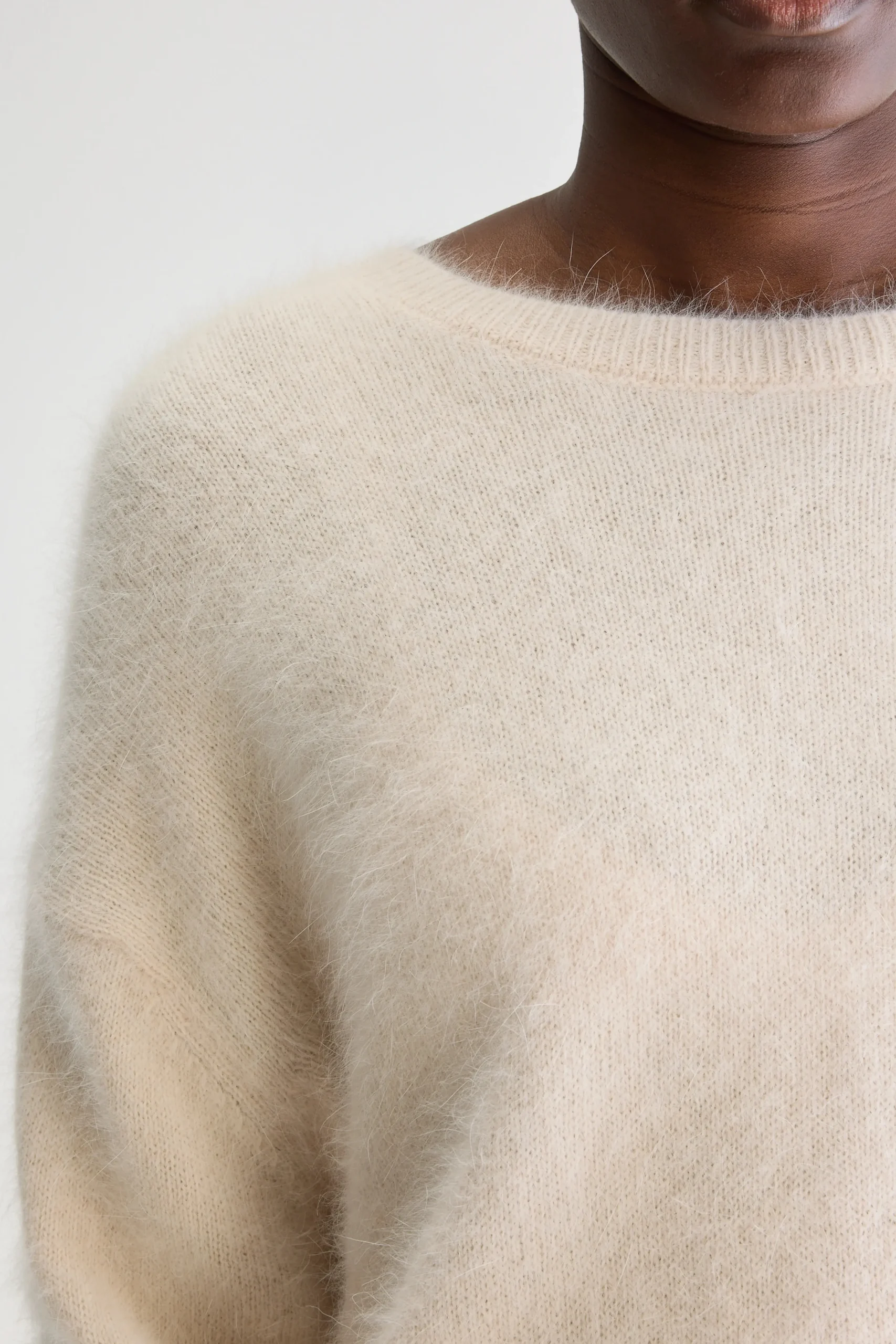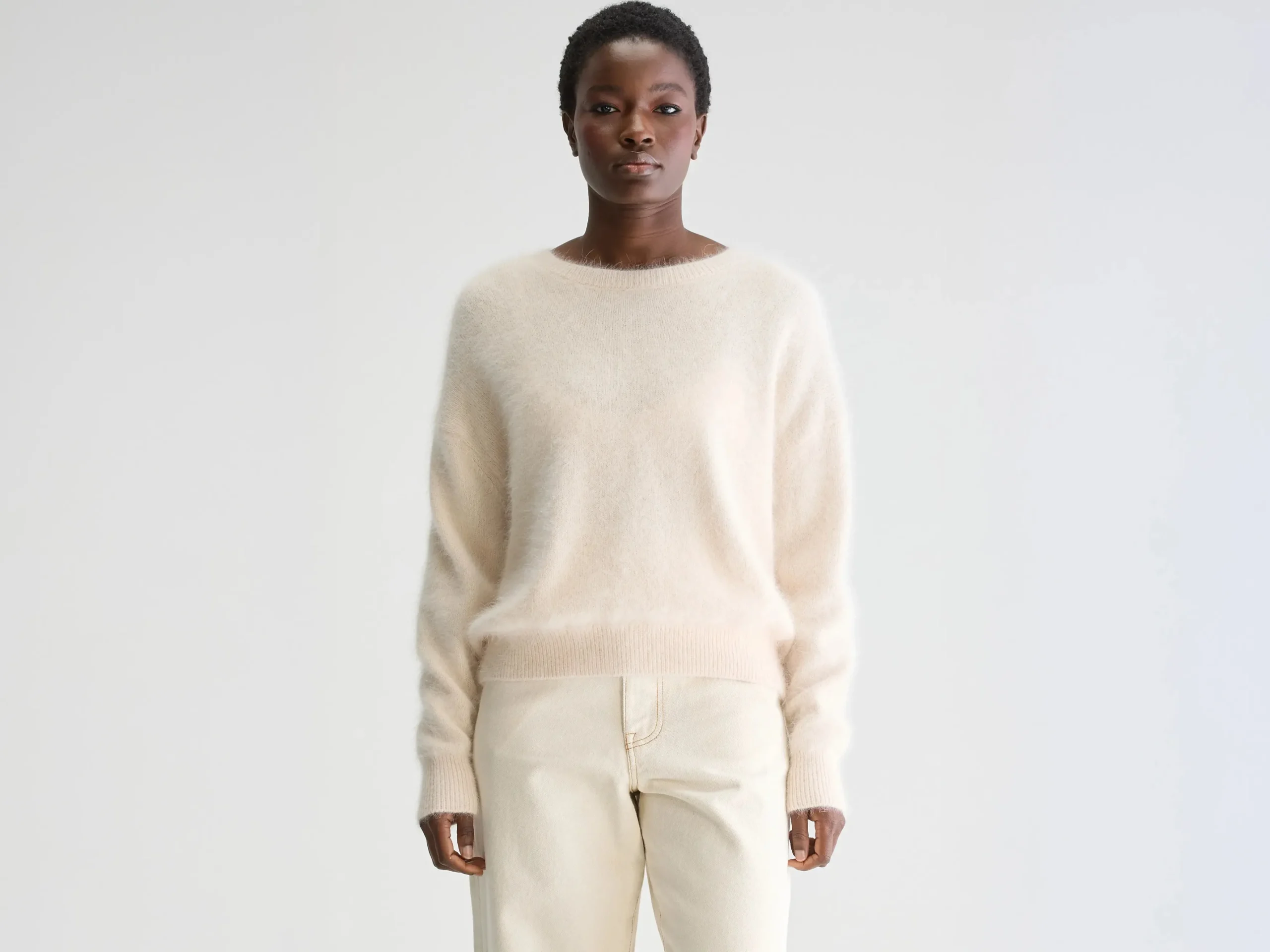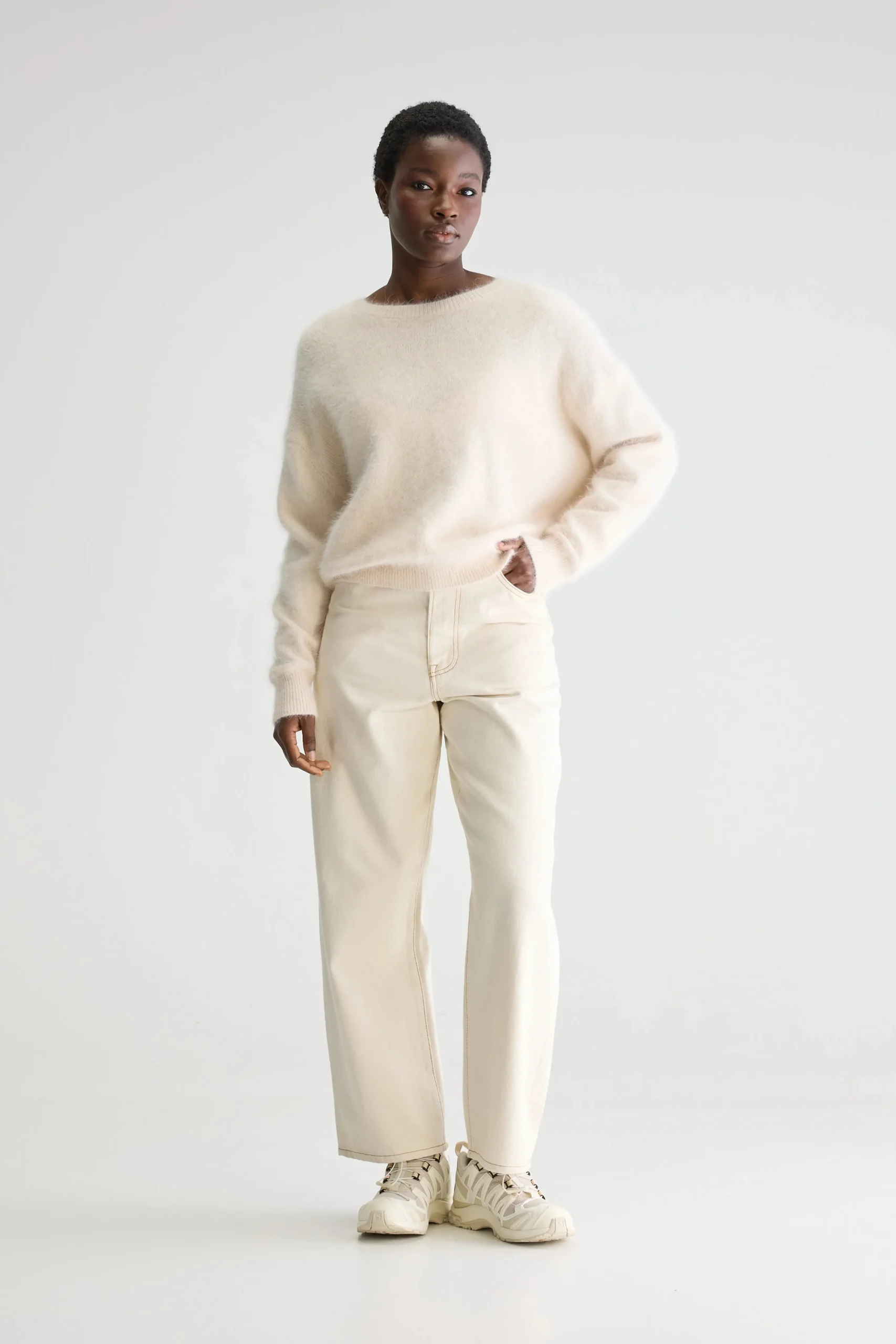 Oversized trui met ronde hals en lange mouwen, gemaakt van een zachte angoramix in ecru.Oversized model : Kies