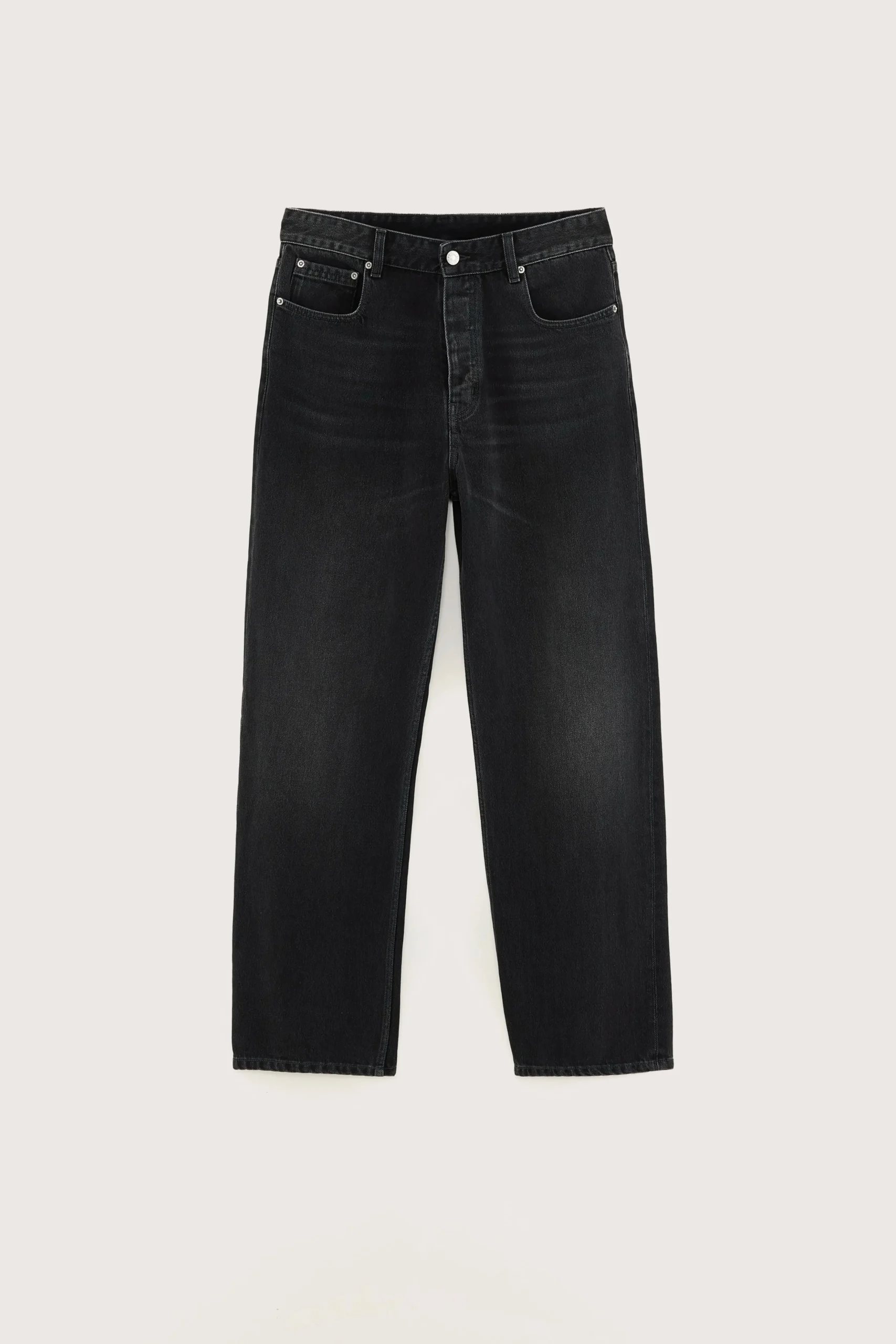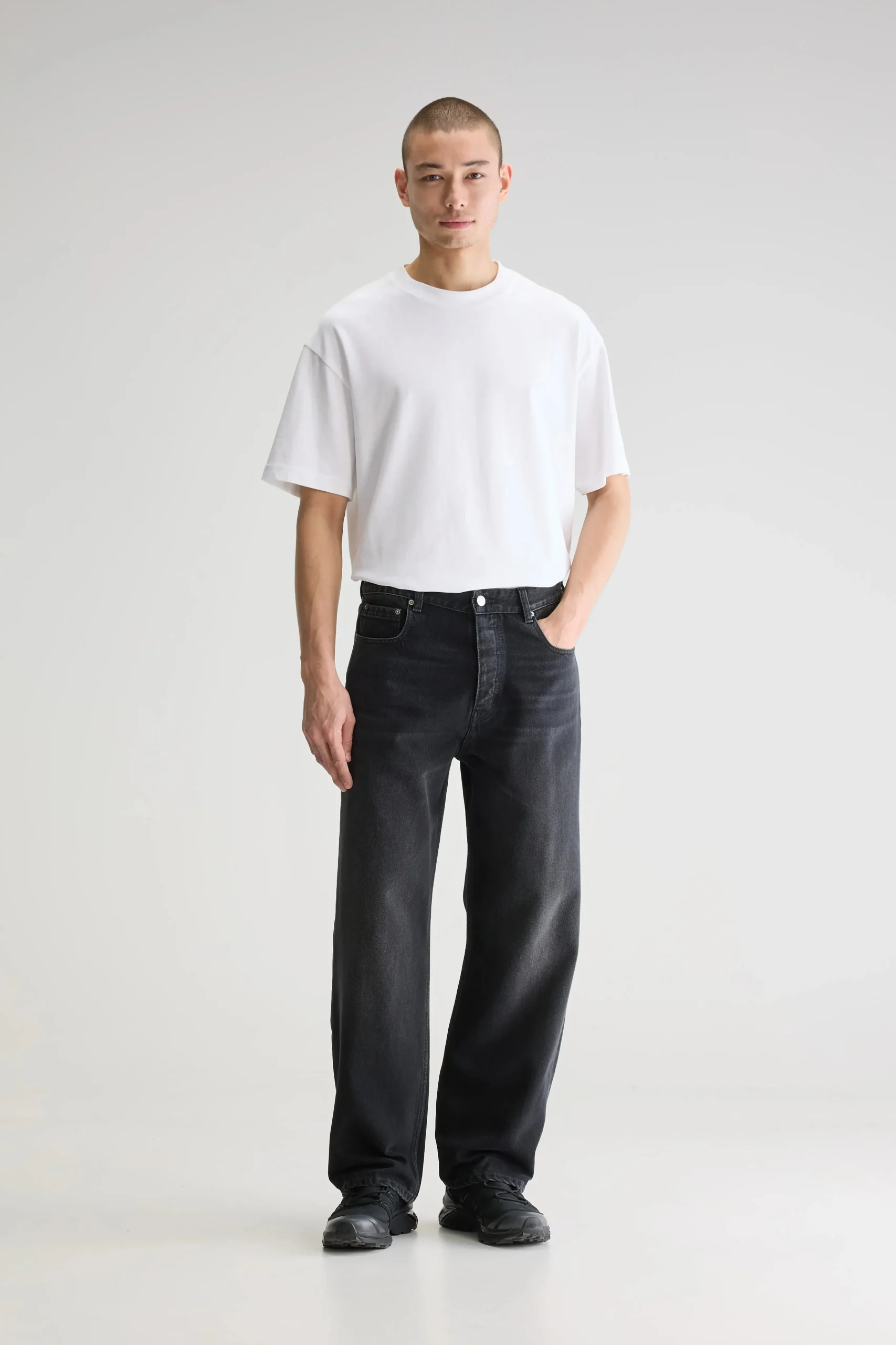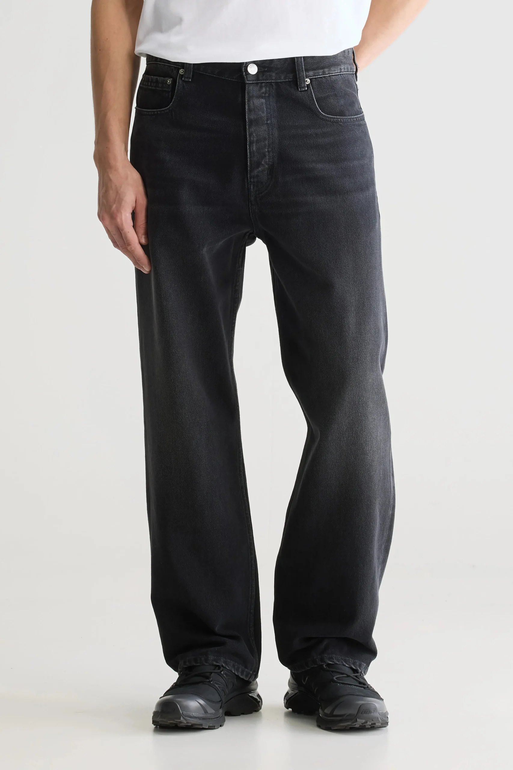 Losse 5-pocketjeans met lager kruis en rechte wijde pijpen, gemaakt van middelzwaar katoen en Lyocell-denim in zwart met een “gebruikte” look.Losse pasvormLager kruis, wijde rechte pijpenMiddelzwaar katoen en Lyocell-denim, geen stretchKnoopsluitingBinnenbeenlengte: 31″ (gebaseerd op maat 32)De binnenbeenlengte past zich lichtjes aan afhankelijk van de gekozen maat, zodat de pasvorm proportioneel blijft.Zoom: 24,7 cmVoorheen: Point Jeans