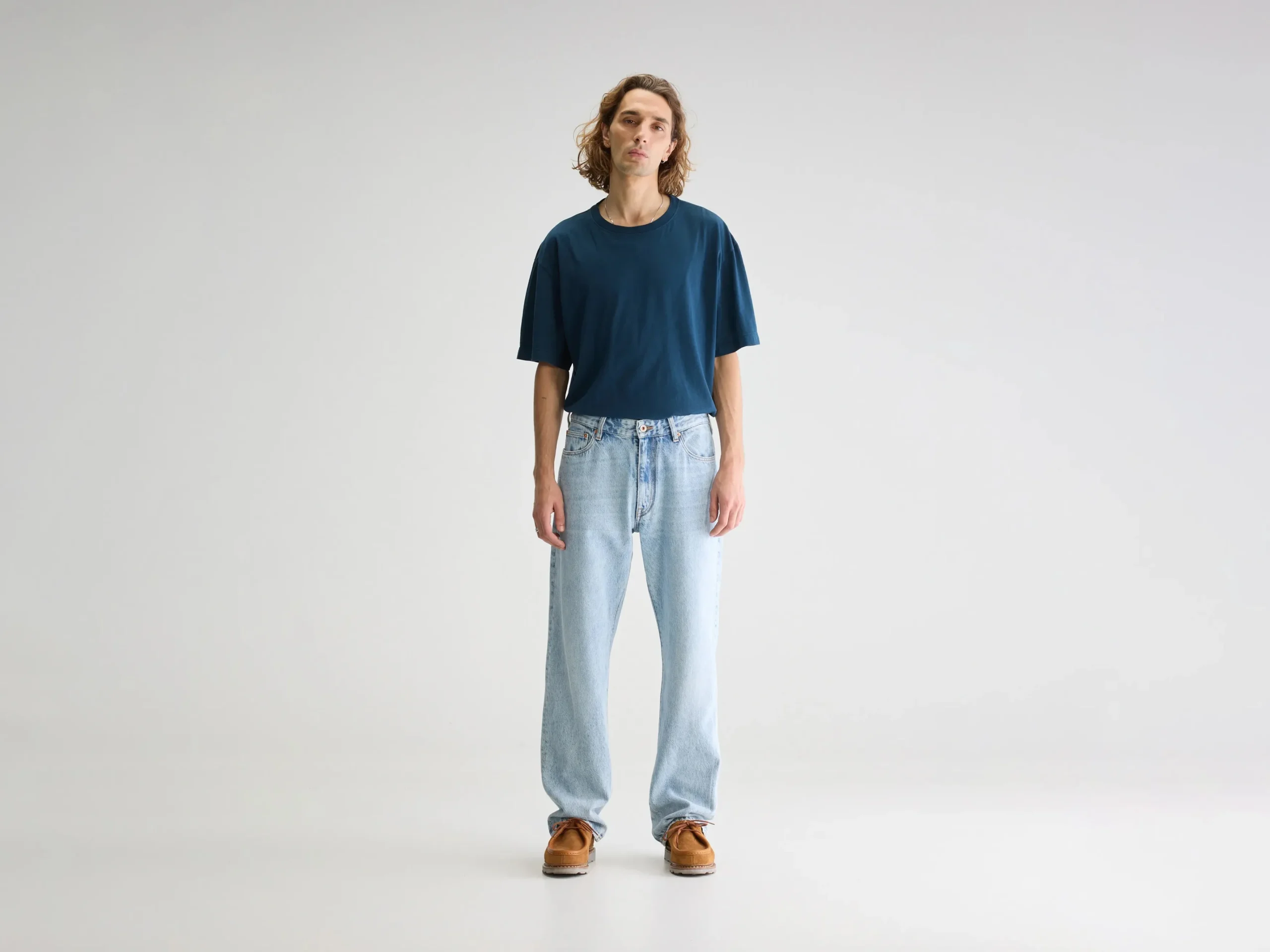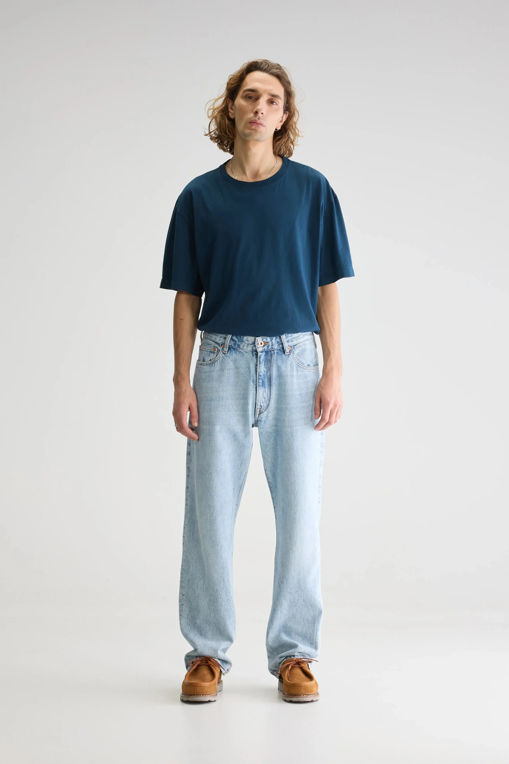 Losse 5-pocketjeans met halfhoge taille en rechte pijpen, gemaakt van katoen en Lyocell denim in middenblauw.Losse pasvormHalfhoge taille, rechte pijpenHalfzwaar katoen en Lyocell-denim, geen stretchKnoopsluitingBinnenbeenlengte: 32″ (gebaseerd op maat 32)De binnenbeenlengte past zich lichtjes aan afhankelijk van de gekozen maat, zodat de pasvorm proportioneel blijft.Zoom: 21,5 cmVoorheen: Paulus Jeans