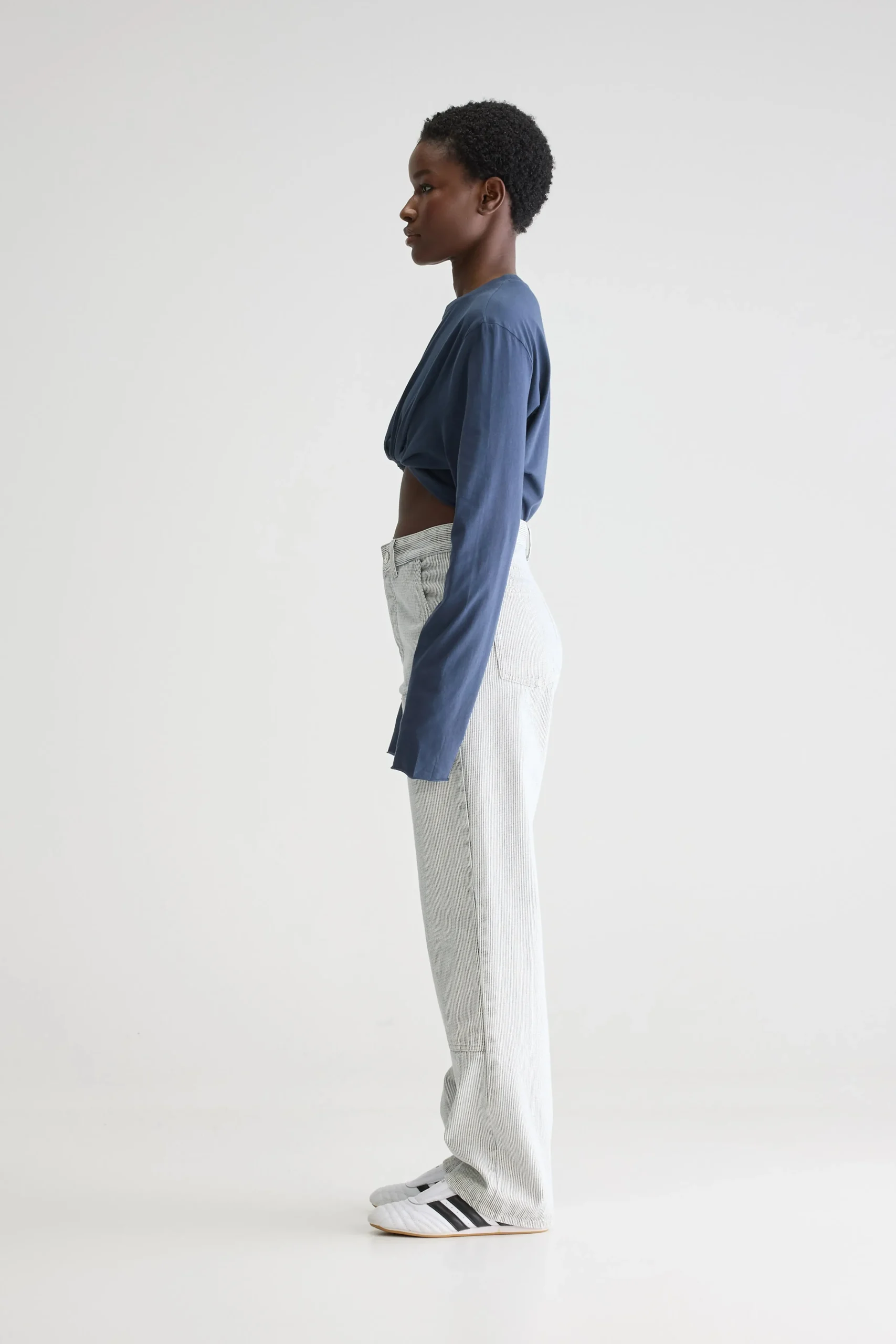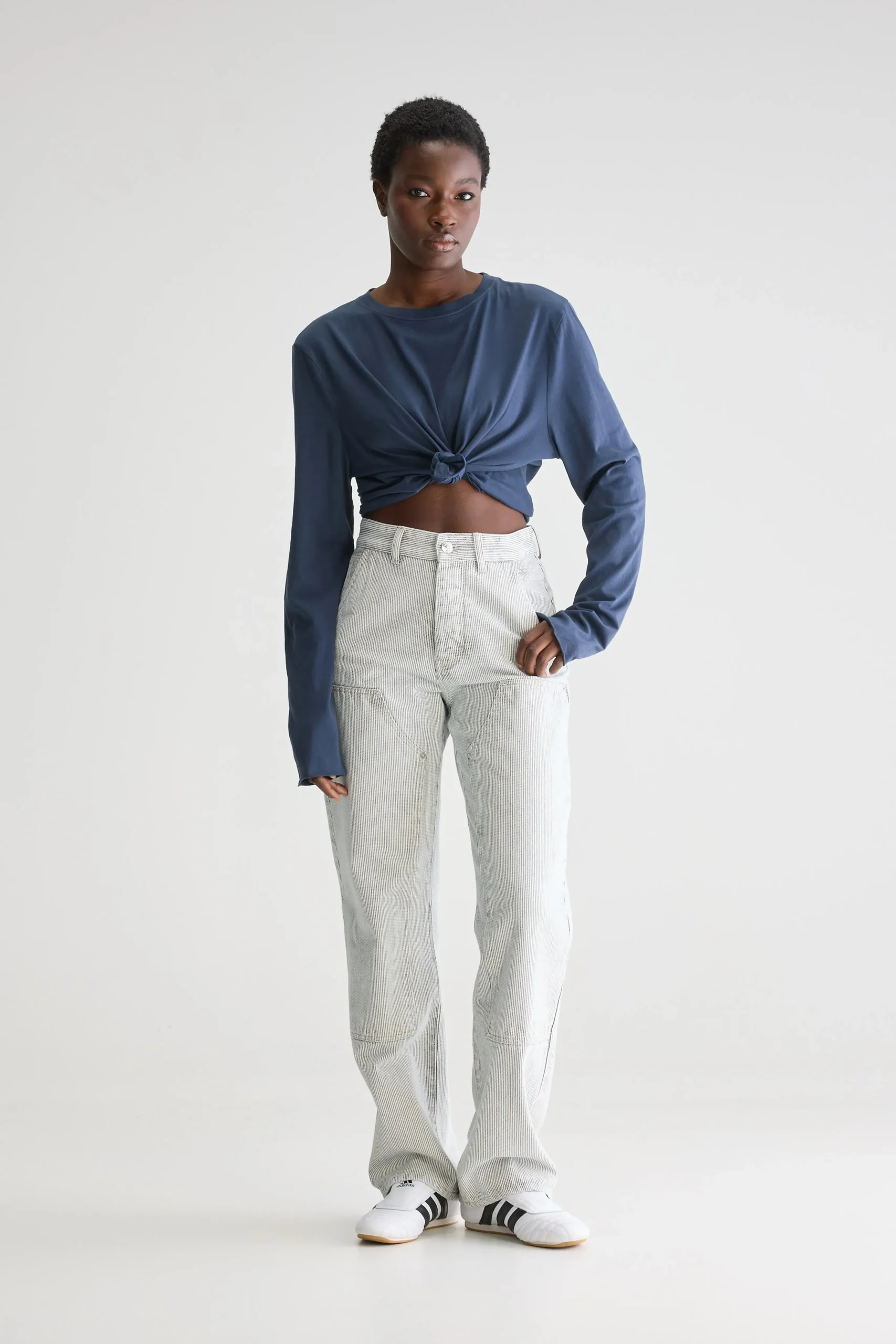 Relaxte mid-waist jeans in carpenter-stijl, klinknagels op de voorkant en schuine zakken, van ecru denim met dunne blauw…