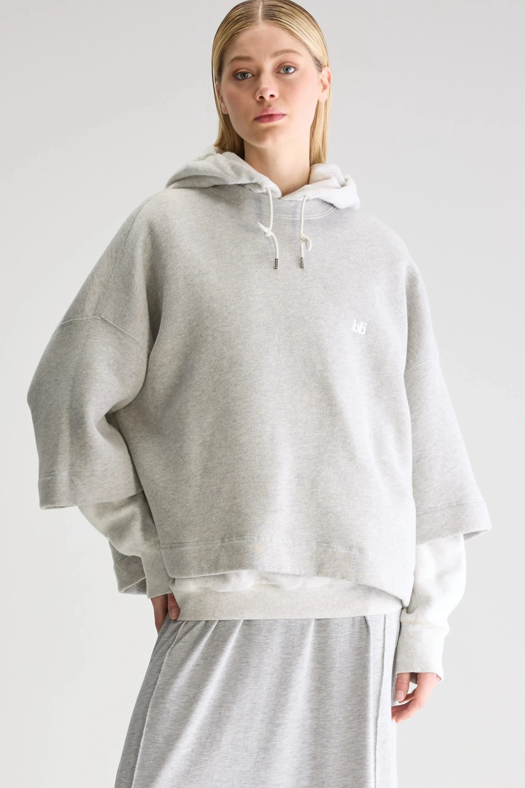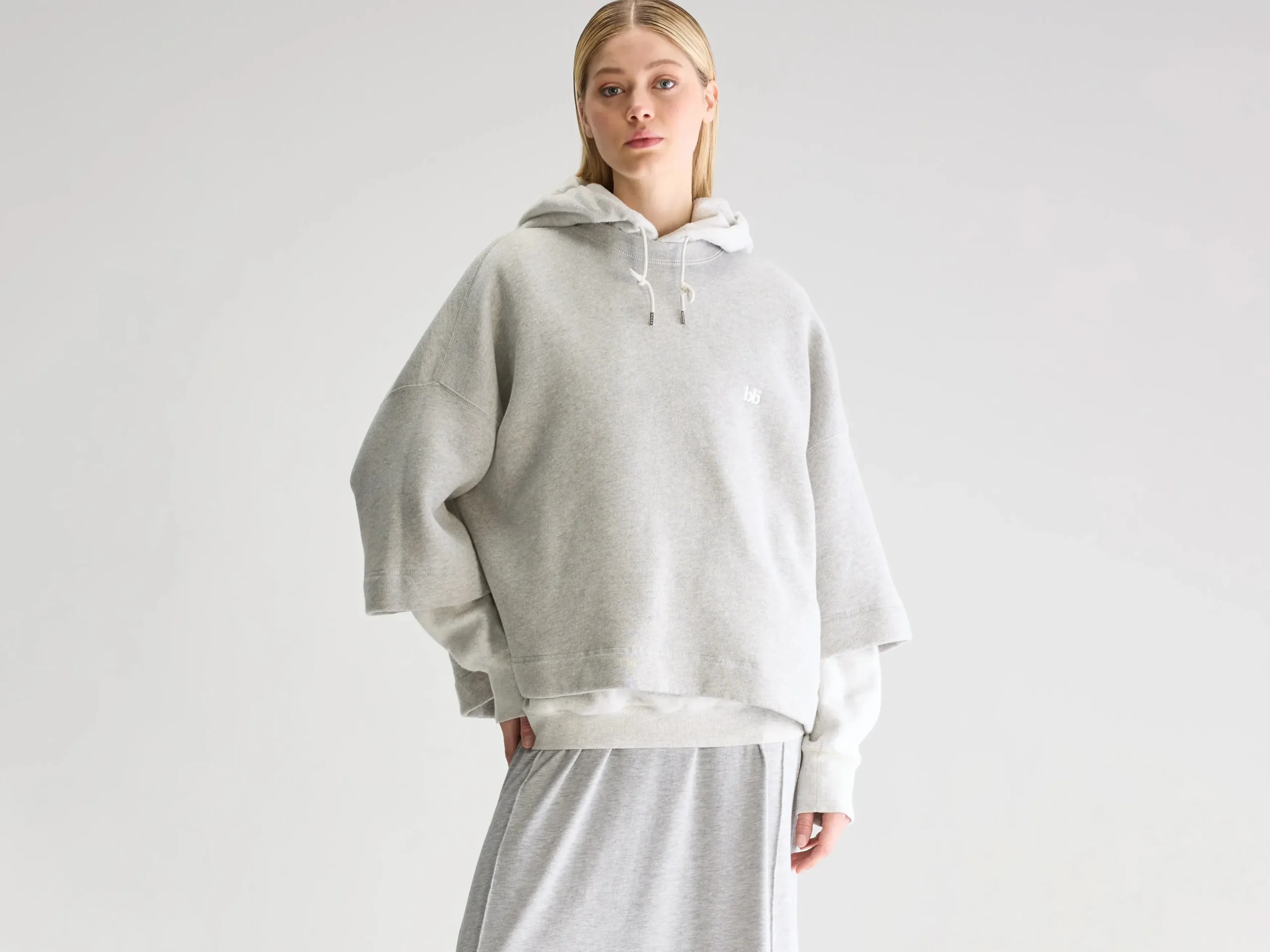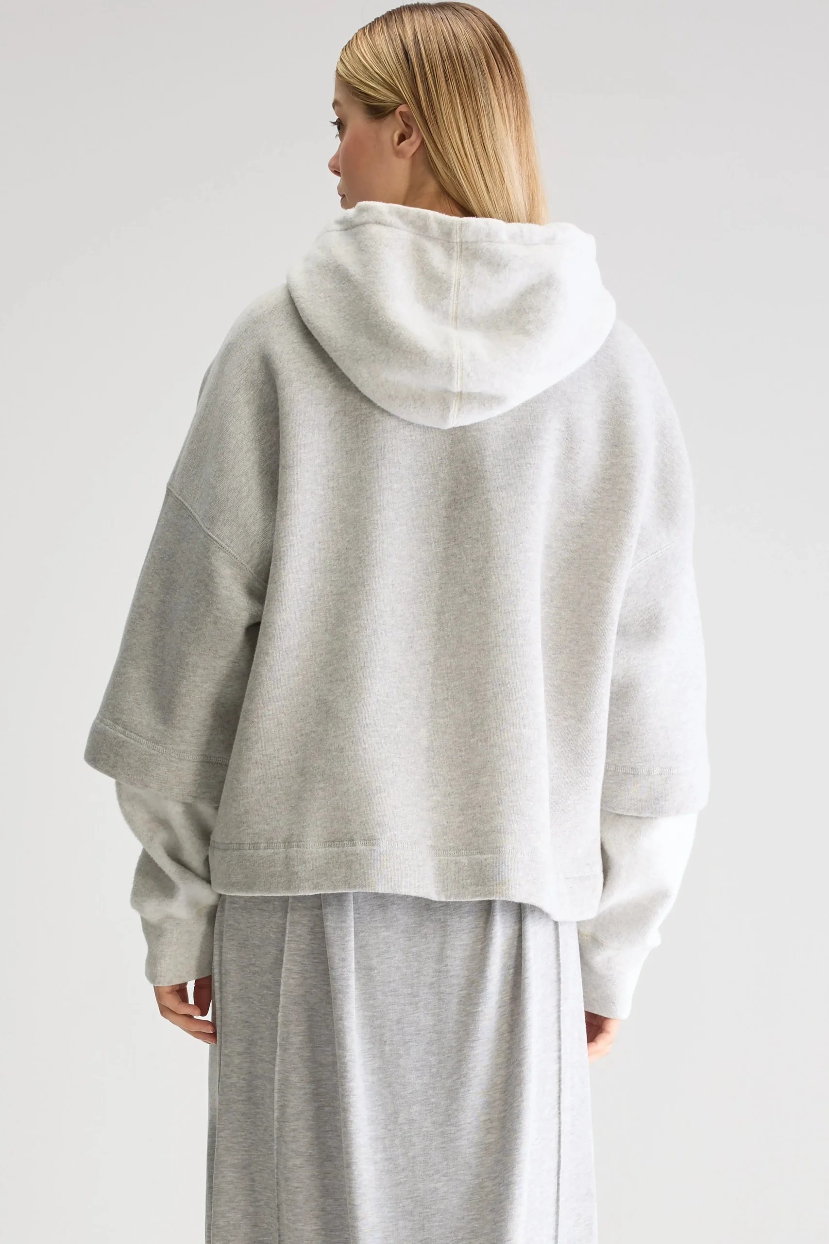 Oversized sweatshirt met korte mouwen, ronde hals en laaghangende schouders, gemaakt van lichte, chinégrijze fleece.Ove…