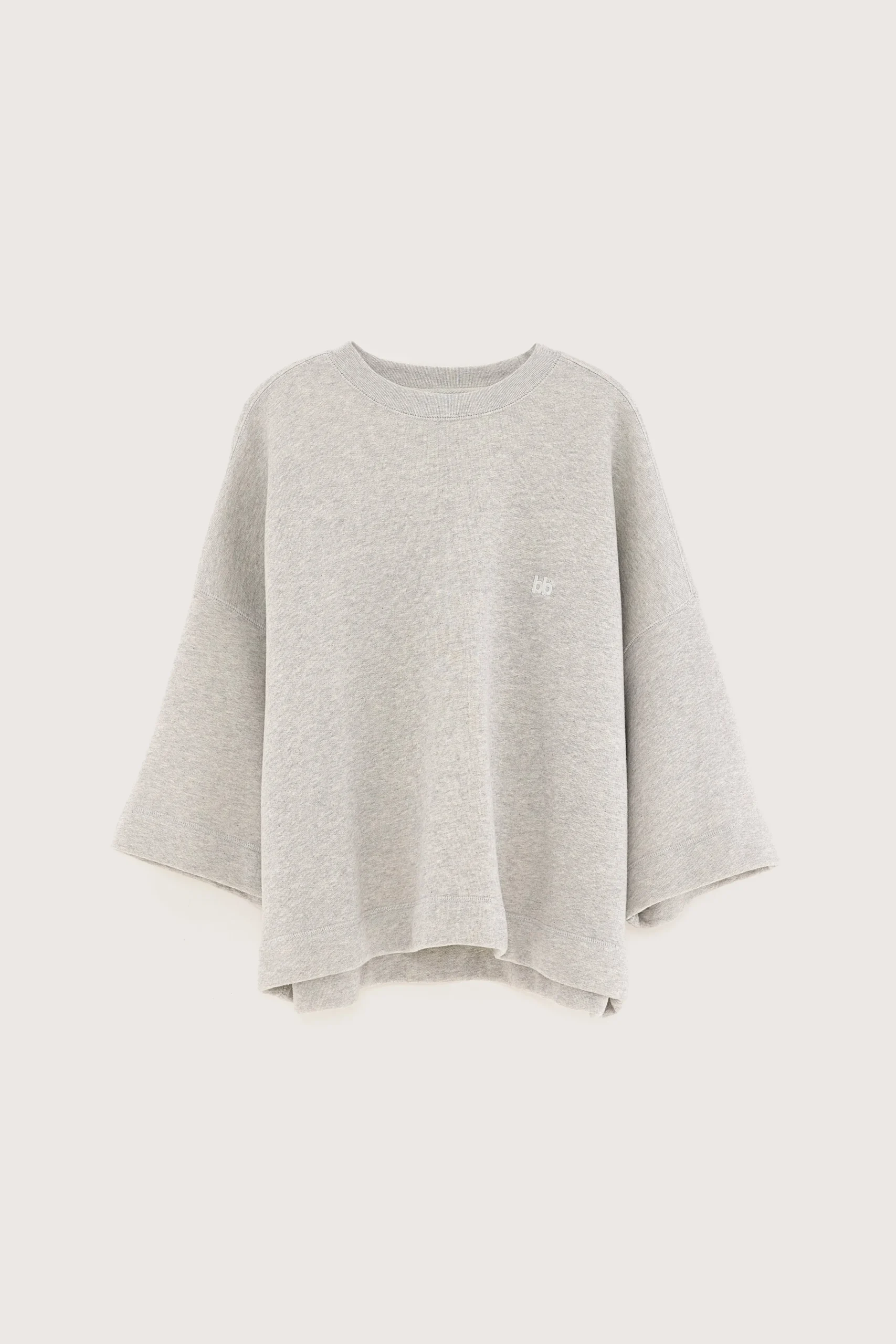 Oversized sweatshirt met korte mouwen, ronde hals en laaghangende schouders, gemaakt van lichte, chinégrijze fleece.Oversized pasvorm : Kies