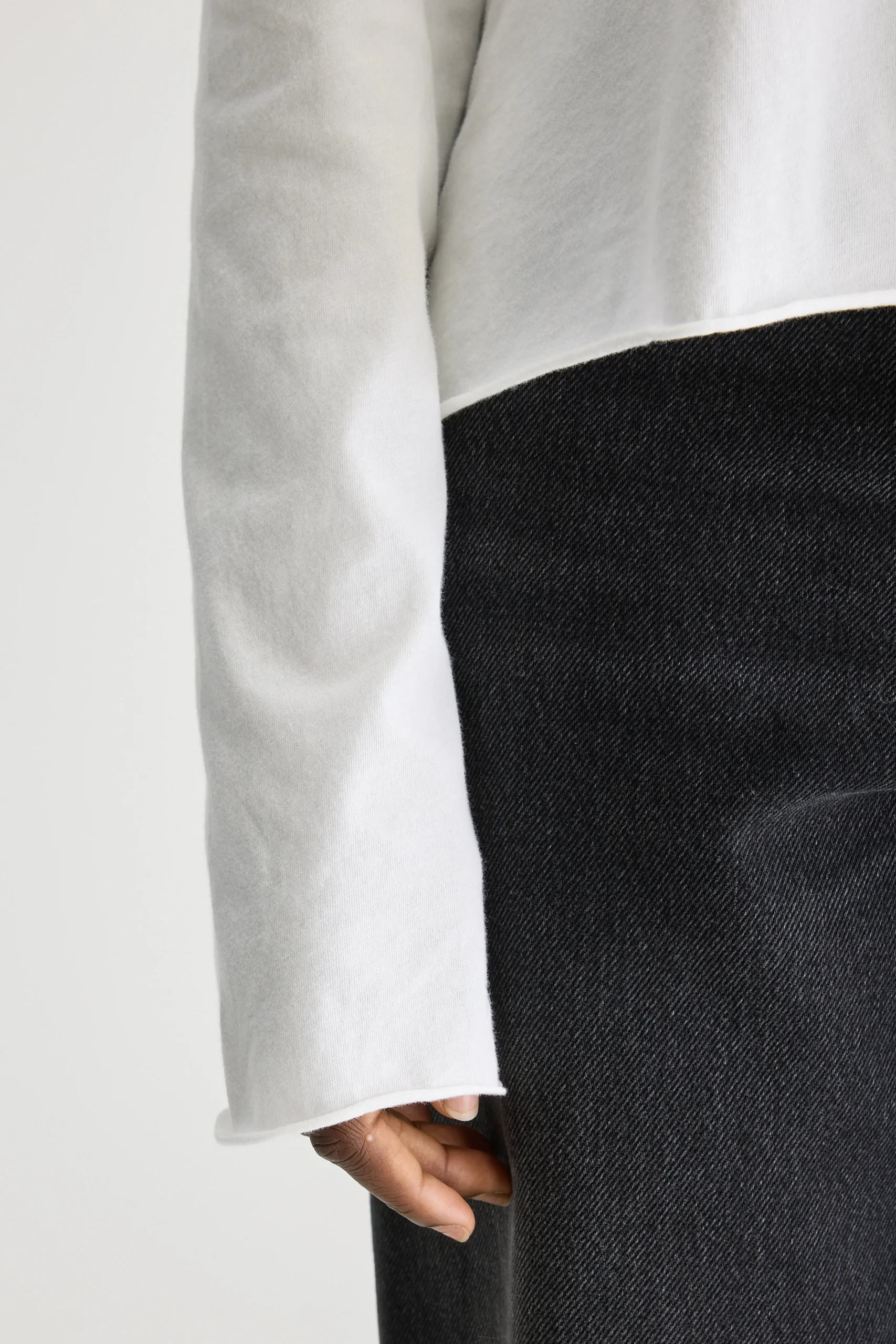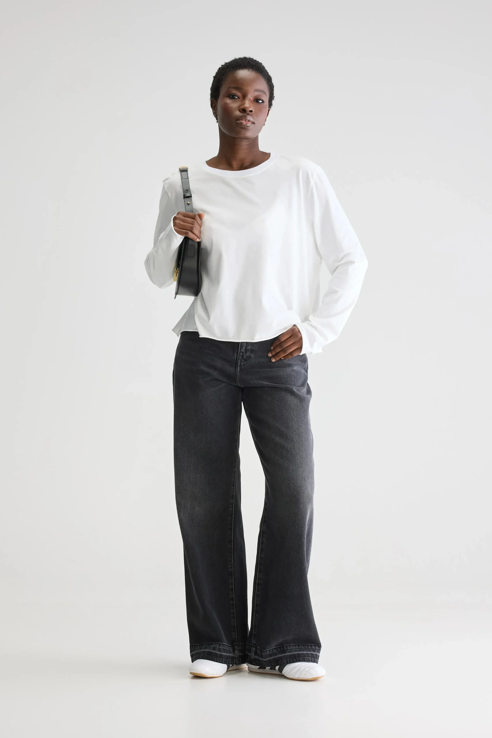 Klassiek t-shirt met lange mouwen en onafgewerkte randen, gemaakt van licht katoenjersey in wit.Regular pasvorm Lange mo…
