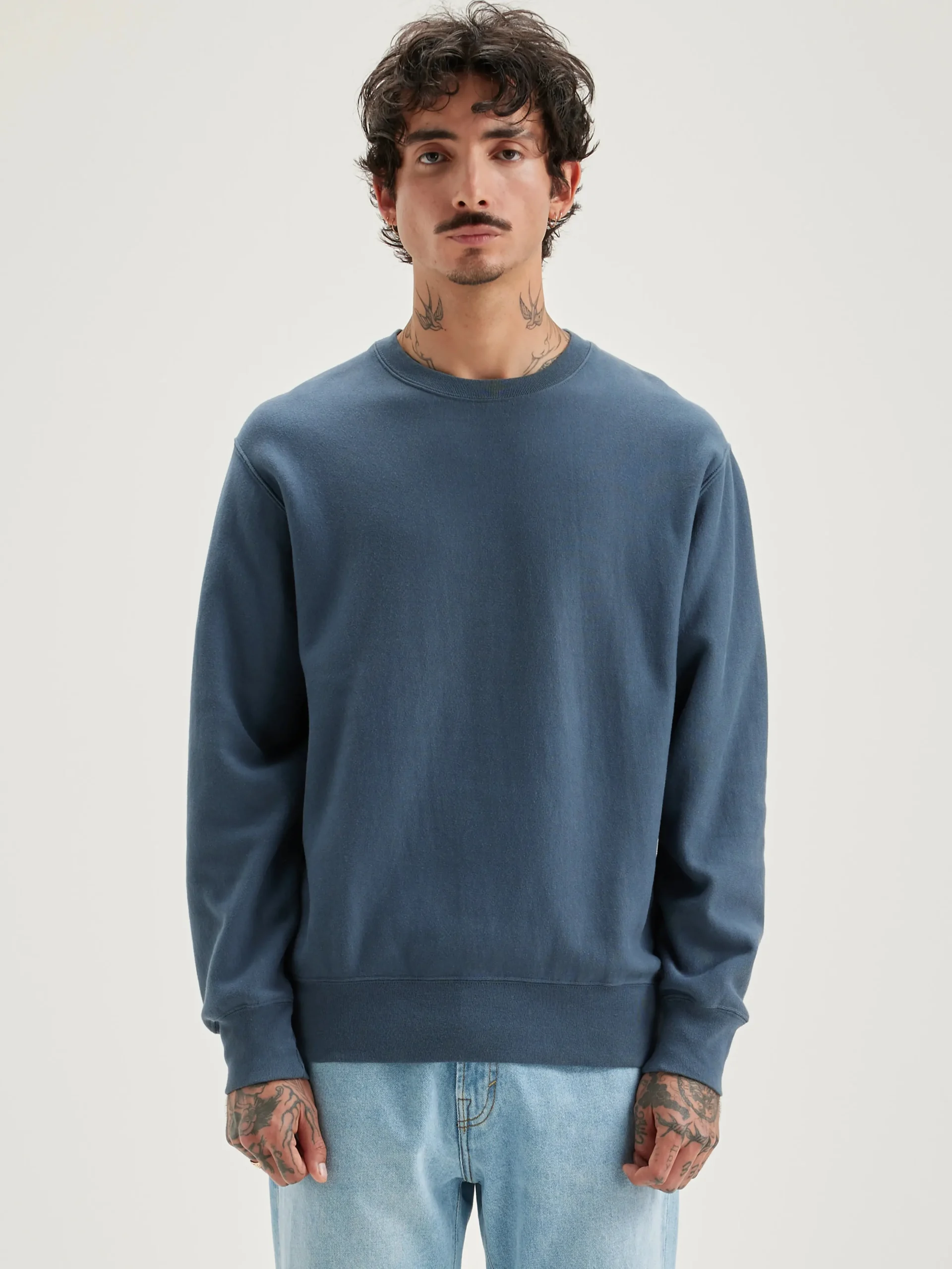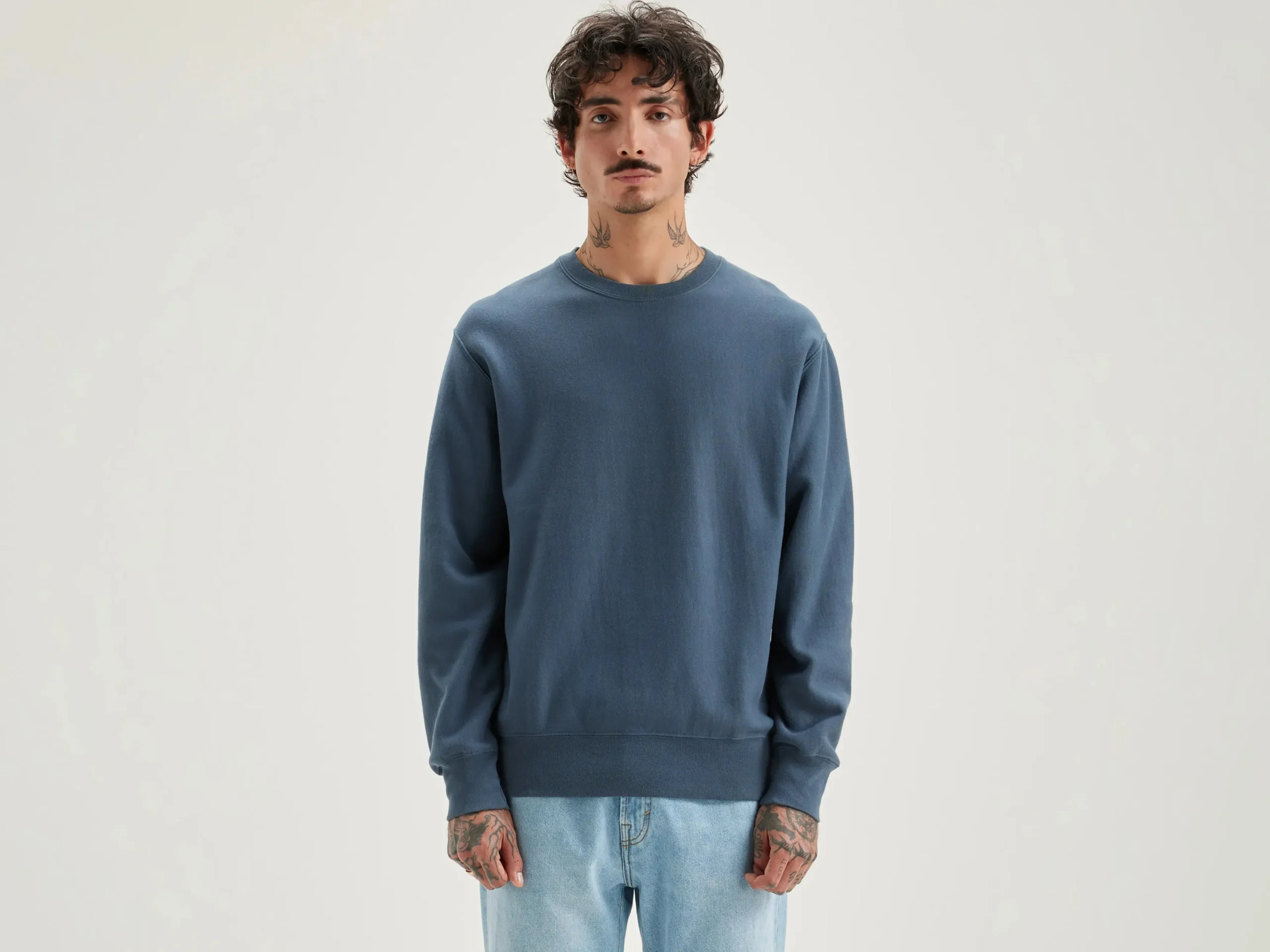 Regular crewneck sweatshirt van blauwe katoenjersey.rRegular vormrRonde halsrLange mouwenrGeribde randenr