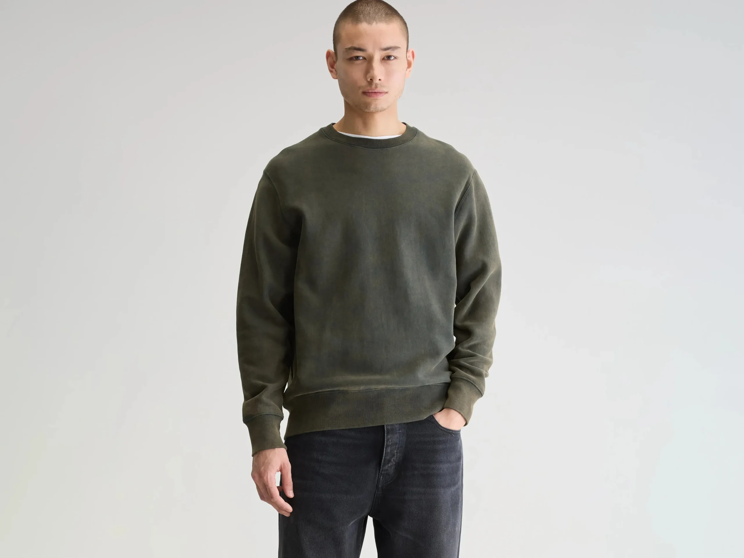 Klassieke sweatshirt met ronde hals en geribde boorden, gemaakt van geborsteld, donkergroen katoenfleece.Klassieke pasvorm Ronde hals Lange mouwen Geribde boorden