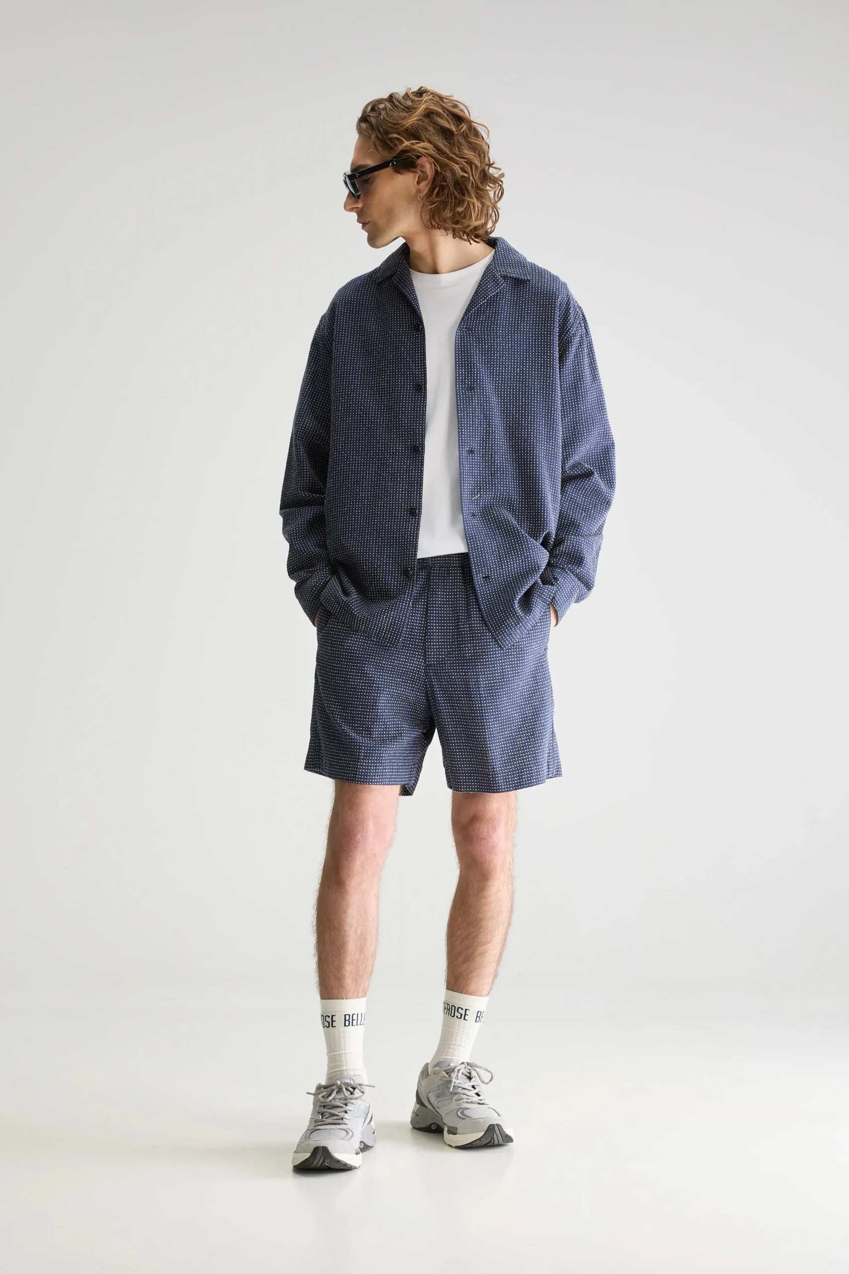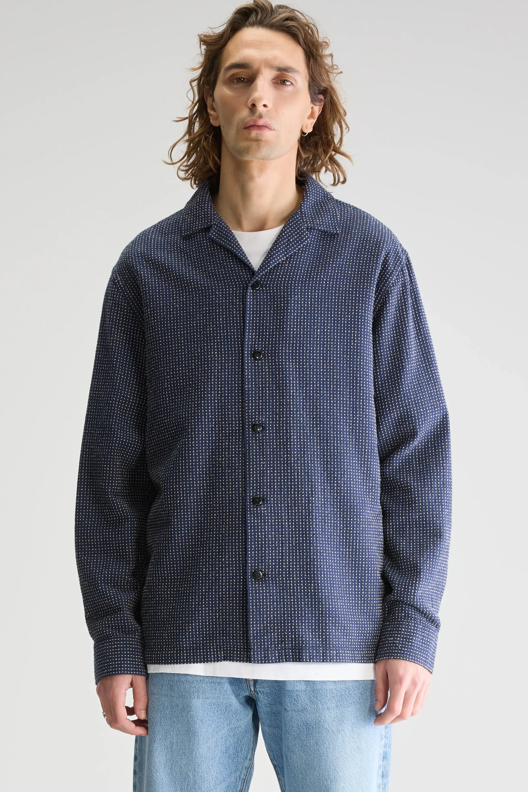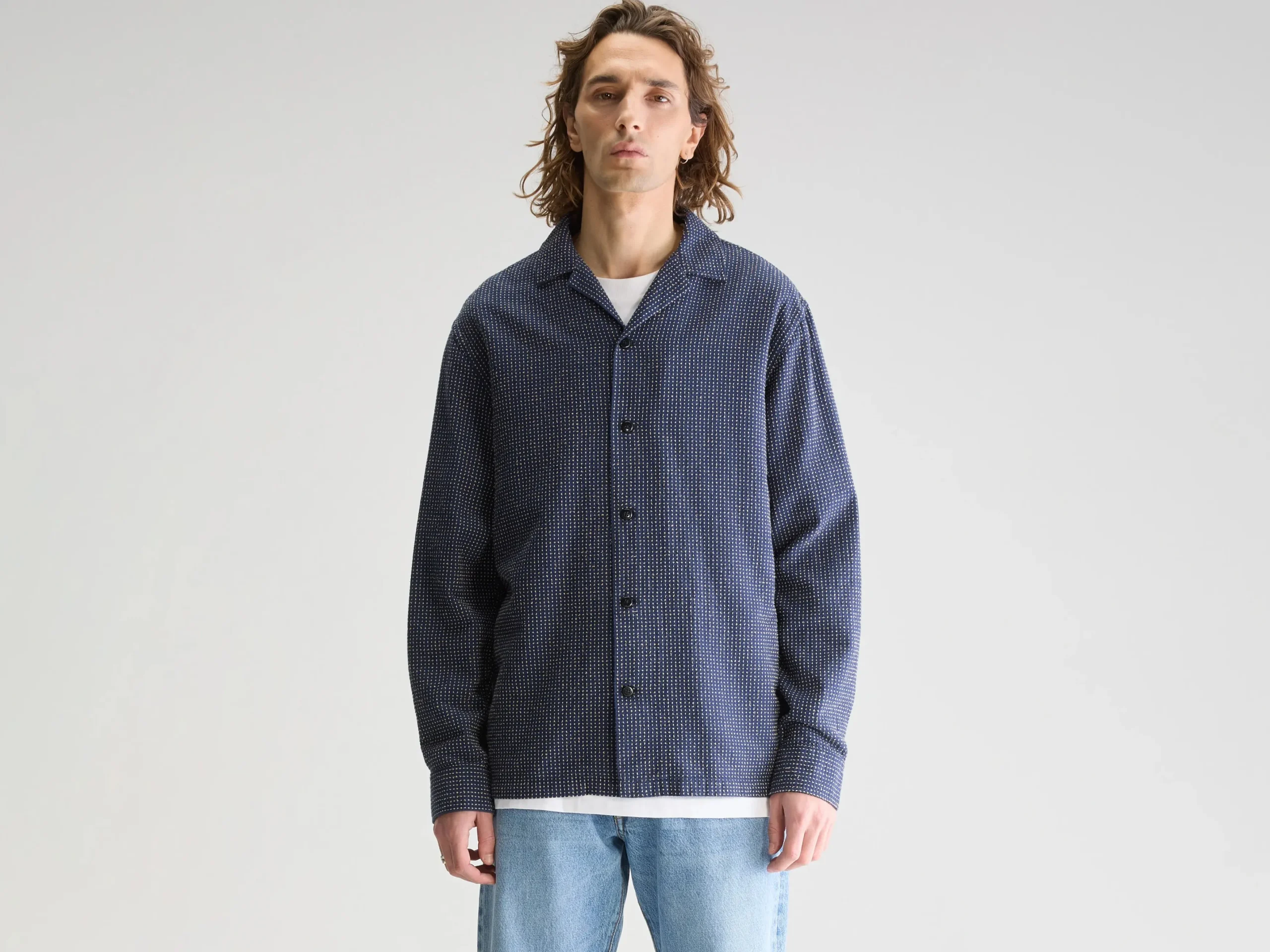Regular hemd met lange mouwen, gemaakt van getextureerd, indigoblauw katoen met ecru stippen.Regular pasvorm Camp collarLange mouwen met manchetknopenKnoopsluiting aan de voorkant Stof met structuur Rechte zoom
