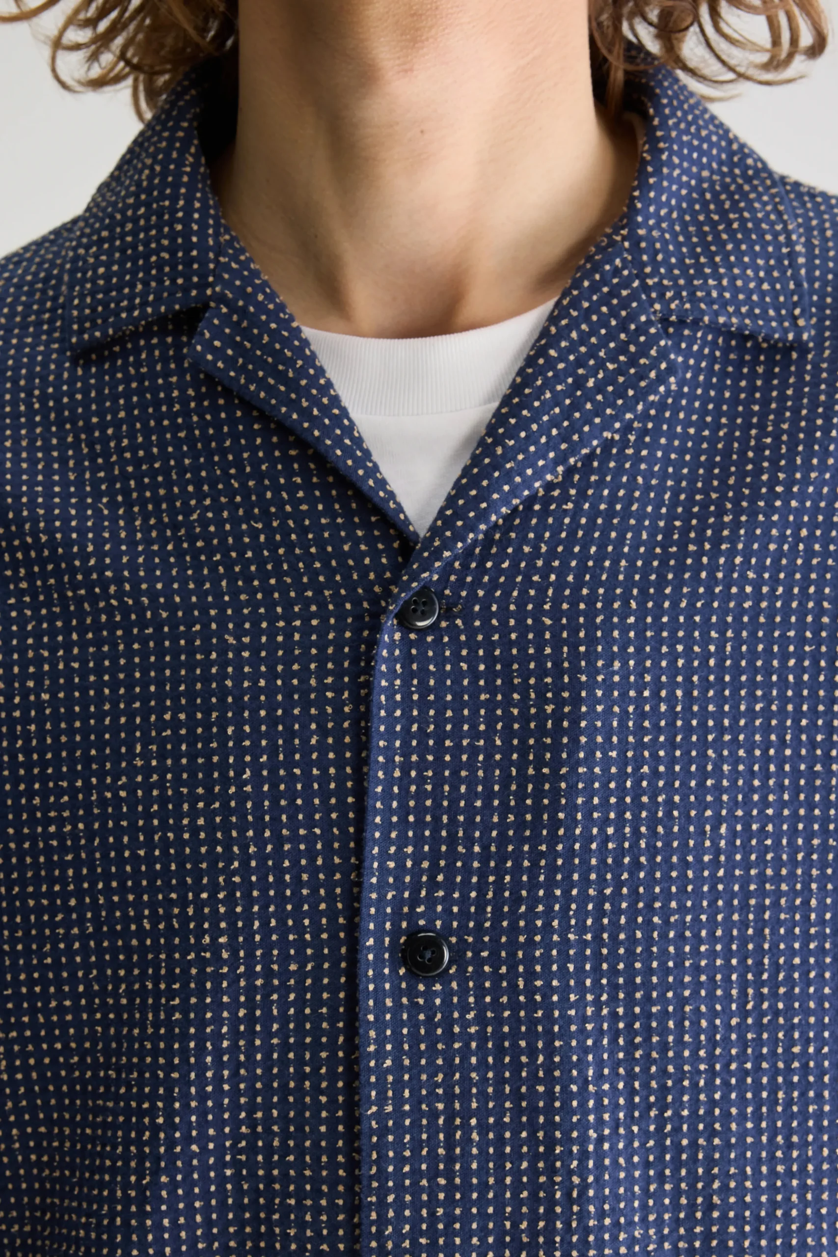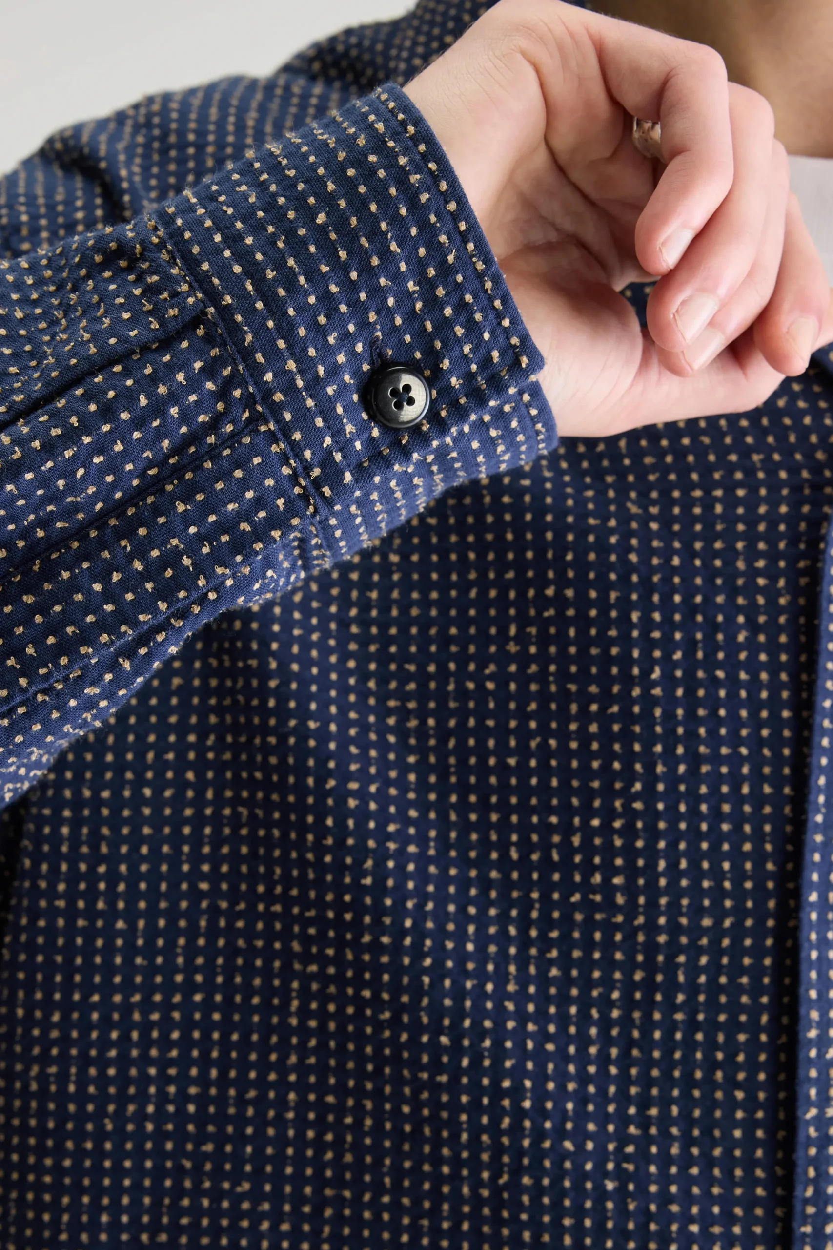 Regular hemd met lange mouwen, gemaakt van getextureerd, indigoblauw katoen met ecru stippen.Regular pasvorm Camp collar…