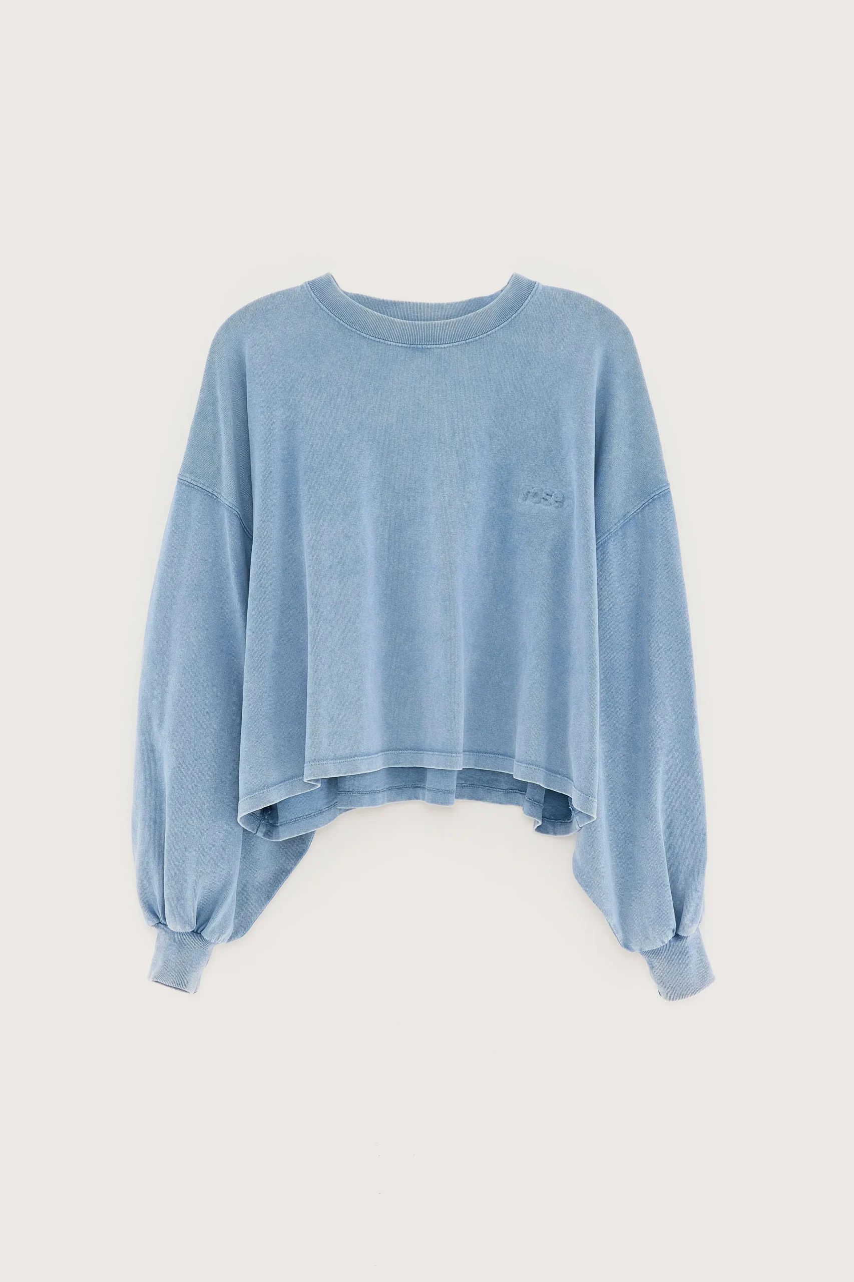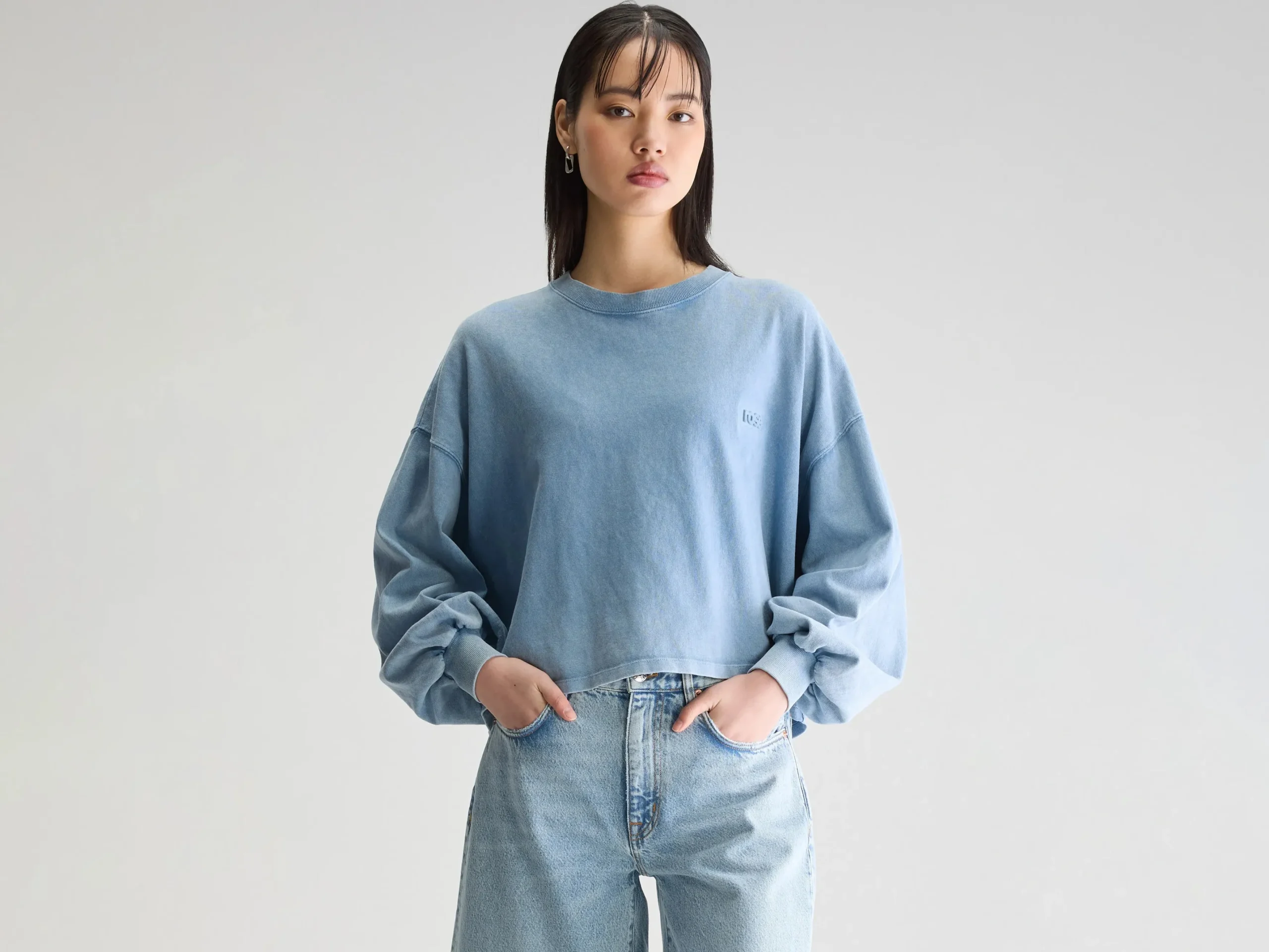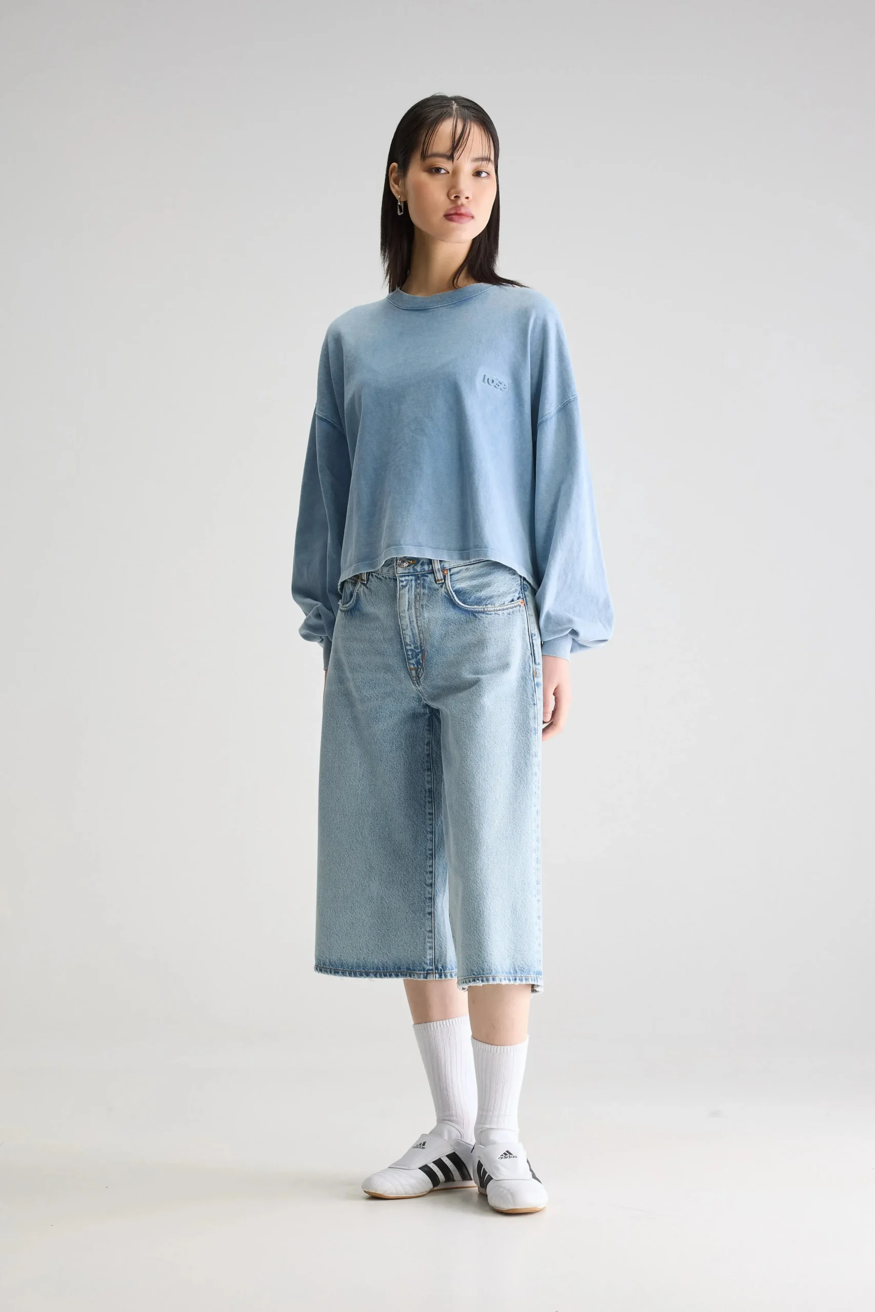 Klassiek t-shirt met lange mouwen en geribde boorden, gemaakt van zware katoenjersey in denimblauw.Regular pasvorm Lange…