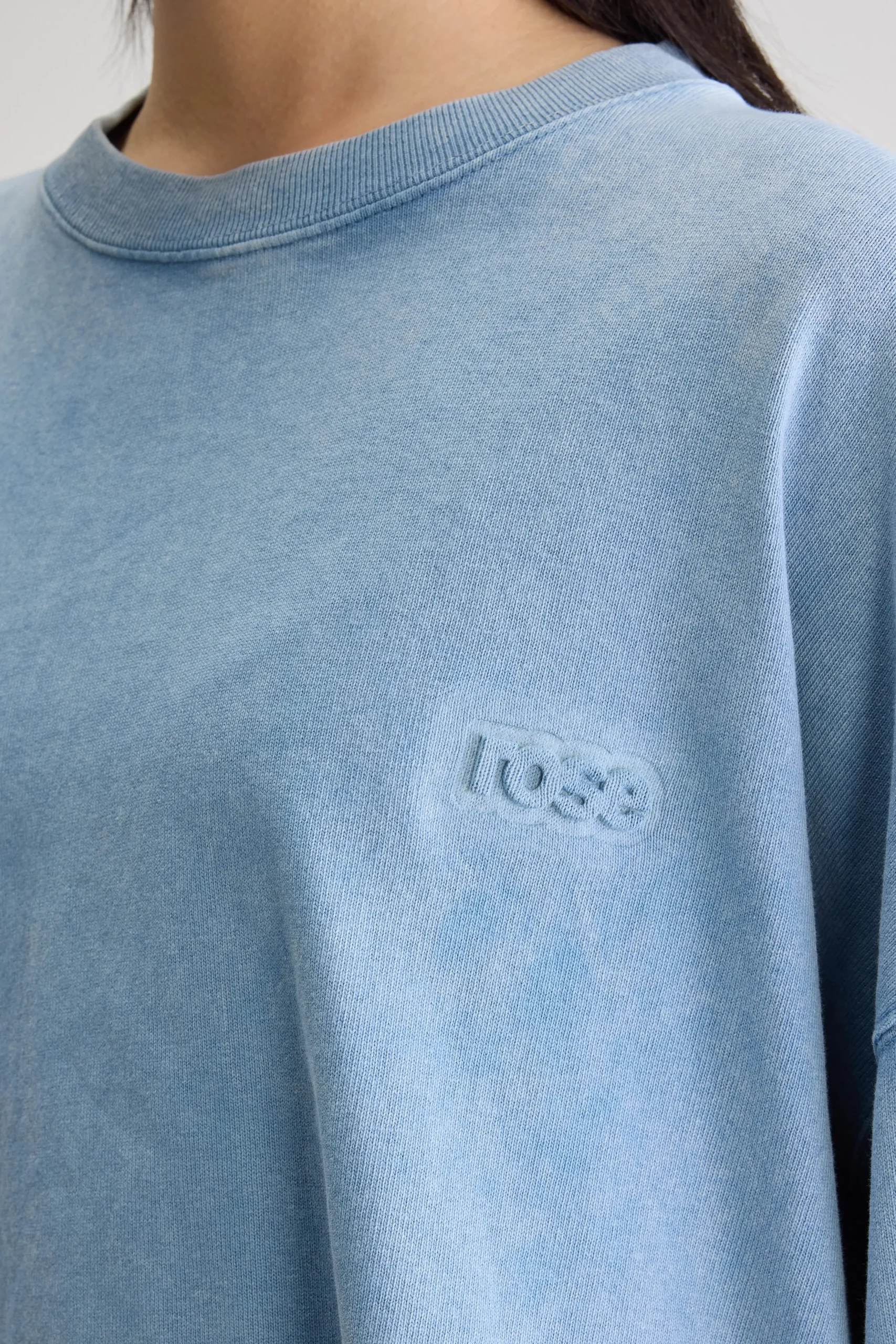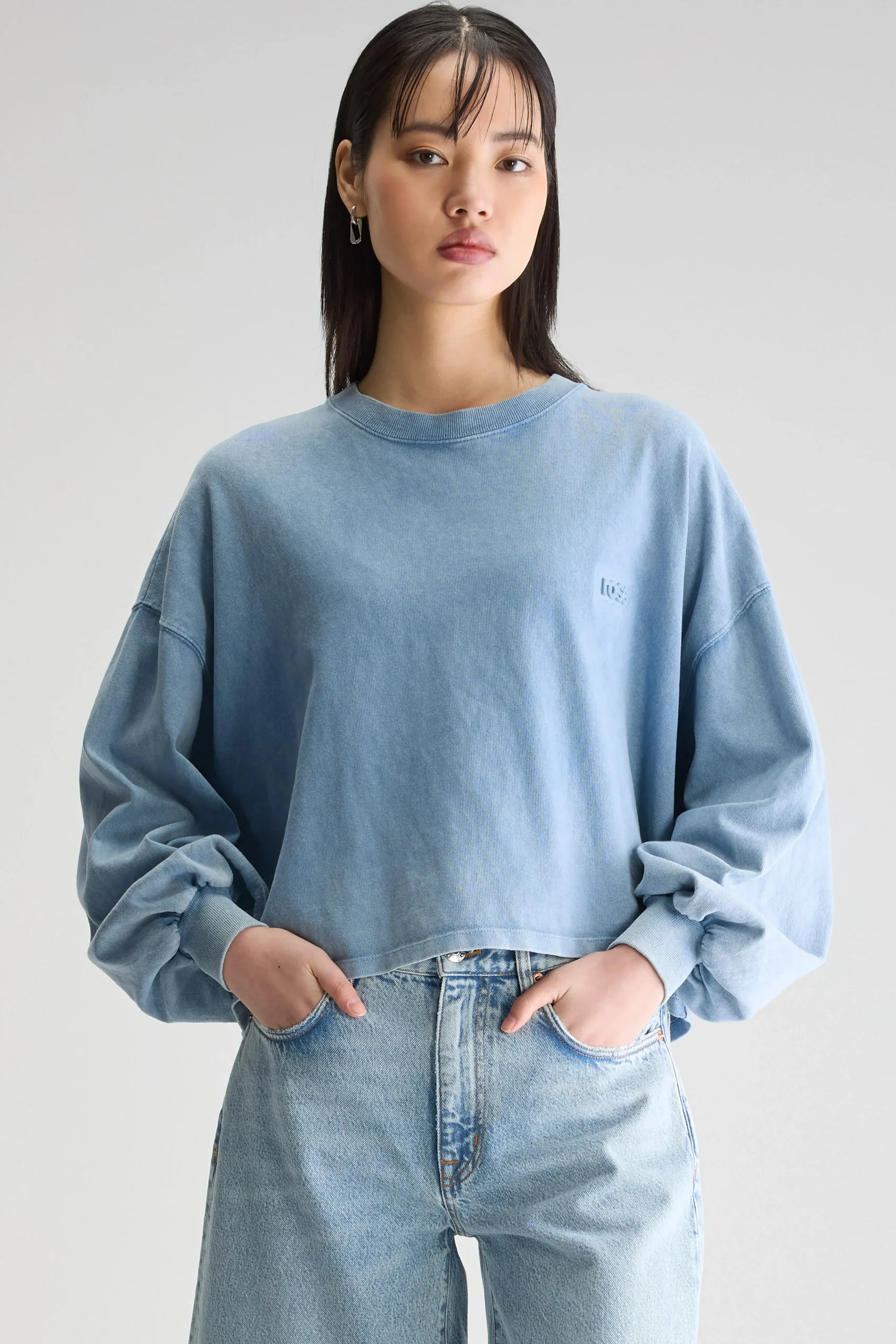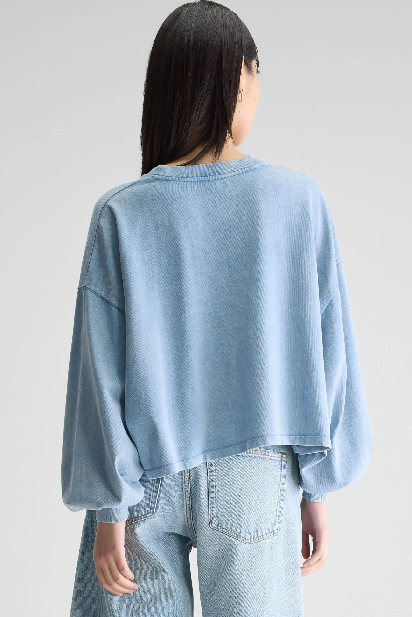 Klassiek t-shirt met lange mouwen en geribde boorden, gemaakt van zware katoenjersey in denimblauw.Regular pasvorm Lange mouwen Ronde hals Geribde randenZware jersey stof