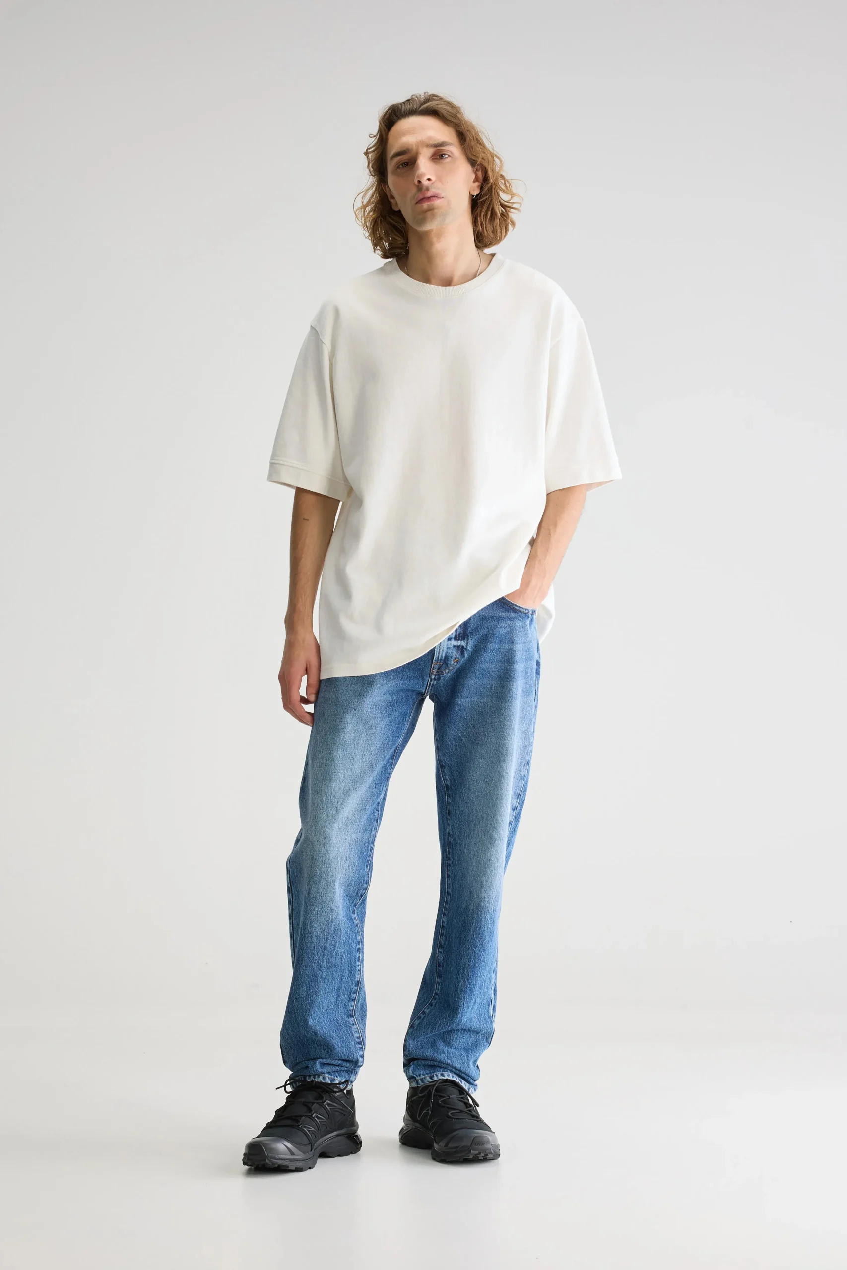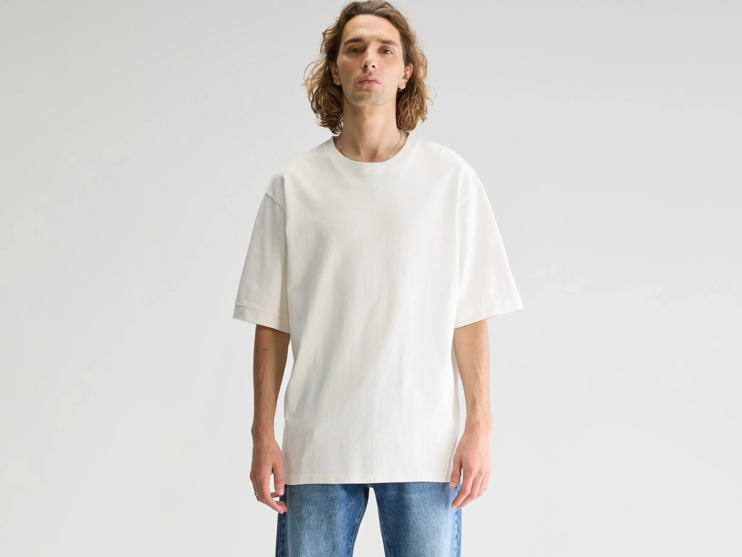 Oversized T-shirt met korte mouwen en schuin gesneden randen, gemaakt van zwaar, gebroken wit katoenjersey.Oversized pasvorm : Kies