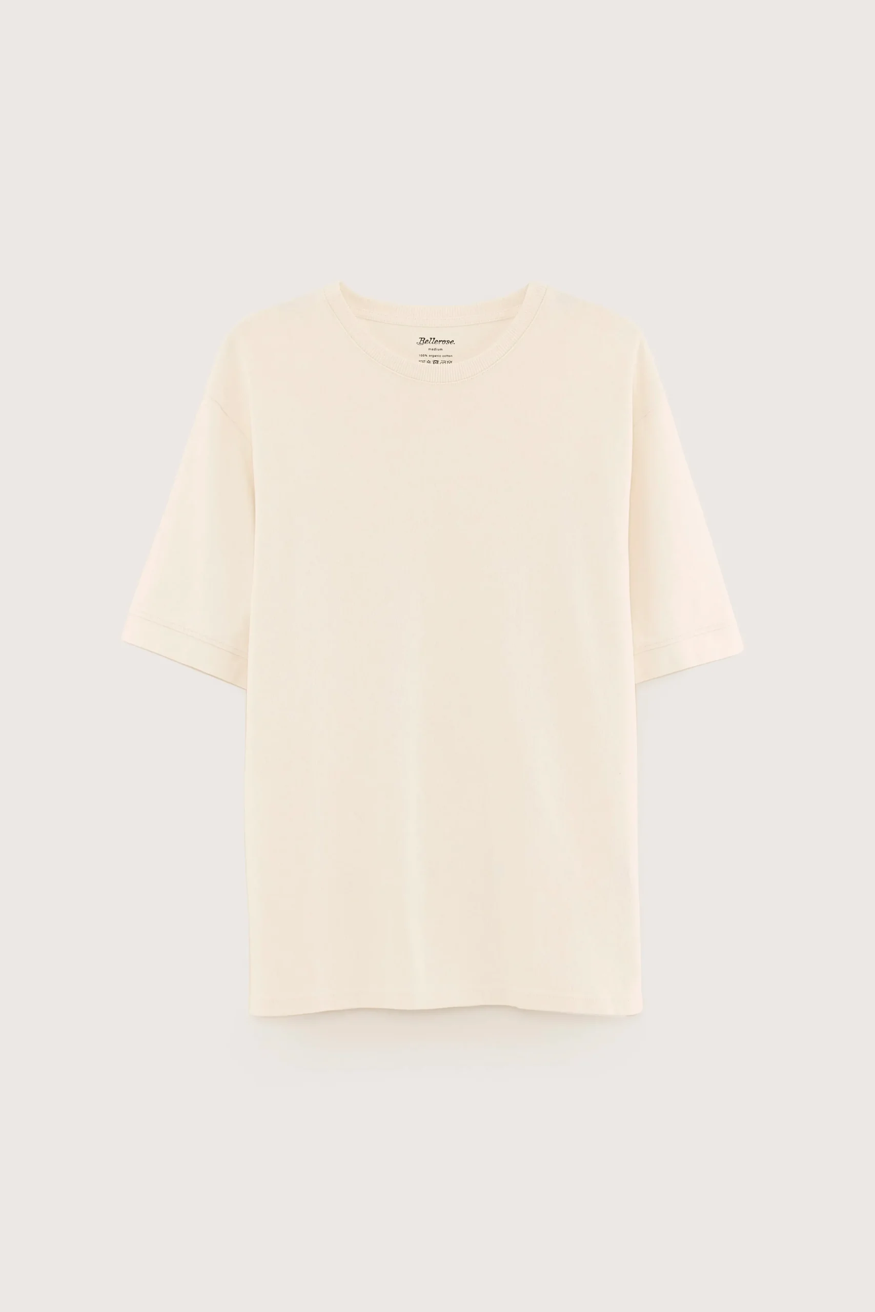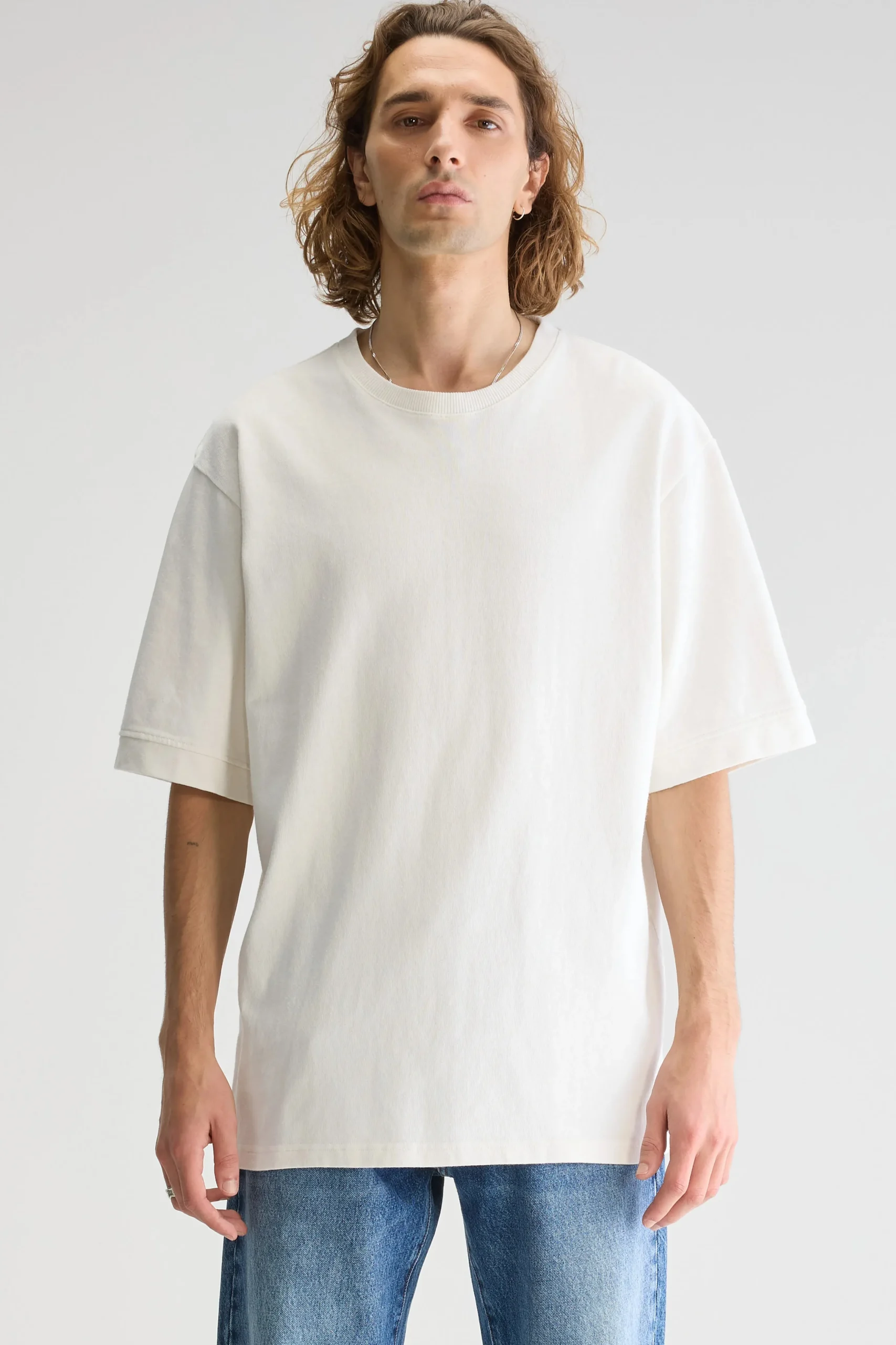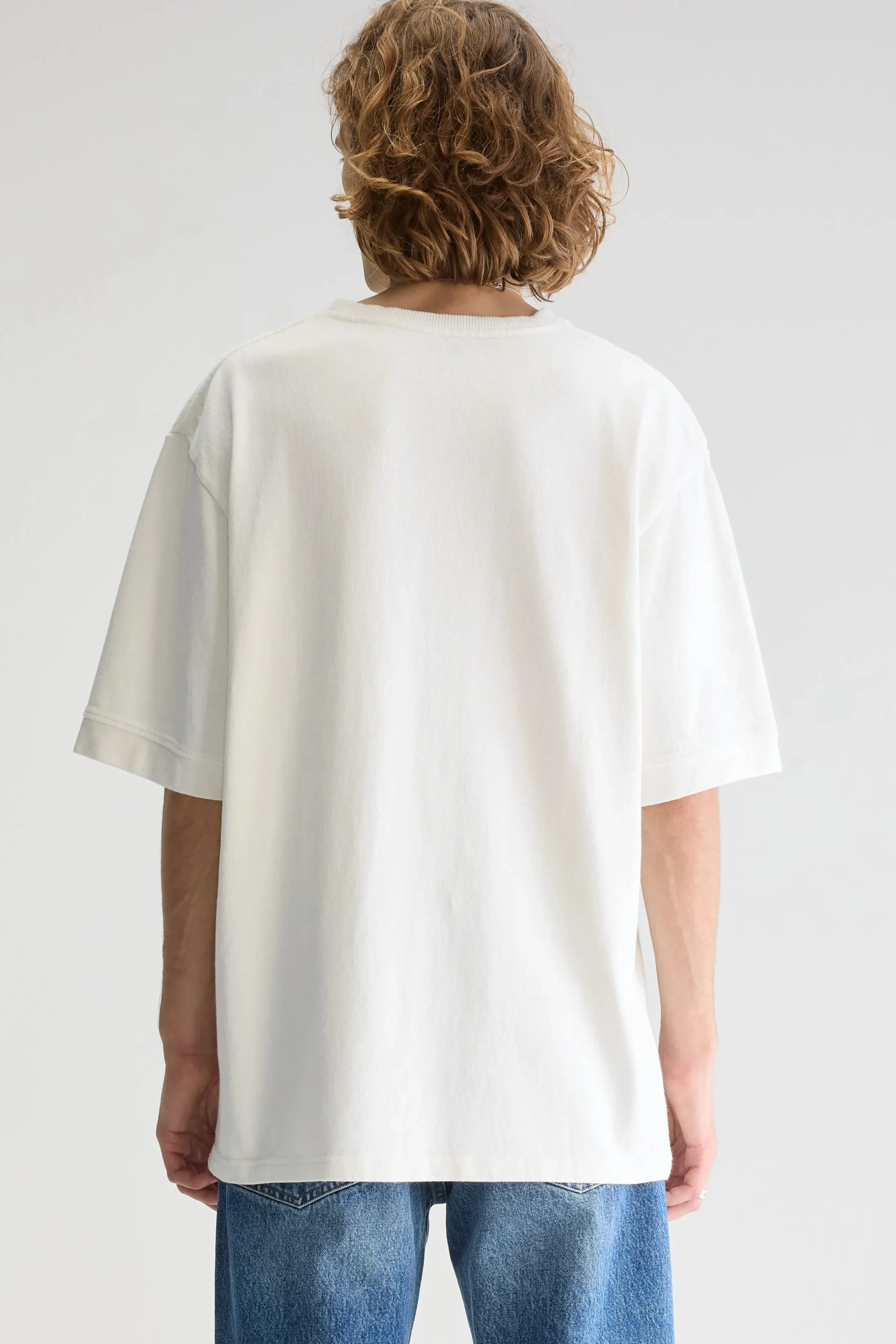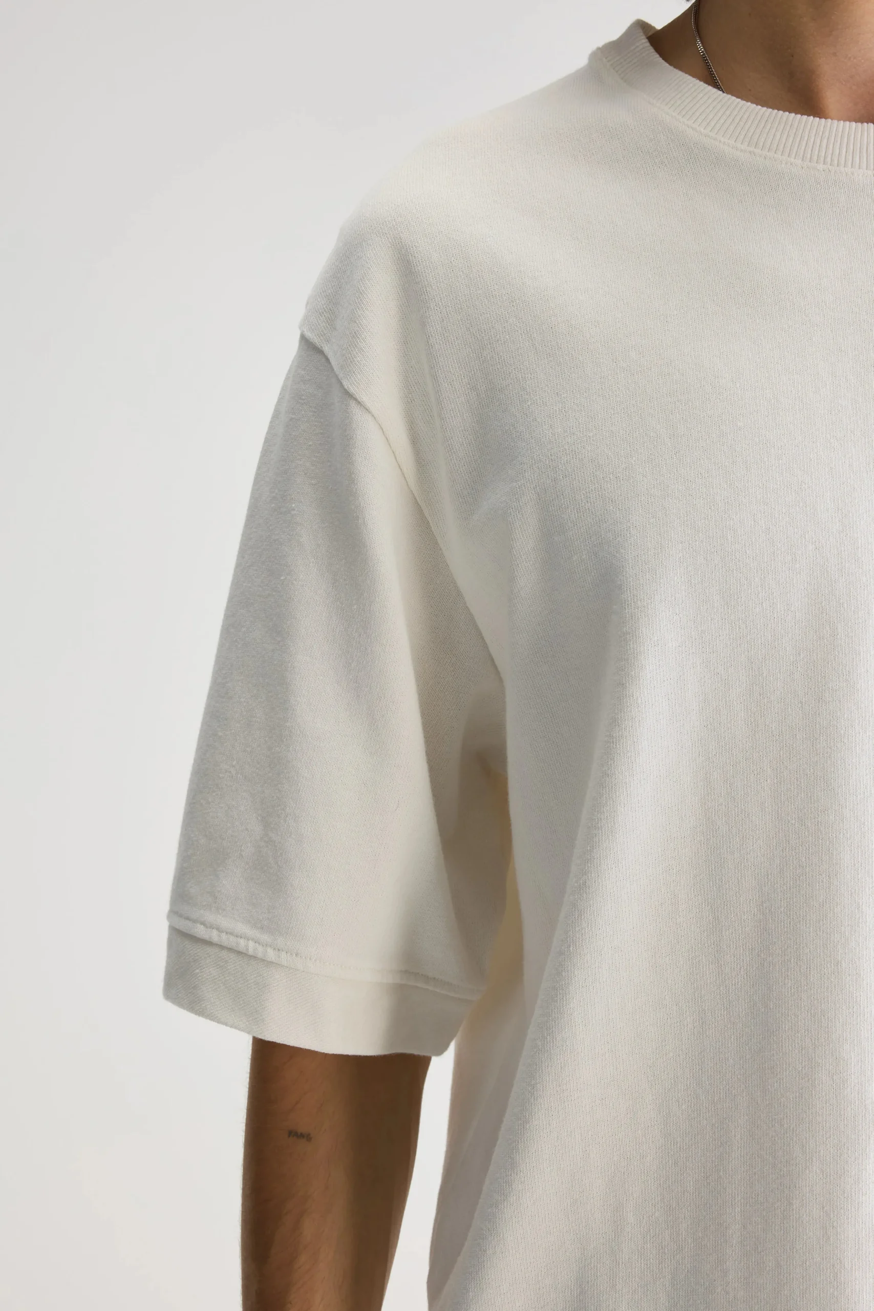 Oversized T-shirt met korte mouwen en schuin gesneden randen, gemaakt van zwaar, gebroken wit katoenjersey.Oversized pas…