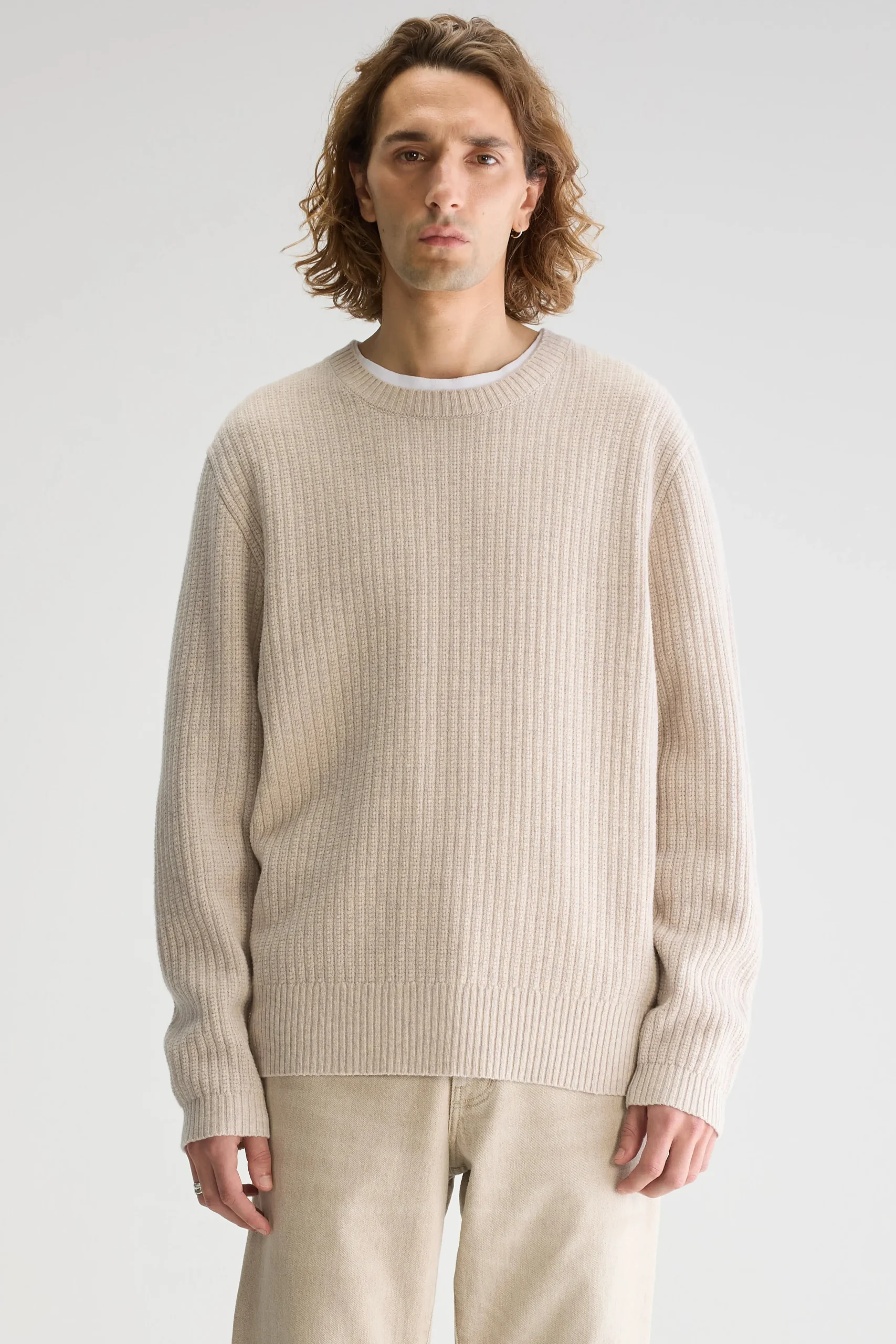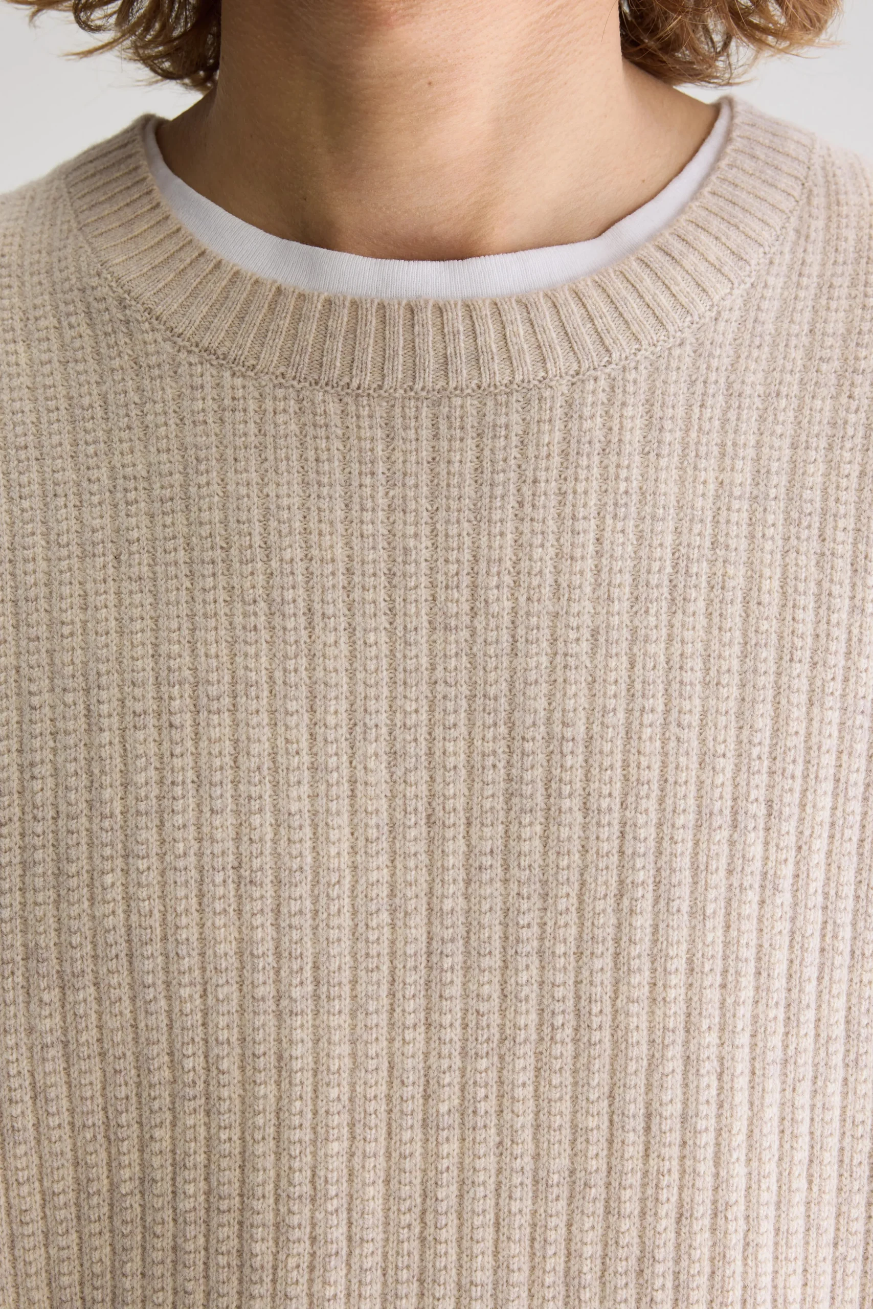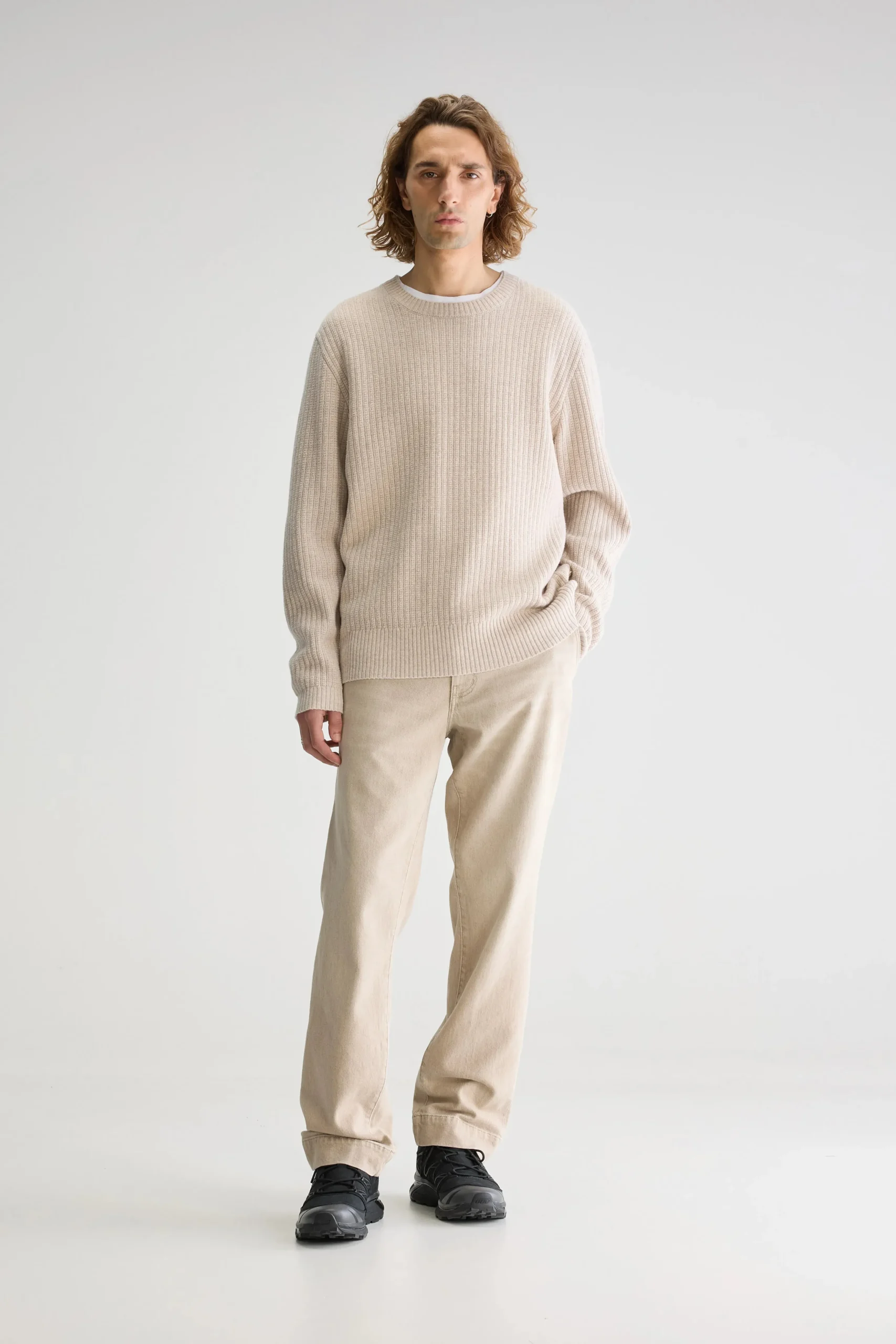 Losse trui met ronde hals, gemaakt van ribgebreide, lichtgrijze merinowol.Losse pasvorm Ronde hals Lange mouwen Gebreid ribpatroonMedium gauge