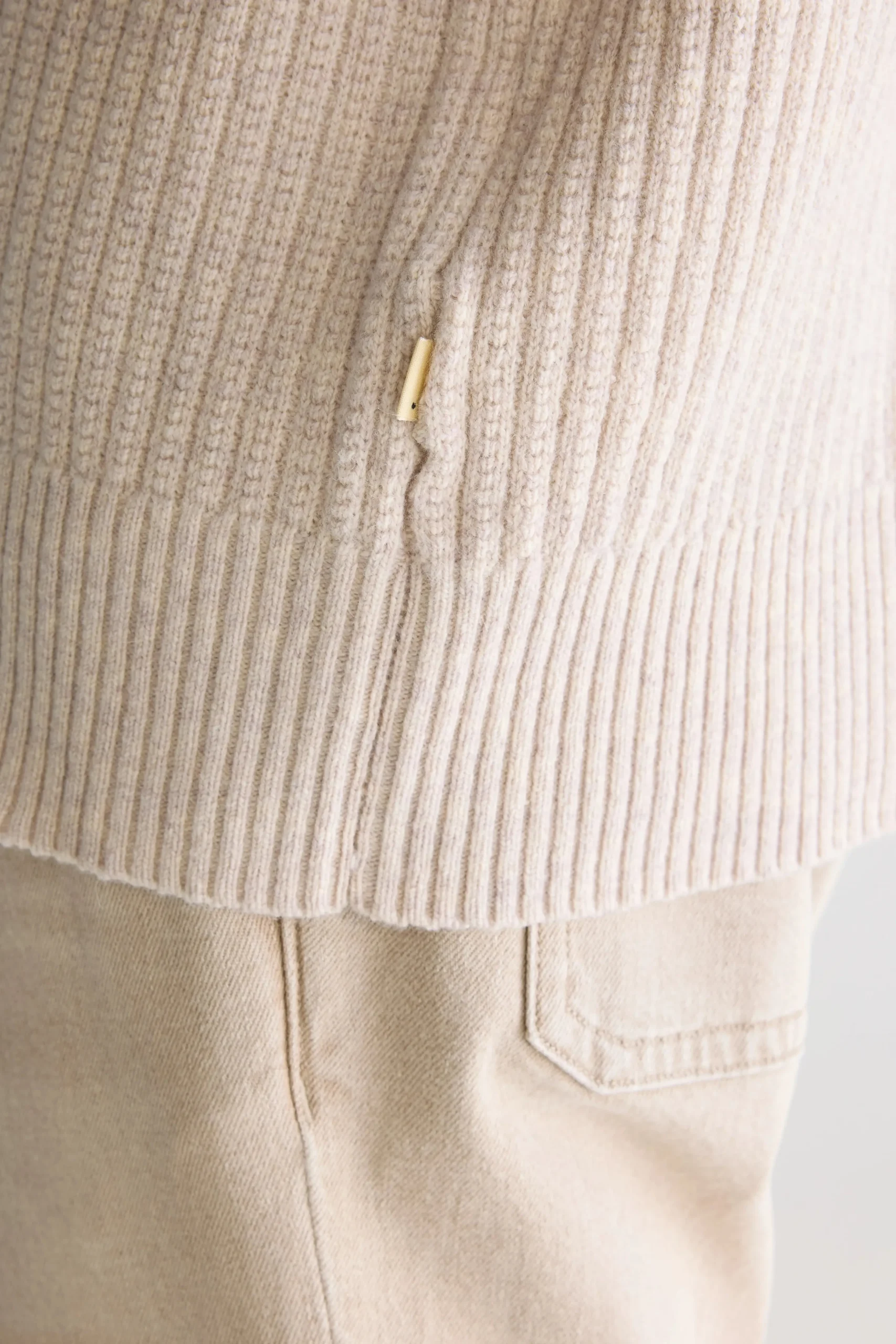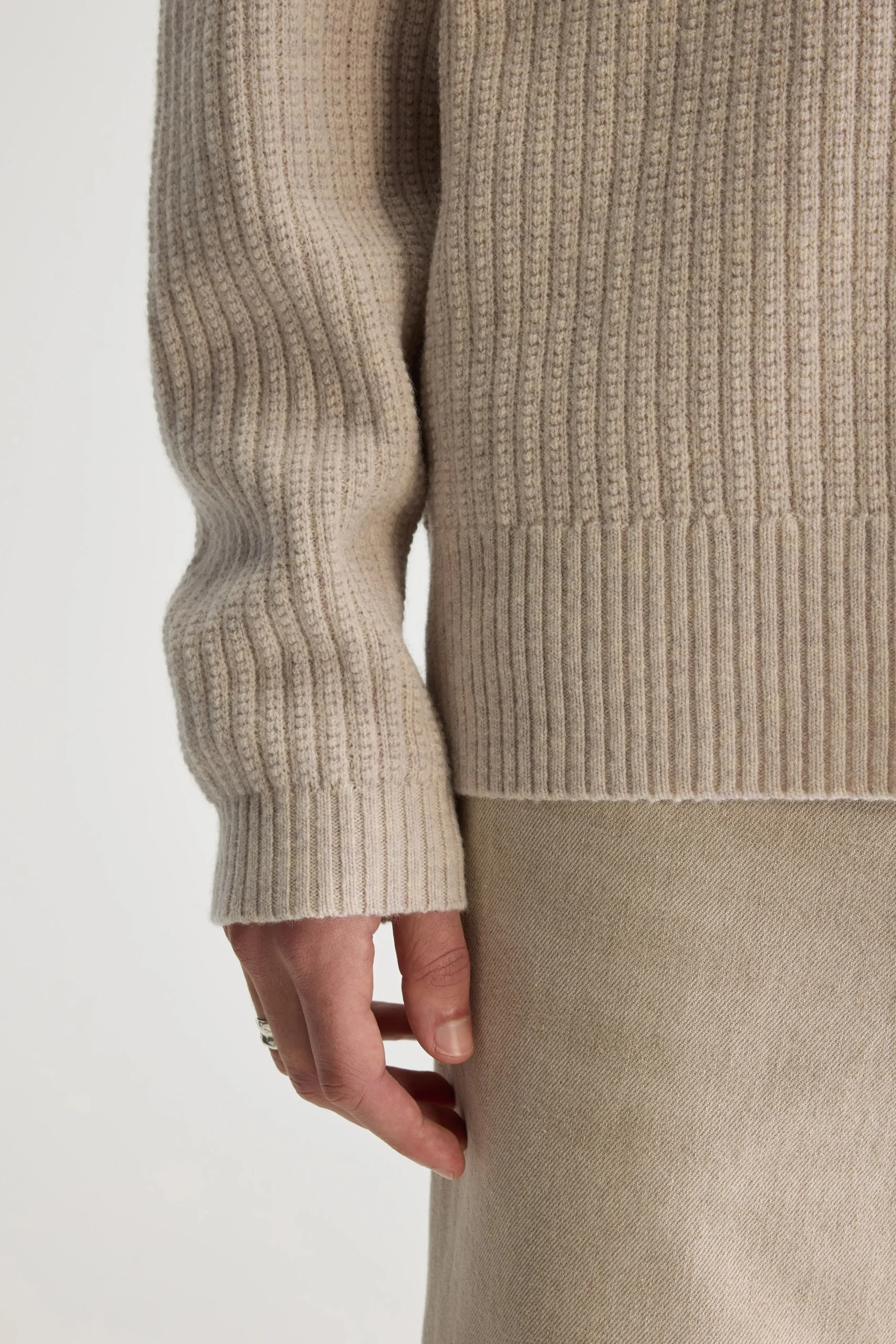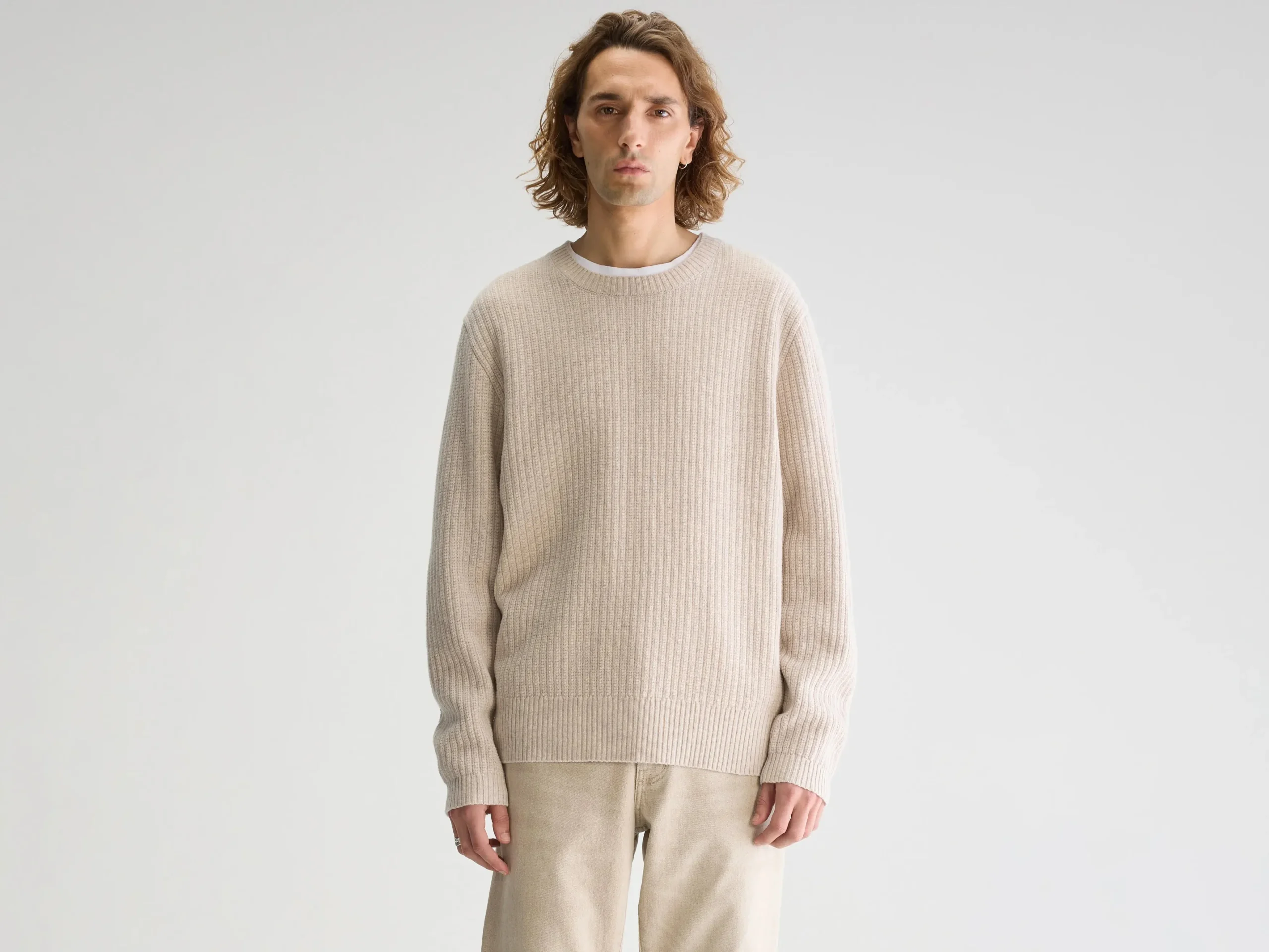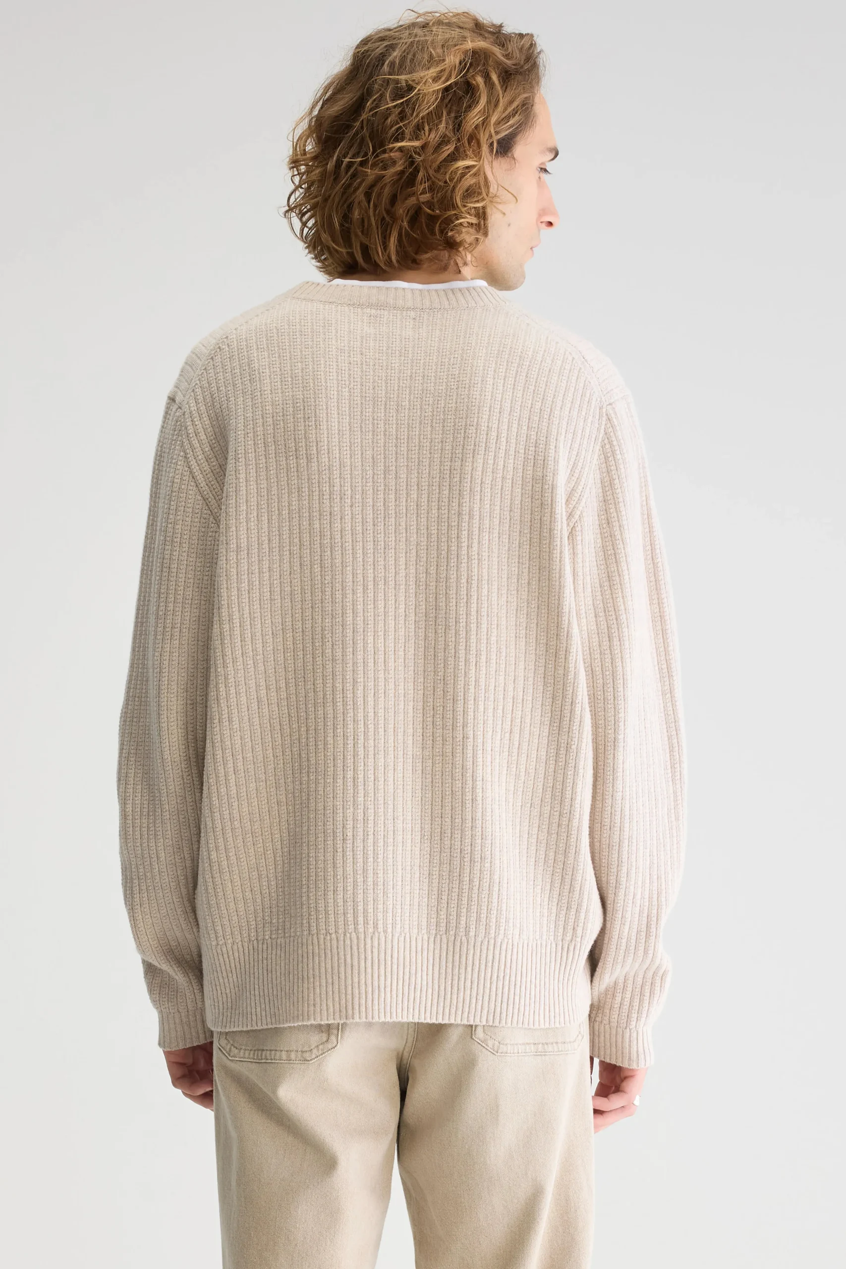 Losse trui met ronde hals, gemaakt van ribgebreide, lichtgrijze merinowol.Losse pasvorm Ronde hals Lange mouwen Gebreid ribpatroonMedium gauge