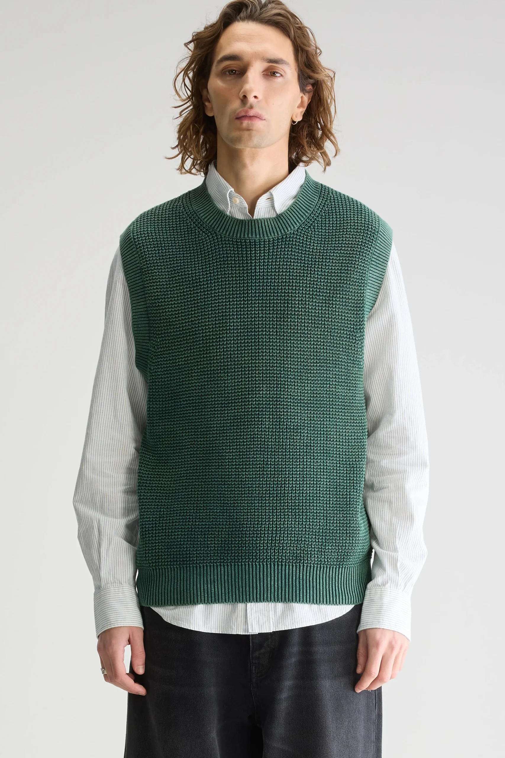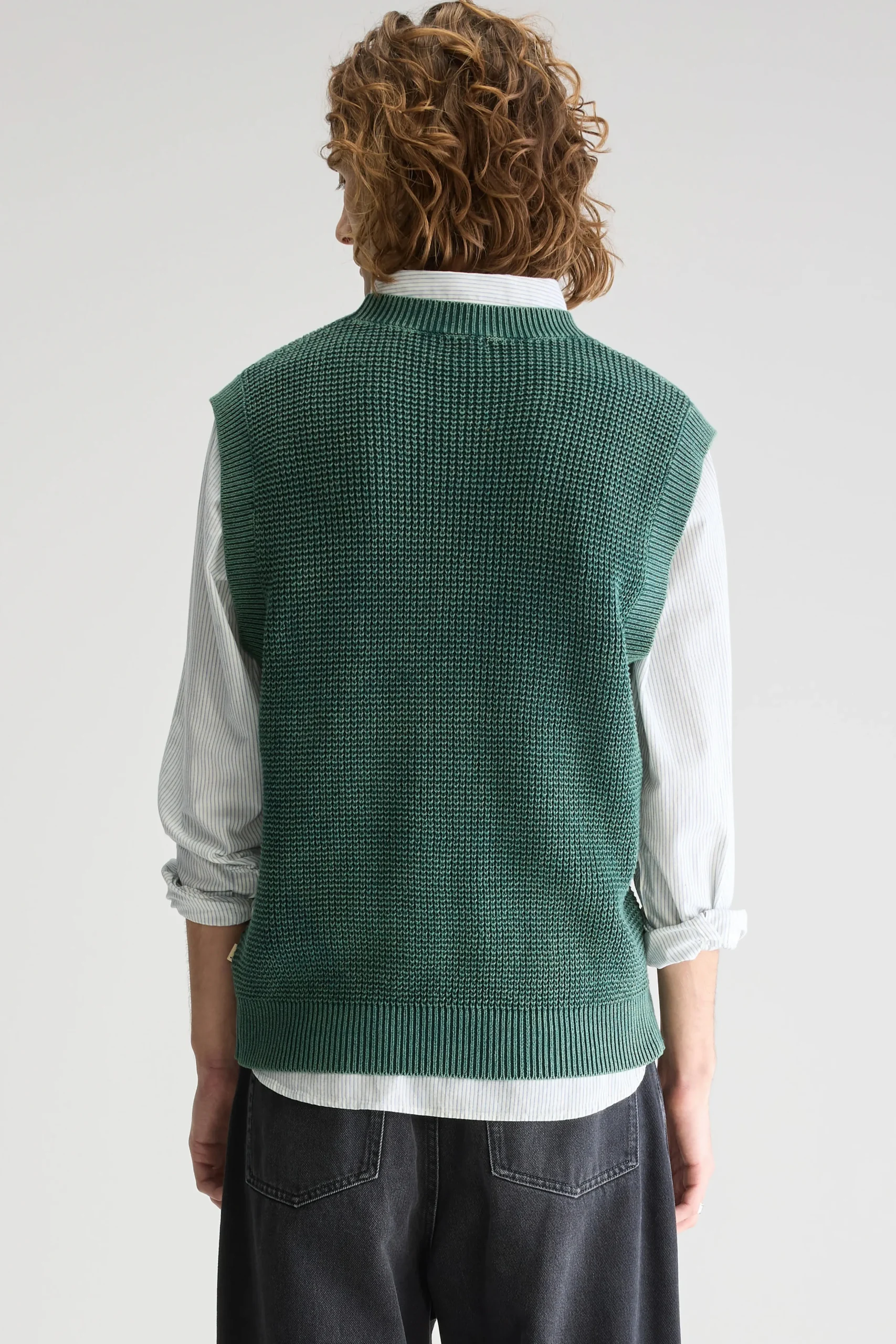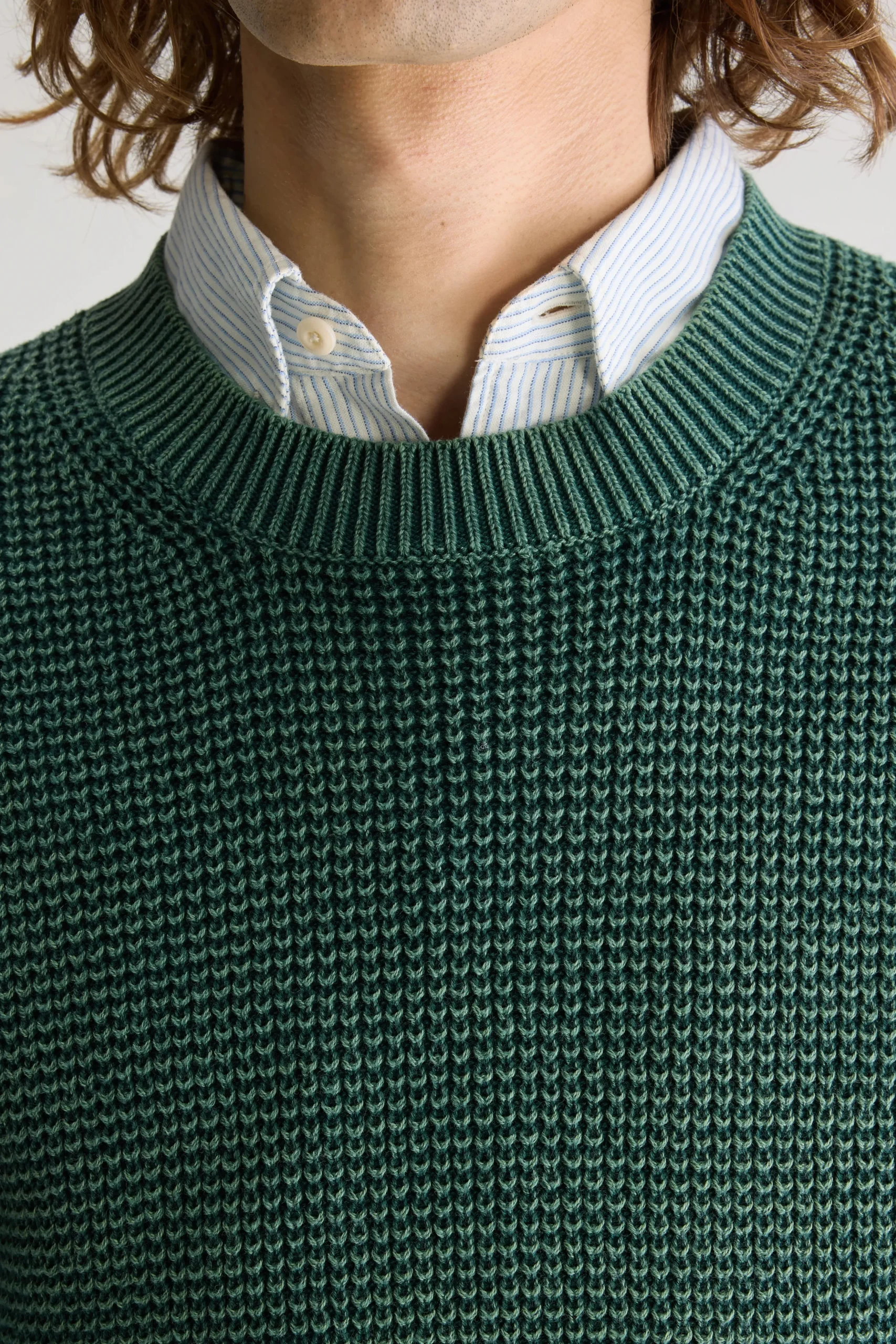 Klassieke trui, gemaakt van flesgroen waffle knit katoen met acid wash afwerking.Klassieke pasvorm Ronde hals Waffle knit, acid washThick gauge
