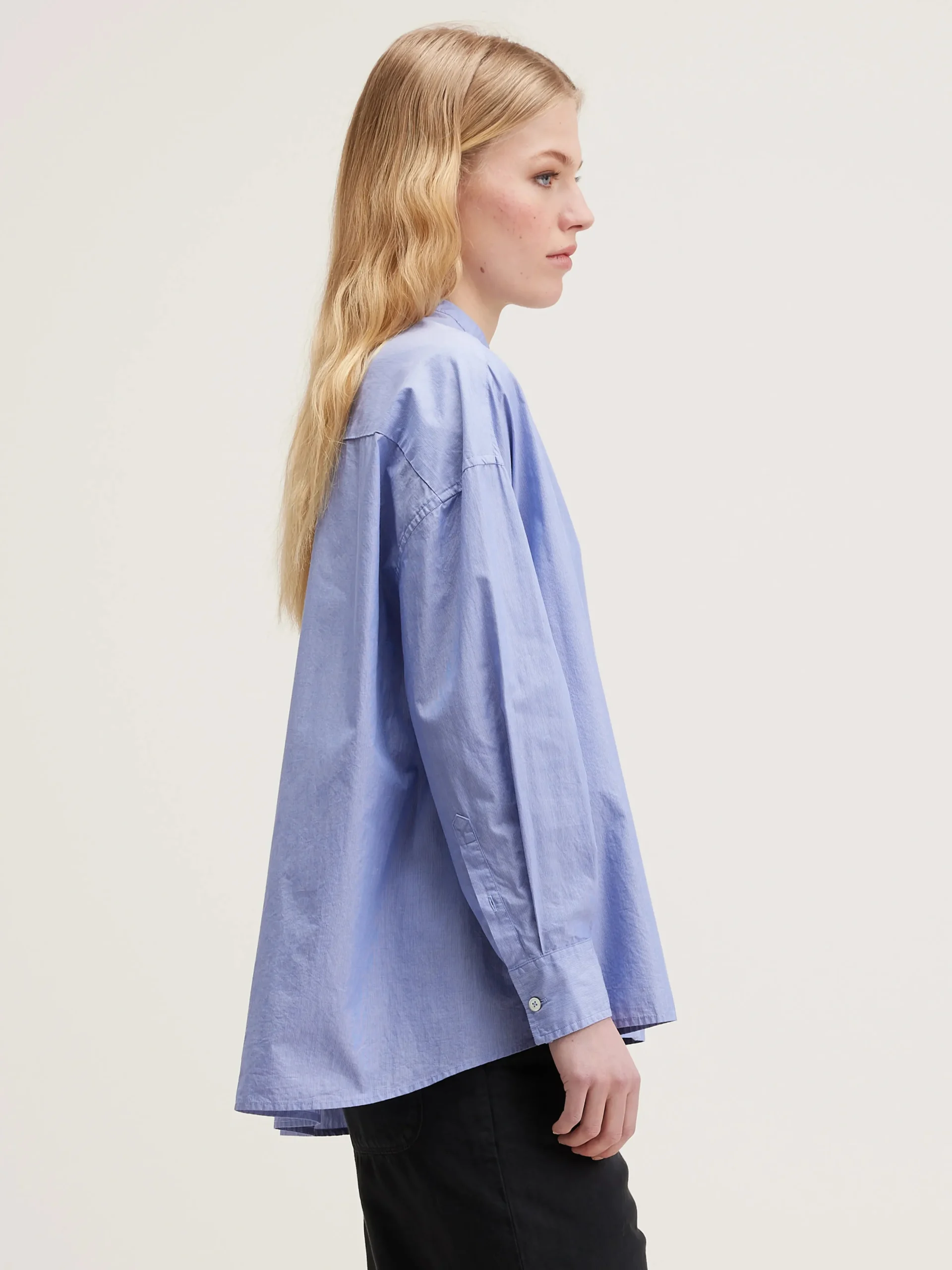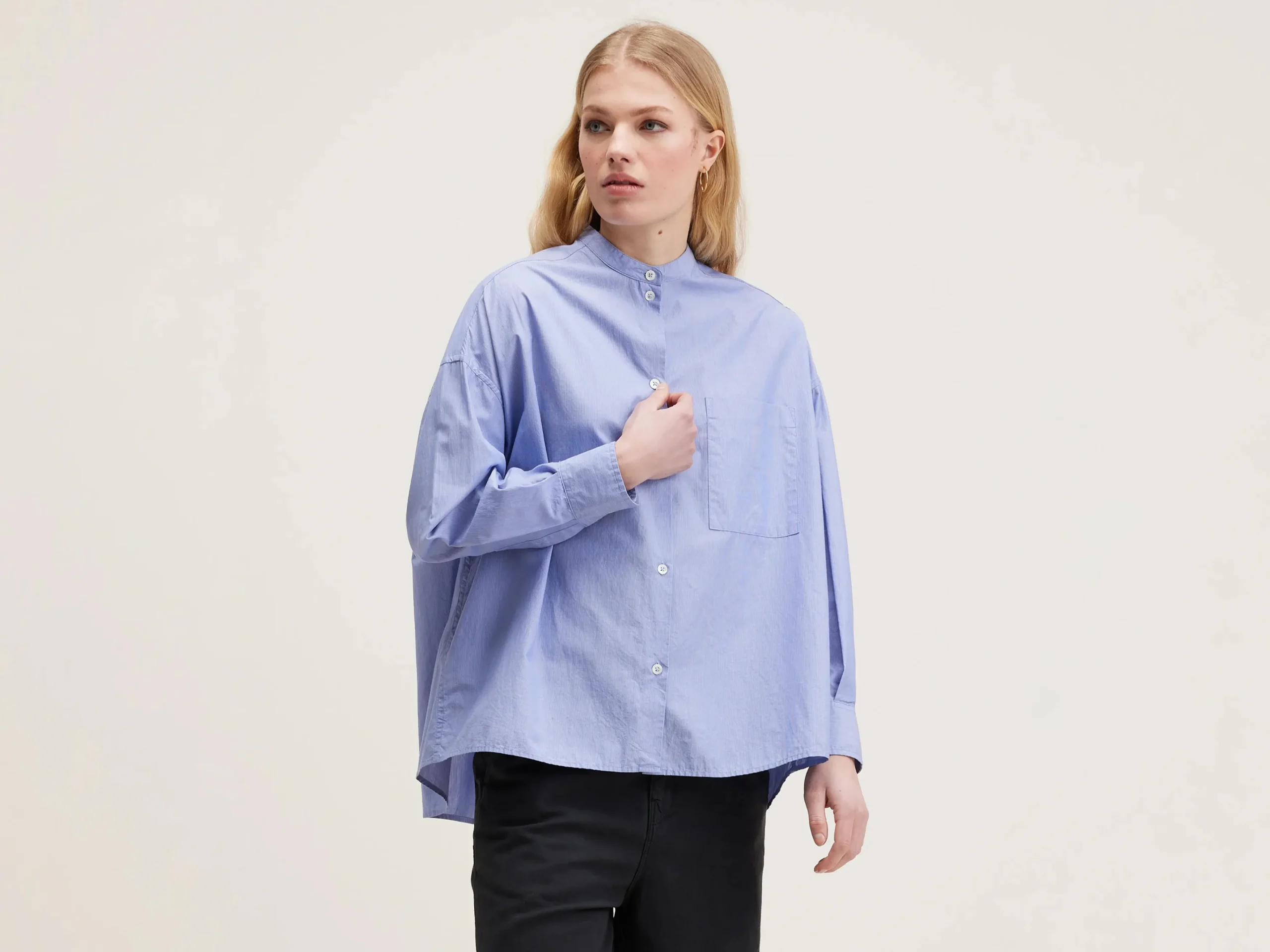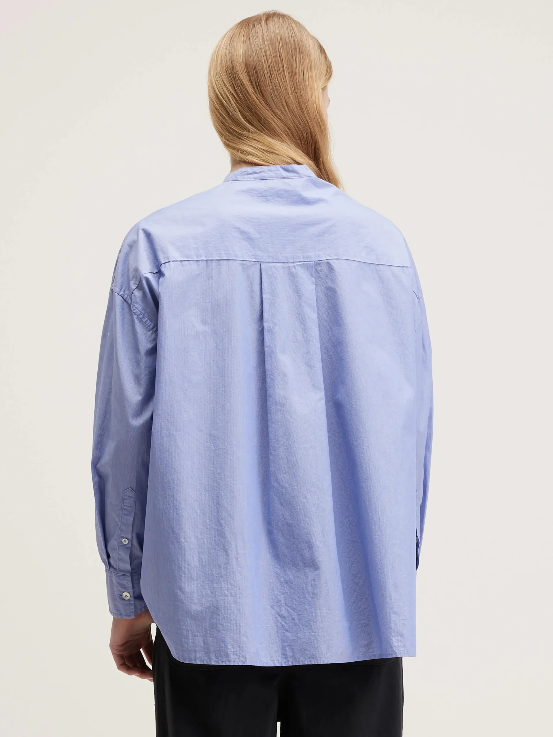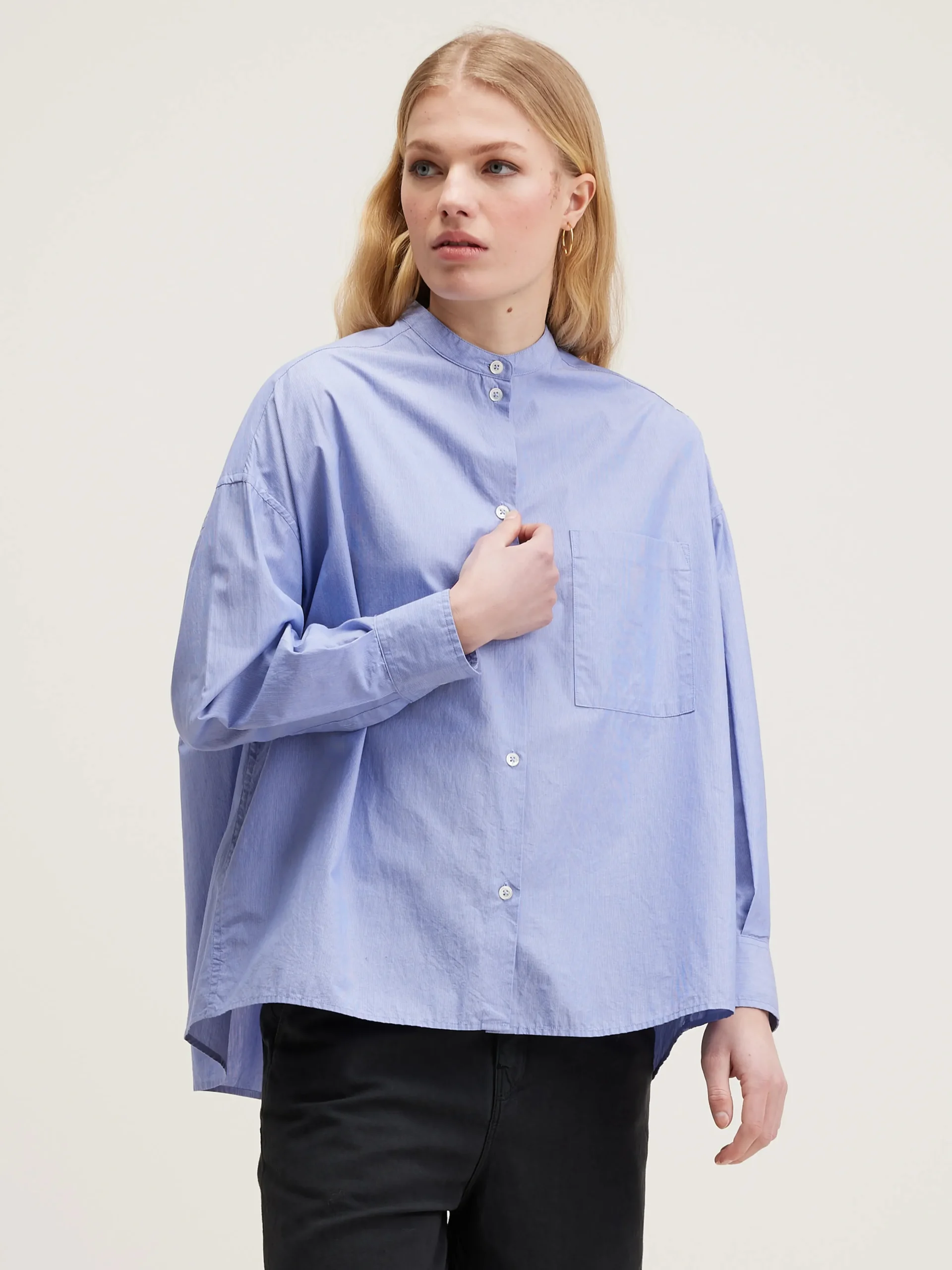 Oversized button-down hemd van gestreept popelinekatoen met een opgestikte zak en een kleine opstaande kraag.Oversized model : Kies je gebruikelijke maat voor de look zoals die