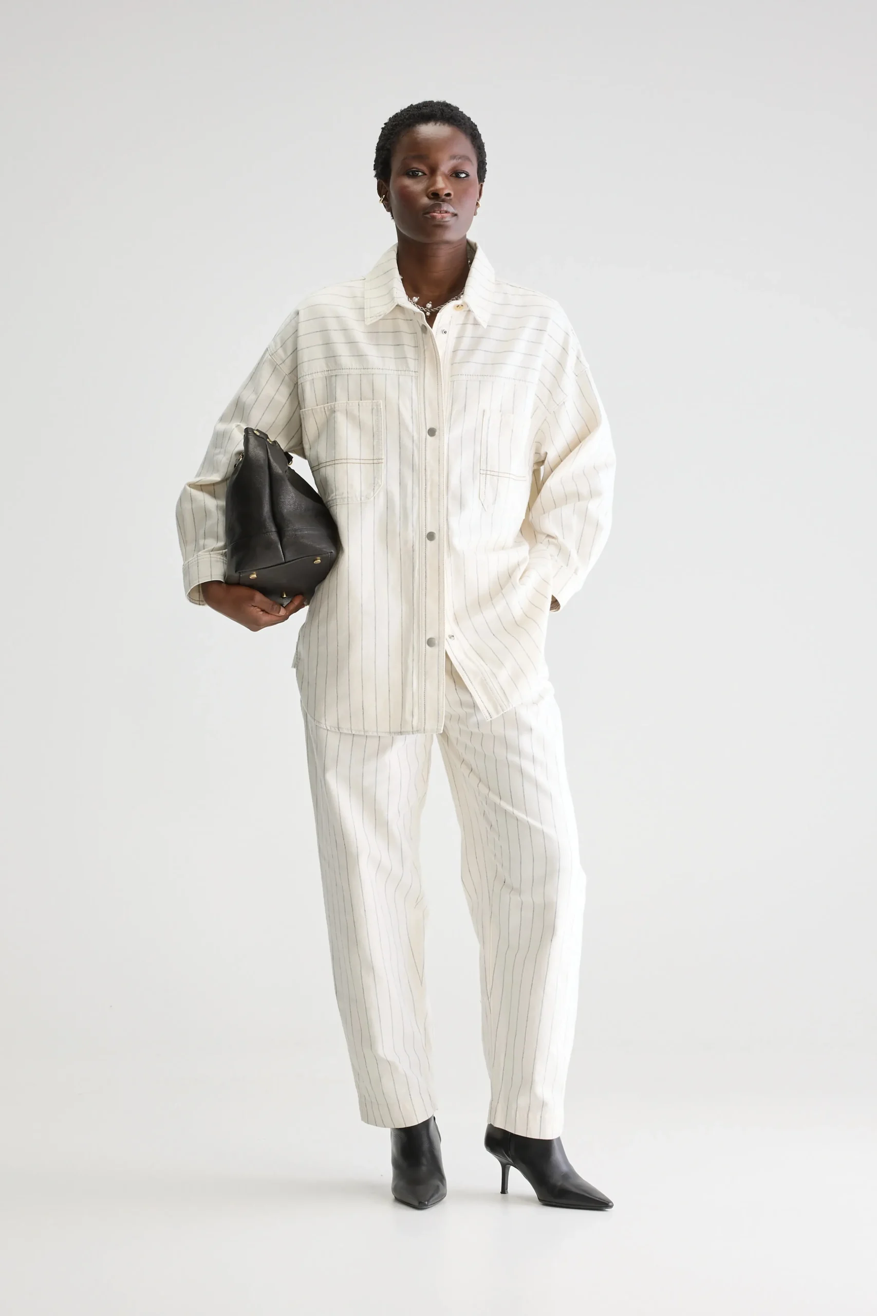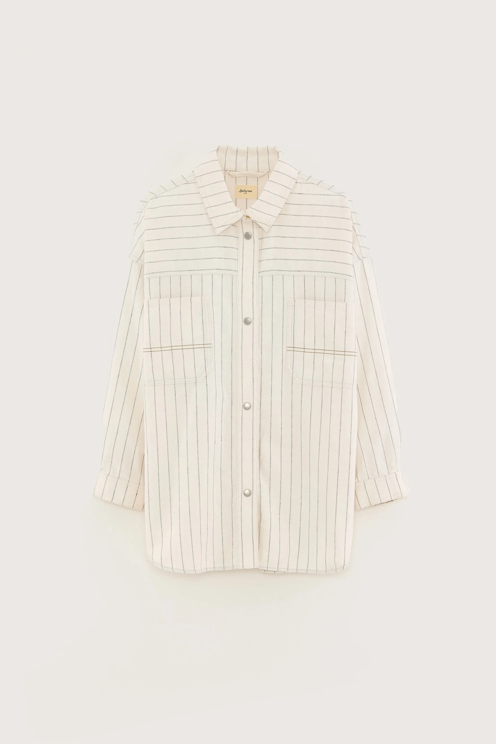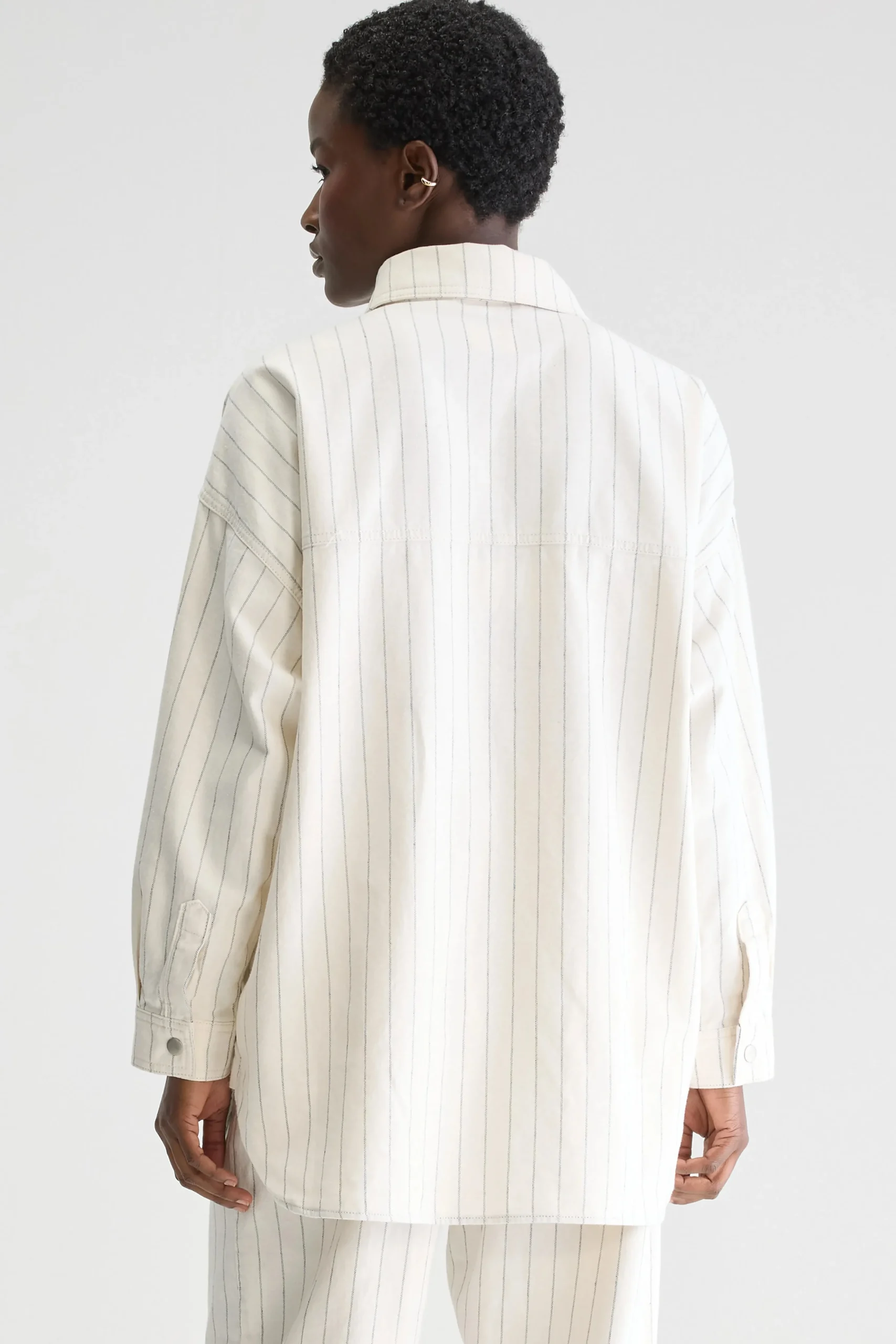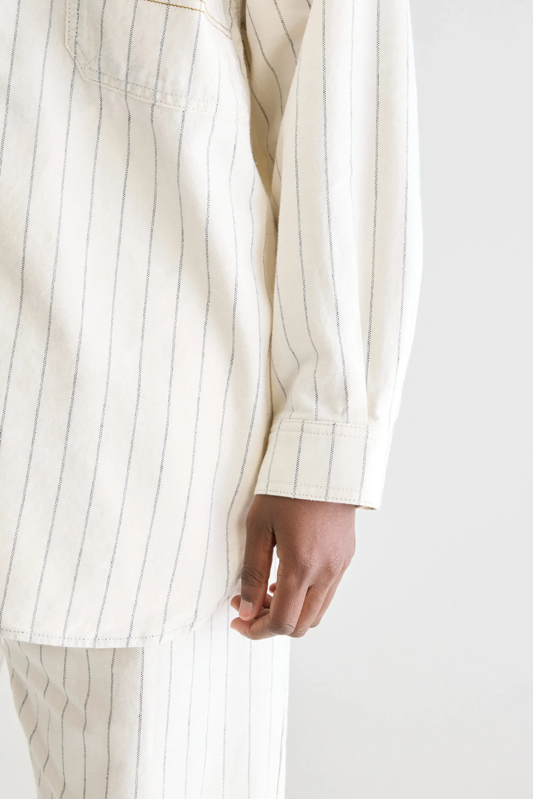 Relaxed overhemd in worker-stijl met klassieke kraag en grote opgestikte zakken, van gestreept katoen en hennepcanvas.Relaxte pasvorm Klassieke kraag Lange mouwen met manchetten met knopen Knoopsluiting aan de voorkant Grote opgestikte zakken