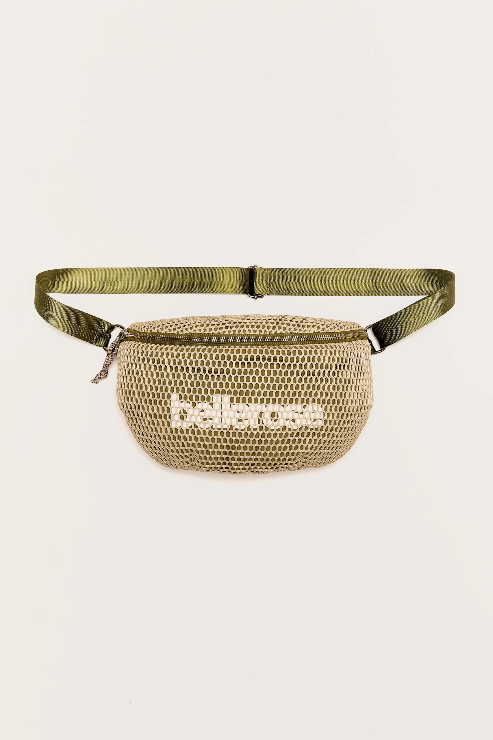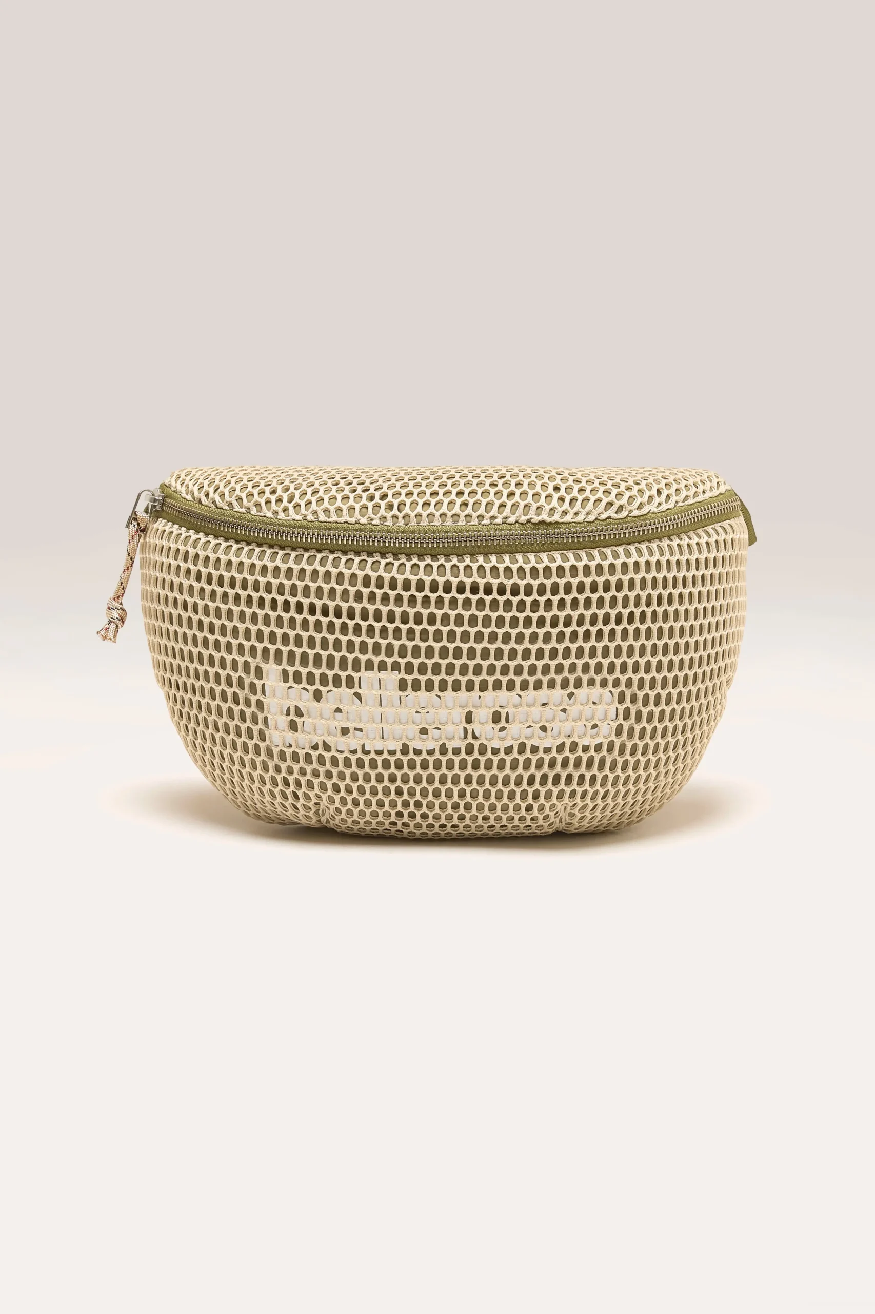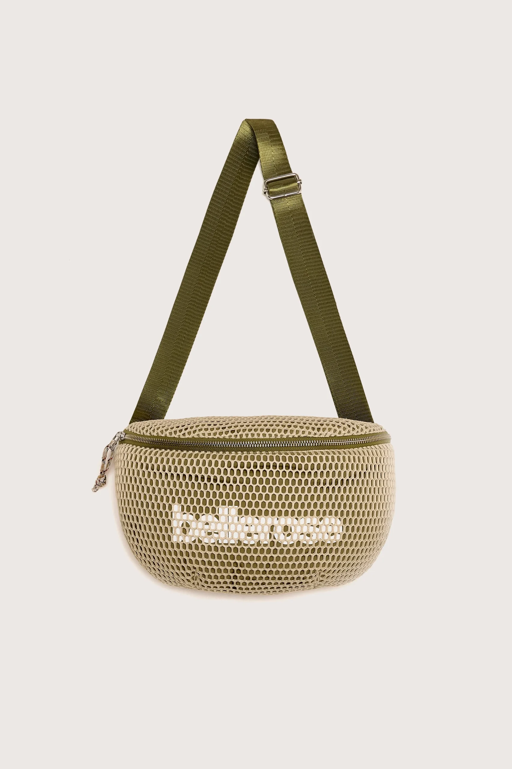 Heuptas met rits met modern design gemaakt van off-white mesh over kakigroene laag, met vet “Bellerose”-logo.Metalen ritssluiting met contrasterende trekkersBinnenzakAfmetingen: 29 x 18 x 10 cmRiemlengte (verstelbaar): 115 cm