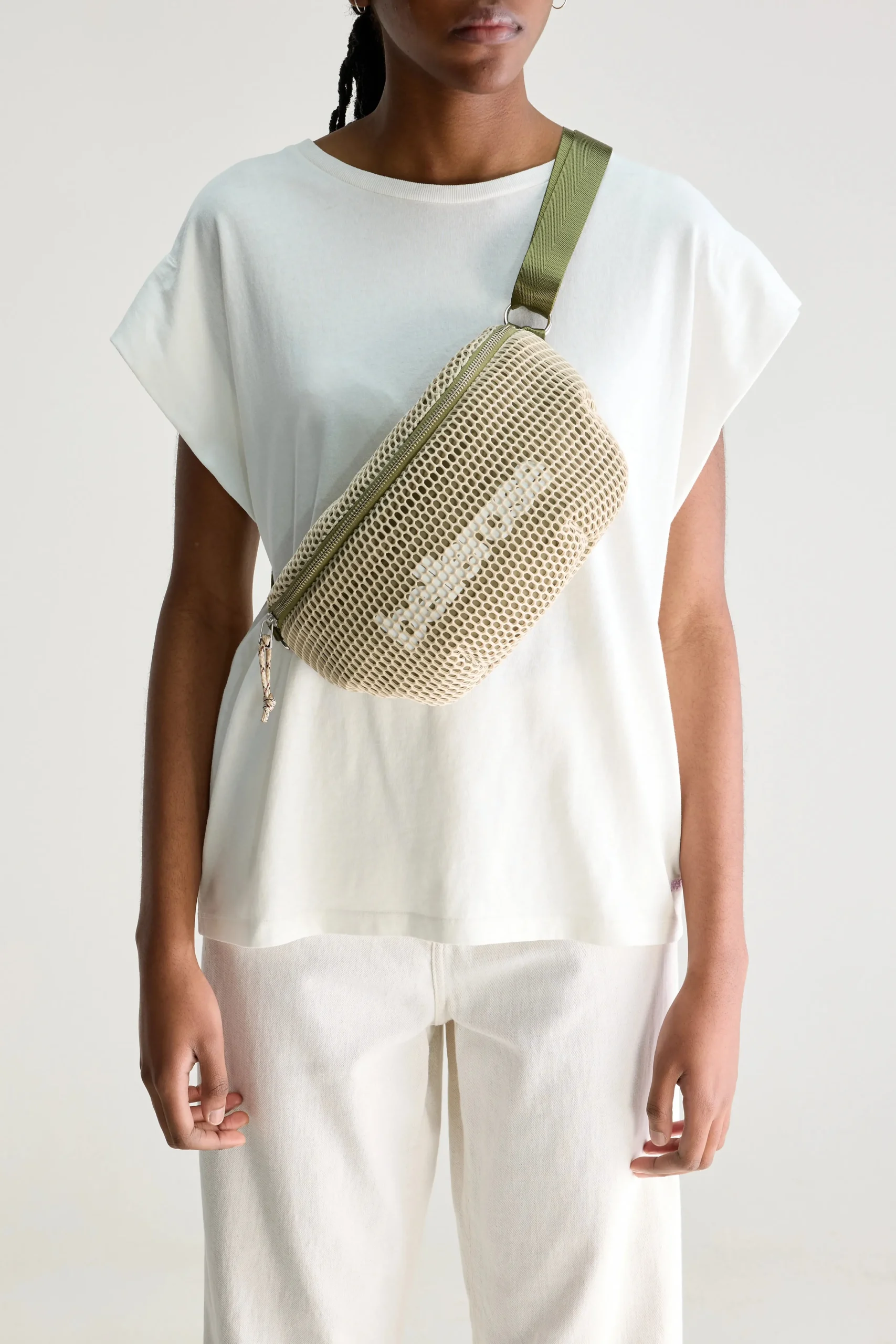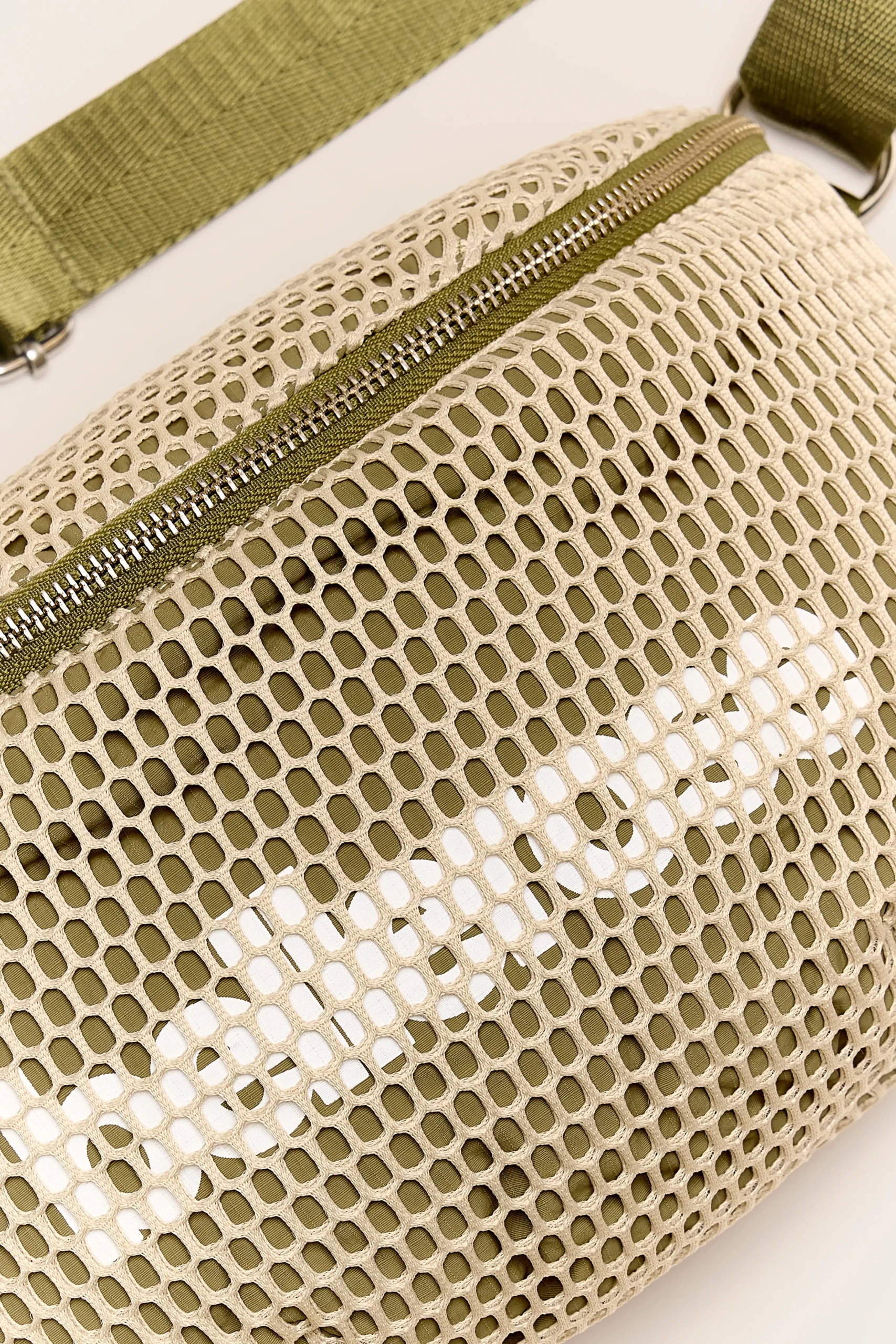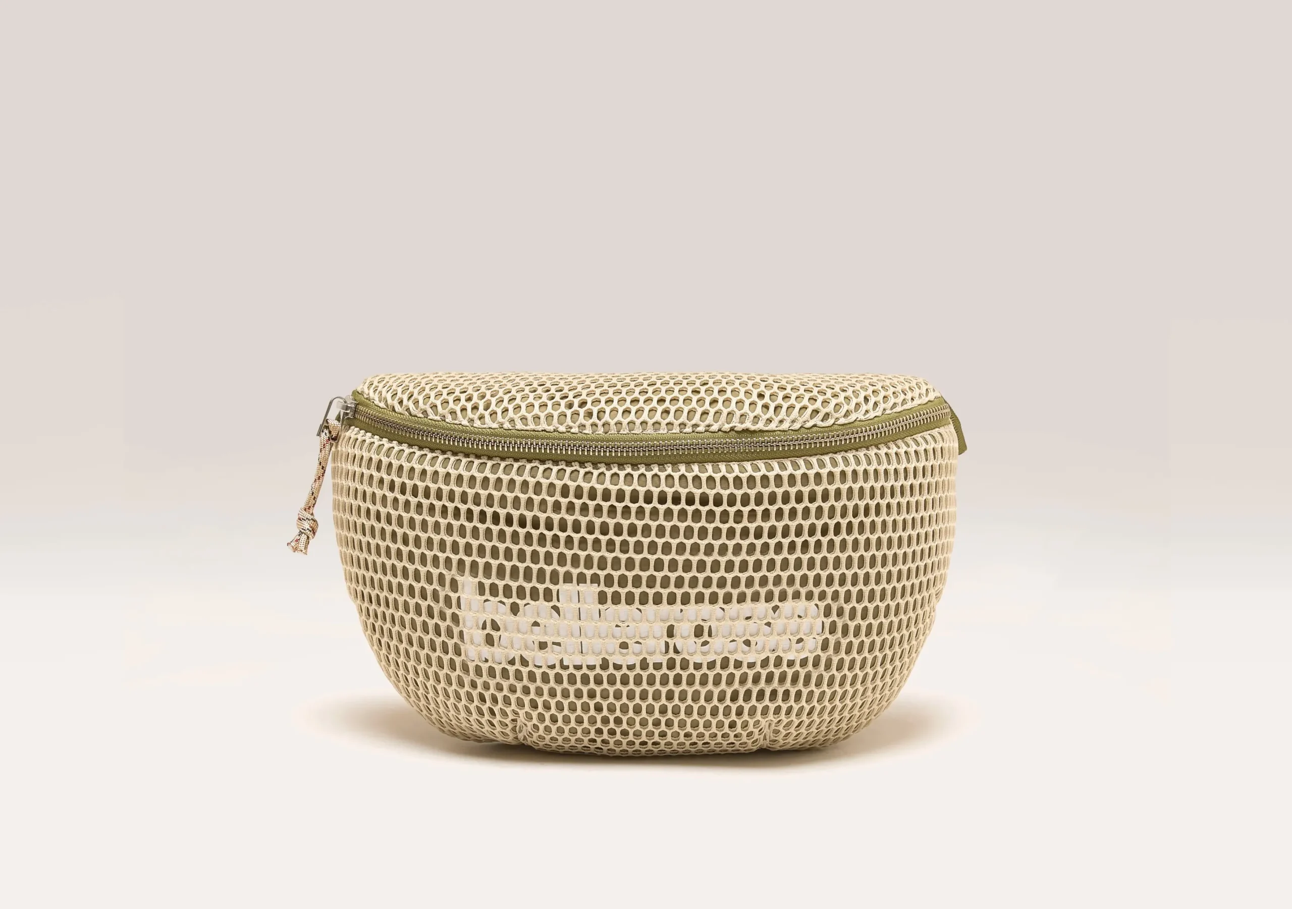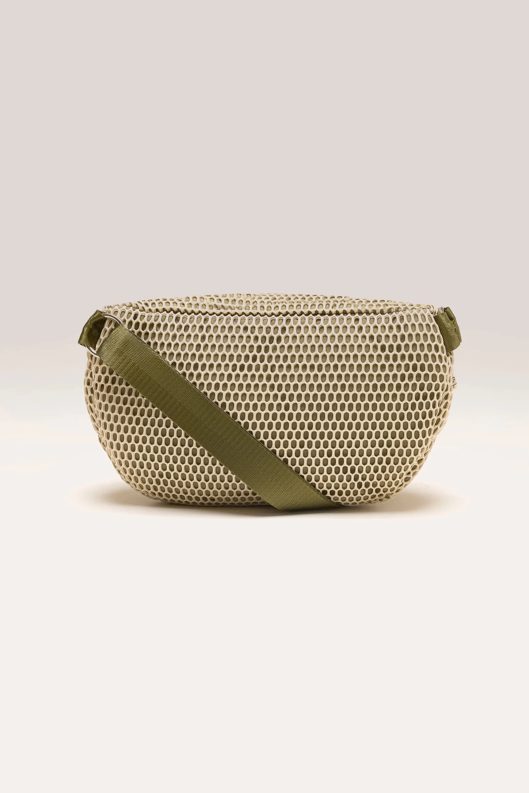 Heuptas met rits met modern design gemaakt van off-white mesh over kakigroene laag, met vet “Bellerose”-logo.Metalen ritssluiting met contrasterende trekkersBinnenzakAfmetingen: 29 x 18 x 10 cmRiemlengte (verstelbaar): 115 cm