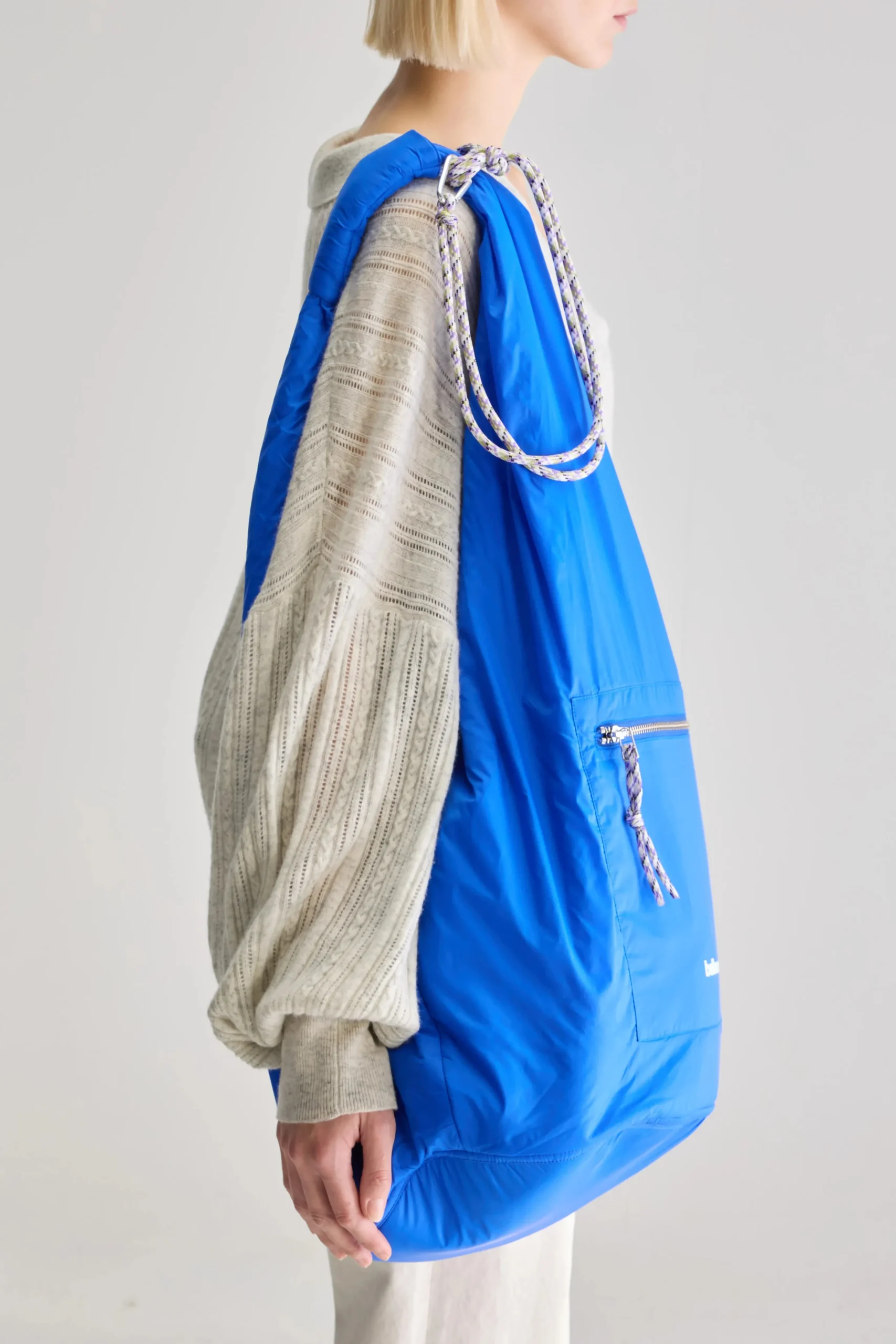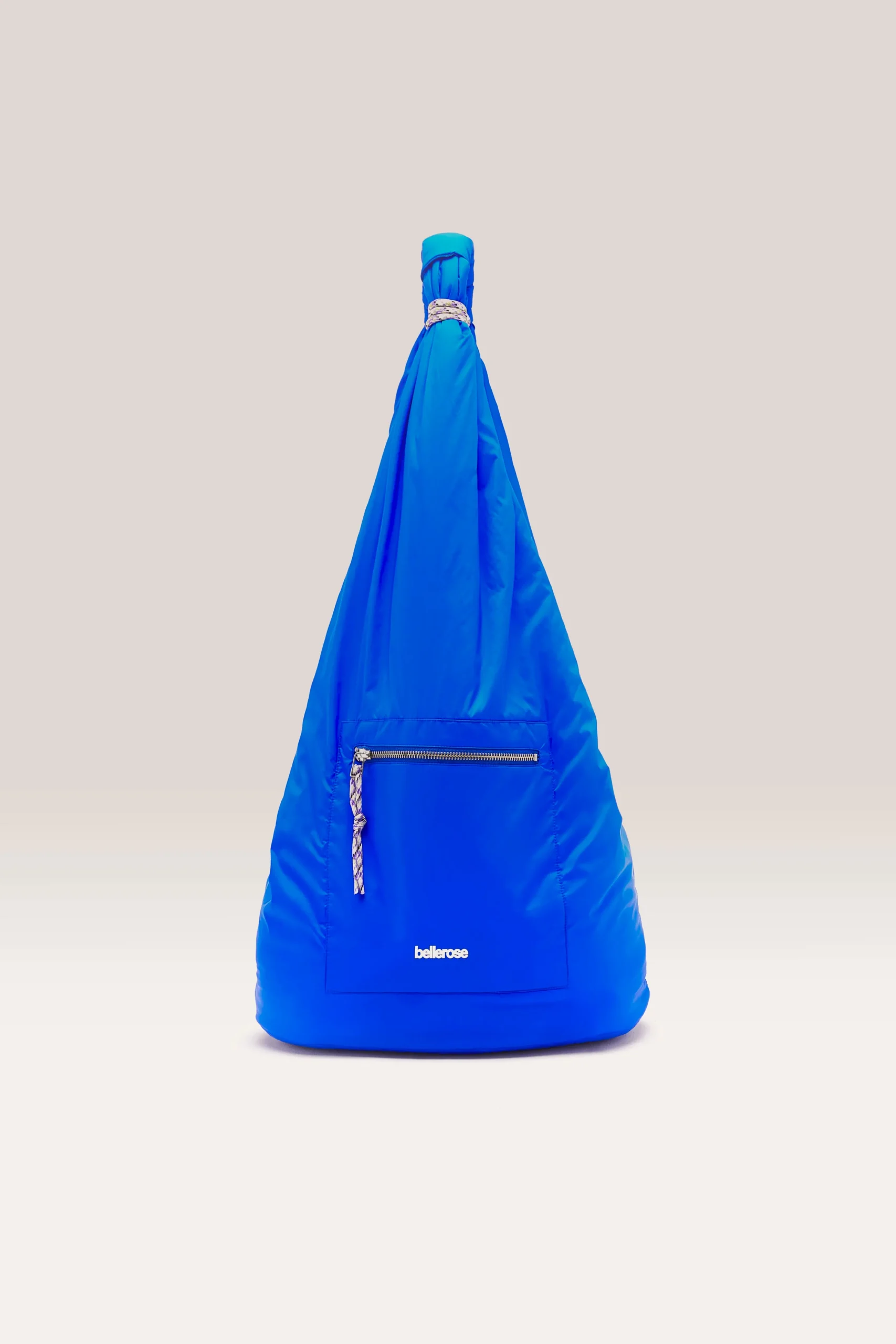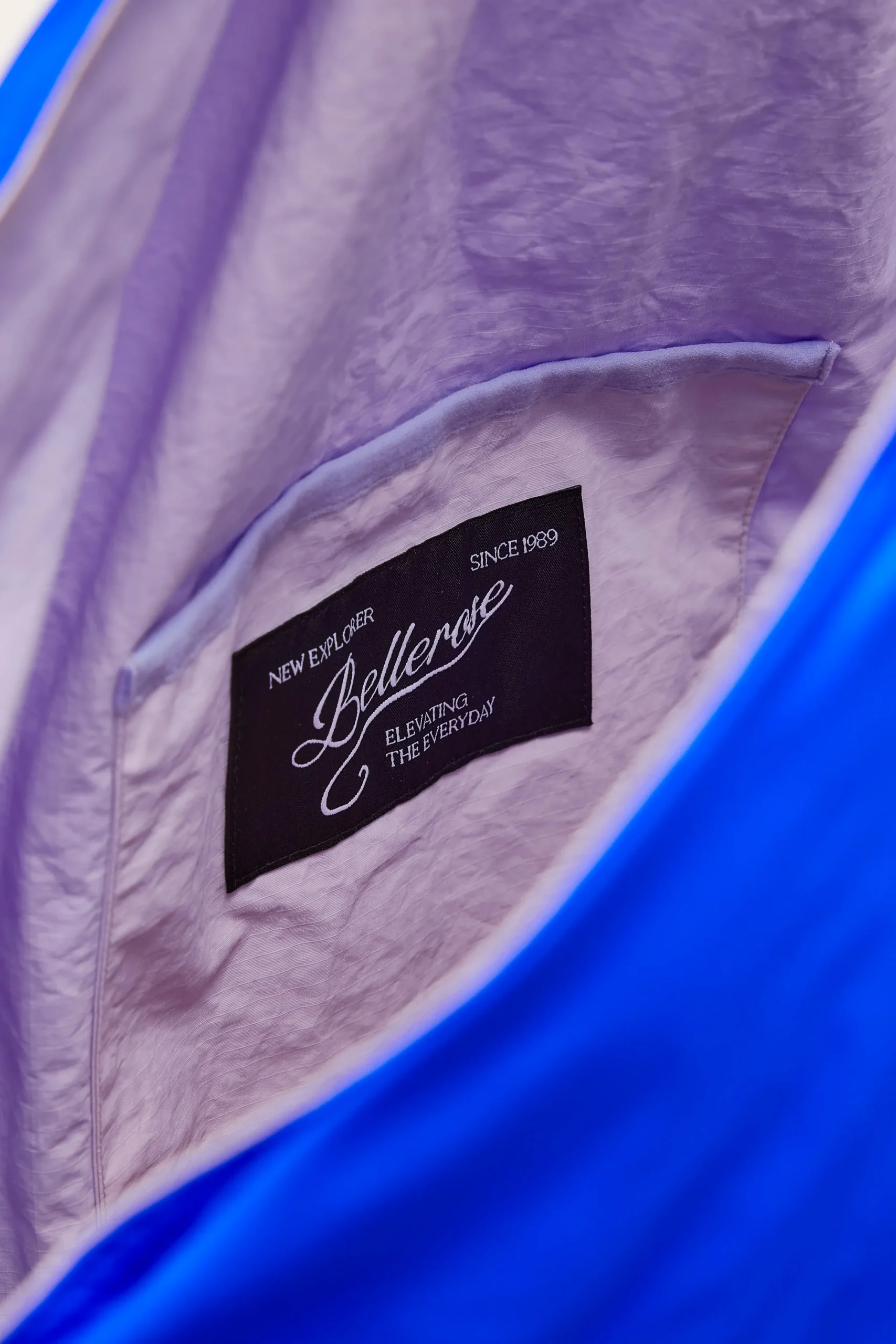 Ruimtelijke tas met gepatcht ritsvak en karabijnhaak, gemaakt van licht gevoerd nylon in lazuliblauw en afgewerkt met een verstevigd handvat.Vierkante vormVersterkt handvatHaaksluitingVoorzak met ritsAfmetingen: 73x28x38 cm