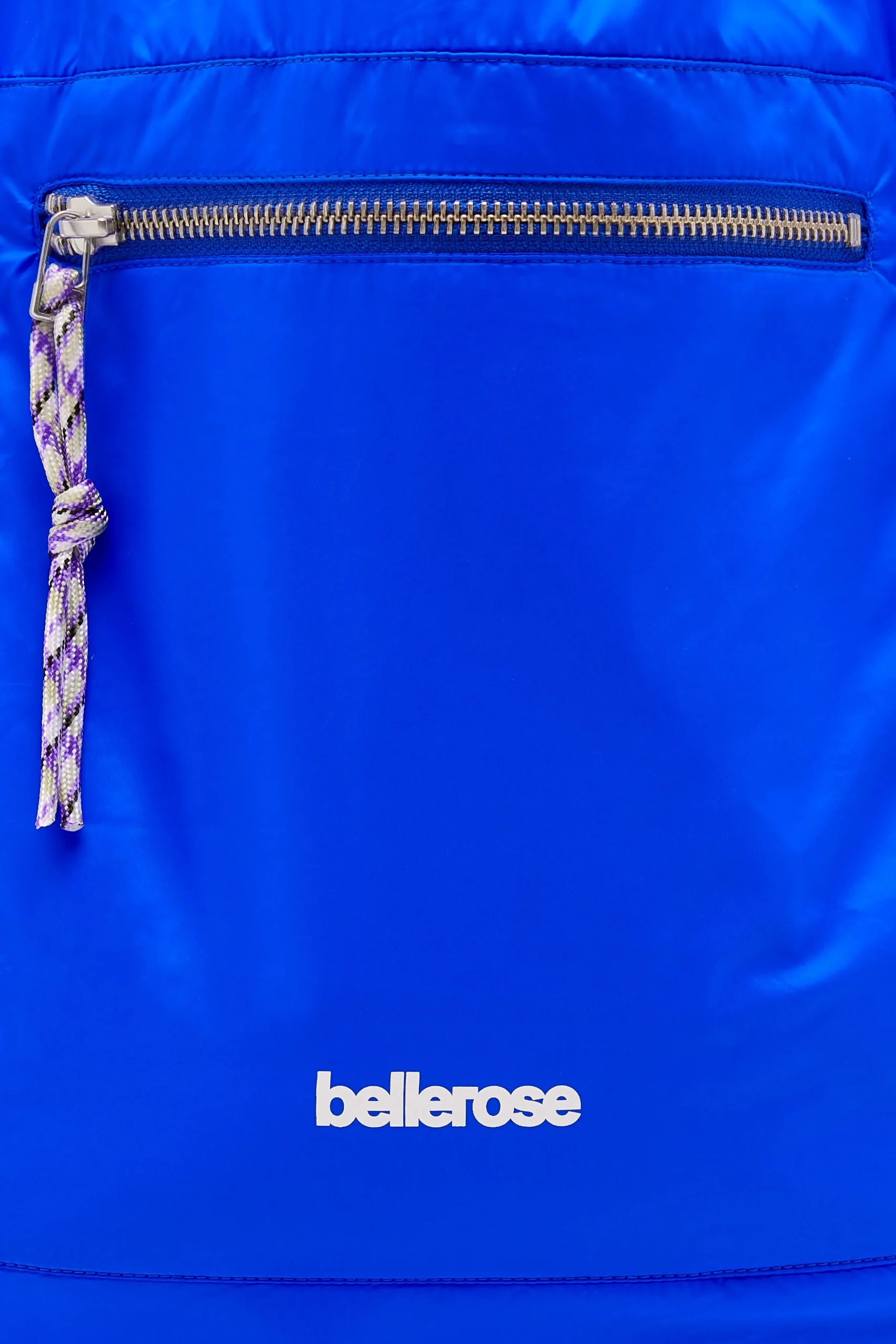 Ruimtelijke tas met gepatcht ritsvak en karabijnhaak, gemaakt van licht gevoerd nylon in lazuliblauw en afgewerkt met ee…