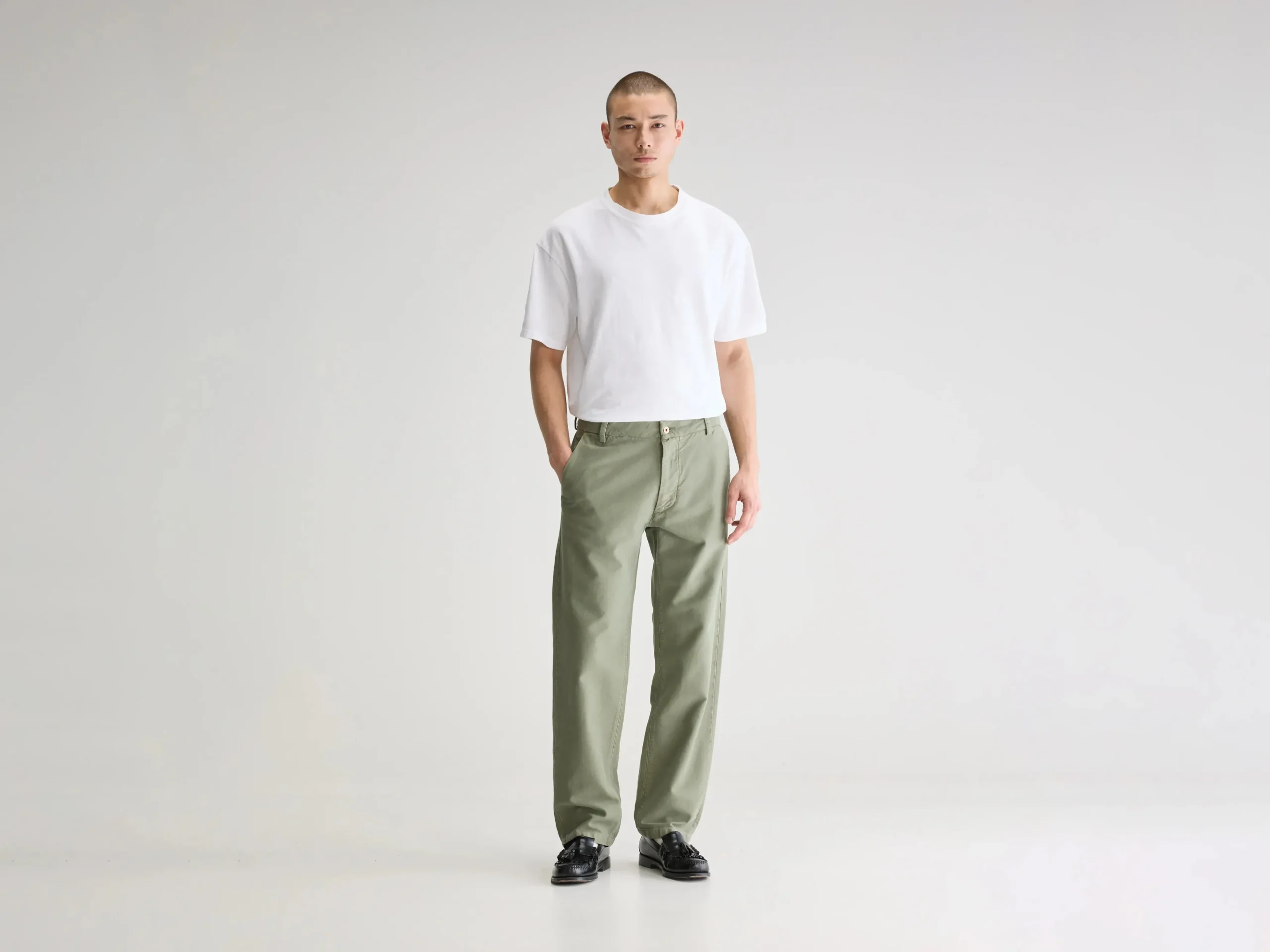 Regular flat front chino met halfhoge taille, rechte pijpen en clean profiel, gemaakt van grijsgroen katoenen twill.Regular pasvorm Halfhoge, rechte pijpen Katoenen twillClean profielBinnenbeenlengte: 29″ (gebaseerd op maat 42)De binnenbeenlengte past zich lichtjes aan afhankelijk van de gekozen maat, zodat de pasvorm proportioneel blijft.Zoom: 22cm