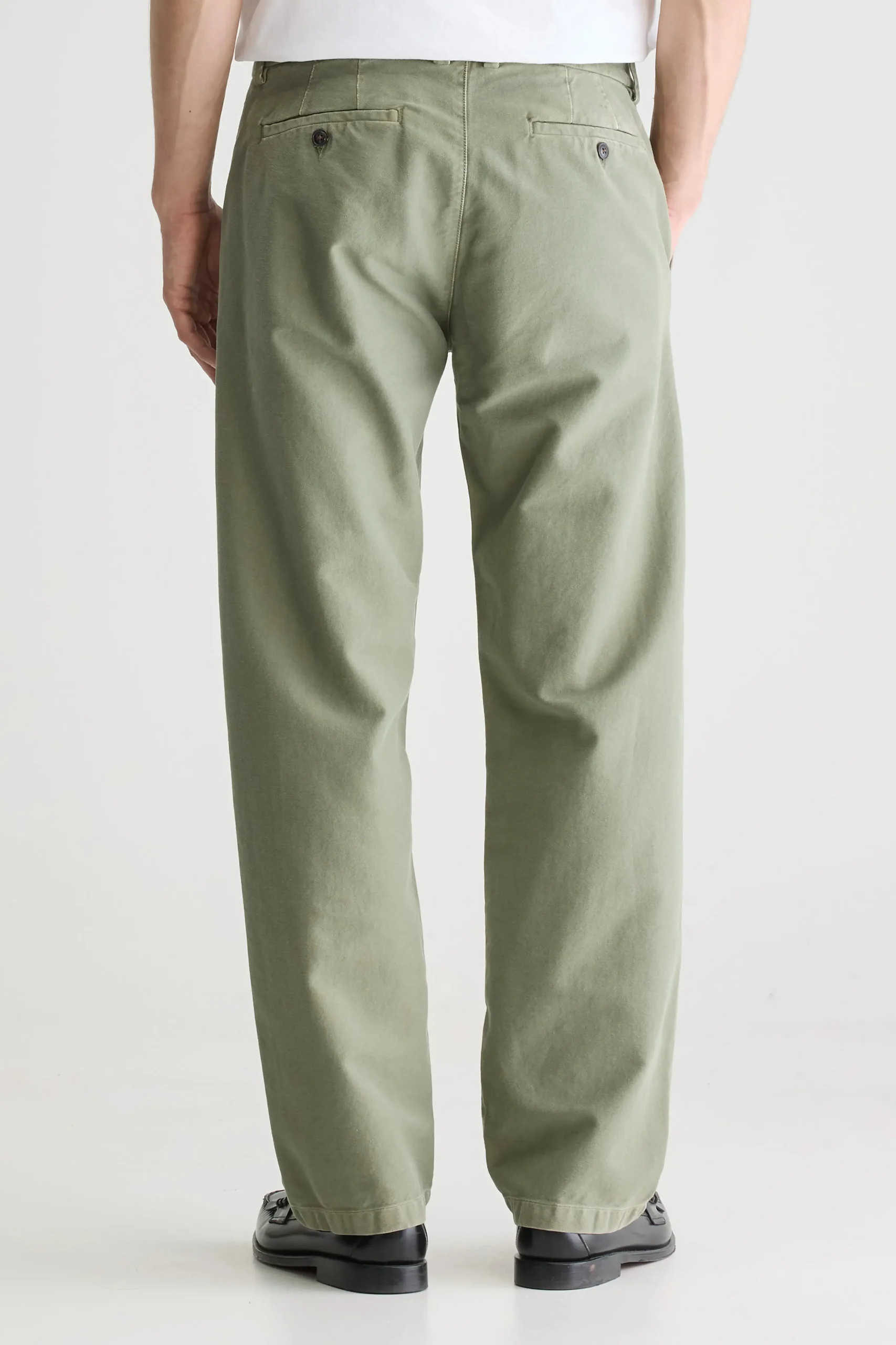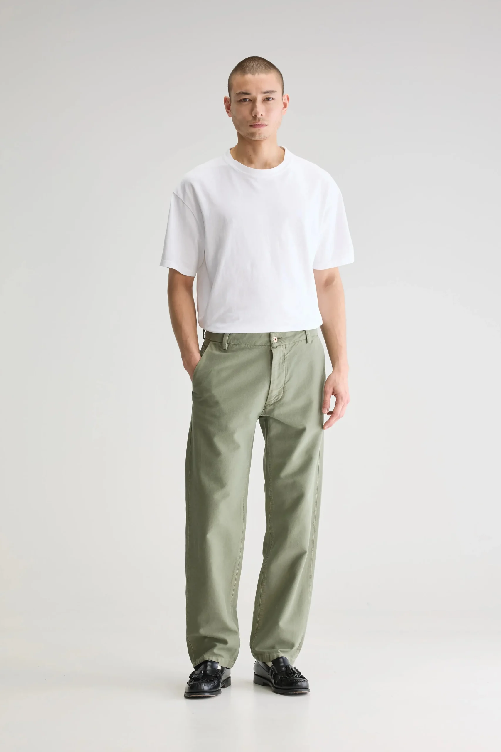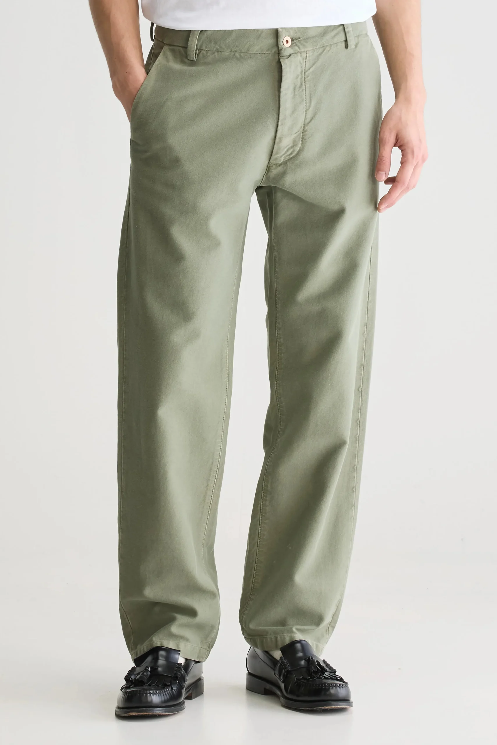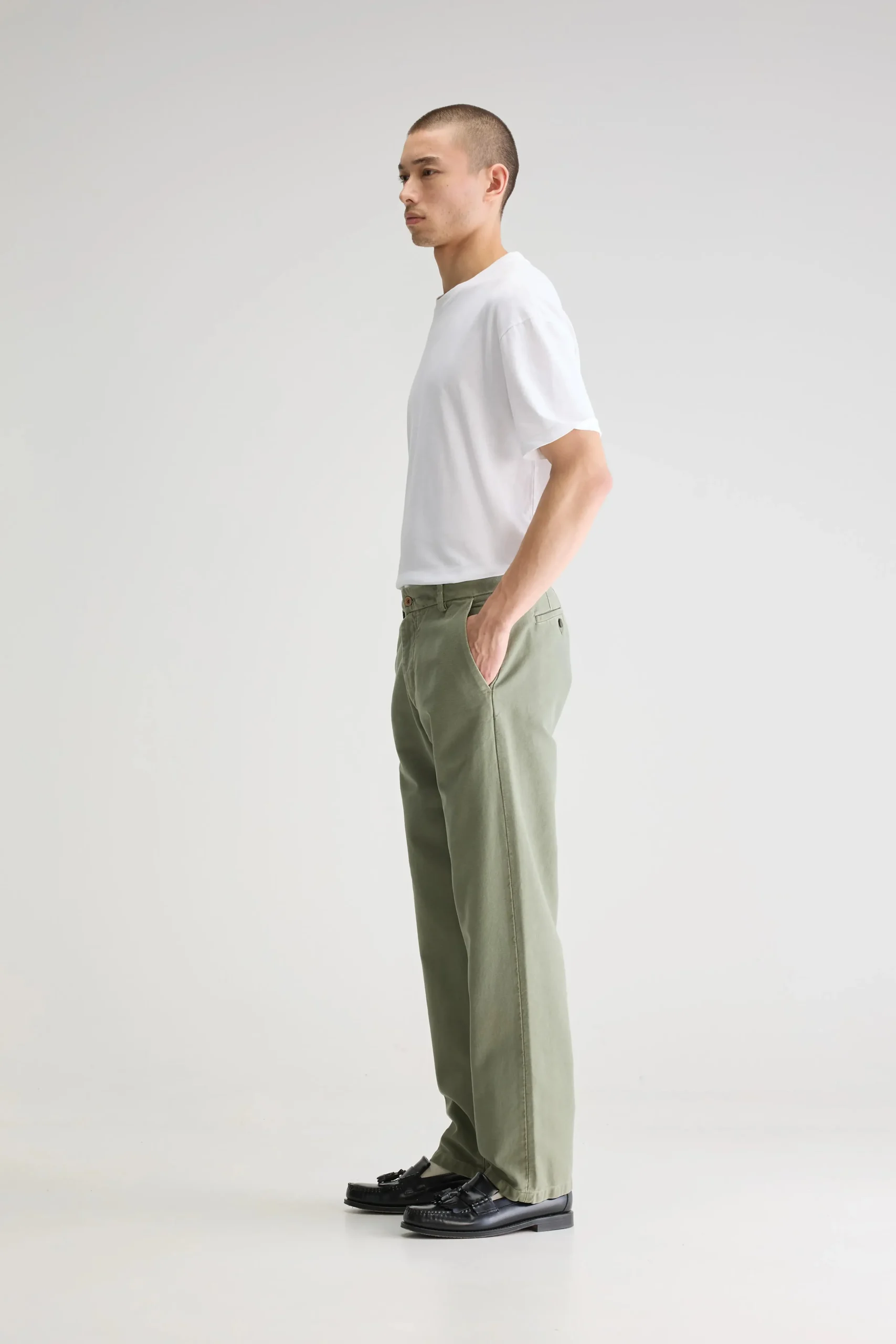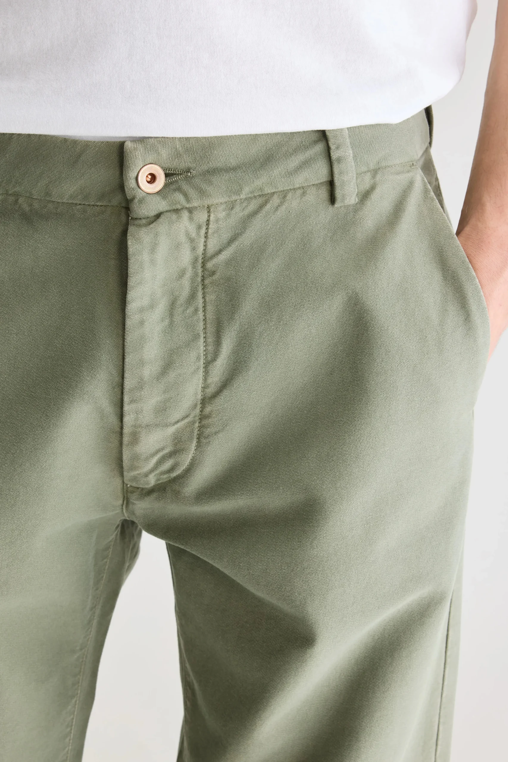 Regular flat front chino met halfhoge taille, rechte pijpen en clean profiel, gemaakt van grijsgroen katoenen twill.Regu…