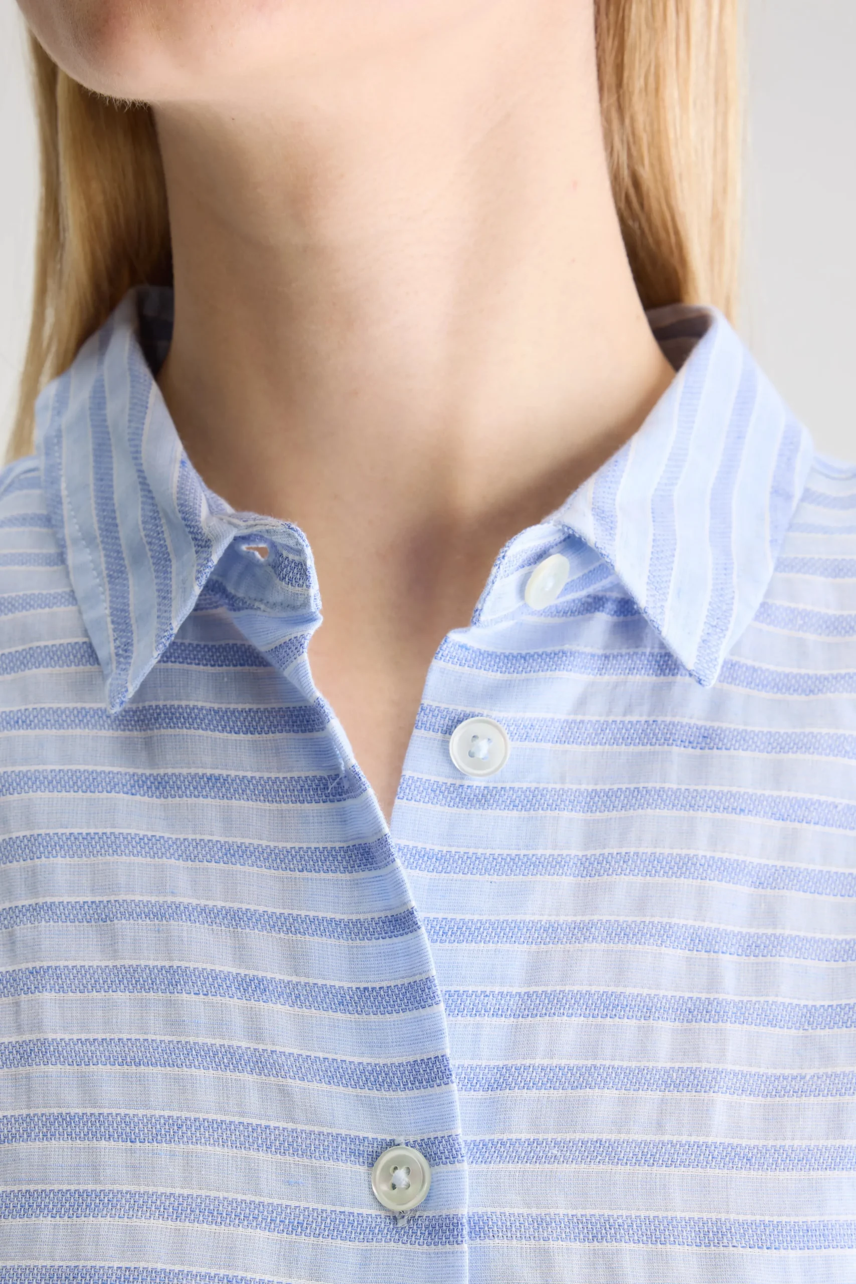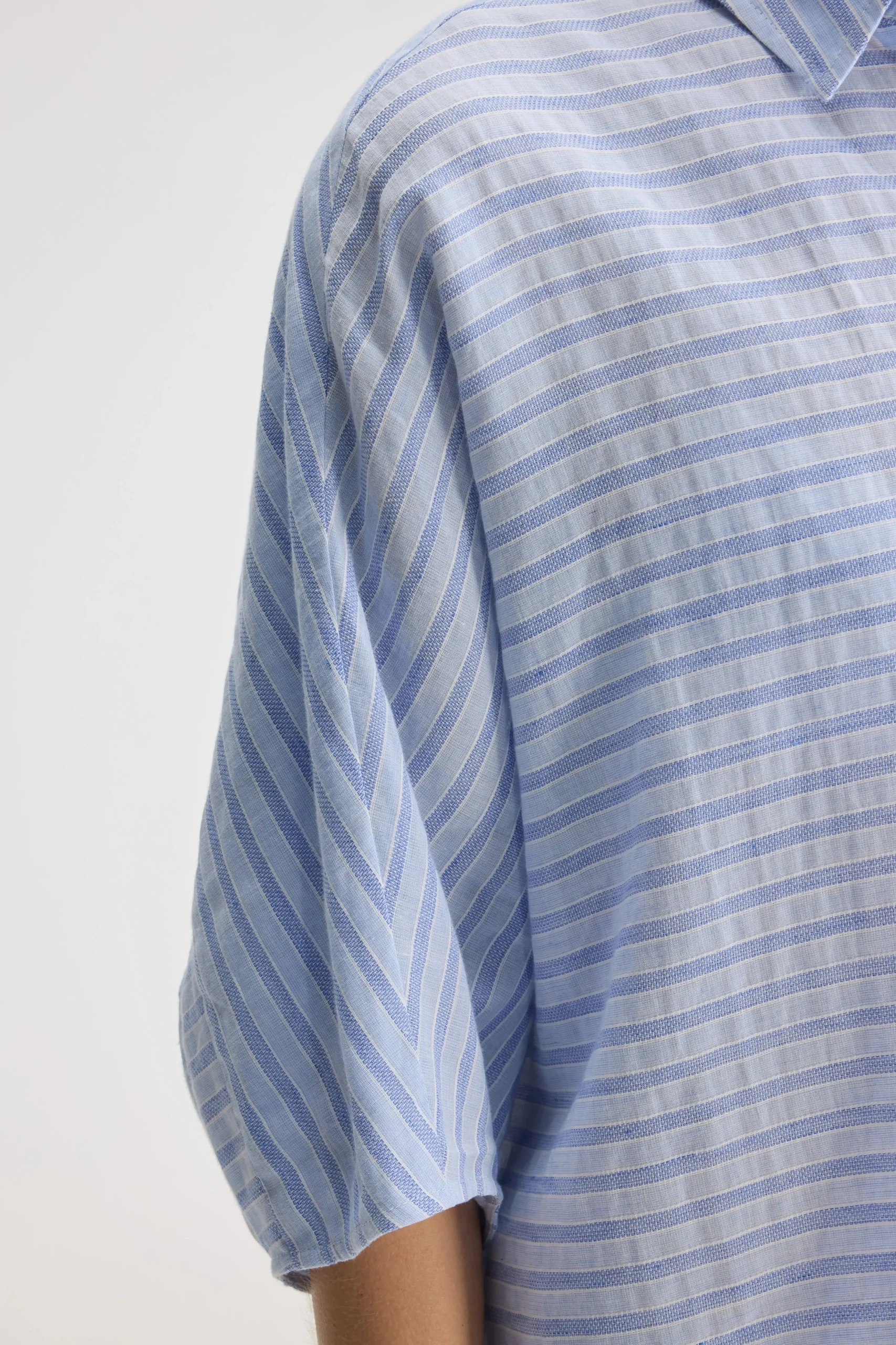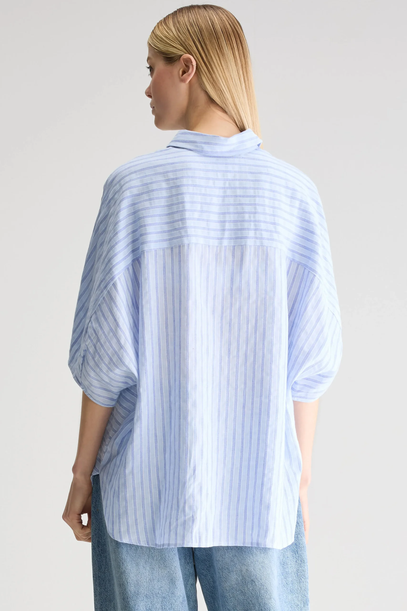 Oversized lichtblauw gestreepte blouse met borstzak, horizontale strepen en losse, comfortabele pasvorm.Oversized, boxy pasvorm : Kies
