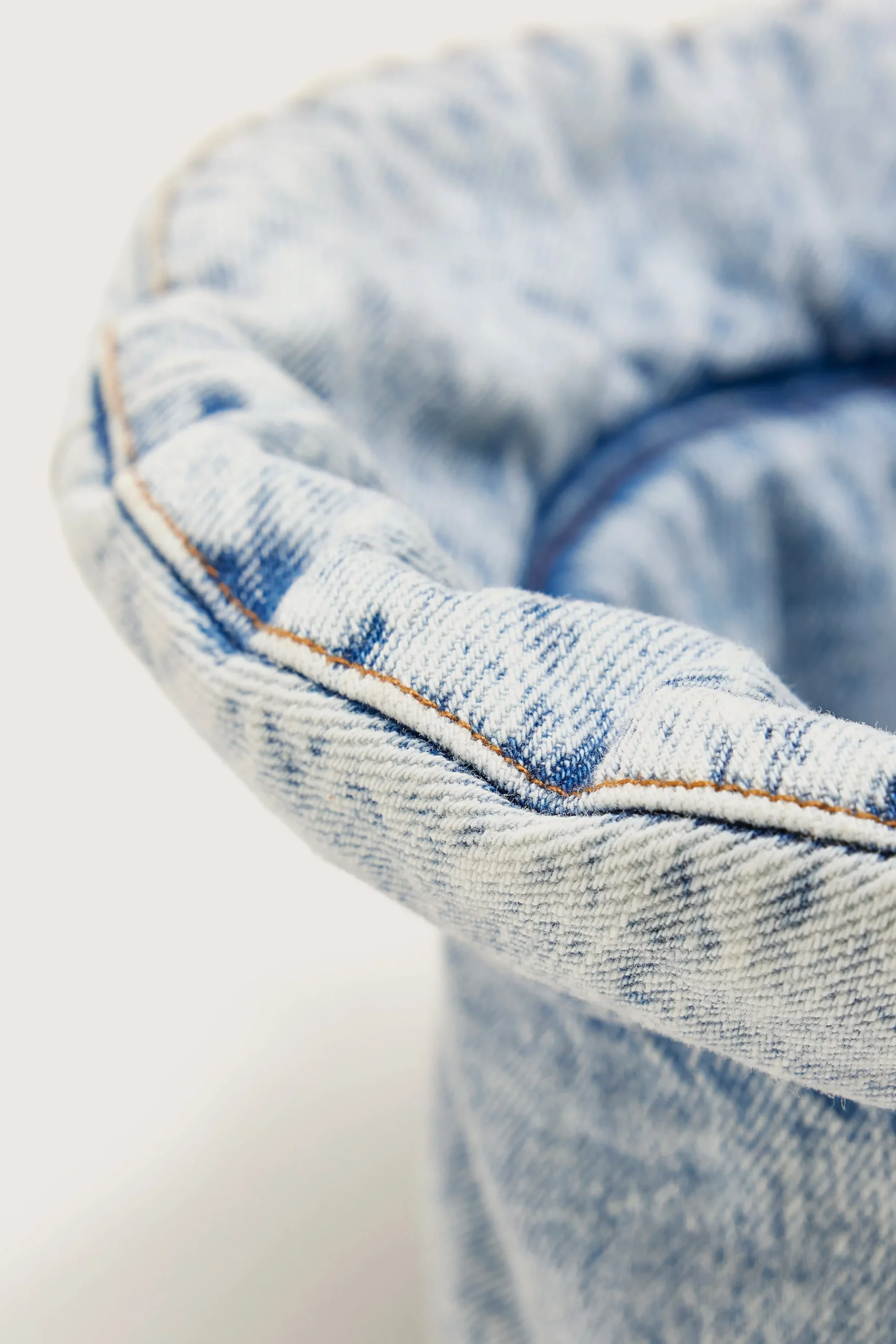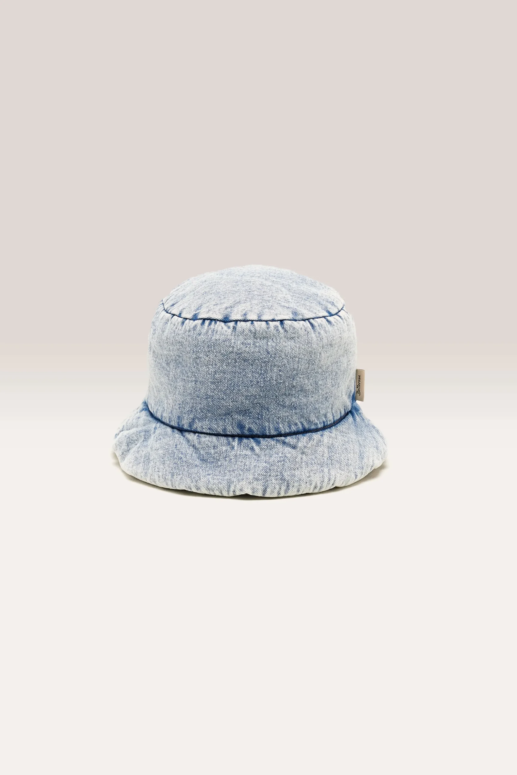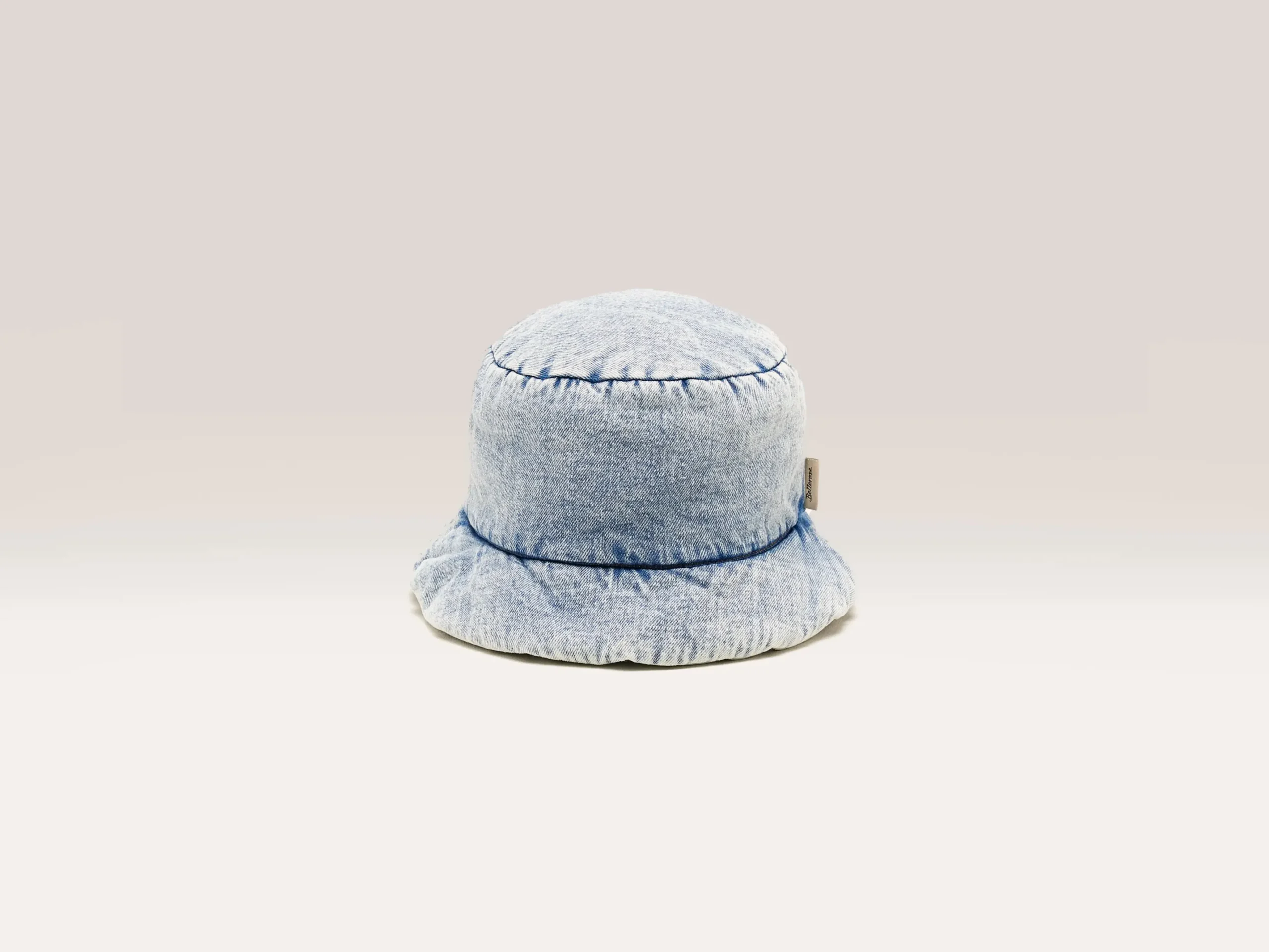 Gewatteerde bucket hat van katoen denim met een vintage wassing.Klassieke ronde bucket hat Licht gewatteerd Gewassen denim