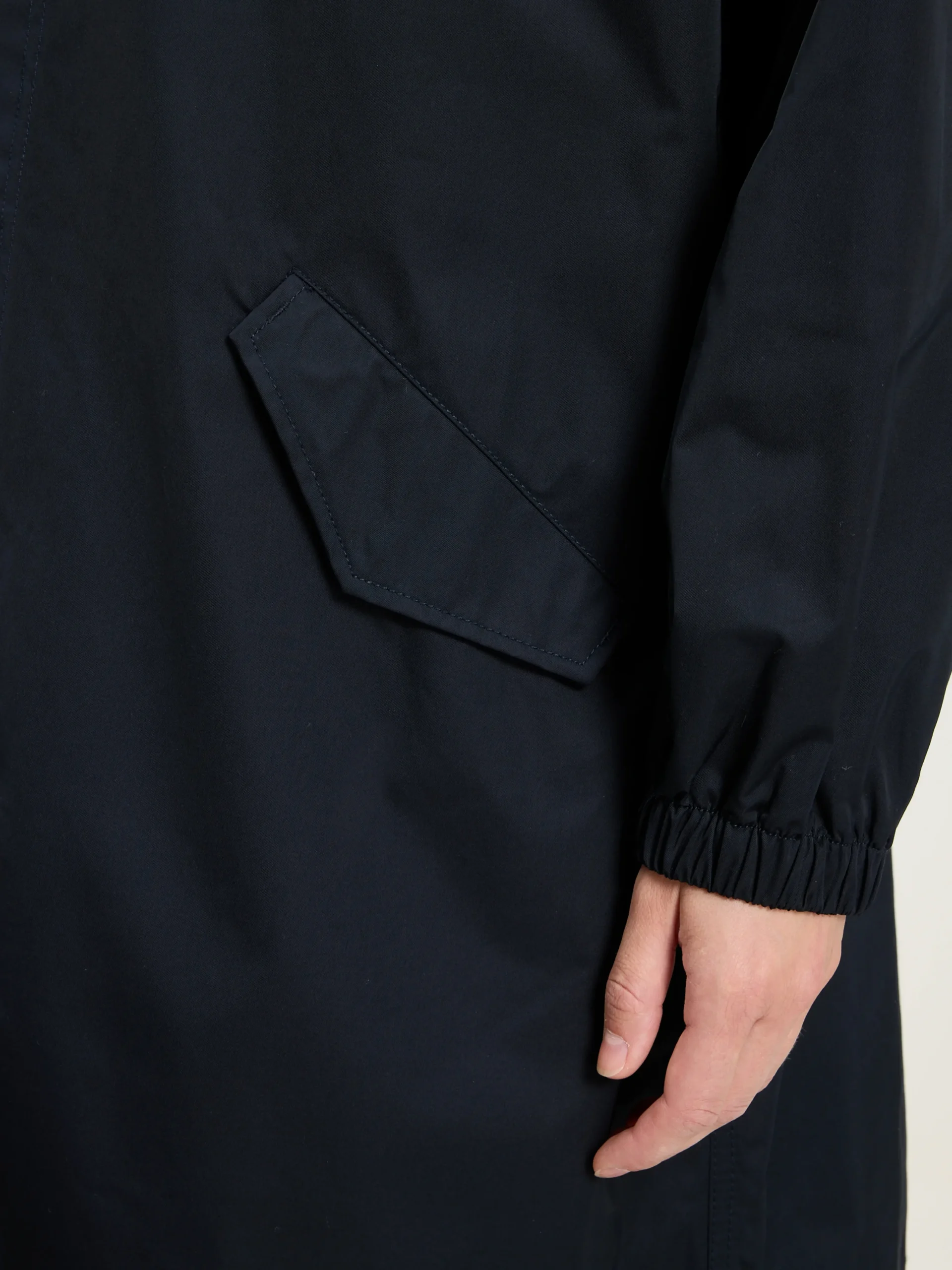 Oversized parka met capuchon van marineblauw canvaskatoen met raglanmouwen en elastische zomen.r