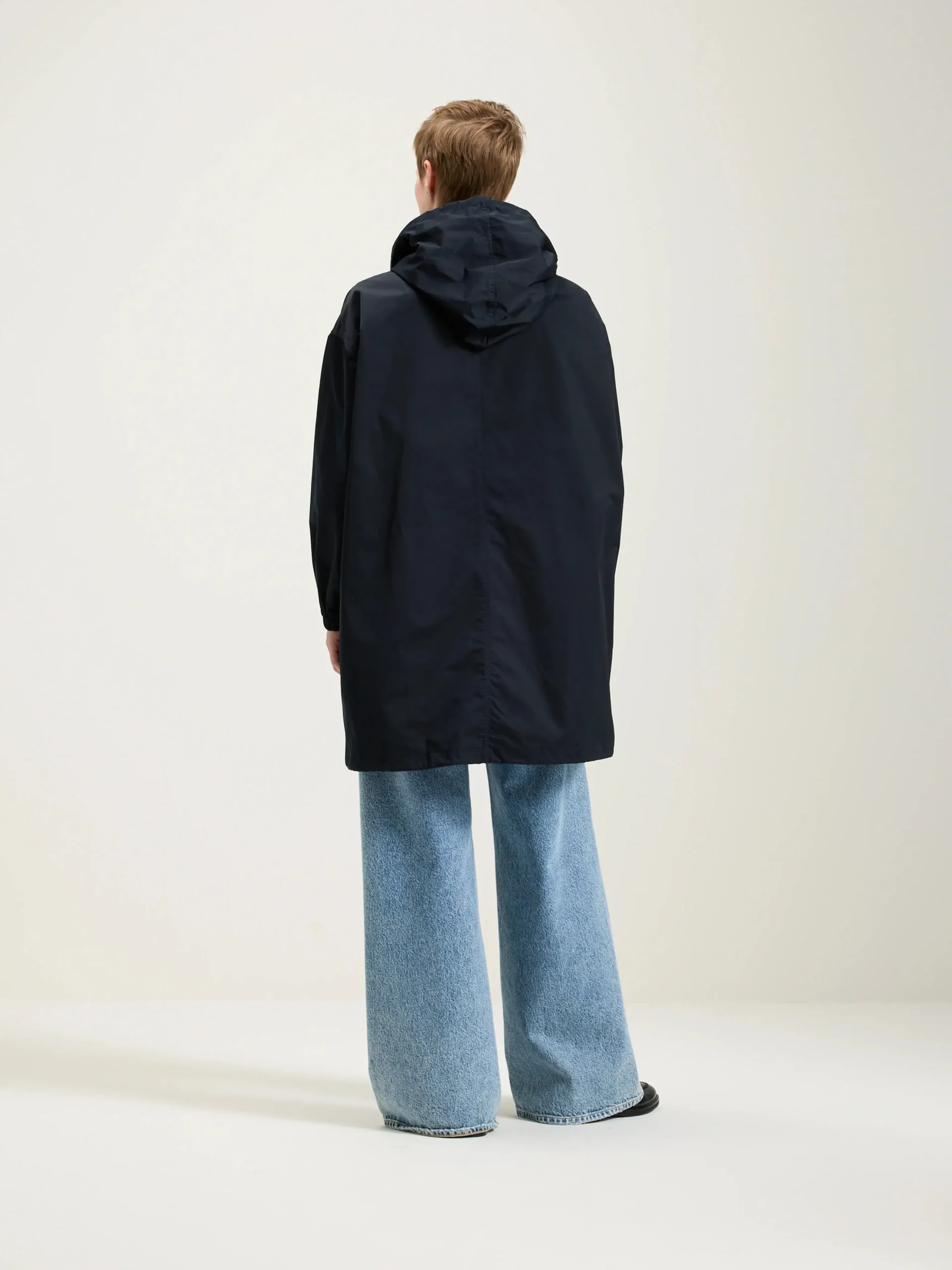 Oversized parka met capuchon van marineblauw canvaskatoen met raglanmouwen en elastische zomen.rrGemiddelde lengte, ov…