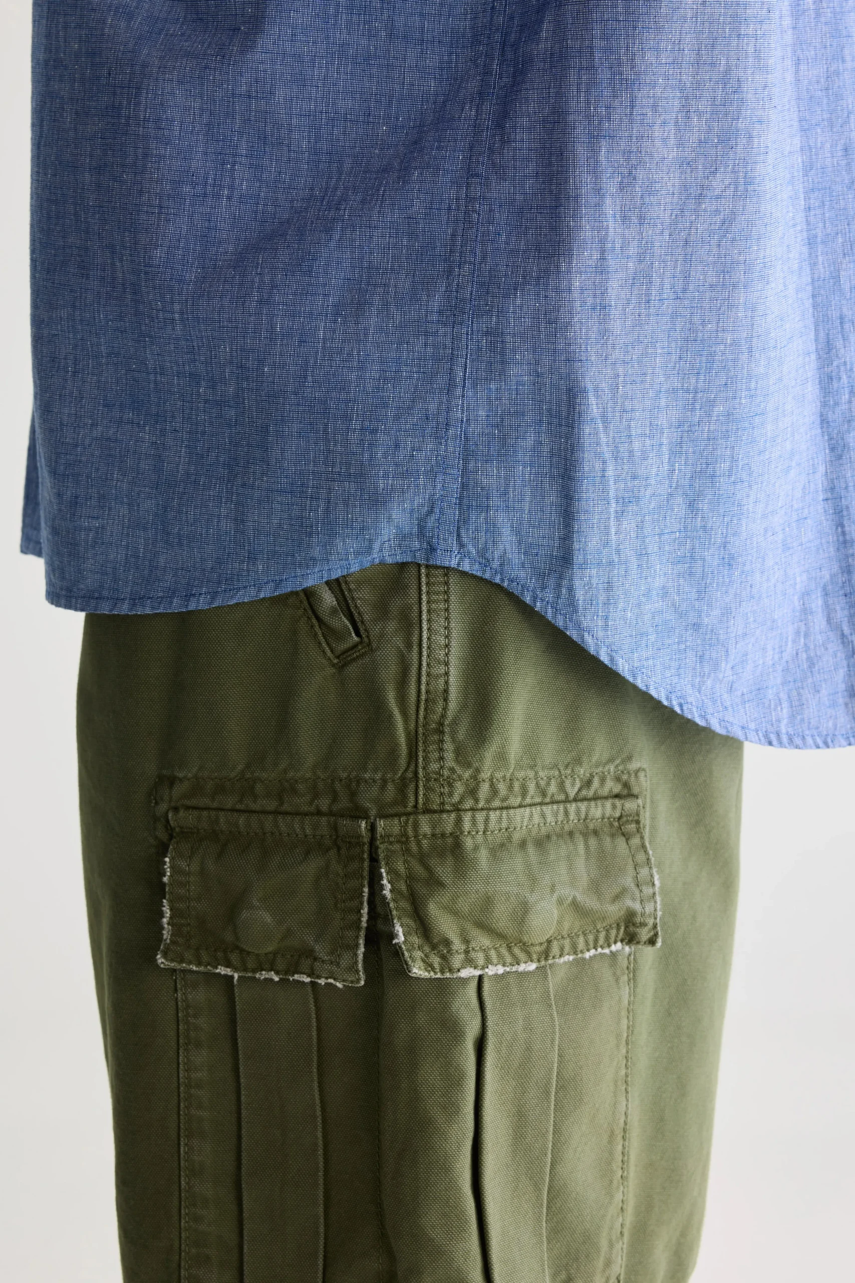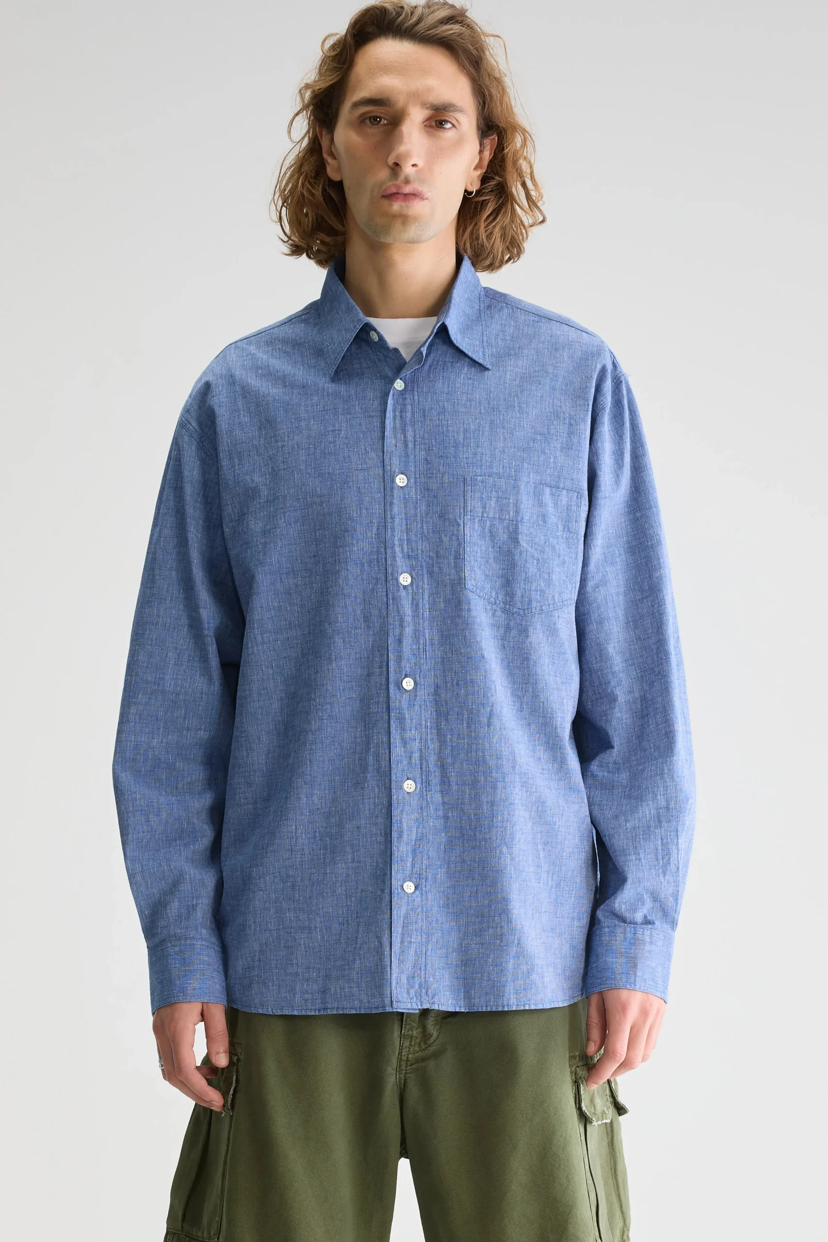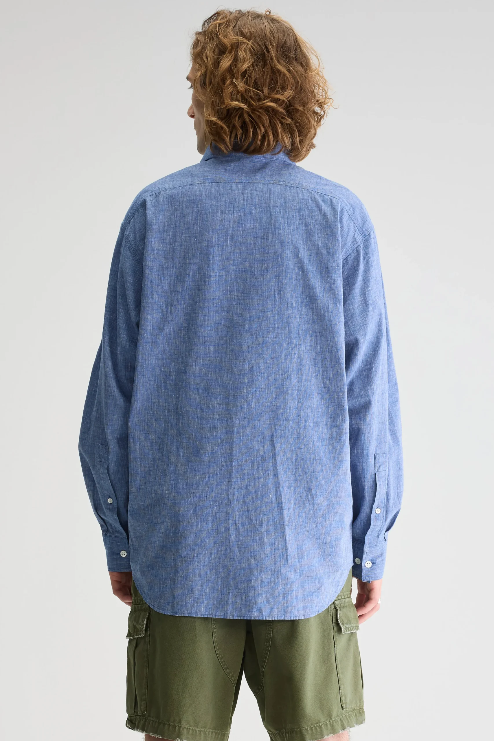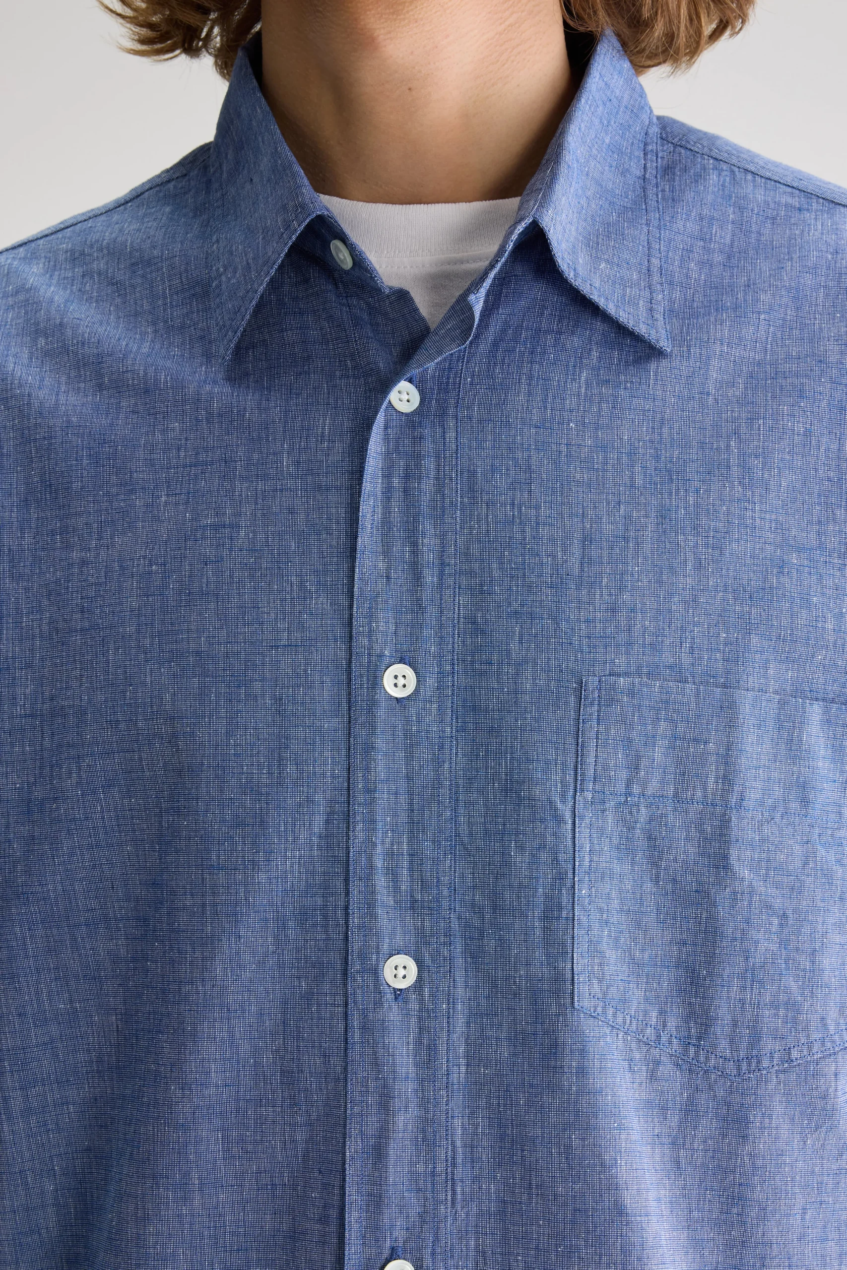 Los hemd met klassieke kraag, lange mouwen en dubbelgestikte sluiting, gemaakt van een denimblauwe, fil à fil katoen en linnen mix.Losse pasvorm Hemdkraag Lange mouwen met manchetknopenKnoopsluiting aan de voorkantFil a fil stofGebogen zoom