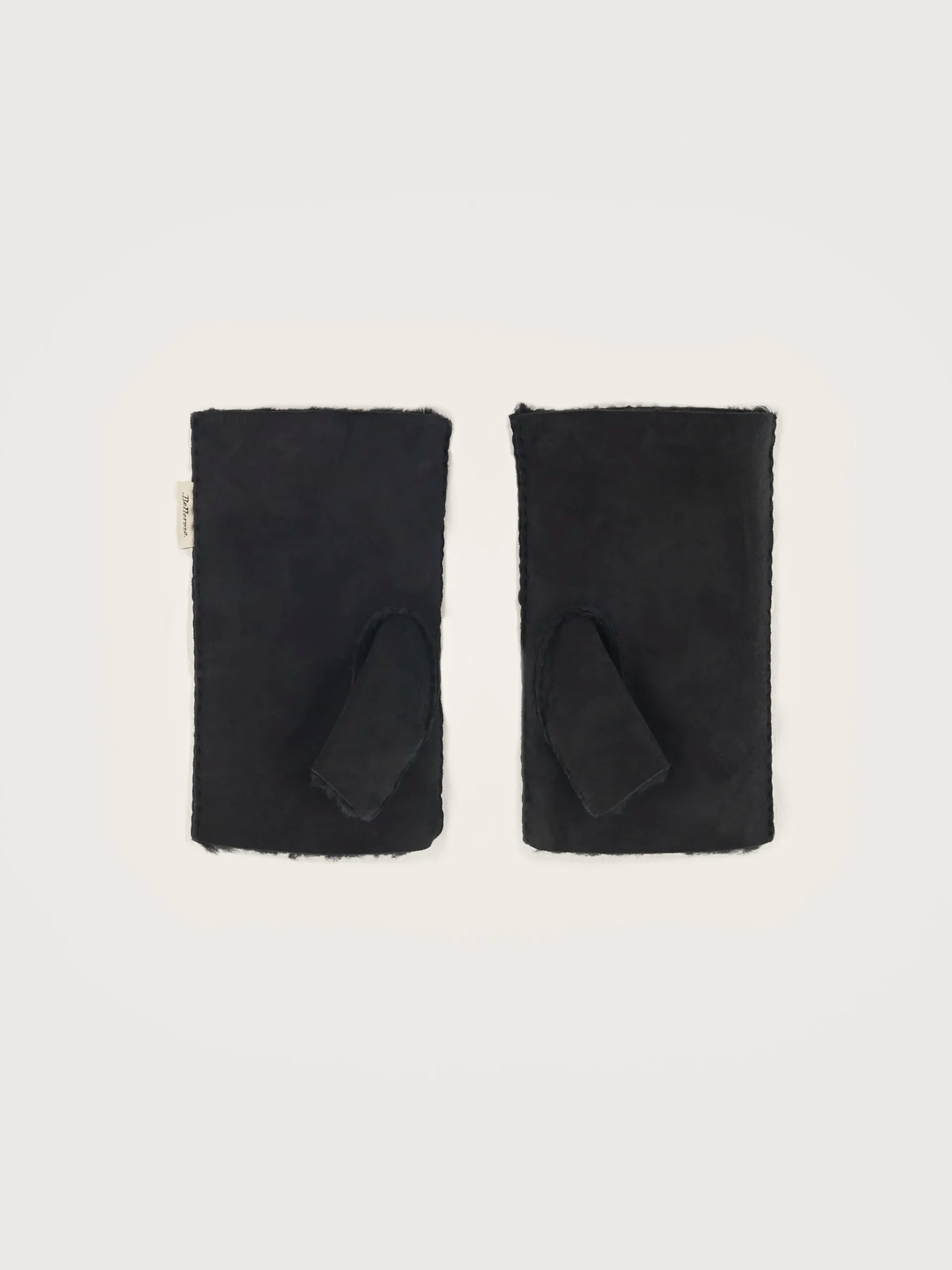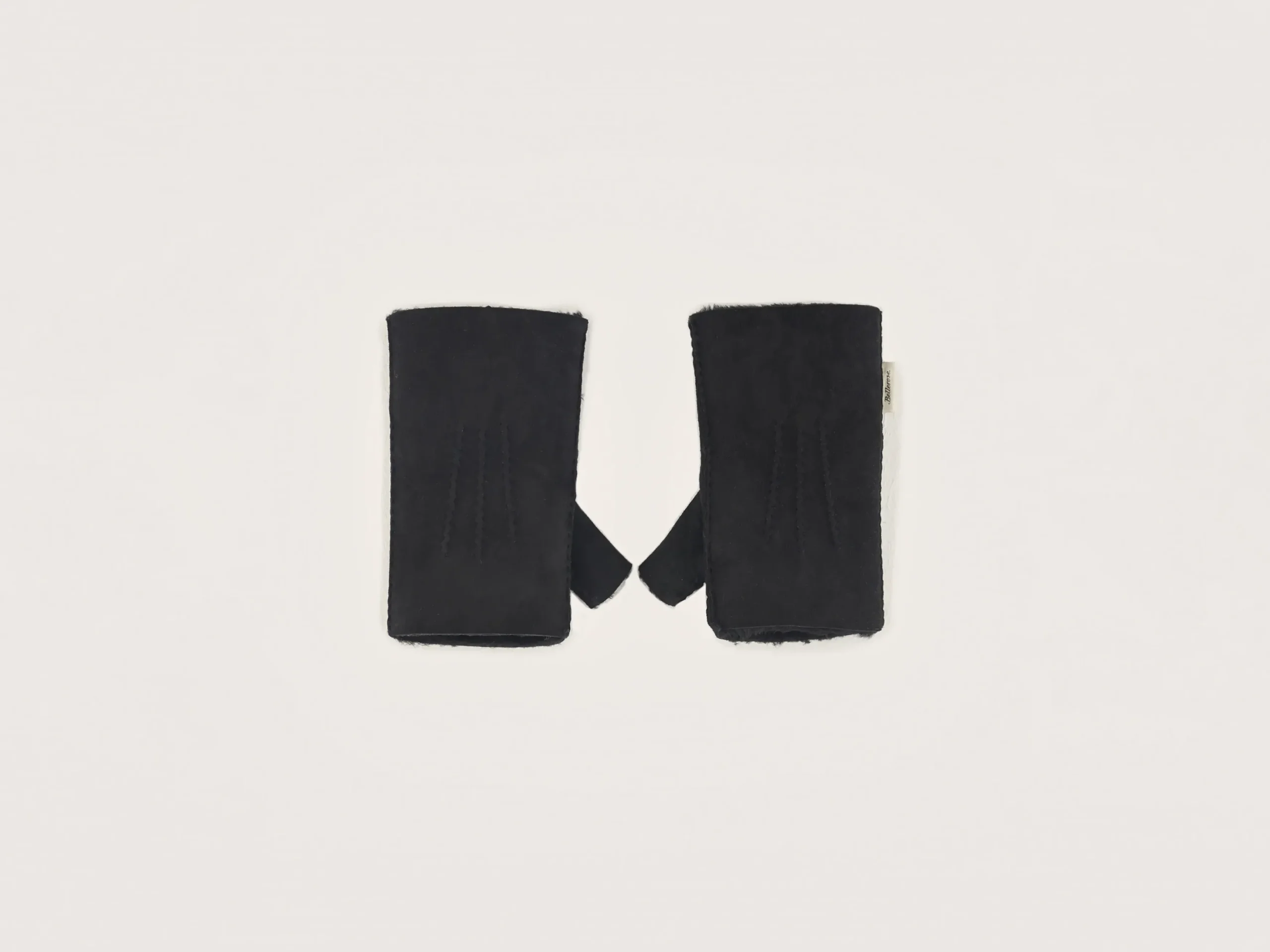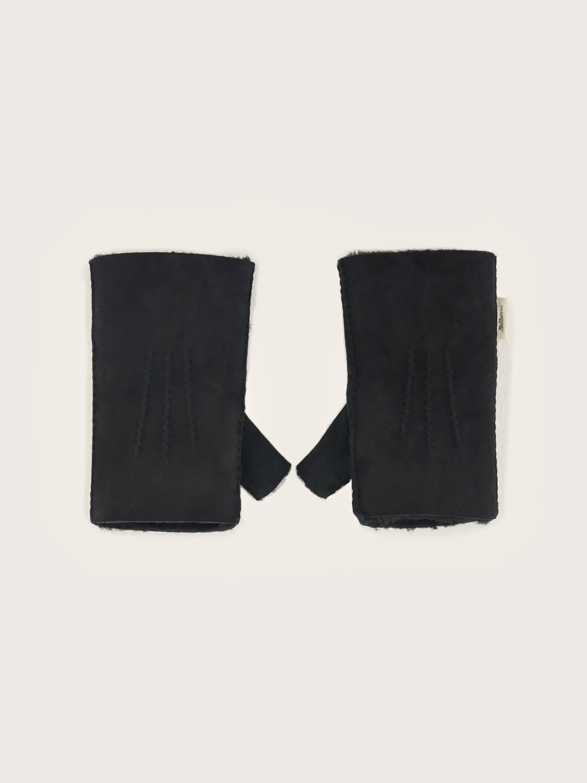 Handschoenen zonder vingers in zwart leer met shearlingwol.r